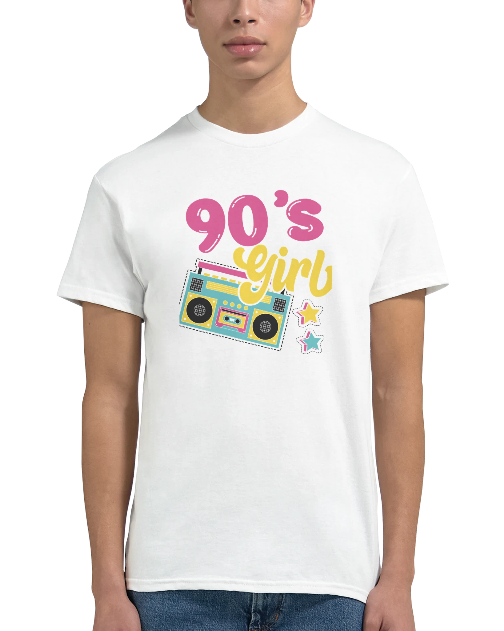Upptäck vår exklusiva ”90’s Girl” T-shirt, en hyllning till ett decennium av ikonisk stil och oförglömlig musik. Med sin livfulla boombox-grafik och nostalgiska charm, är denna t-shirt den perfekta kombinationen av retro-vibe och modern komfort. Tillverkad av 100% bomull, ger denna t-shirt en bekväm passform, perfekt för både vardagsbruk och som professionellt plagg för företag och event.