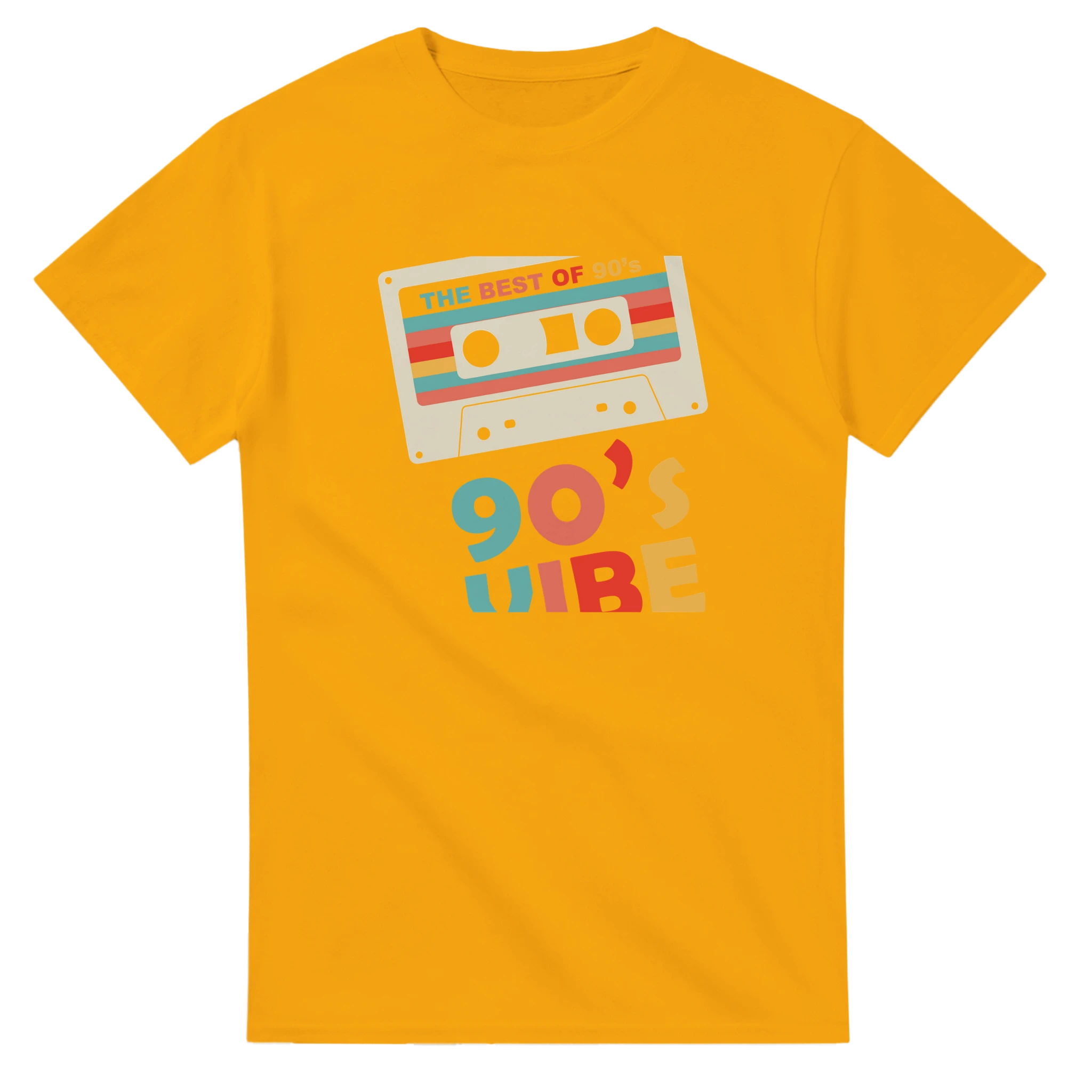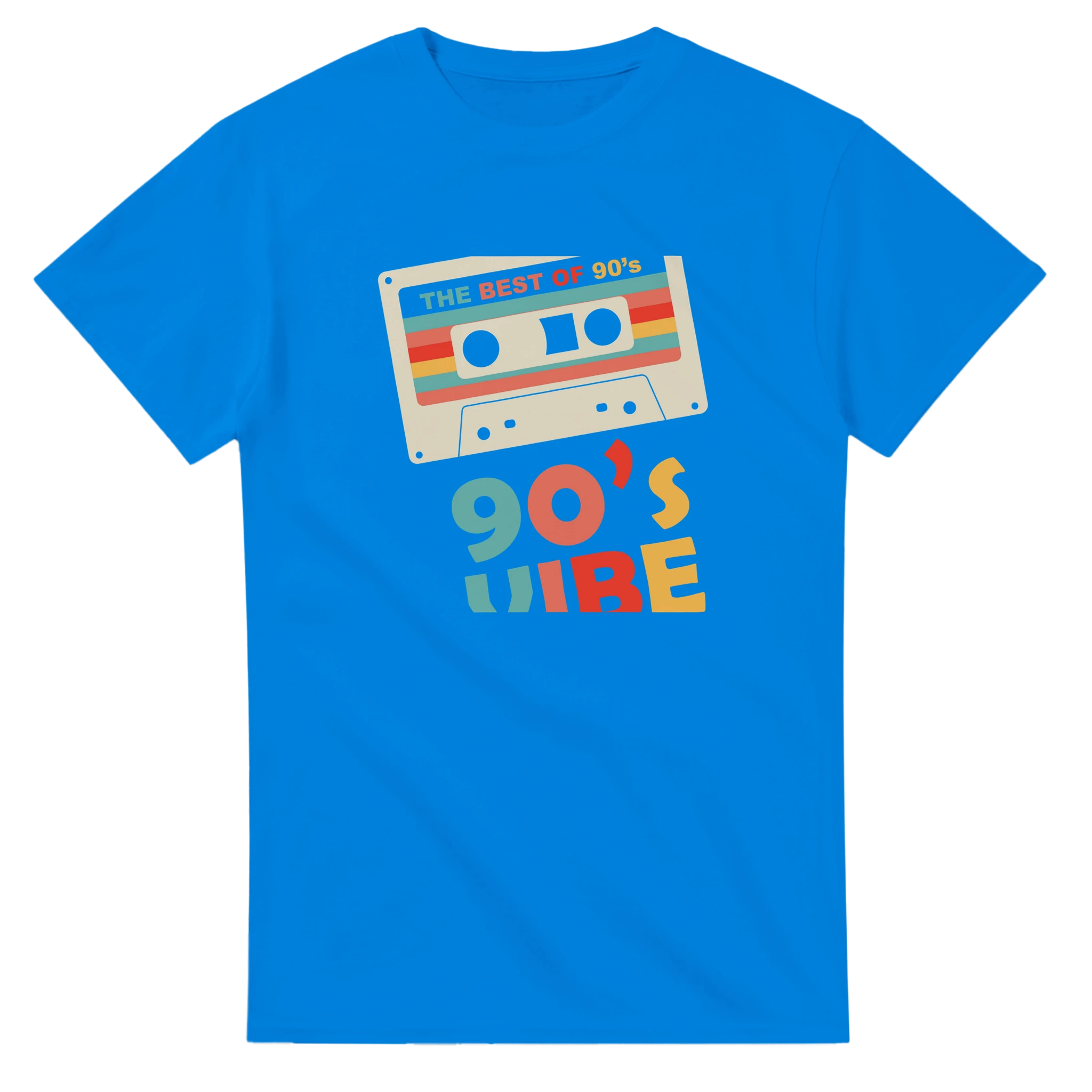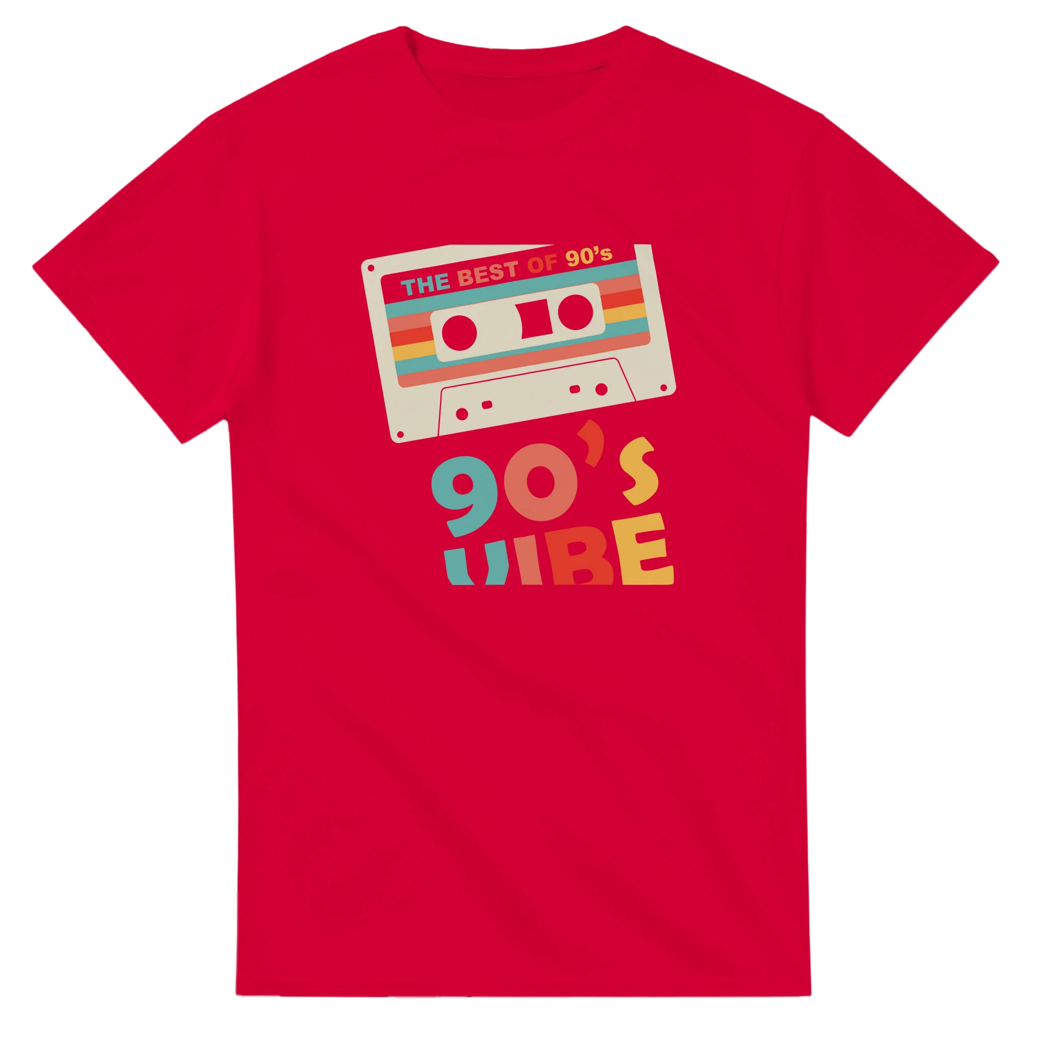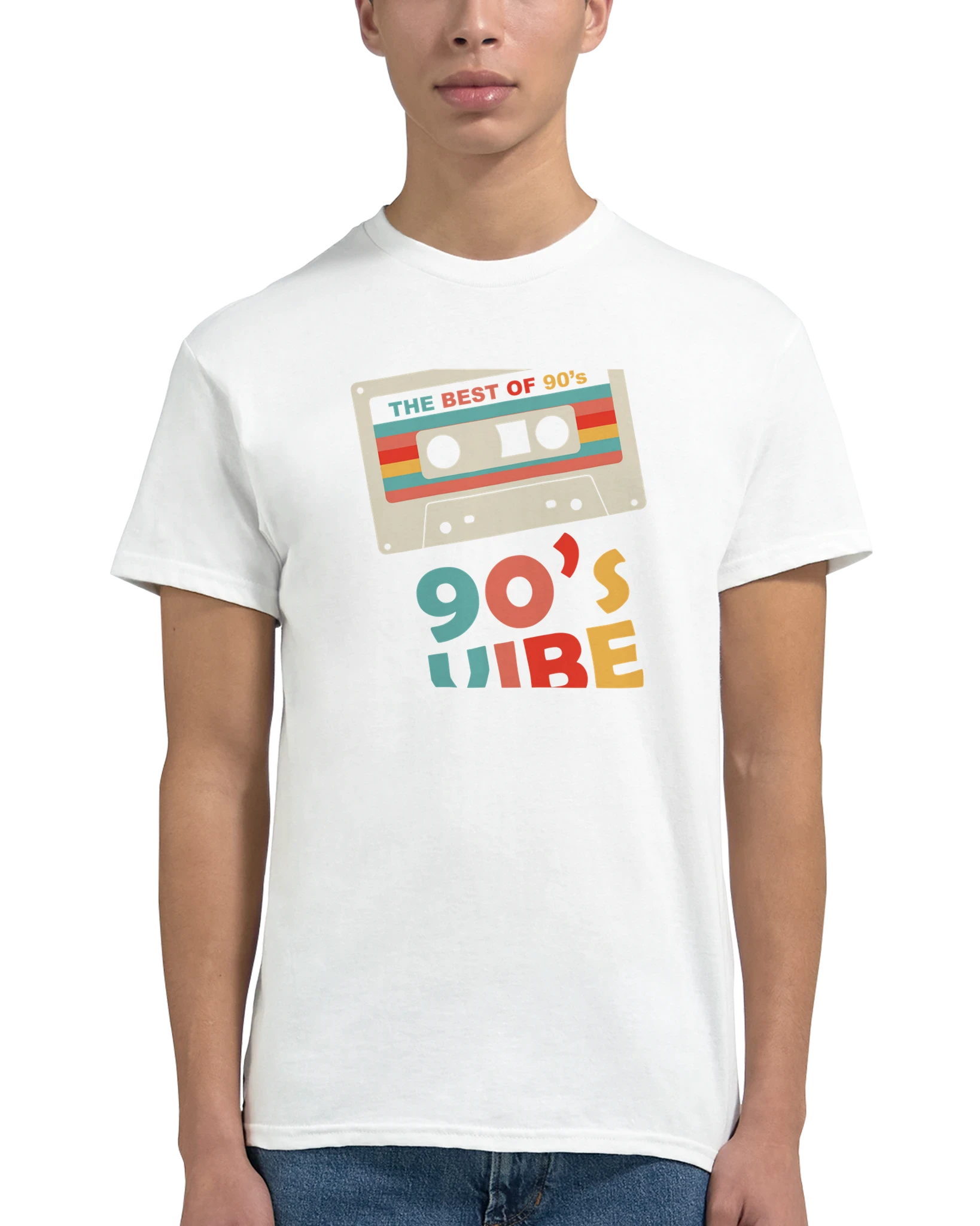 Återupplev den ikoniska eran med vår ”90’s Vibe Kassettband” T-shirt! Denna klassiska bomulls-T-shirt hyllar 90-talets nostalgi med en retrodesign föreställande ett kassettband i livfulla färger som omedelbart förflyttar dig tillbaka i tiden. En perfekt blandning av tidlös stil och personligt uttryck, den är idealisk för att visa din kärlek till decenniet som gav oss grunge, pop och oförglömliga mixtapes.