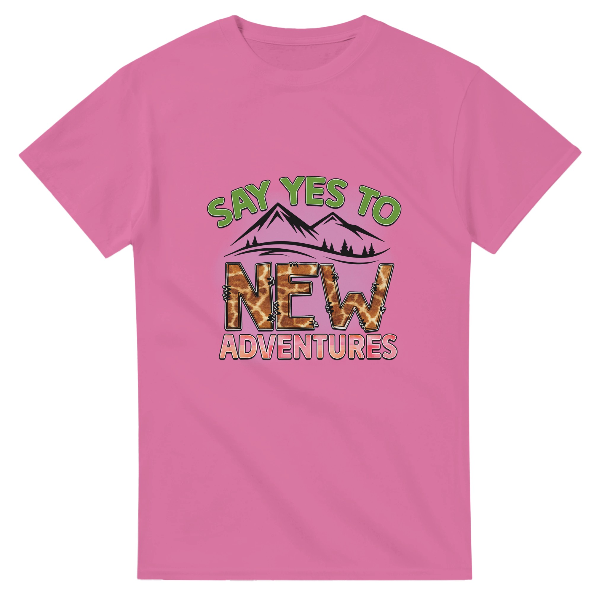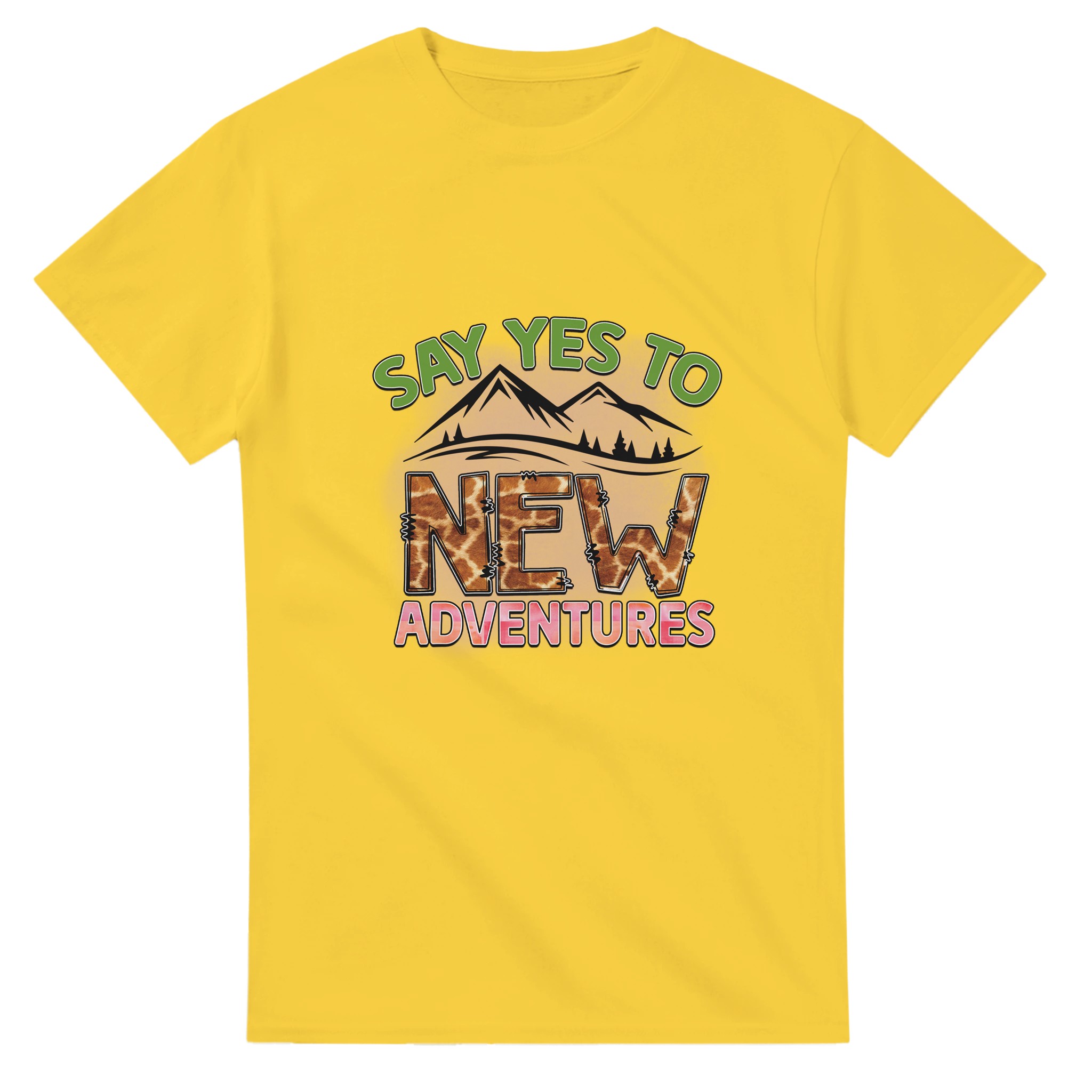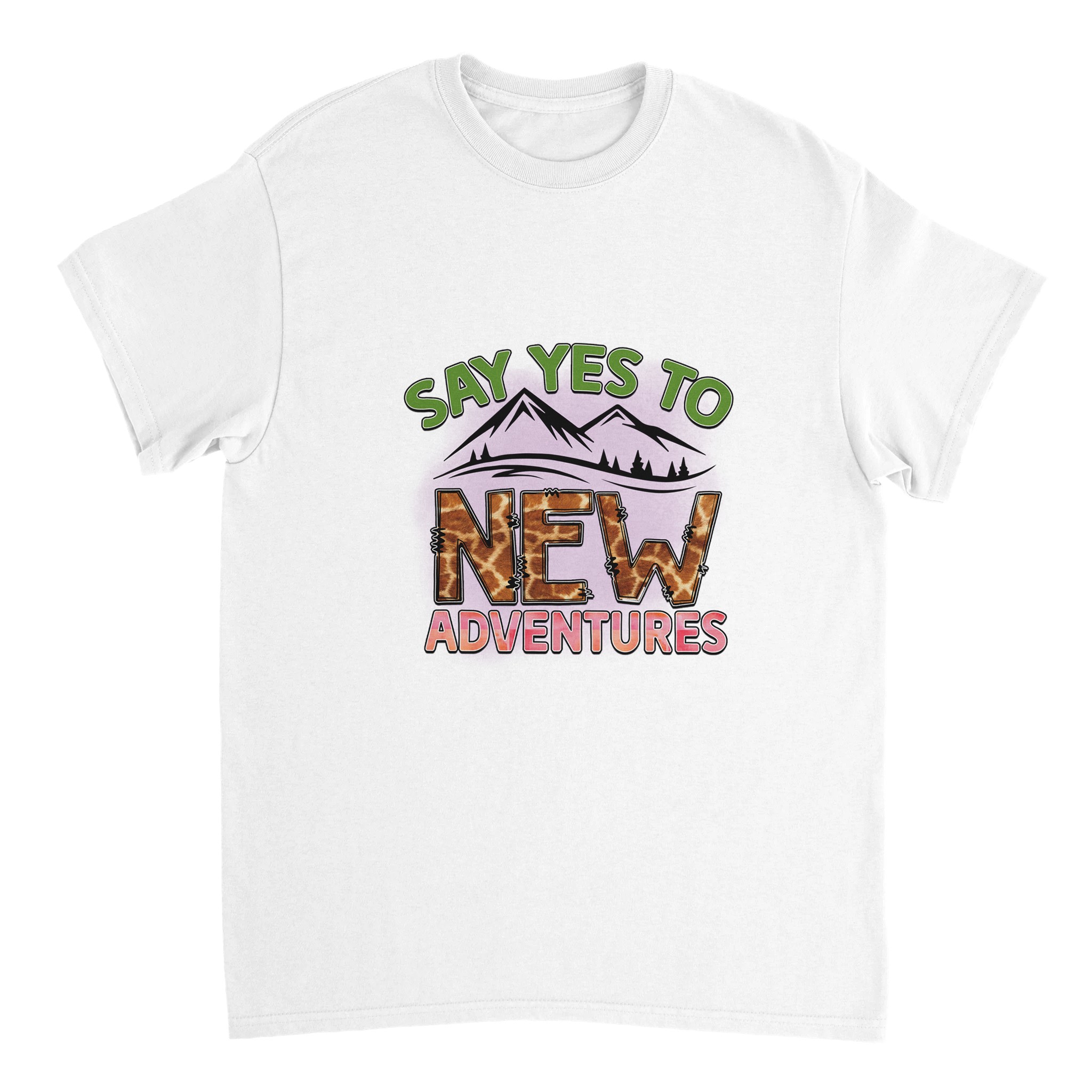 Omfamna äventyret med vår unika t-shirt, ”Say Yes to New Adventures”. Denna tröja är mer än bara ett plagg – det är en uppmaning att utforska, med en lekfull giraffmönstrad text mot en bakgrund av berg och en livlig palett. Perfekt för den som älskar att resa, upptäcka nya platser eller bara inspireras i vardagen. Tillverkad för att vara både bekväm och hållbar, kommer denna t-shirt snabbt bli din favorit för alla dina spännande resor, stora som små.