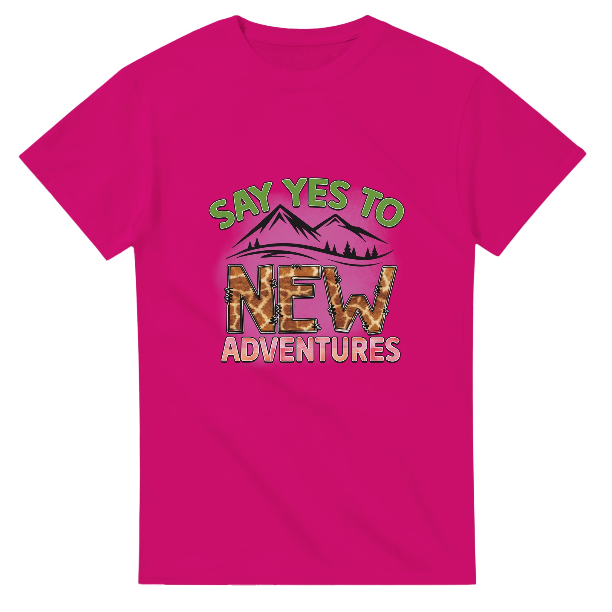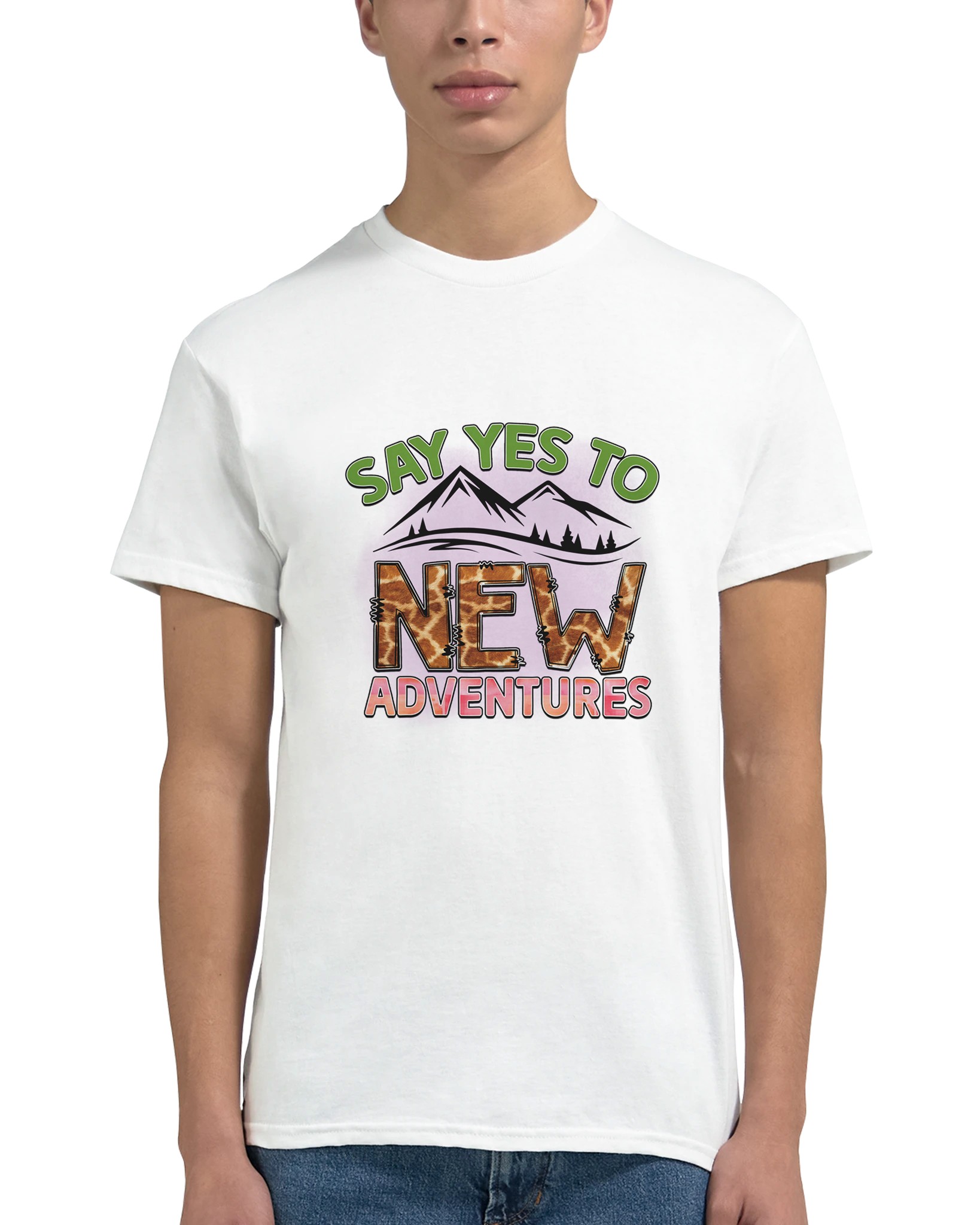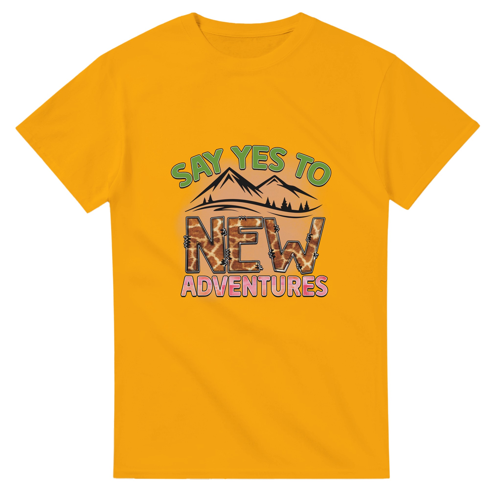 Omfamna äventyret med vår unika t-shirt, ”Say Yes to New Adventures”. Denna tröja är mer än bara ett plagg – det är en uppmaning att utforska, med en lekfull giraffmönstrad text mot en bakgrund av berg och en livlig palett. Perfekt för den som älskar att resa, upptäcka nya platser eller bara inspireras i vardagen. Tillverkad för att vara både bekväm och hållbar, kommer denna t-shirt snabbt bli din favorit för alla dina spännande resor, stora som små.