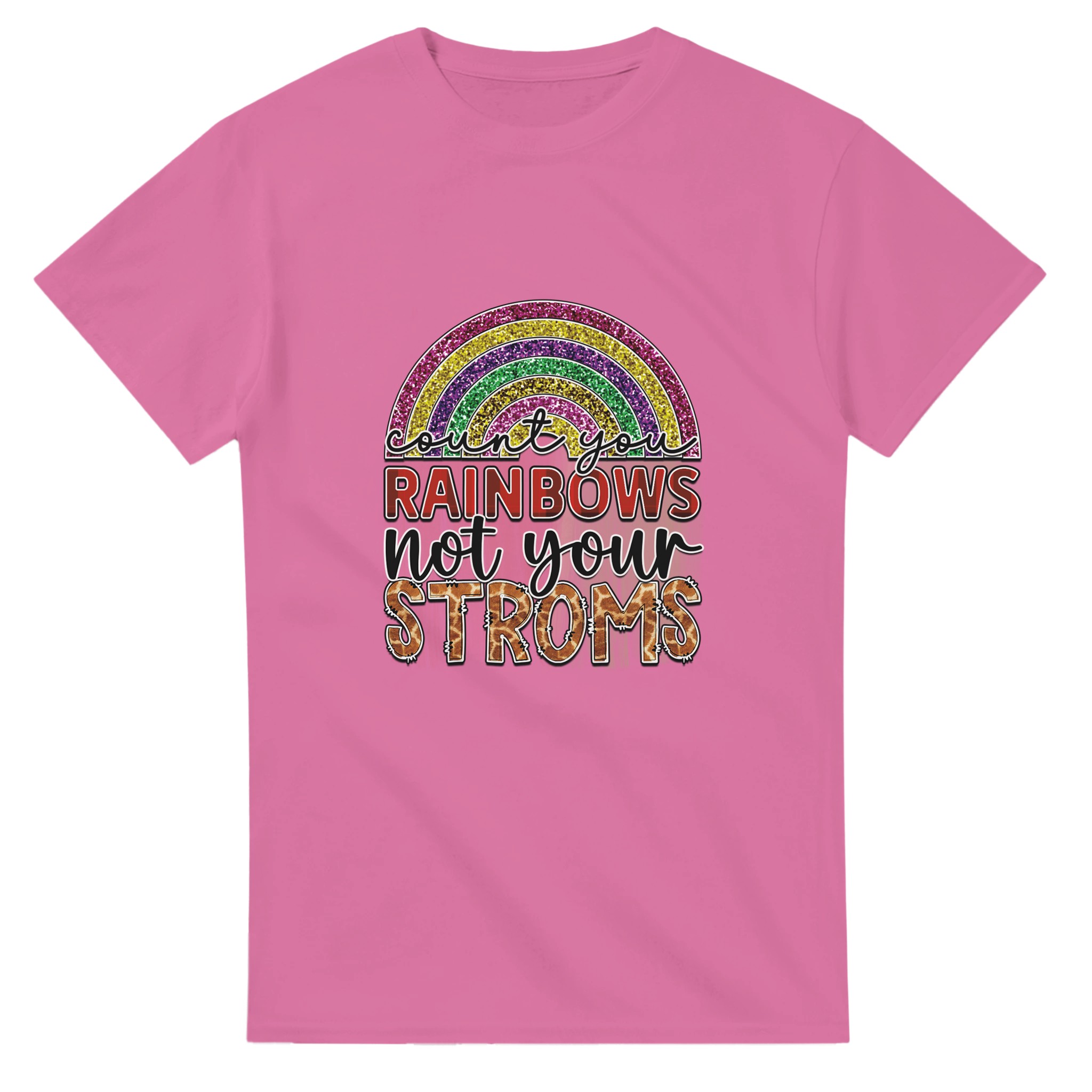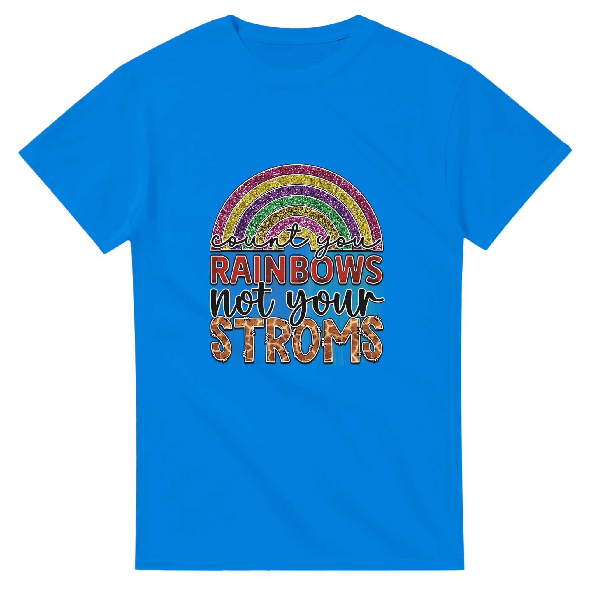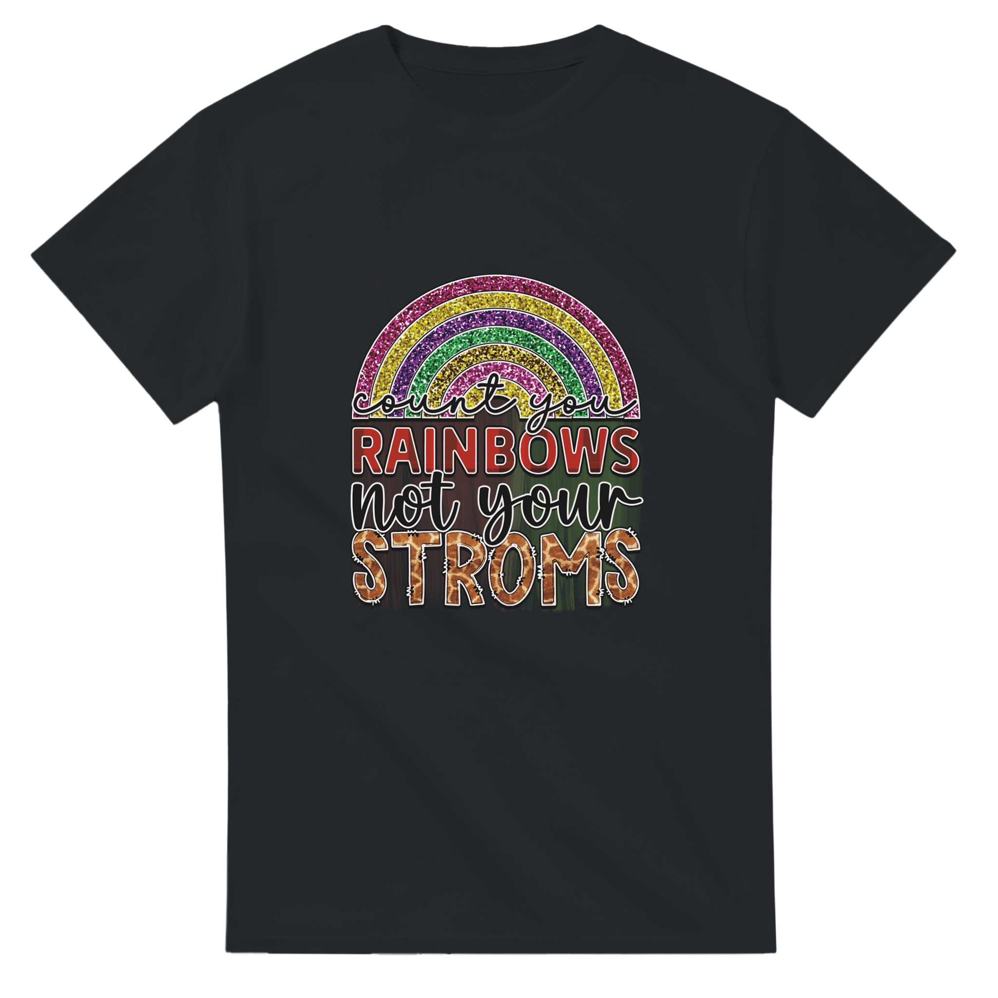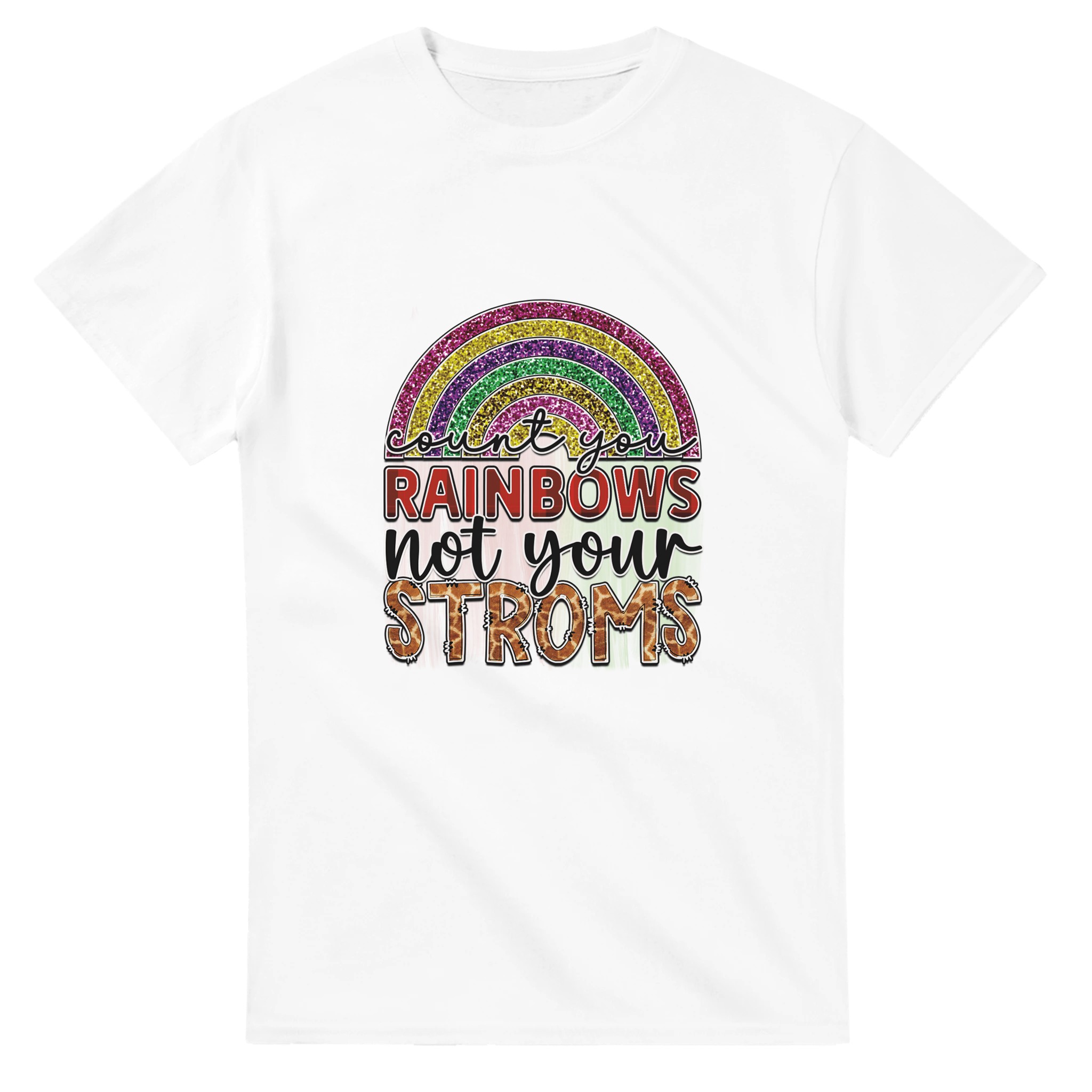 Glitter Regnbåge “Count Your Rainbows” T-shirt – Klassisk, Unisex & Färgstark Vardagsdesign för Positivitet