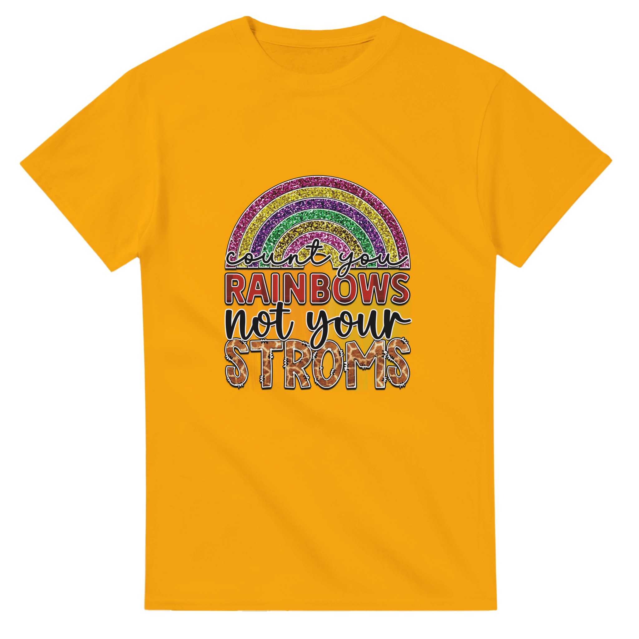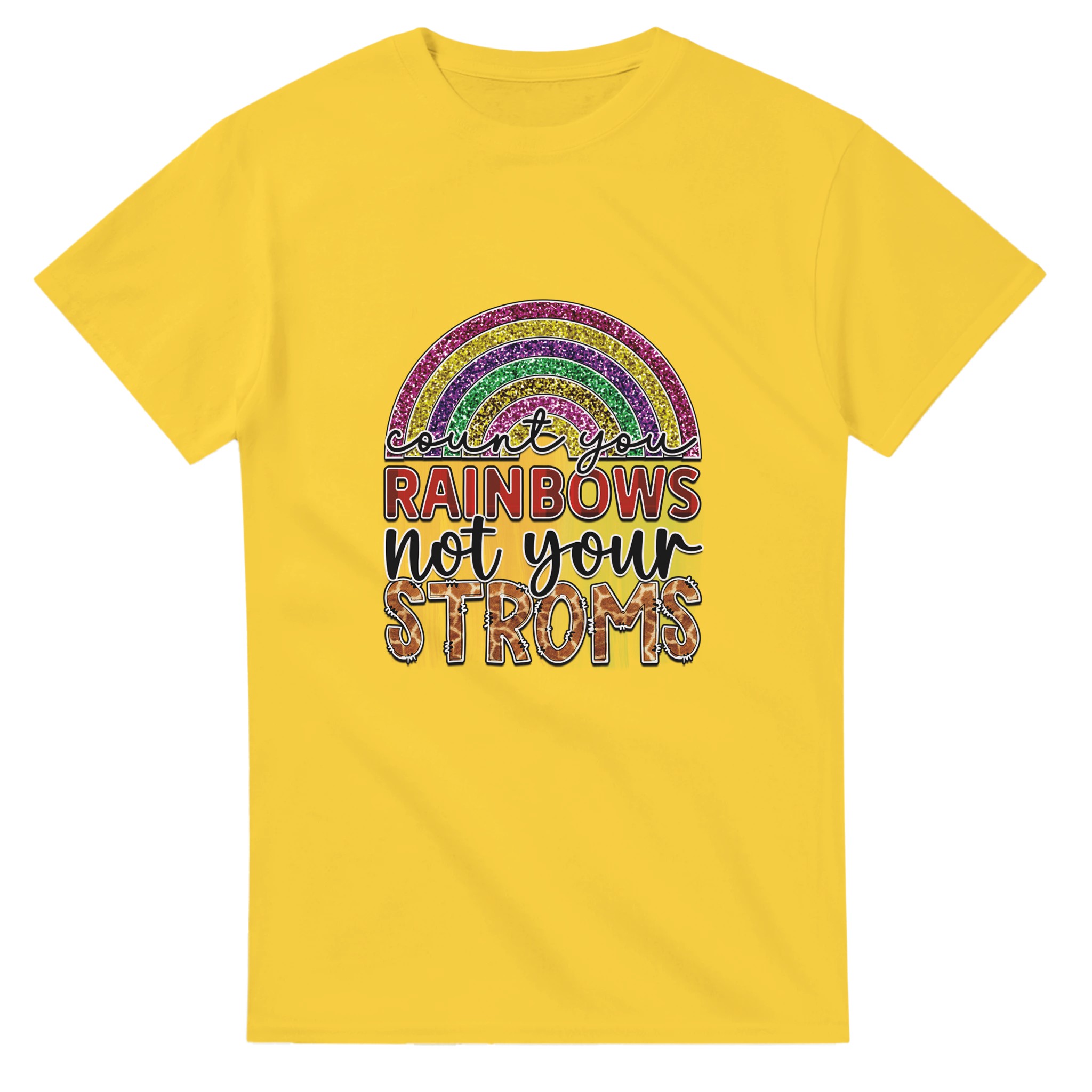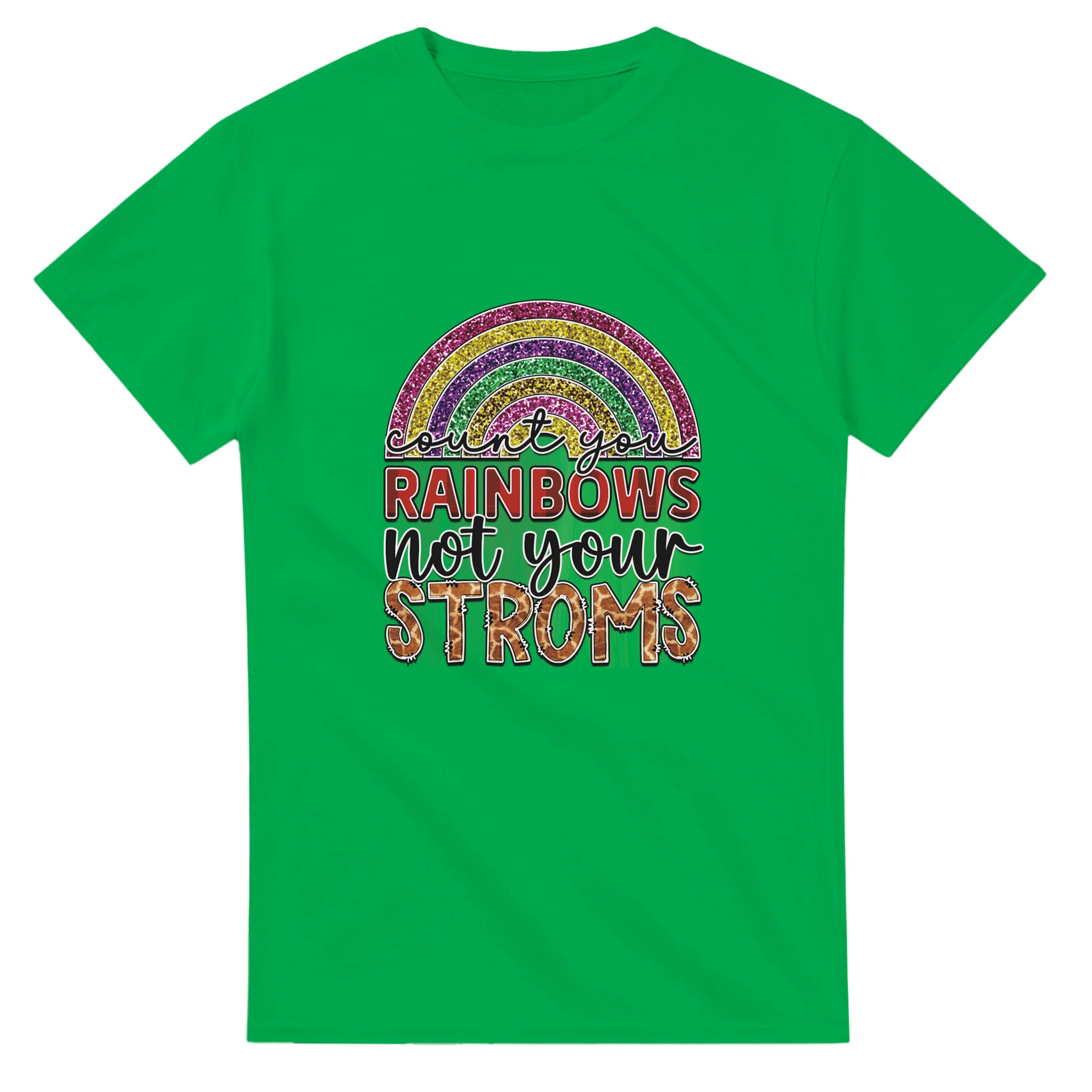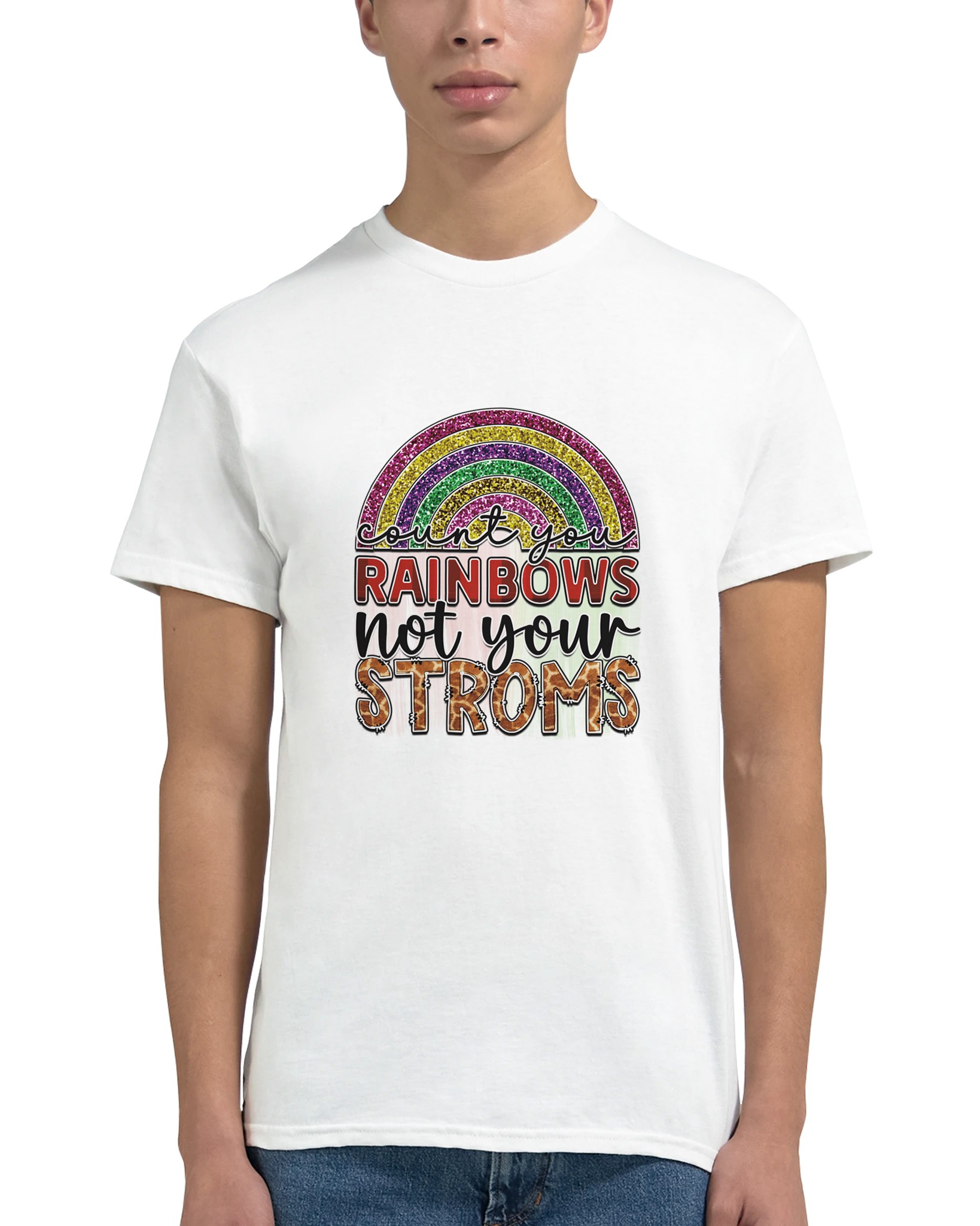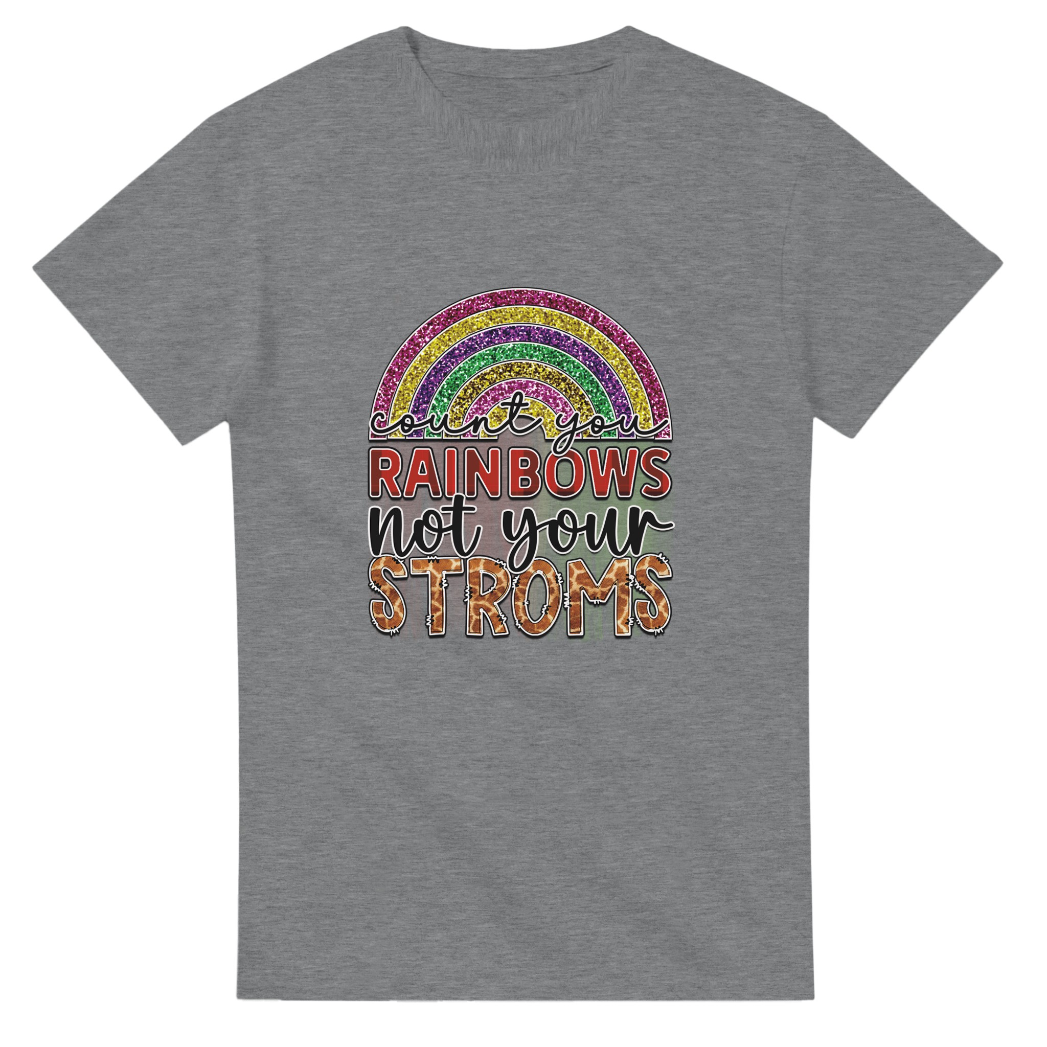 Glitter Regnbåge “Count Your Rainbows” T-shirt – Klassisk, Unisex & Färgstark Vardagsdesign för Positivitet