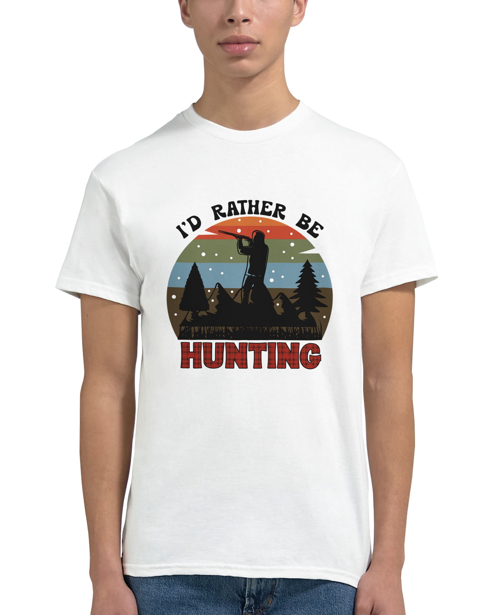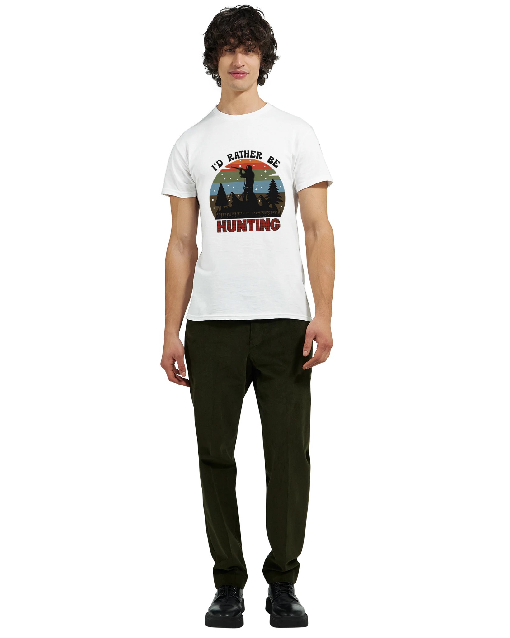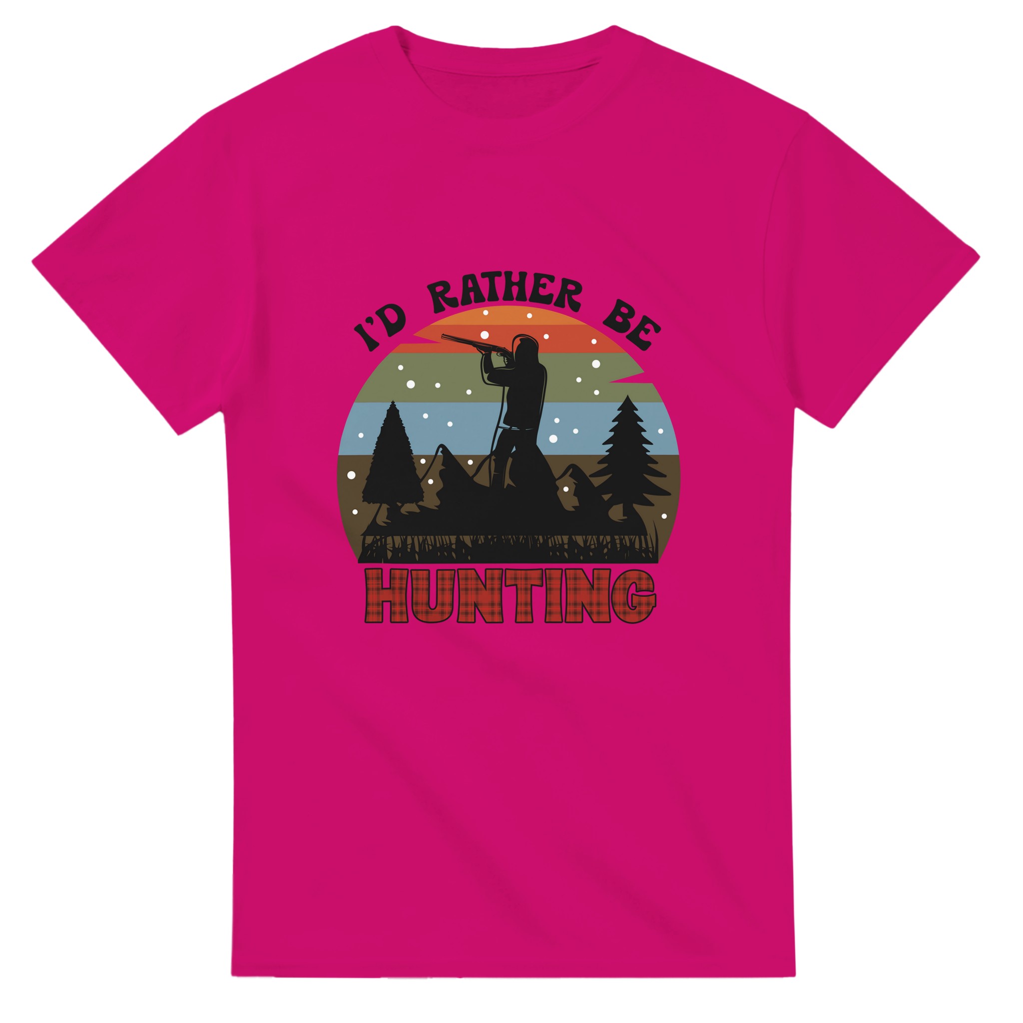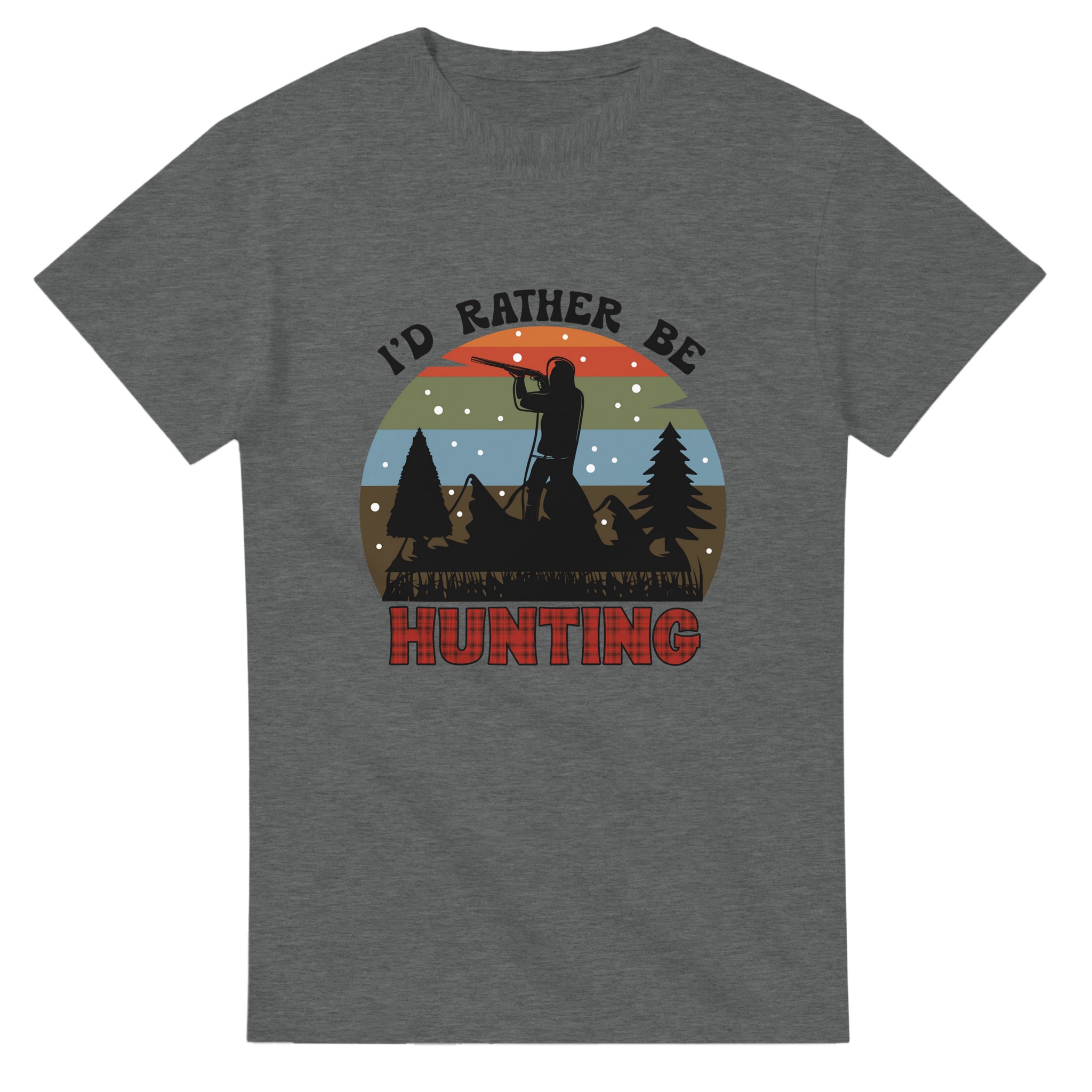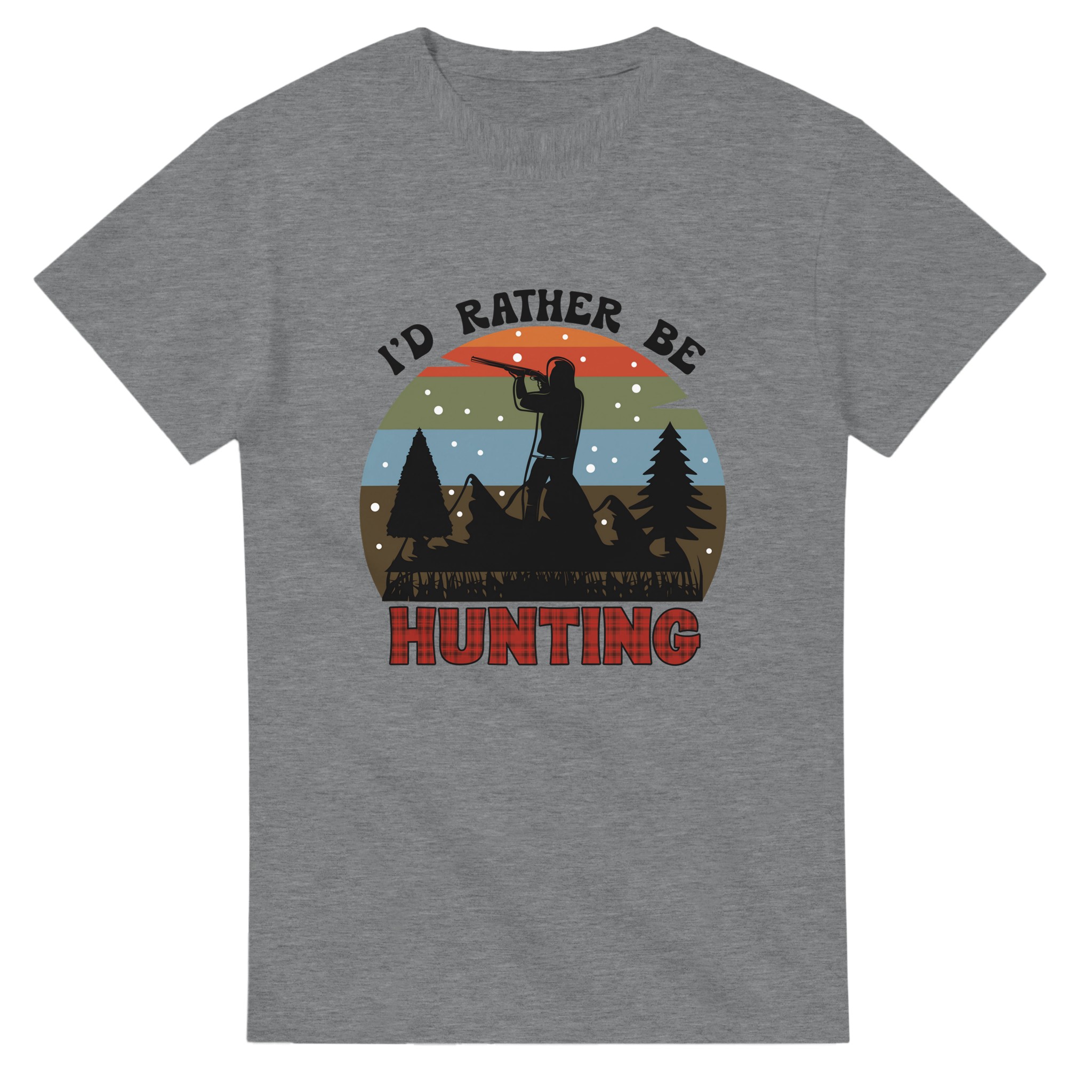 Fånga känslan av vildmarken med vår Jaktentusiast T-shirt, en perfekt blandning av robust stil och oöverträffad komfort. Denna t-shirt hyllar jaktens tidlösa tradition med en siluett av en jägare mot en vacker solnedgång, komplett med tallar och snöflingor. Den rutiga “HUNTING”-texten ger en autentisk och mysig touch som passar både i skogen och i staden.