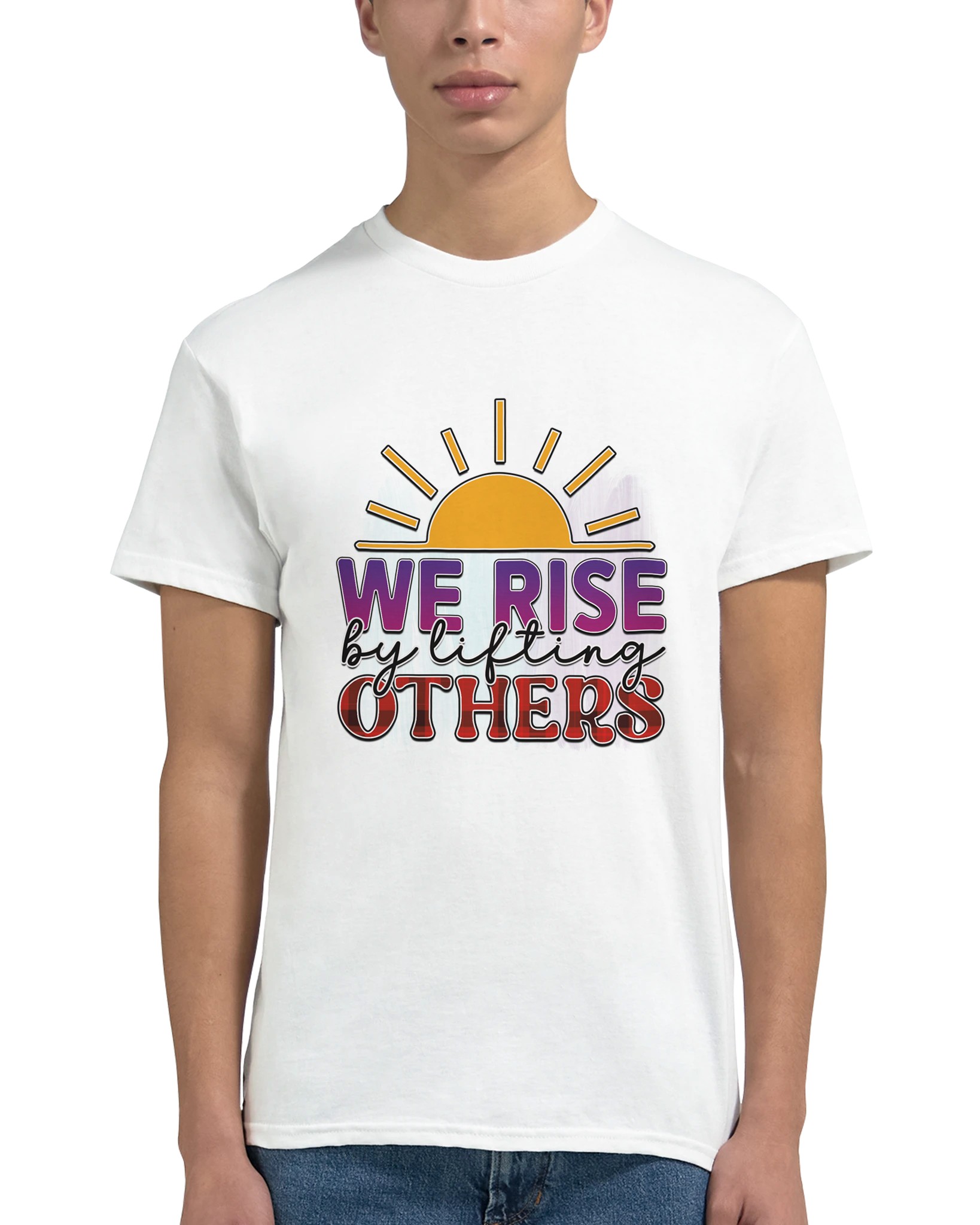 Klassisk Bomulls-T-shirt – ‘We Rise by Lifting Others’ Design för Inspiration & Vardagsbruk