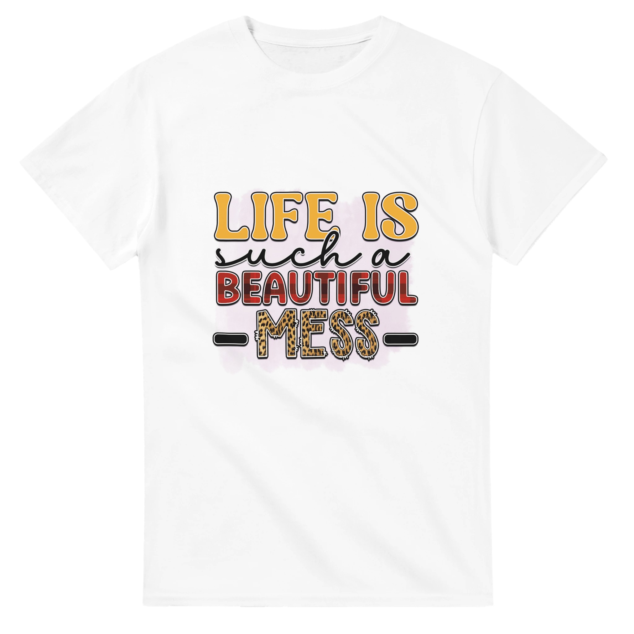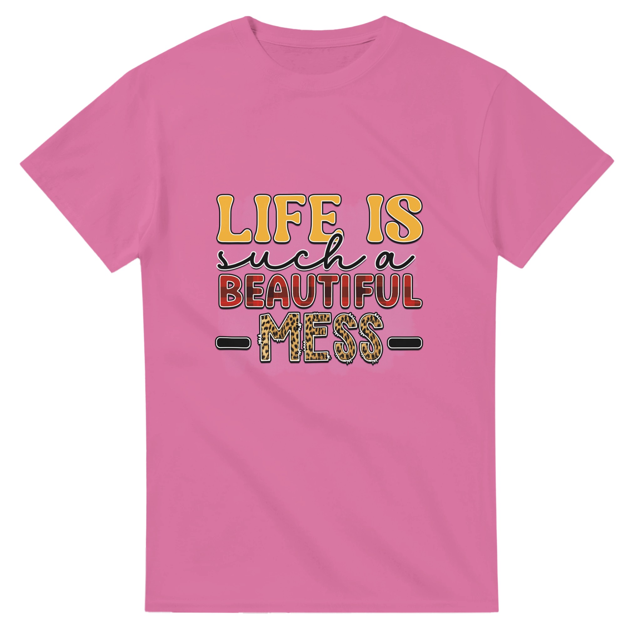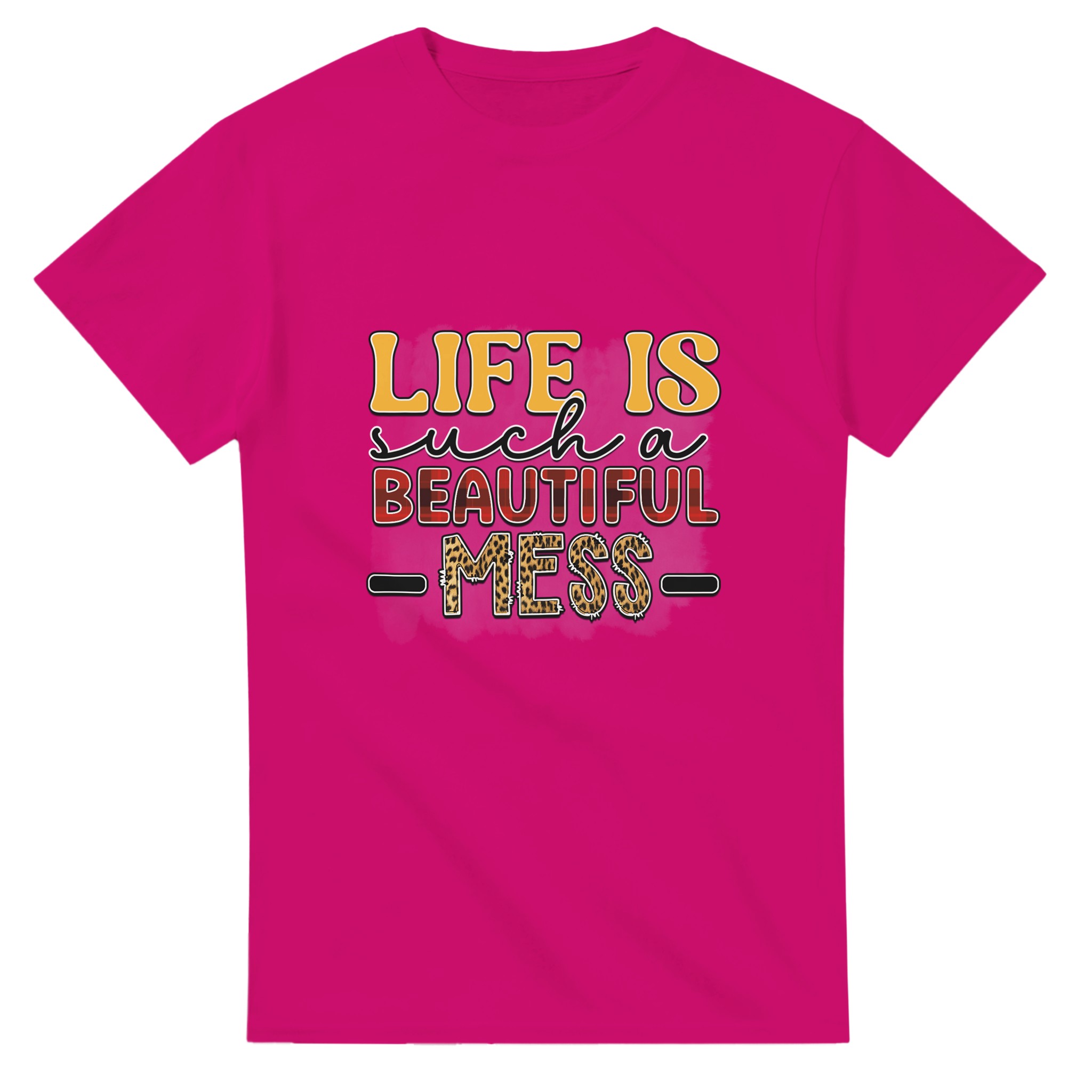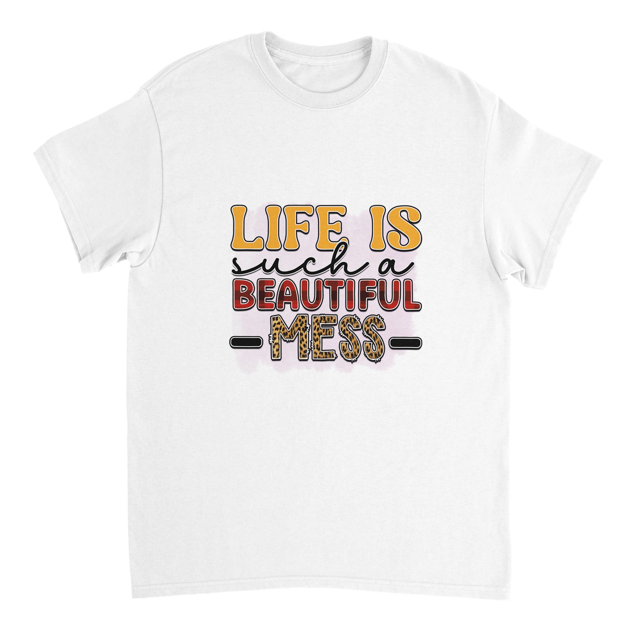 Omfamna livets underbara kaos med vår “Life is a Beautiful Mess” T-shirt. Denna unika design kombinerar lekfulla typsnitt och mönster som leopard och röd plaid, och uttrycker den perfekta balansen mellan charm och attityd. Perfekt för dig som lever livet fullt ut och inte är rädd för att visa upp din personlighet. Vår Klassiska Bomulls-T-shirt är inte bara en statement-tröja, utan också en tidlös och slitstark klassiker som kombinerar stil och funktionalitet.