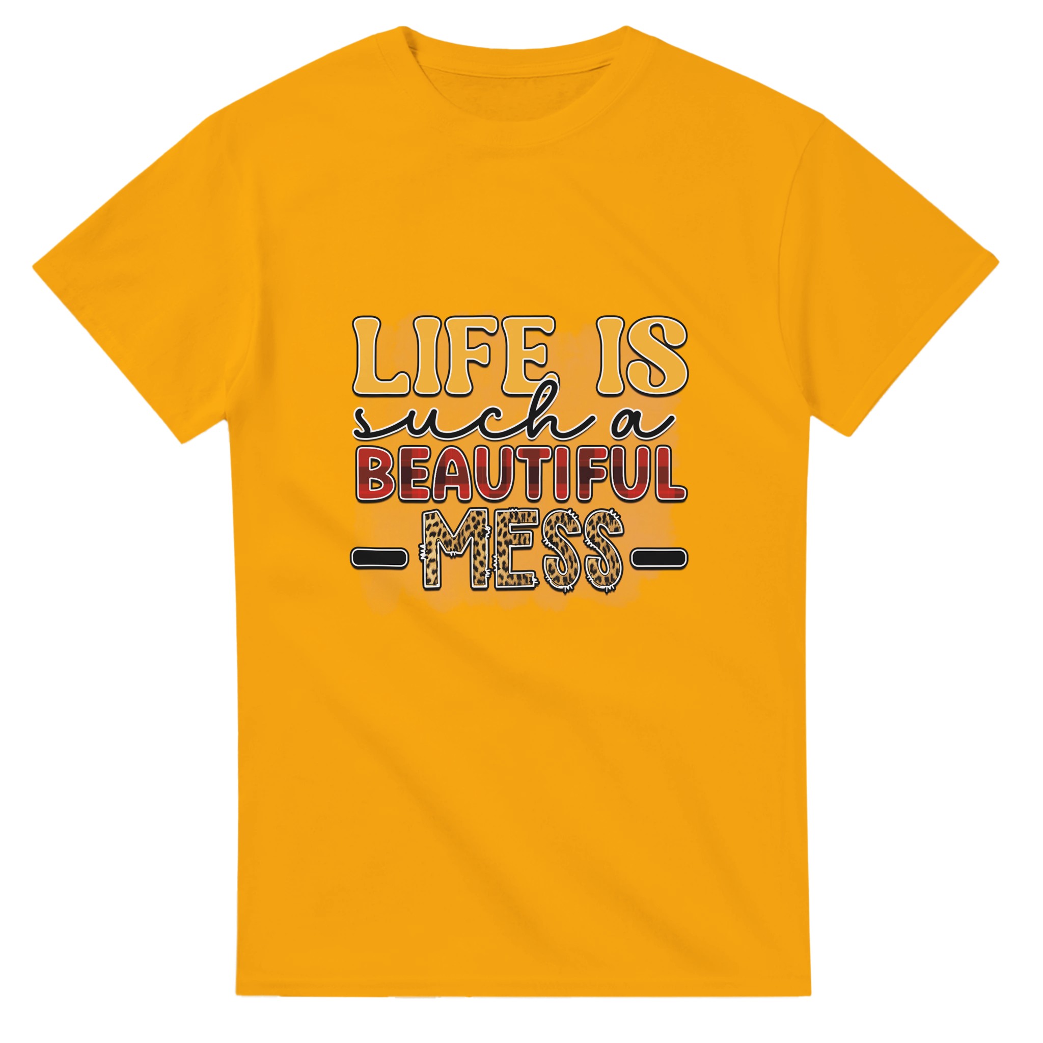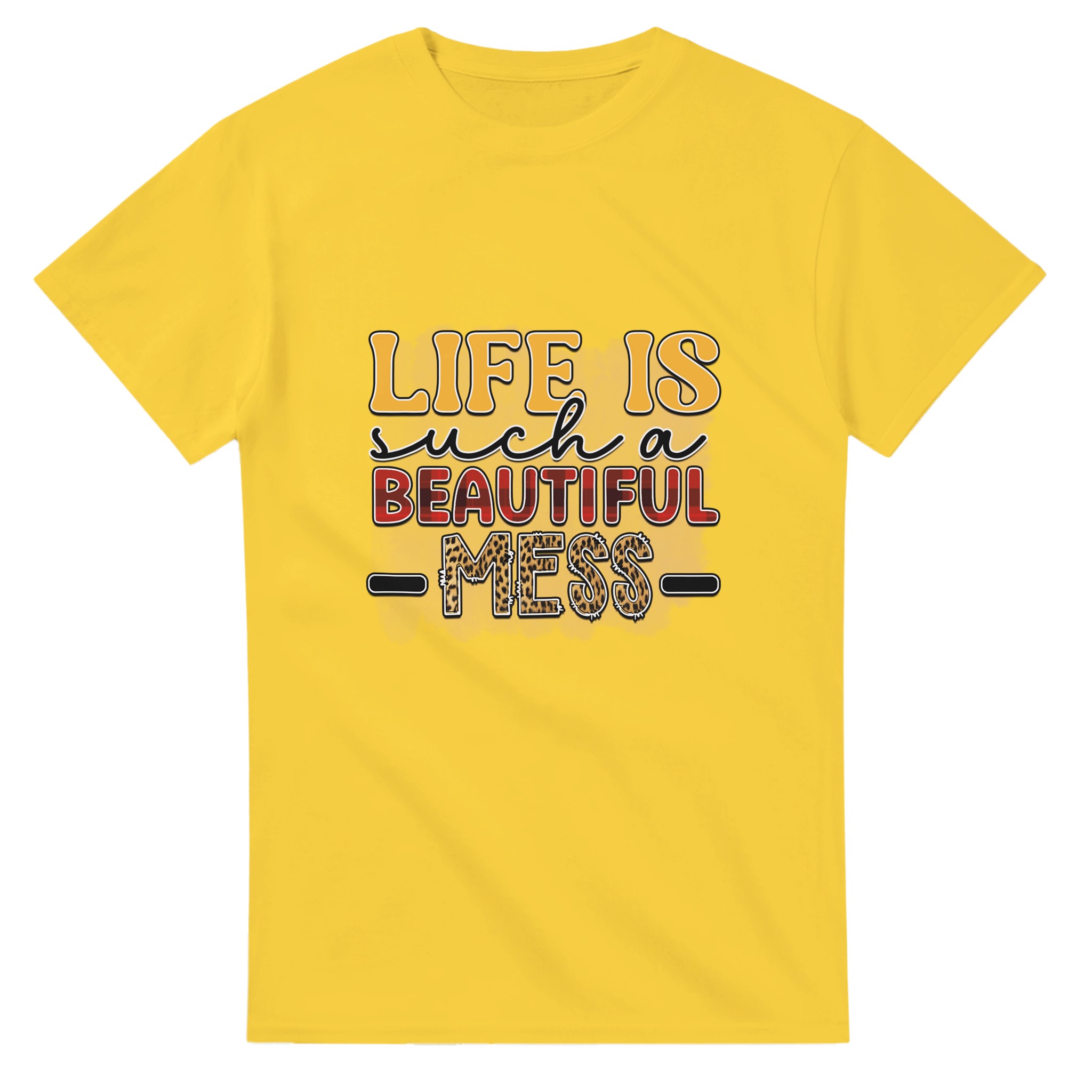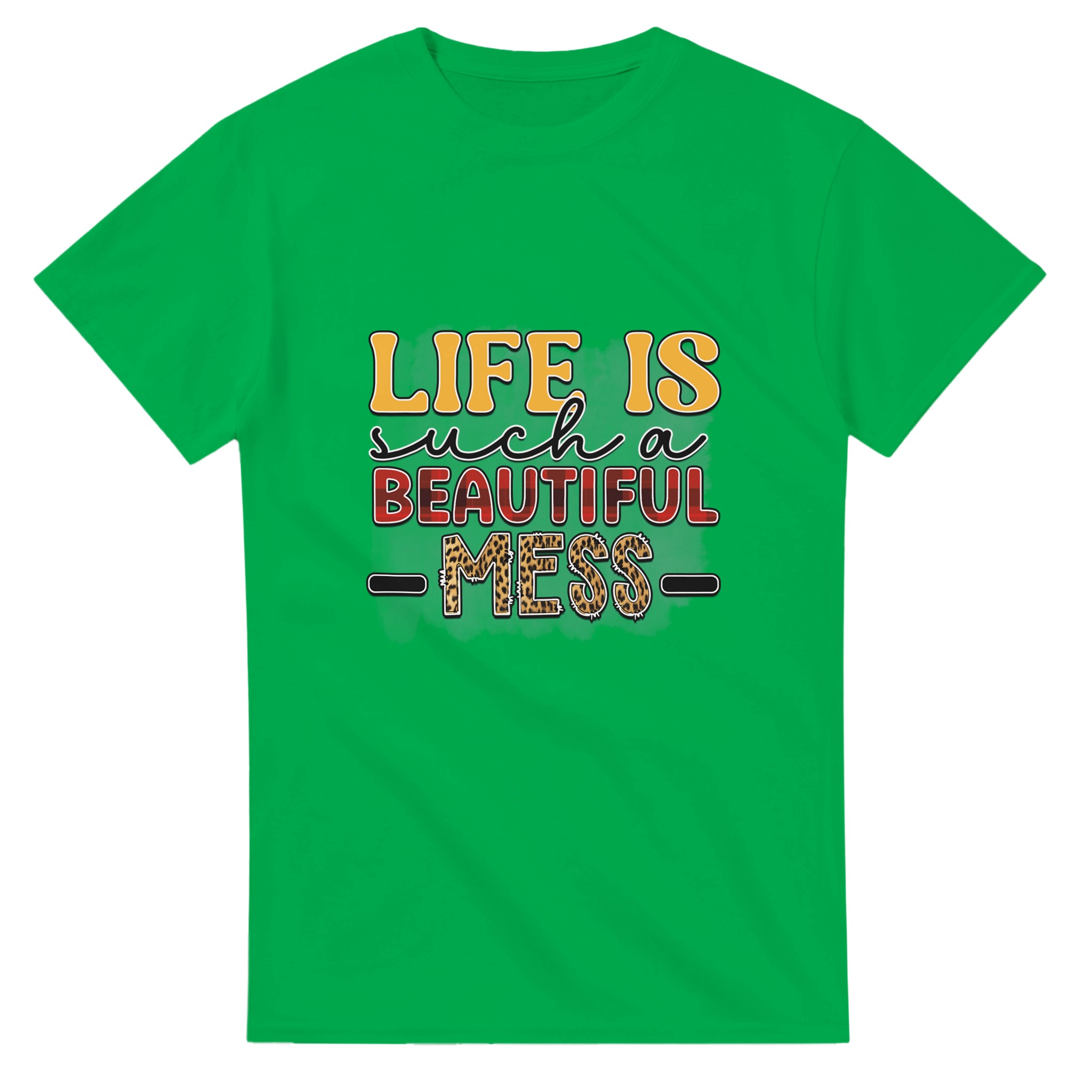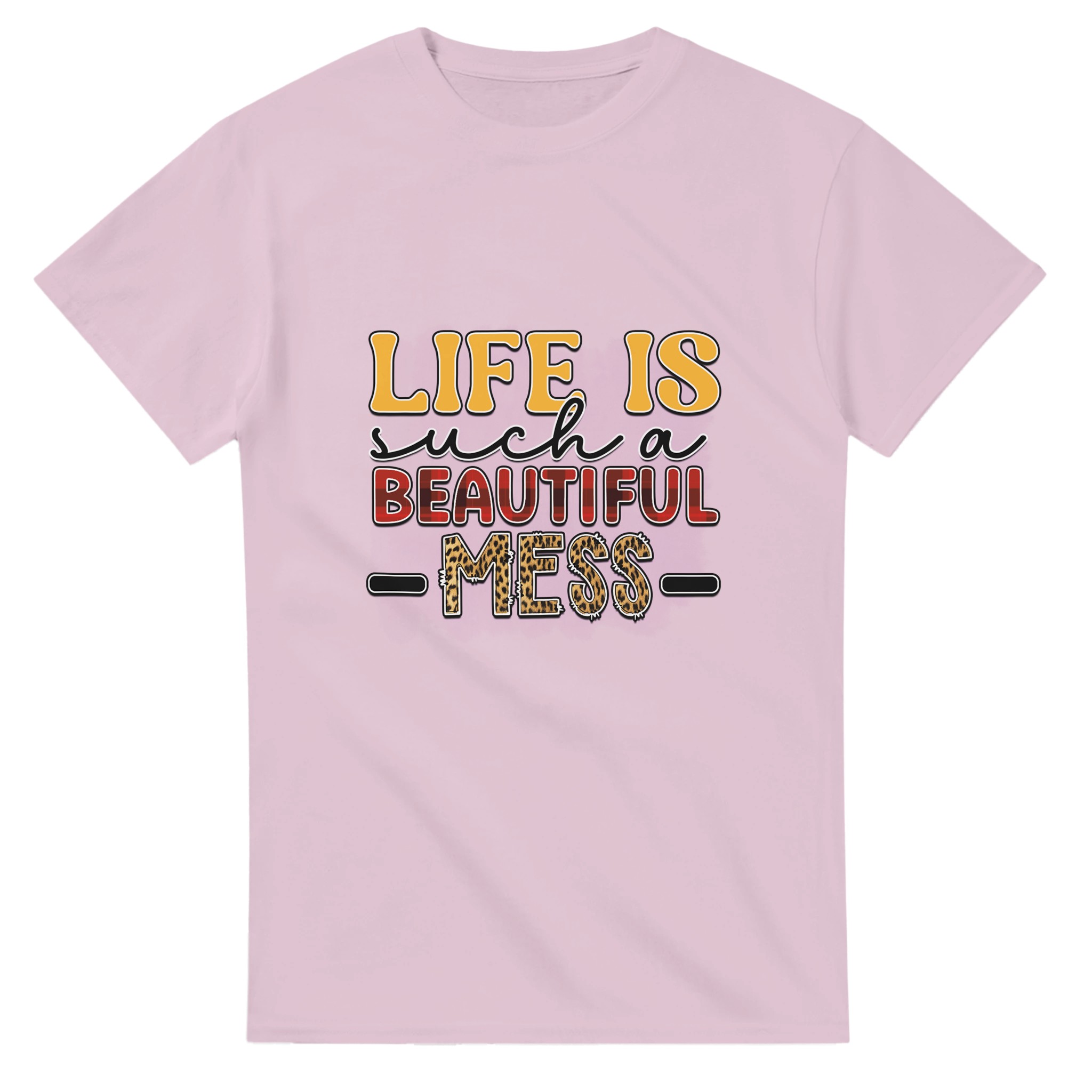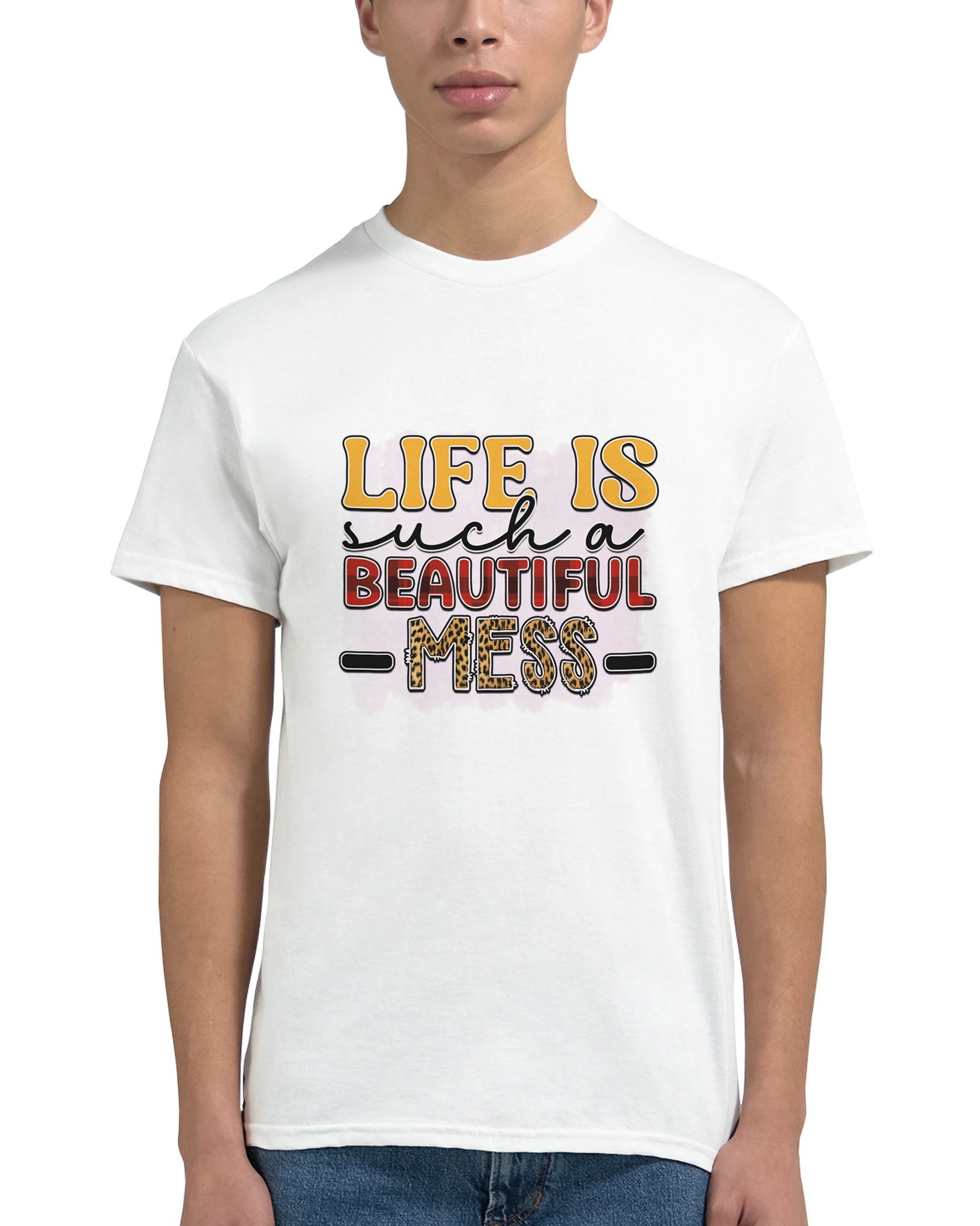 Omfamna livets underbara kaos med vår “Life is a Beautiful Mess” T-shirt. Denna unika design kombinerar lekfulla typsnitt och mönster som leopard och röd plaid, och uttrycker den perfekta balansen mellan charm och attityd. Perfekt för dig som lever livet fullt ut och inte är rädd för att visa upp din personlighet. Vår Klassiska Bomulls-T-shirt är inte bara en statement-tröja, utan också en tidlös och slitstark klassiker som kombinerar stil och funktionalitet.