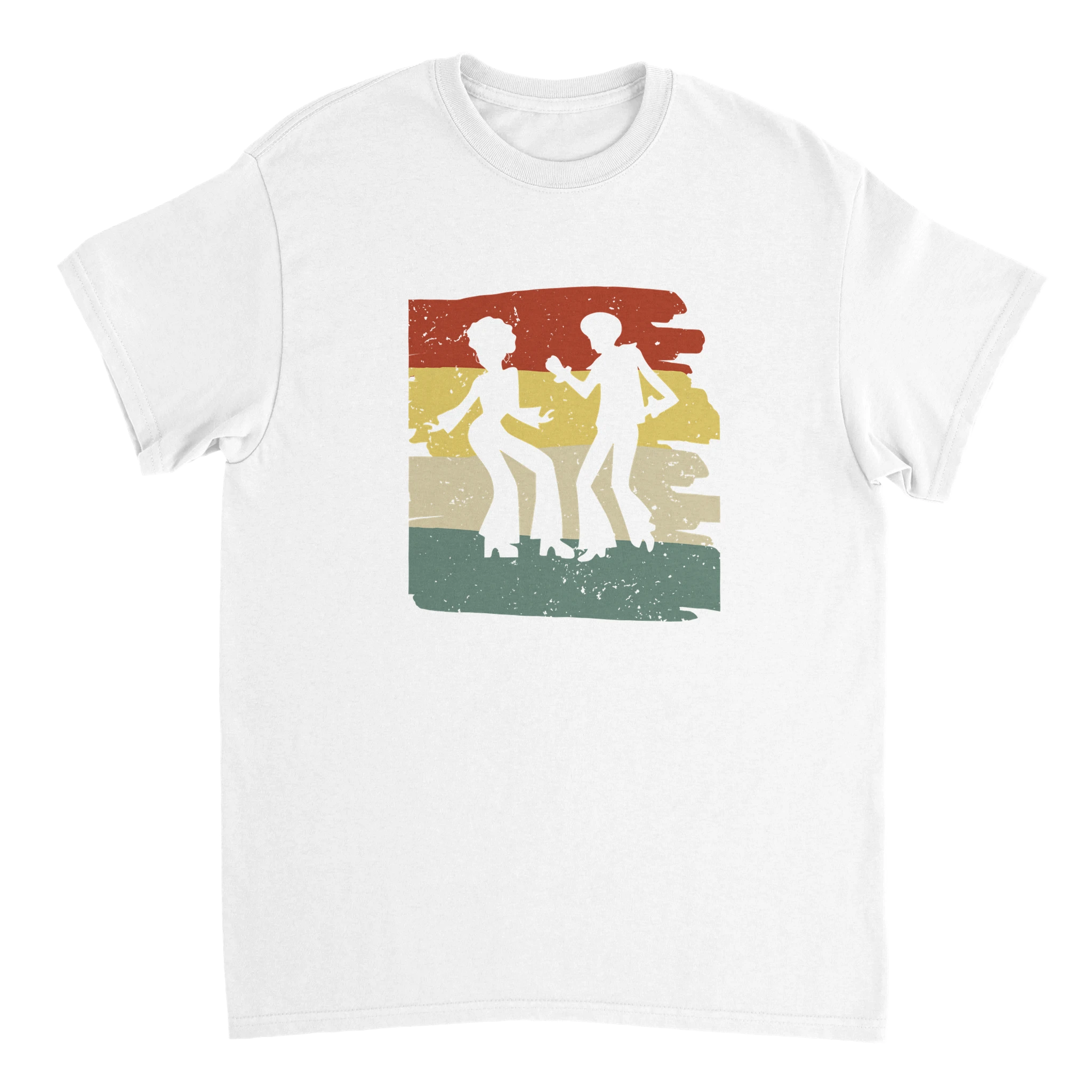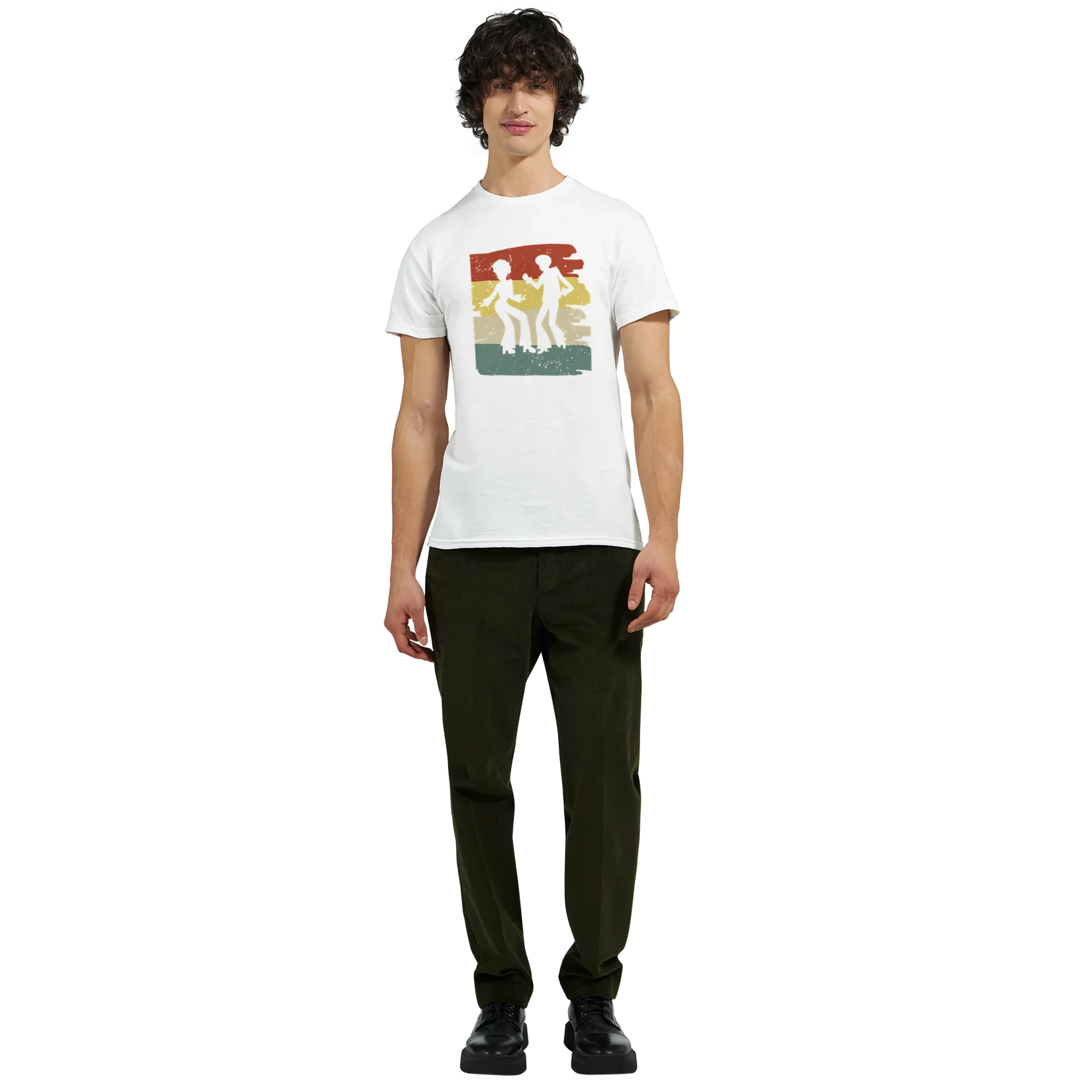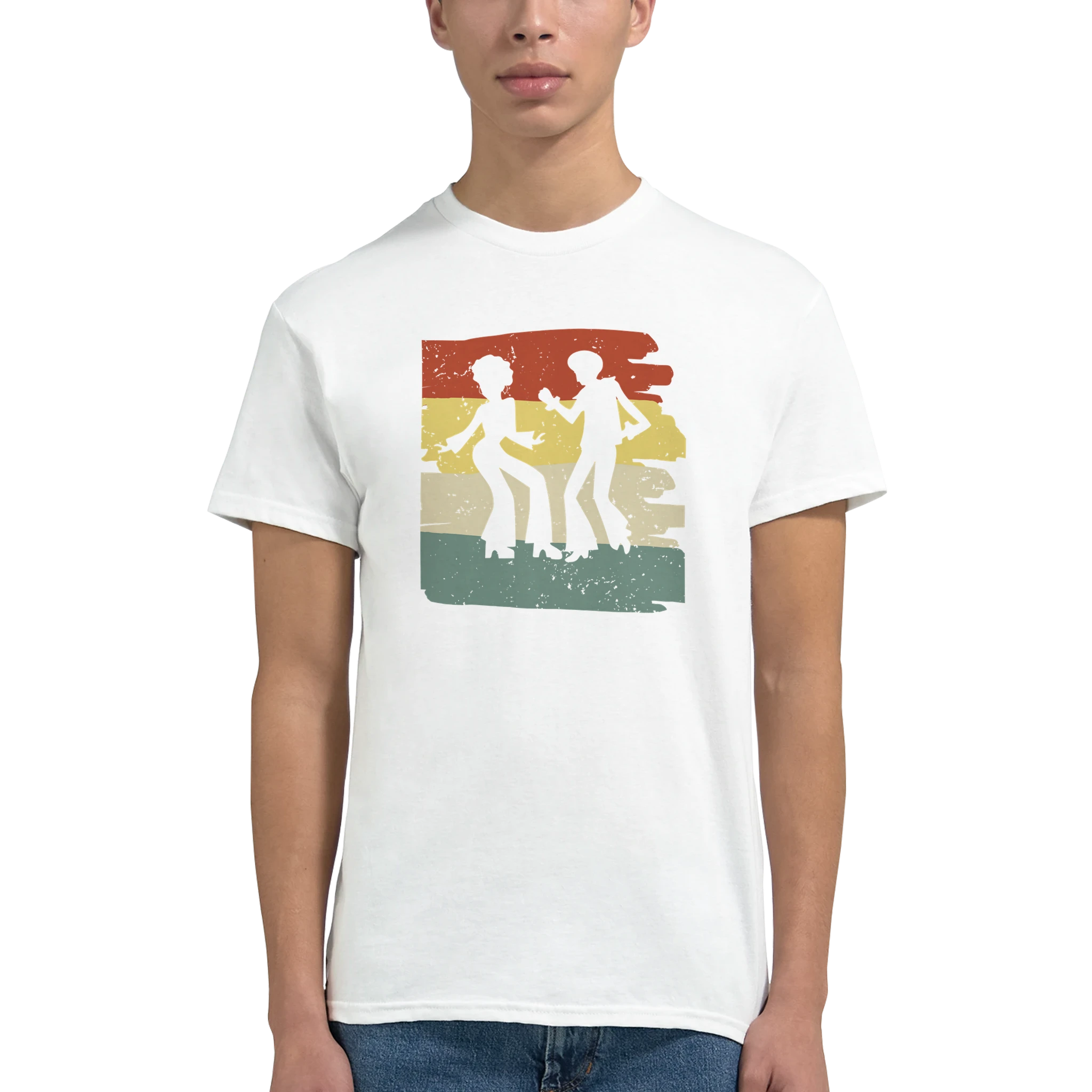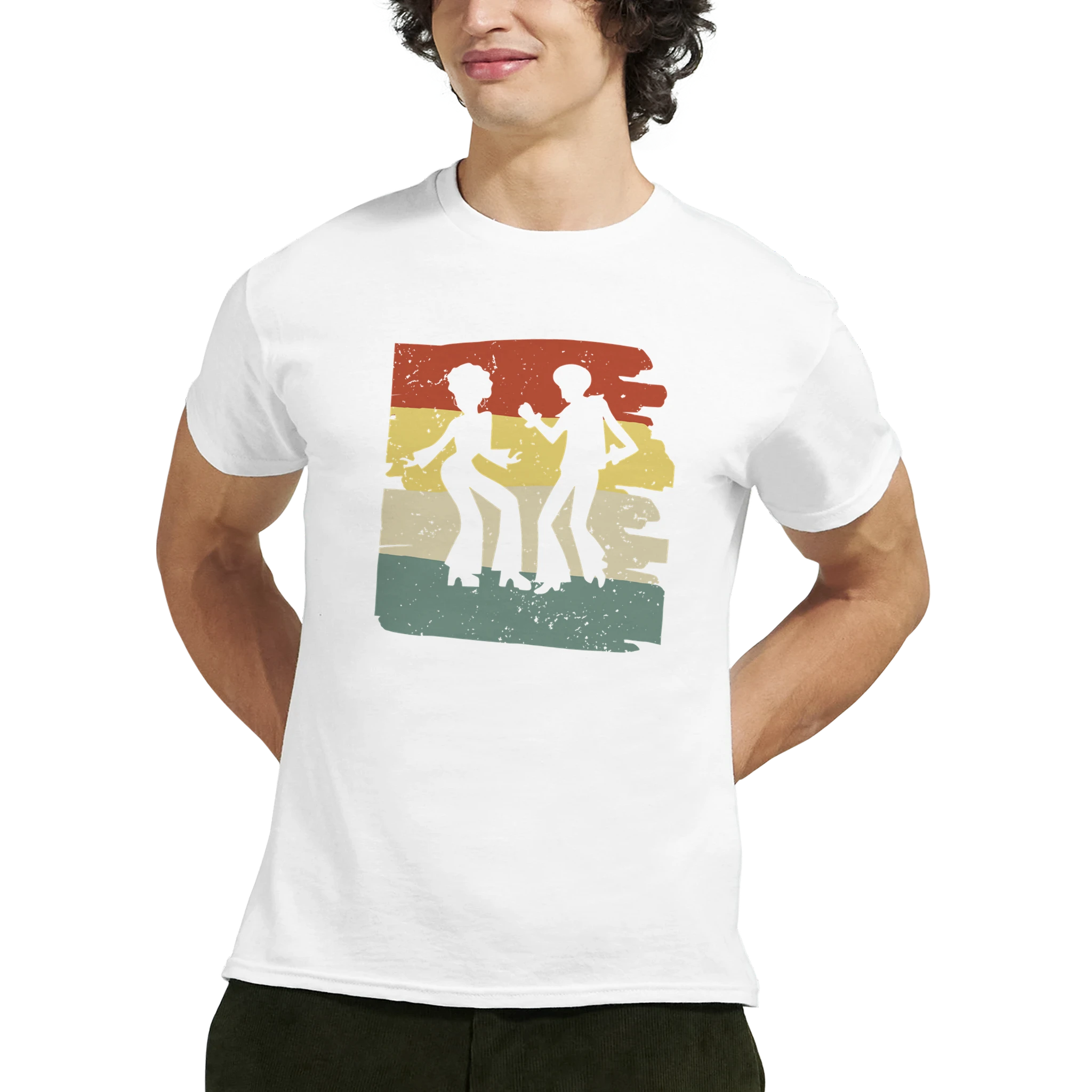 Ta ett steg tillbaka i tiden och omfamna den oemotståndliga charmen från 70-talets discovibbar med vår Retro Disco Fever Bomulls-T-shirt. Med en lekfull design som fångar festens energi, komplett med en elegant färgpalett av brunt, gult och grönt, är denna t-shirt den perfekta hyllningen till en tidlös era. Den är inte bara en stilfull detalj, utan också ett bekvämt och hållbart plagg, skräddarsytt för att hålla jämna steg med din rytm, oavsett om du är på dansgolvet eller bara njuter av en avslappnad dag.