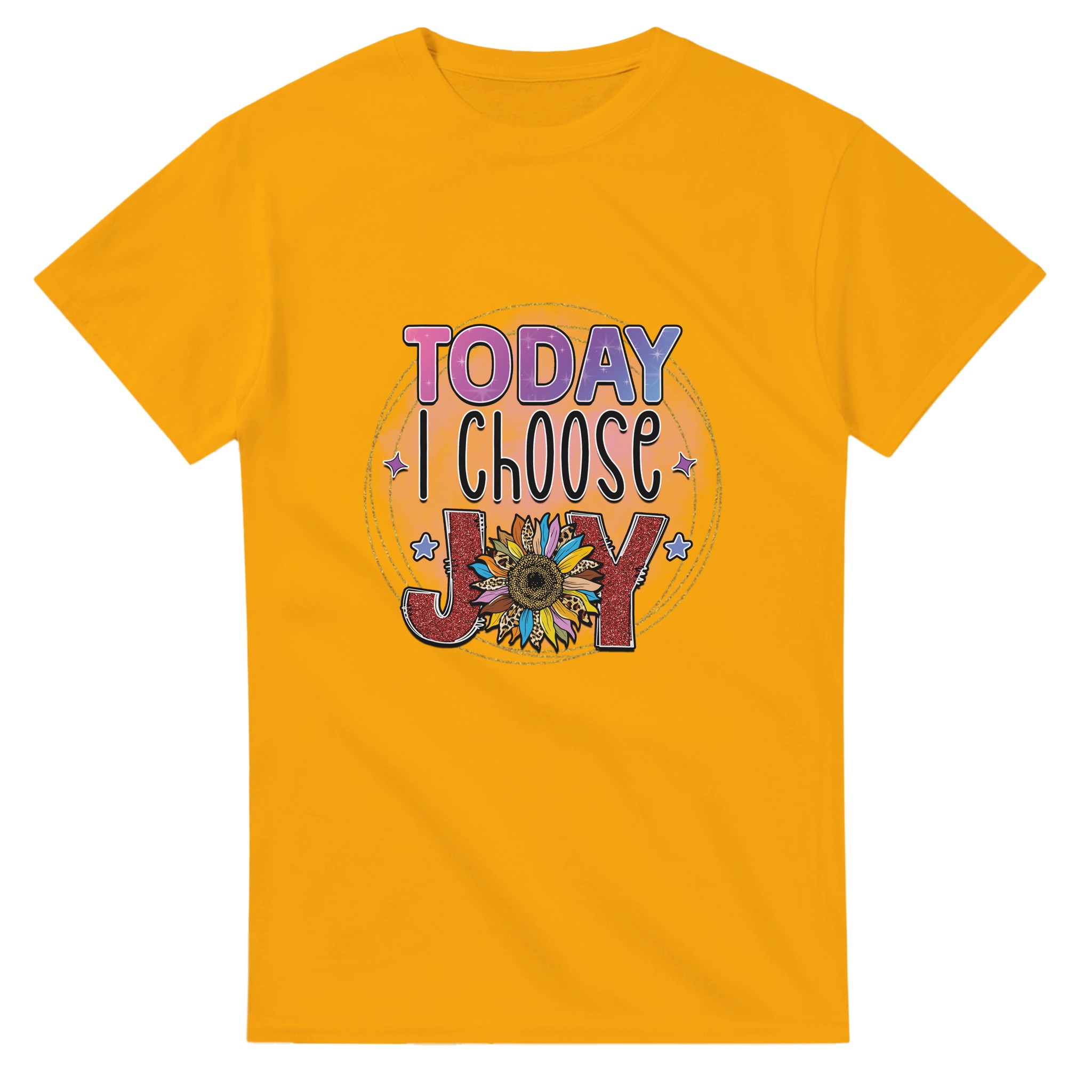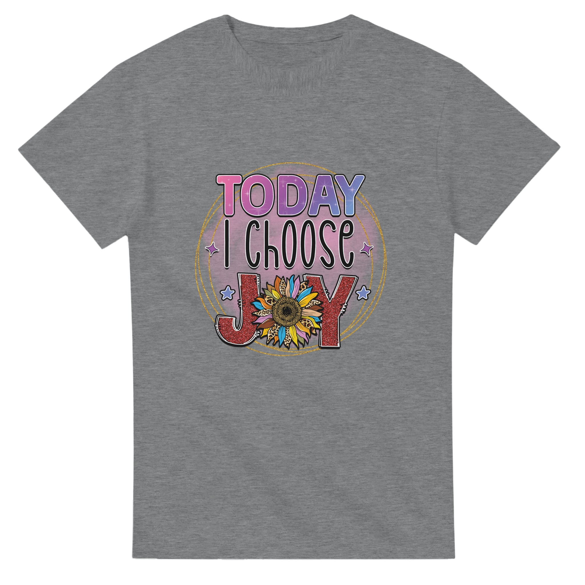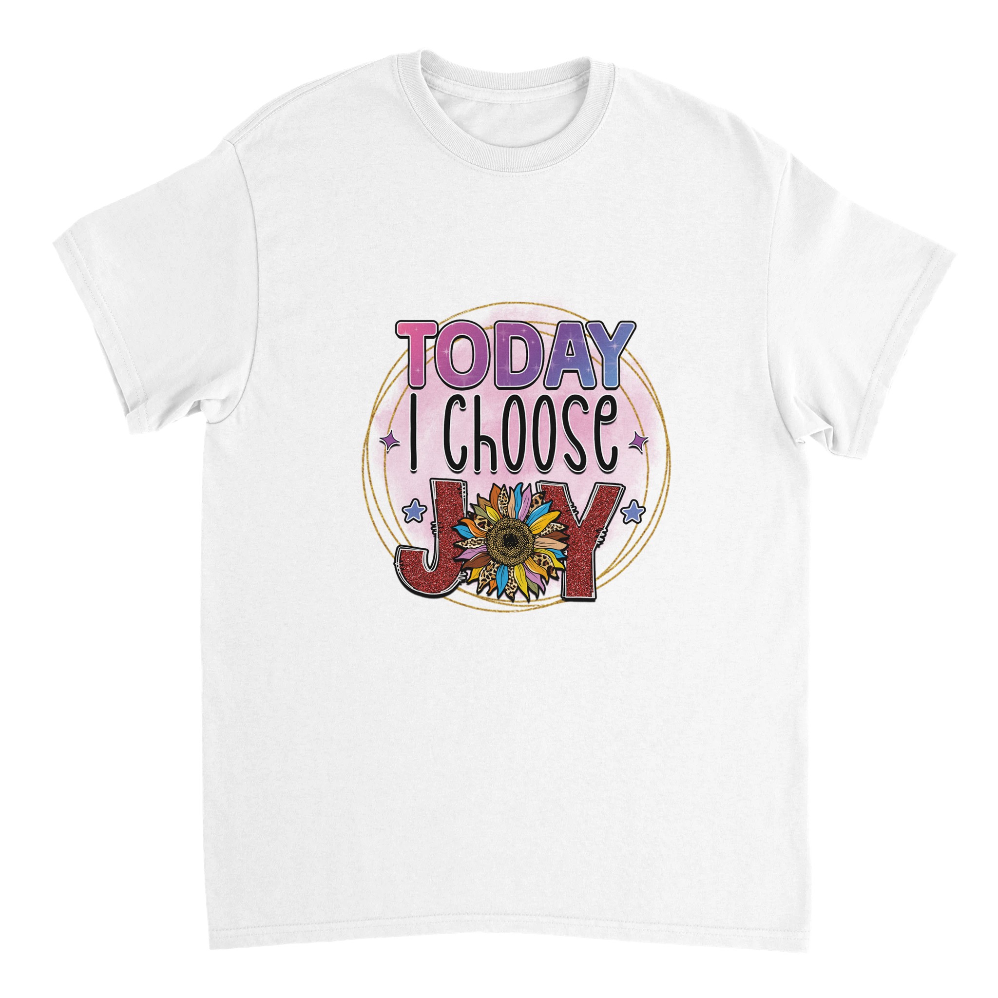Sprid positivitet och fira glädjen med vår ”Today I Choose Joy” T-shirt! Med en lekfull och upplyftande design, prydd med en glittrig solros och djärva texturer, är denna t-shirt mer än bara ett plagg – den är en påminnelse om att varje dag är en möjlighet att välja glädje. Perfekt för den som vill uttrycka sin sprudlande personlighet och inspirera andra med en färgstark, feel-good-stil. Tillverkad för att vara lika bekväm som den är inspirerande, kommer denna t-shirt att bli en favorit i din garderob.