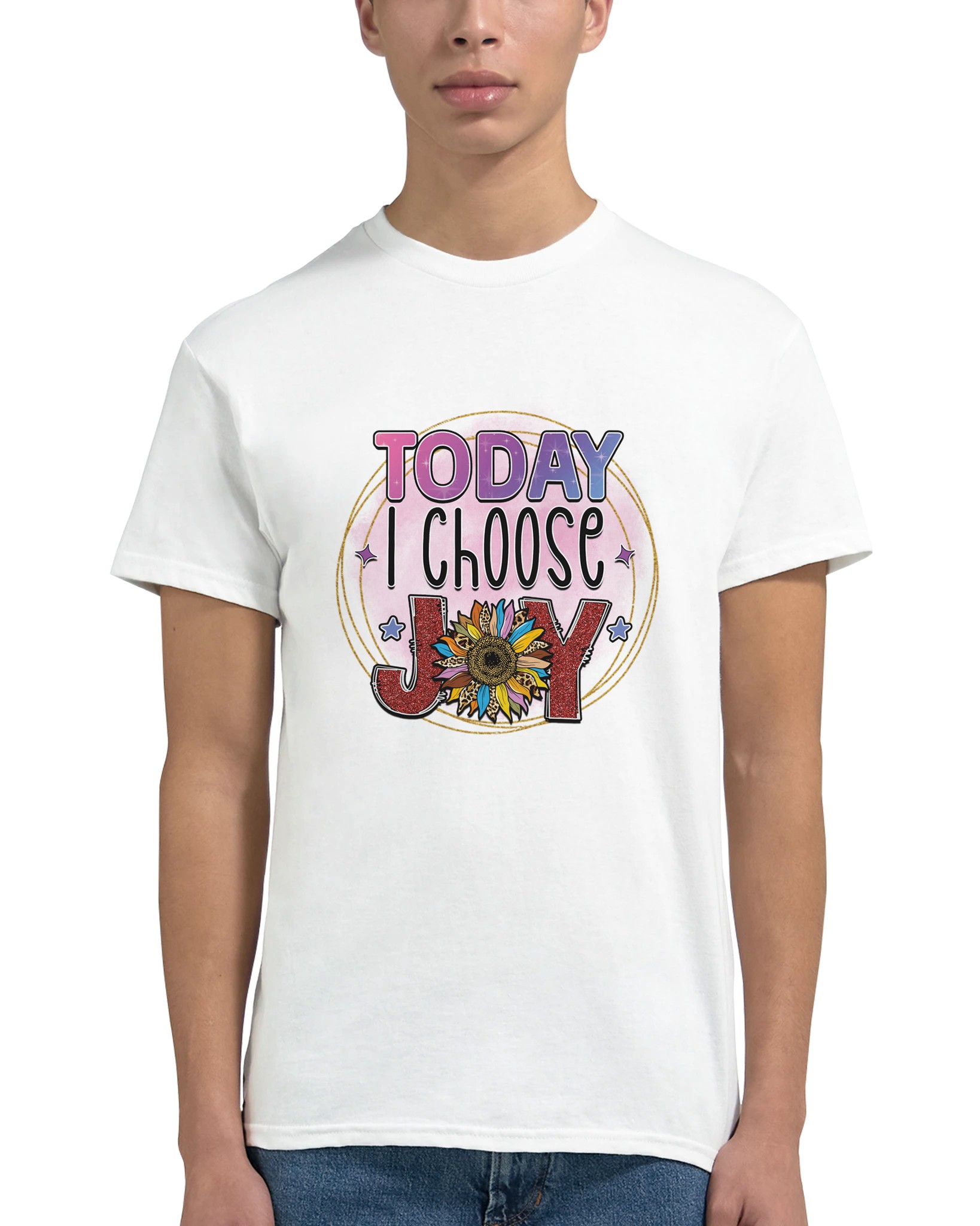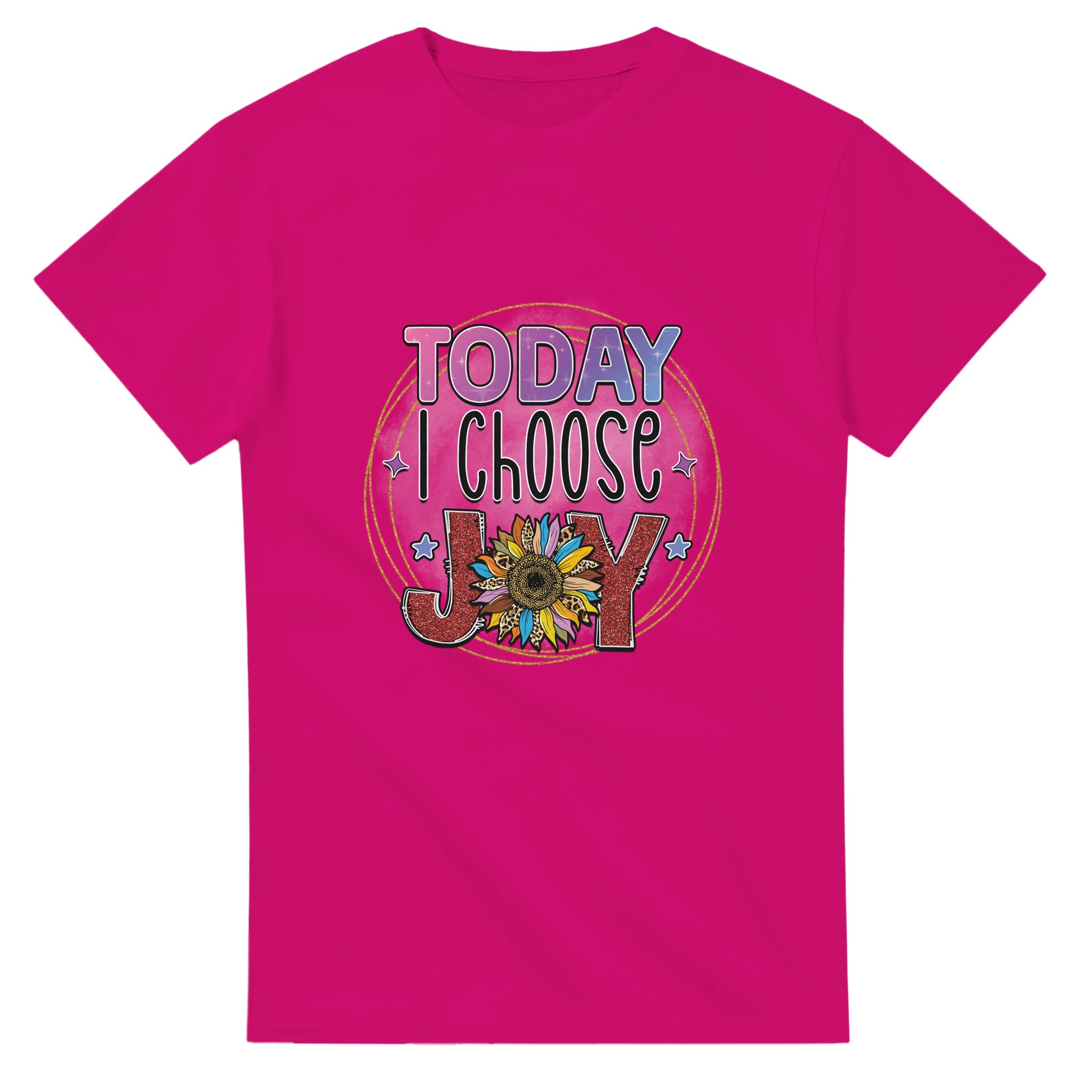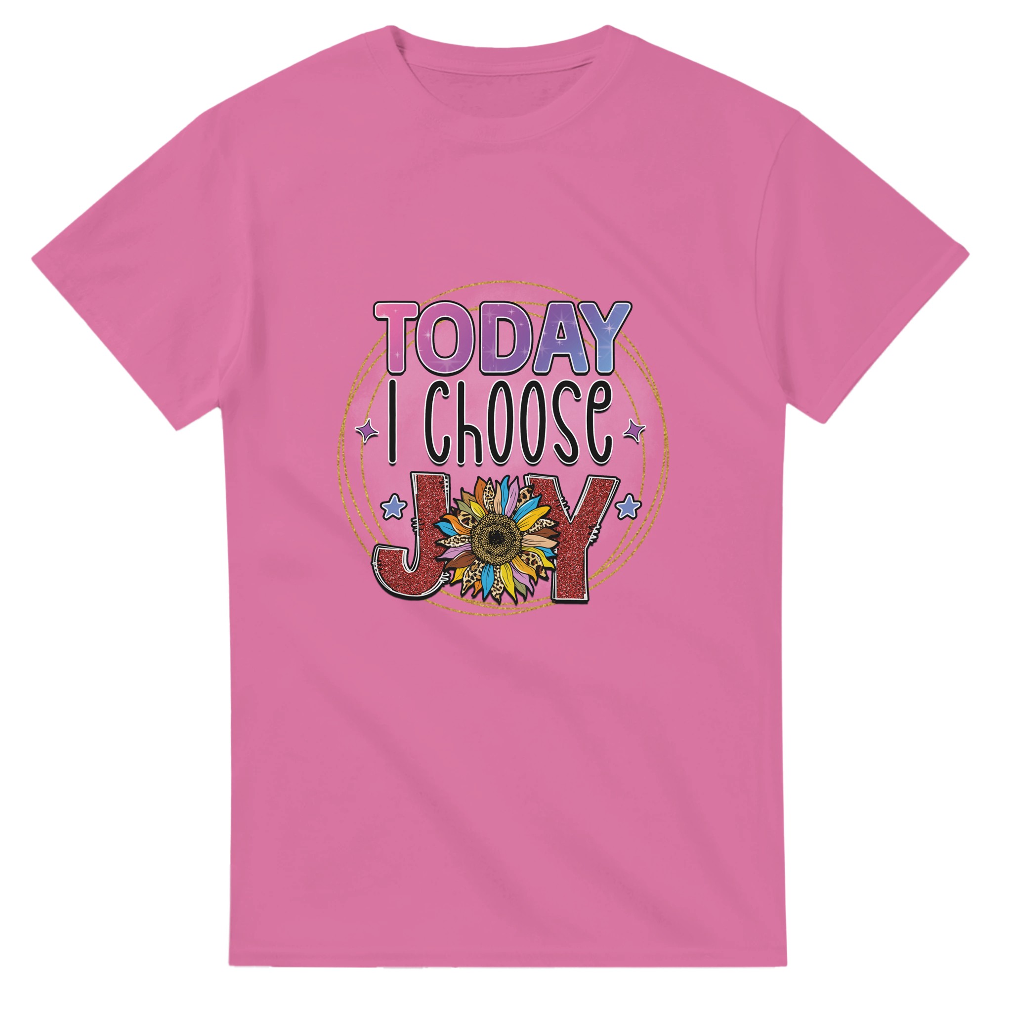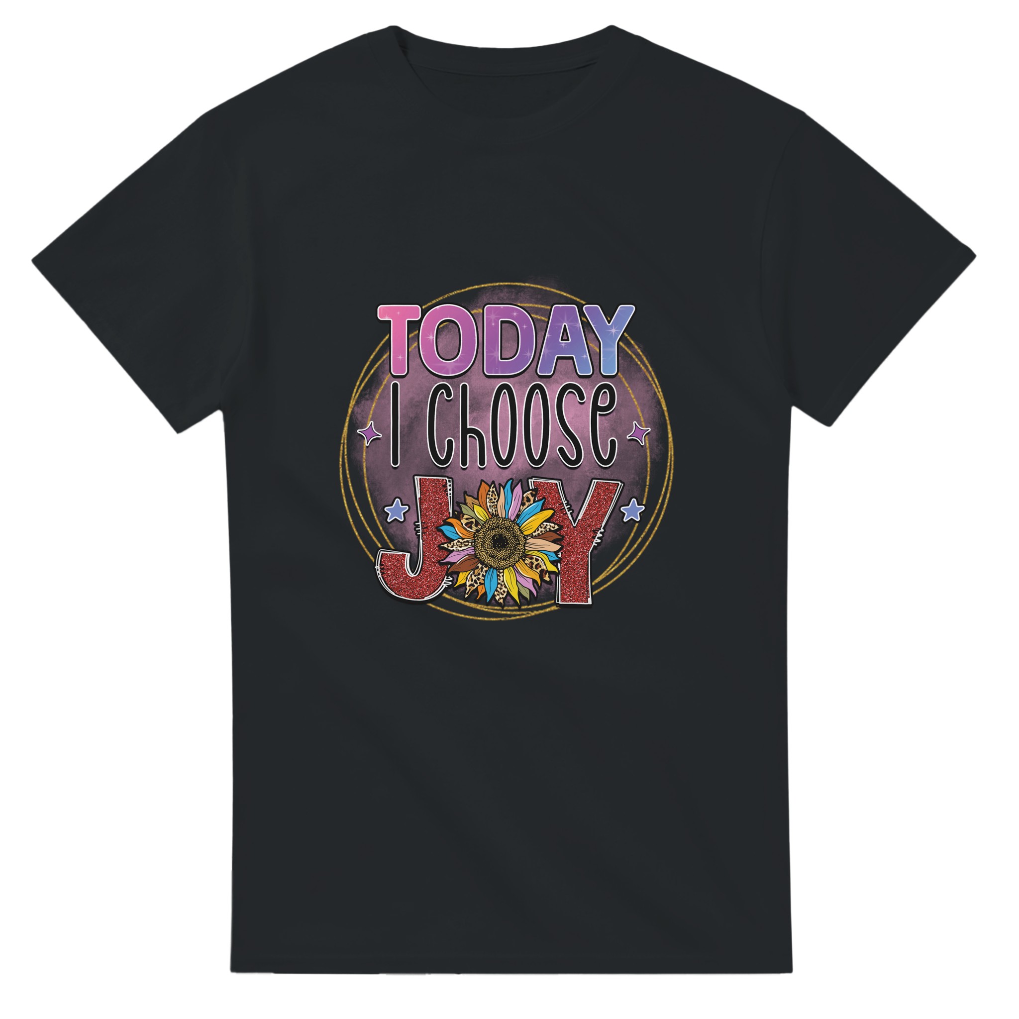 Sprid positivitet och fira glädjen med vår ”Today I Choose Joy” T-shirt! Med en lekfull och upplyftande design, prydd med en glittrig solros och djärva texturer, är denna t-shirt mer än bara ett plagg – den är en påminnelse om att varje dag är en möjlighet att välja glädje. Perfekt för den som vill uttrycka sin sprudlande personlighet och inspirera andra med en färgstark, feel-good-stil. Tillverkad för att vara lika bekväm som den är inspirerande, kommer denna t-shirt att bli en favorit i din garderob.