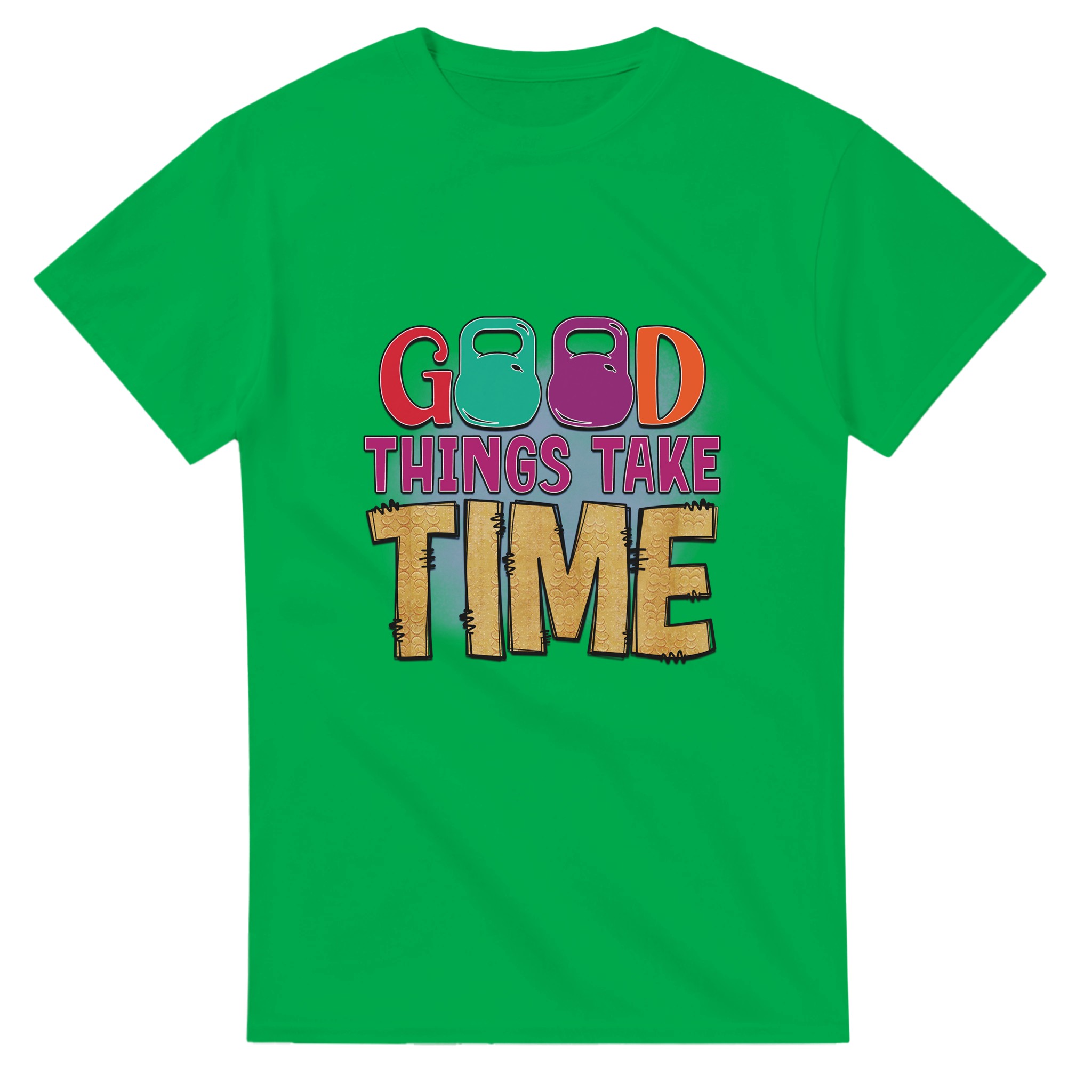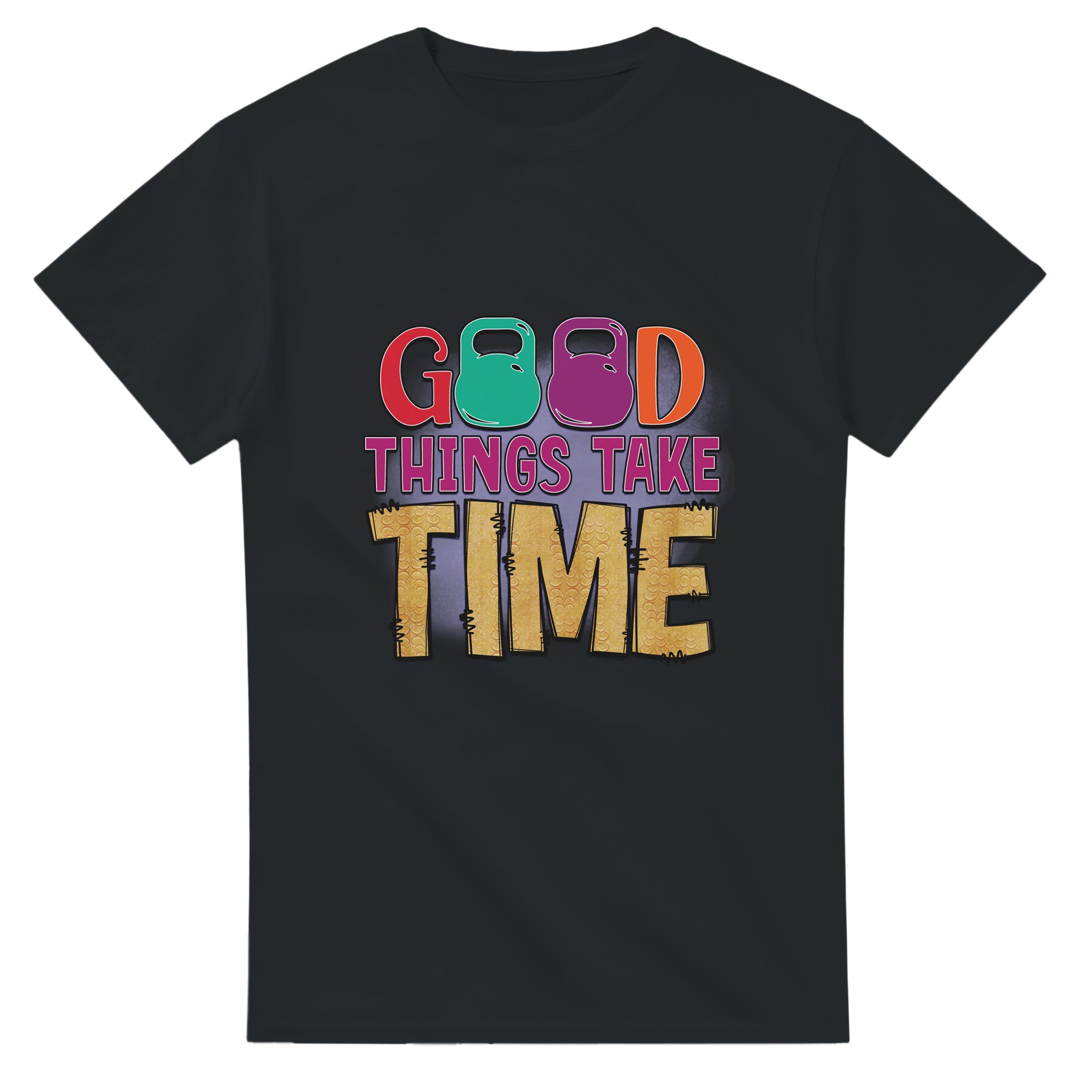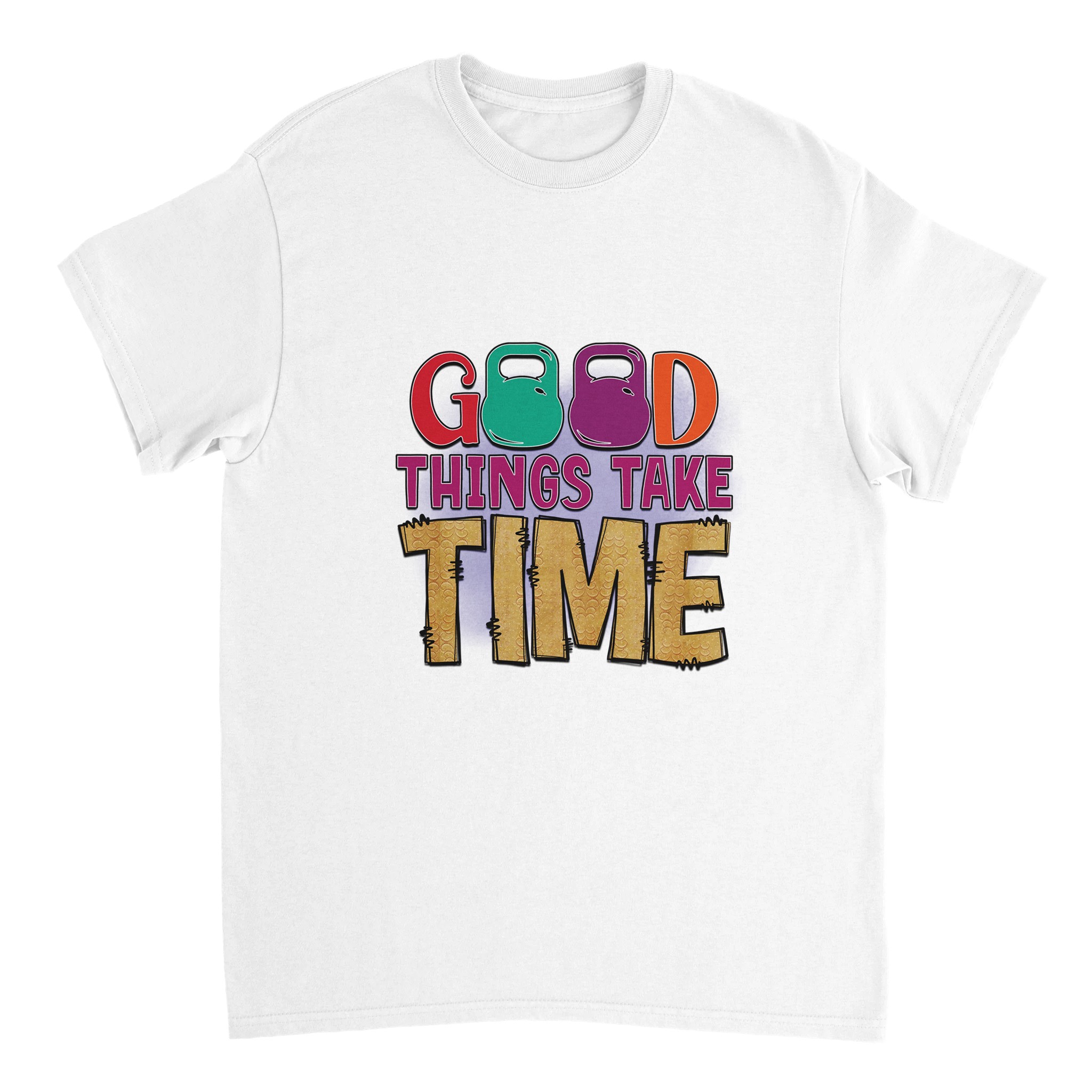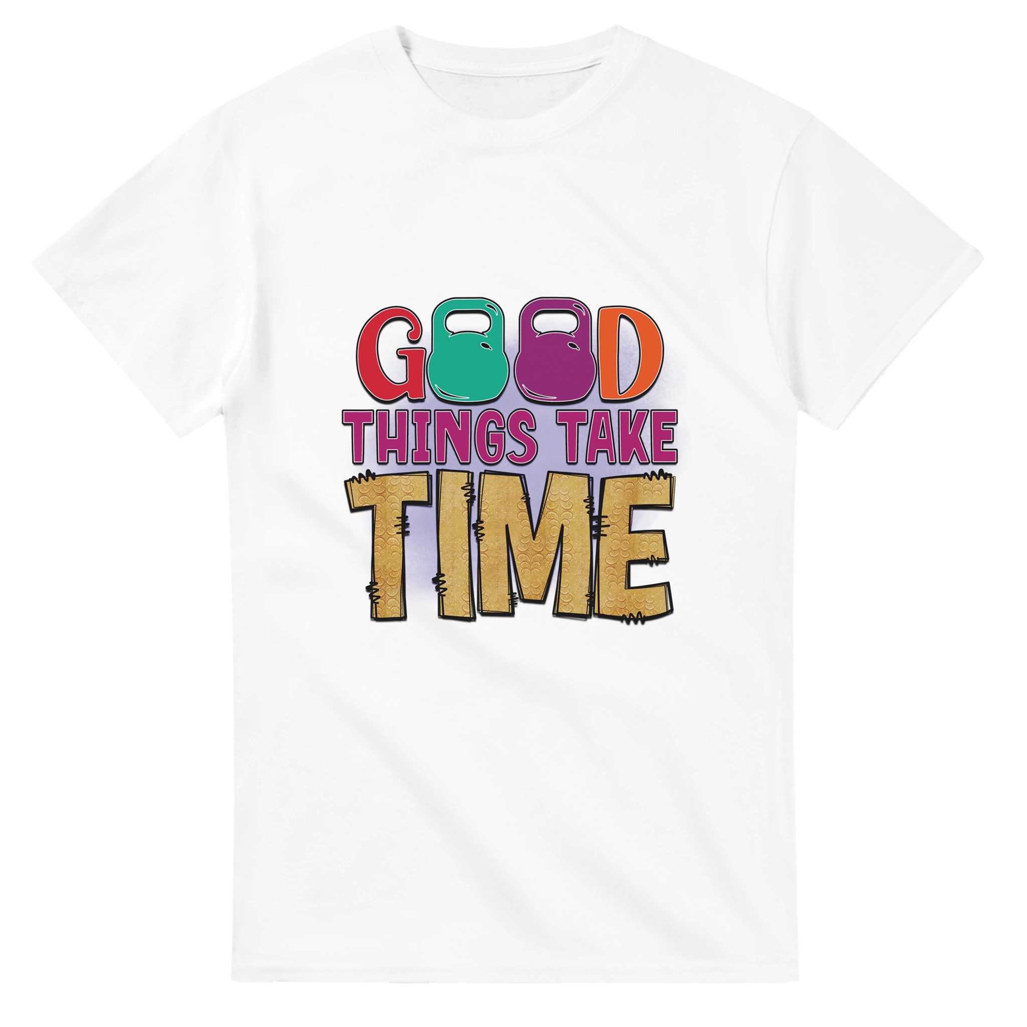 “Good Things Take Time” Motivation T-shirt – Slitstark Unisex Design i Härliga Färger