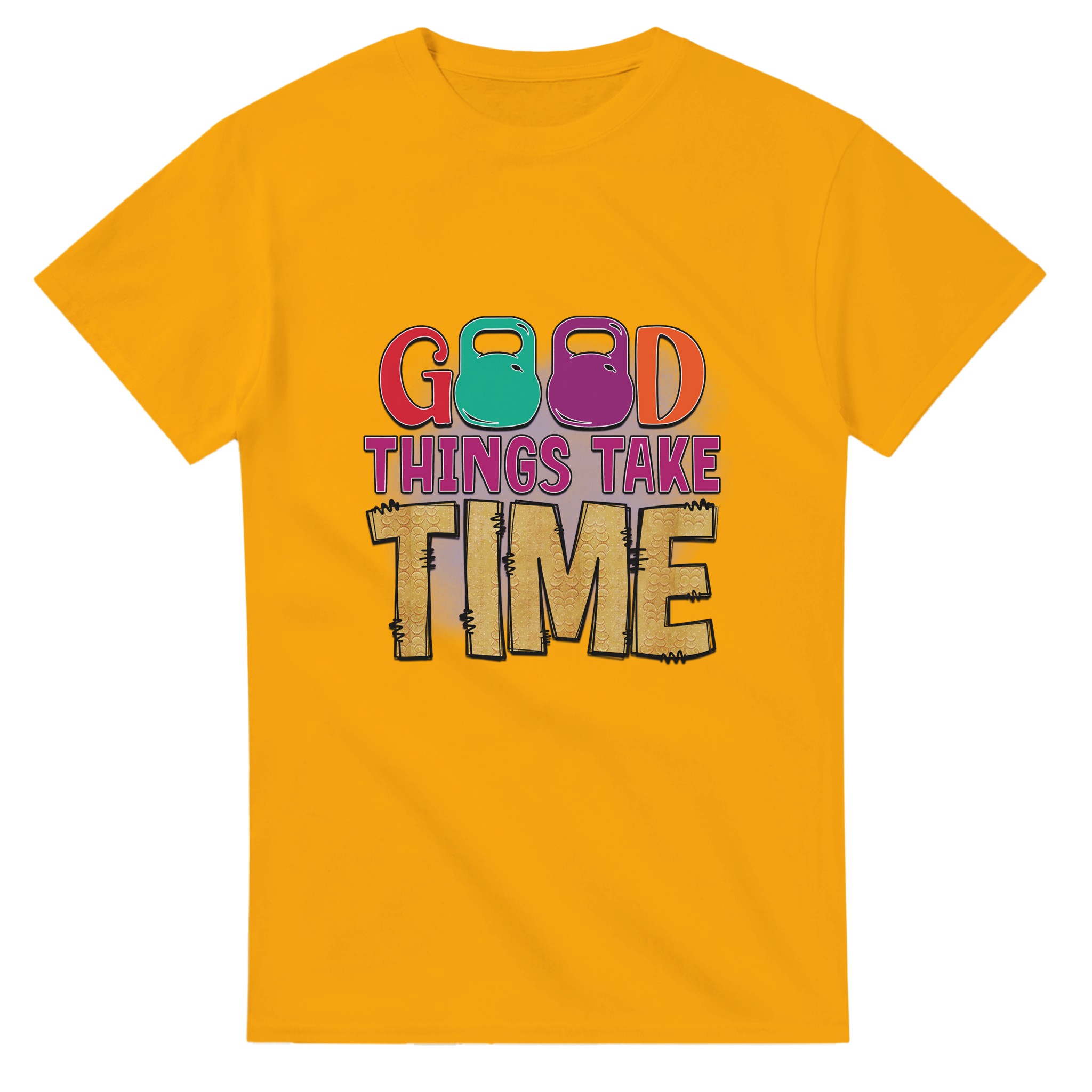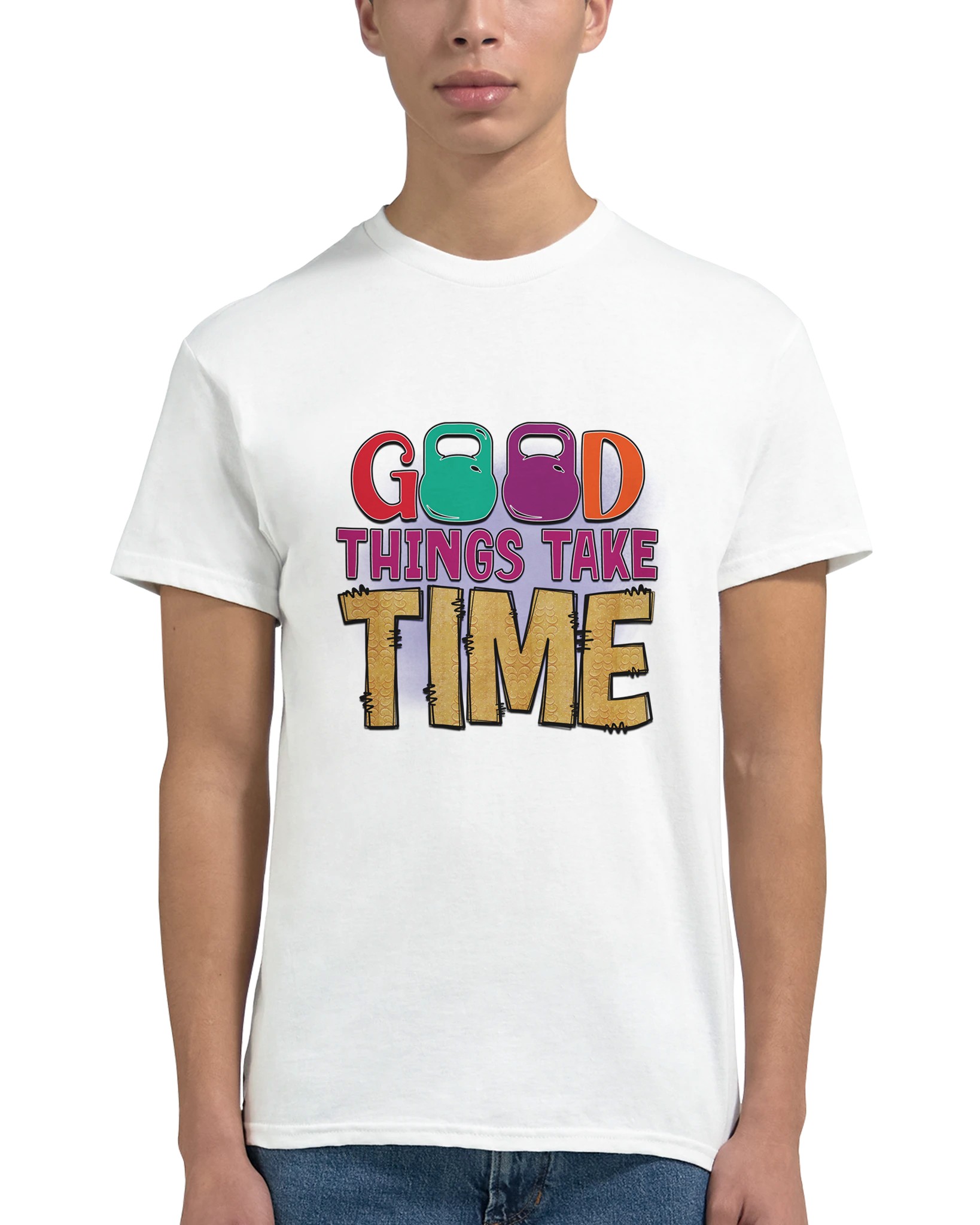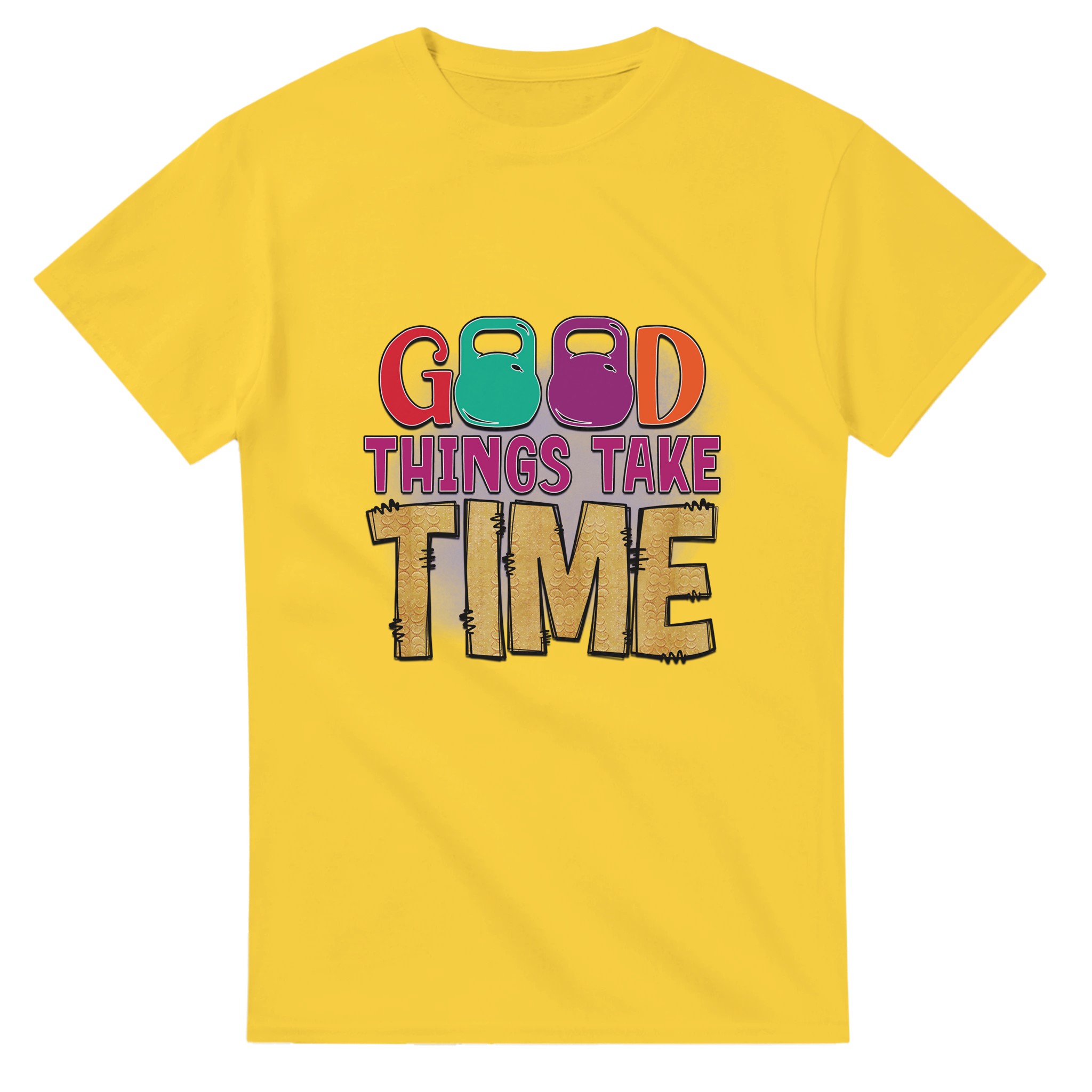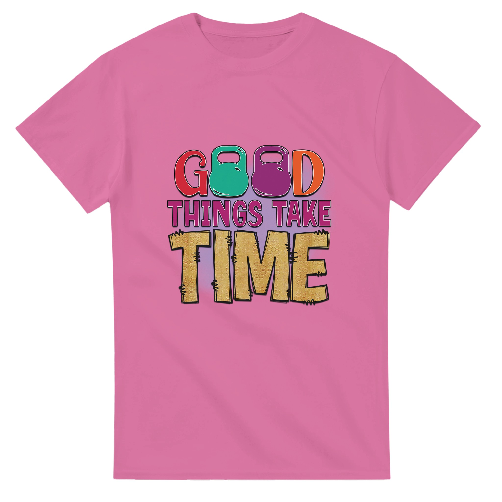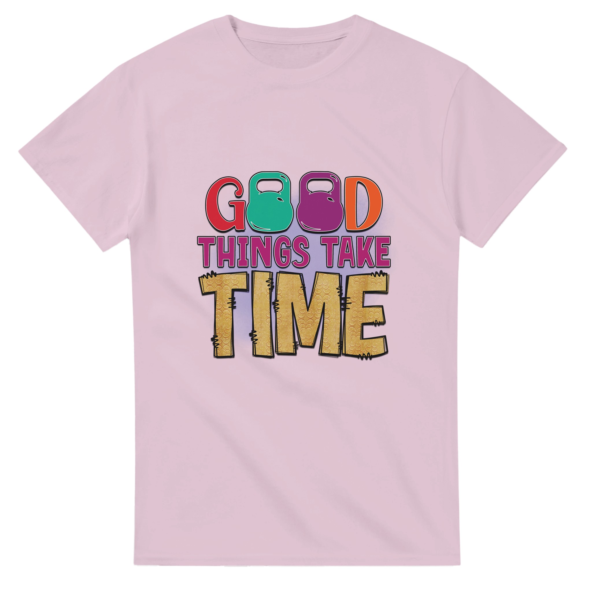“Good Things Take Time” Motivation T-shirt – Slitstark Unisex Design i Härliga Färger