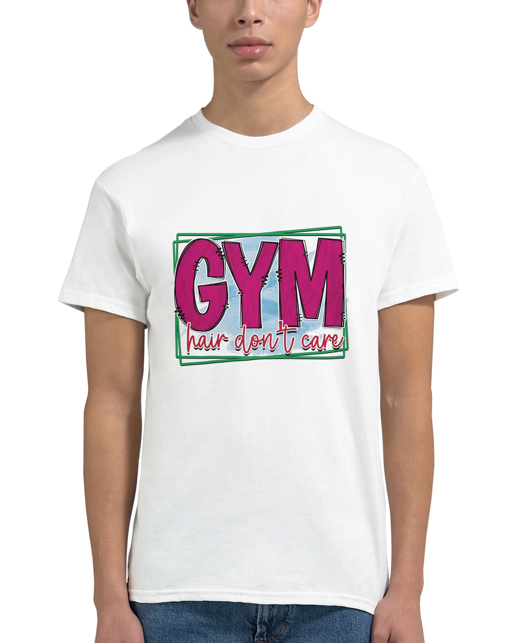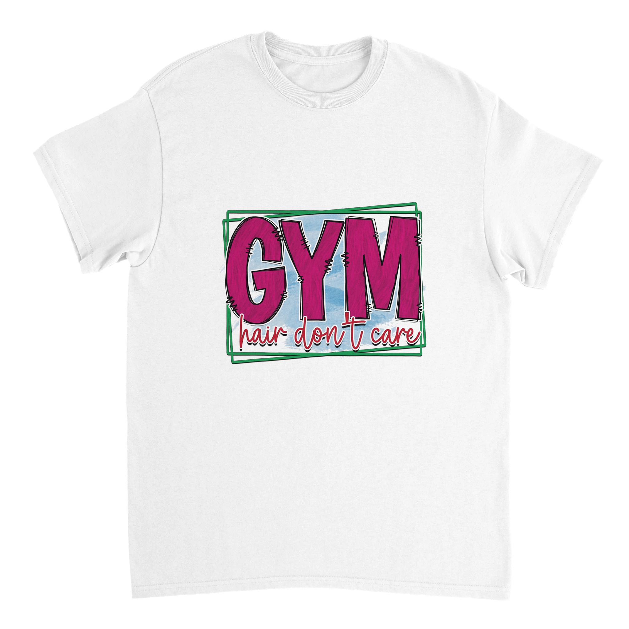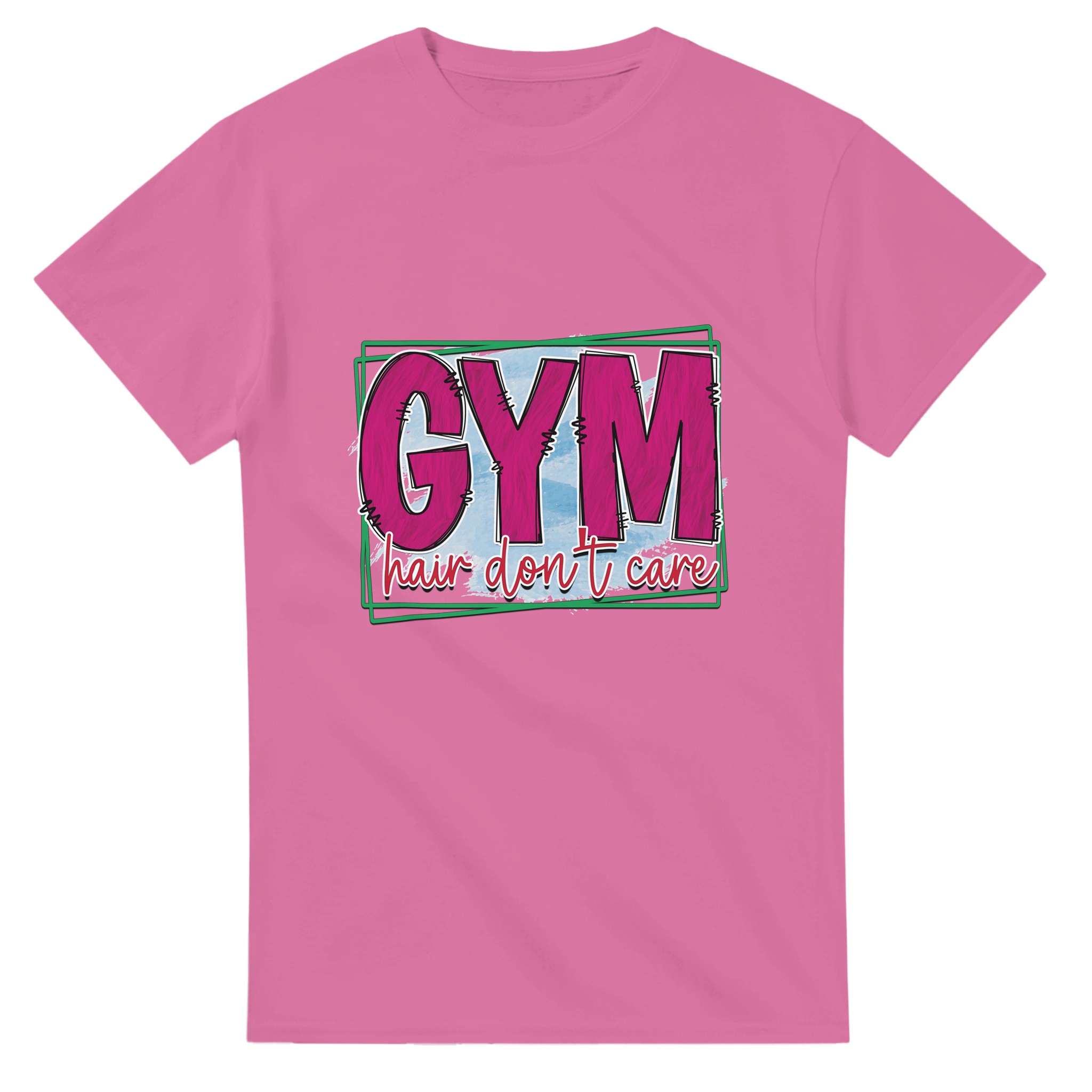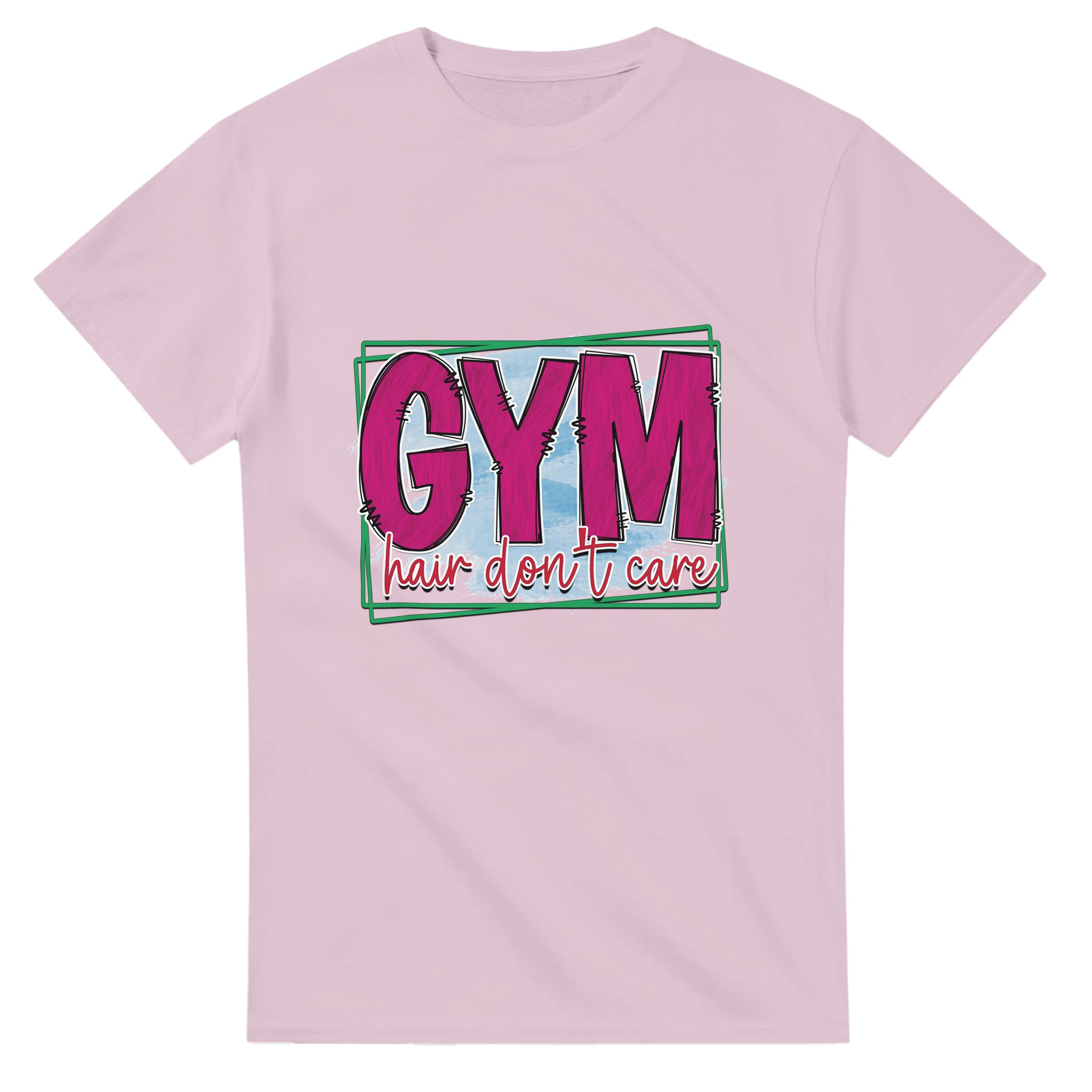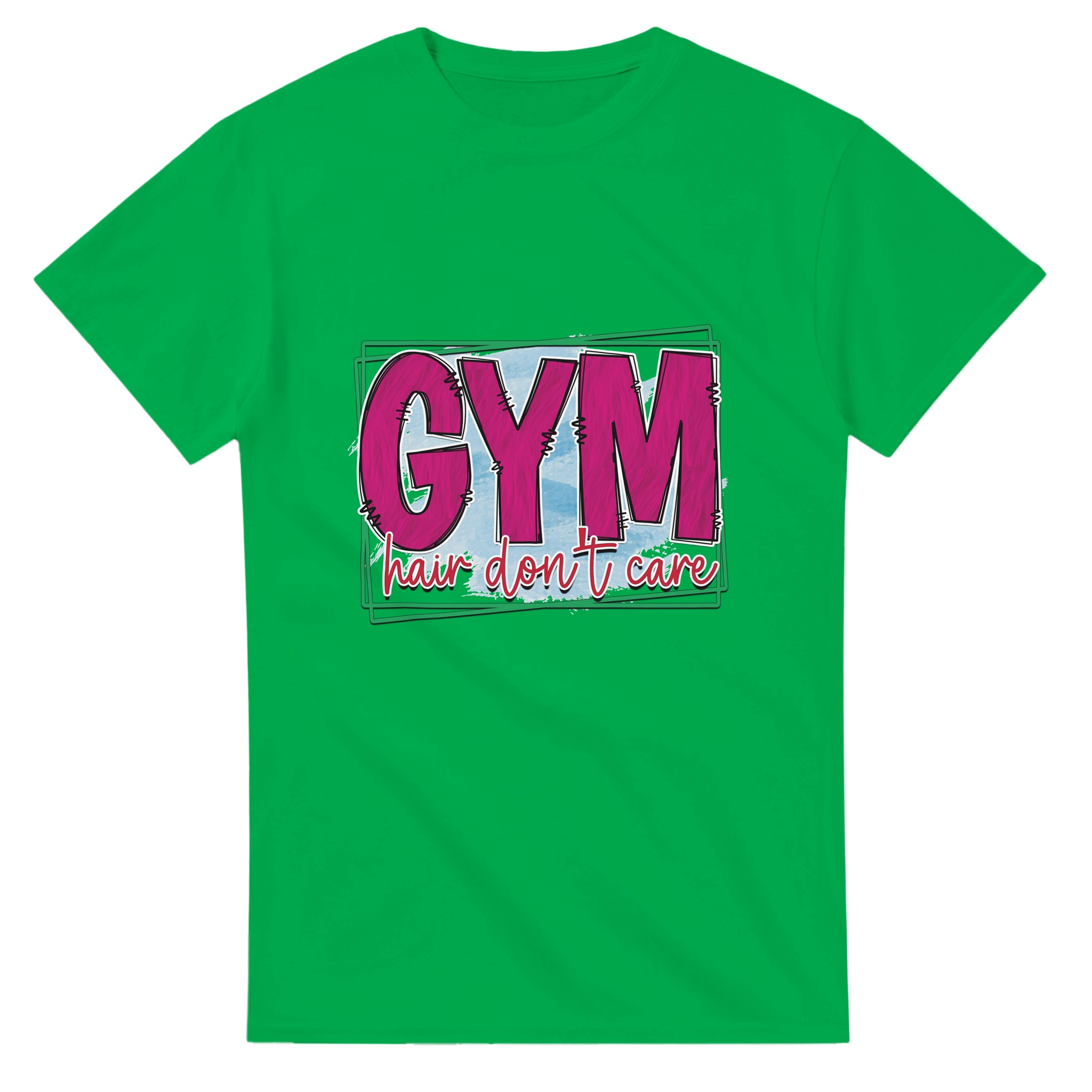 Gym Hair Don’t Care – Rosa & Grön Bomulls-T-shirt för Vardags- och Träning