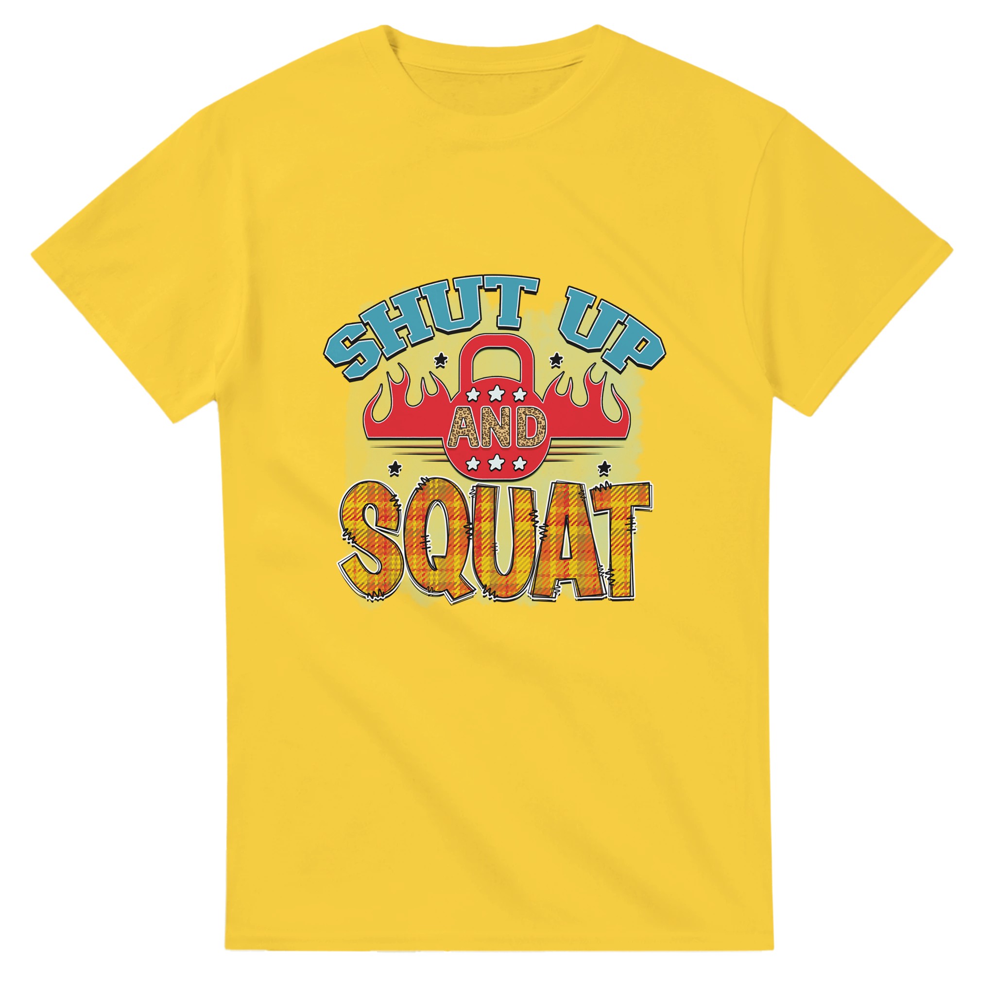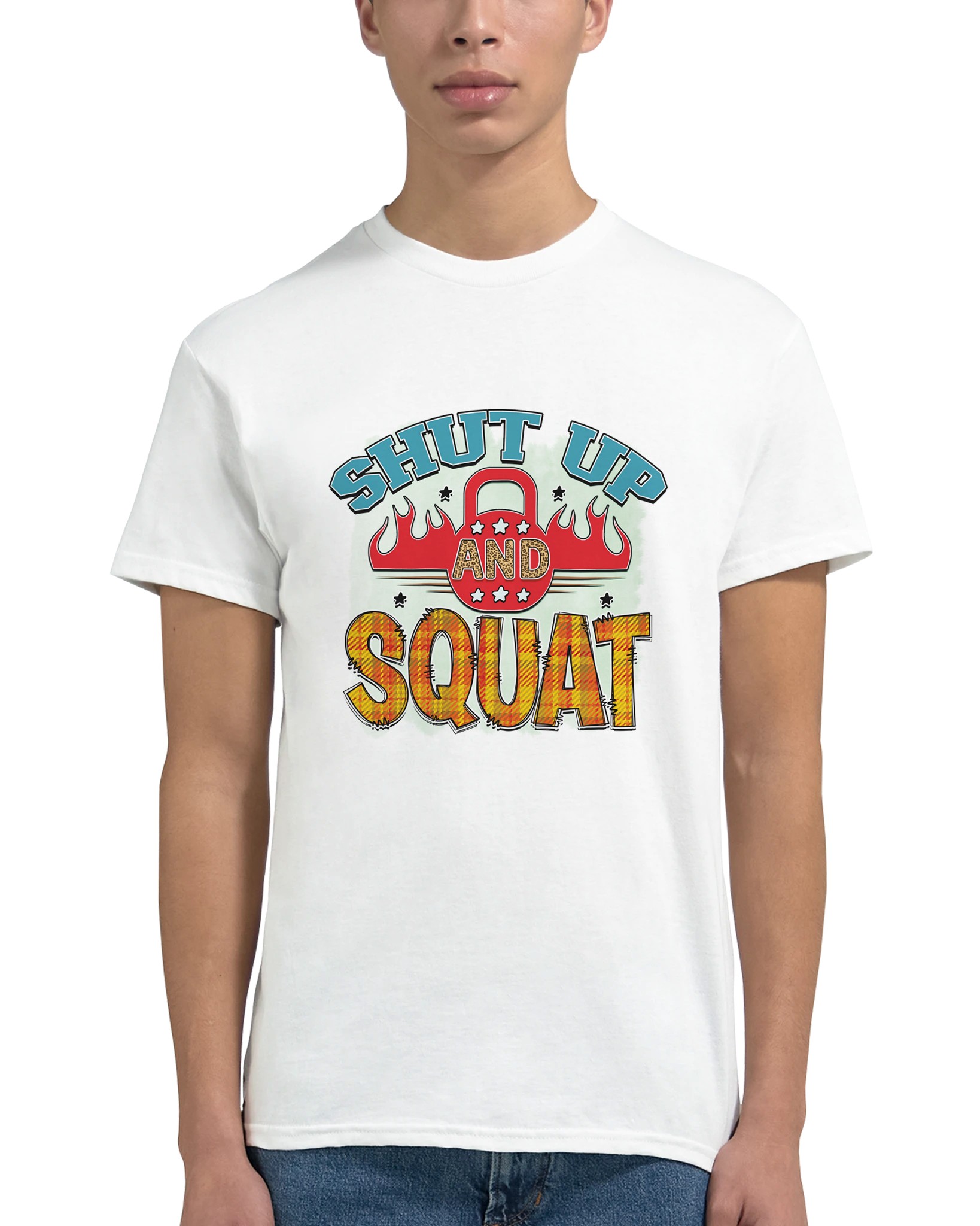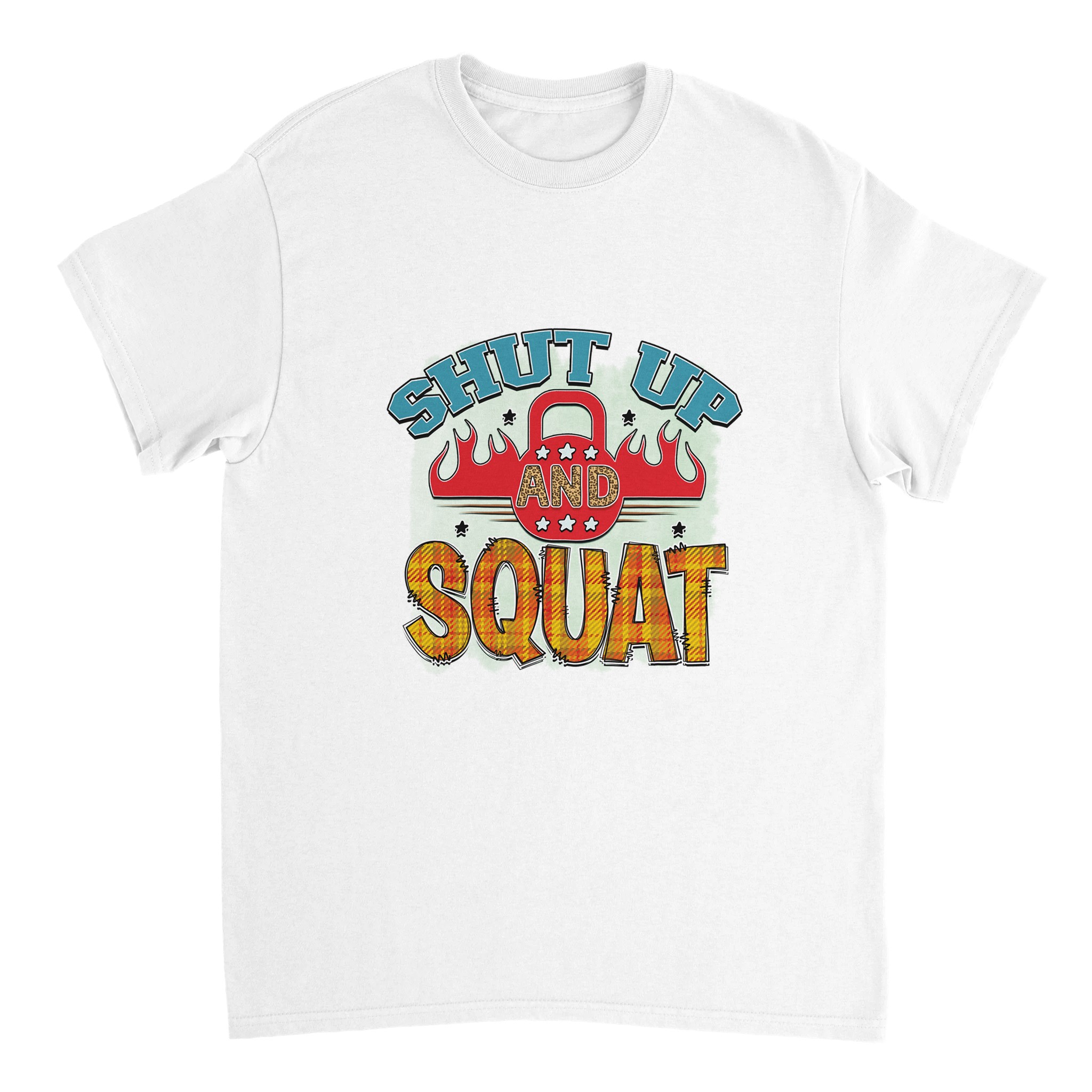 Shut Up And Squat T-Shirt – Motiverande Unisex Träningströja med Djärv Design