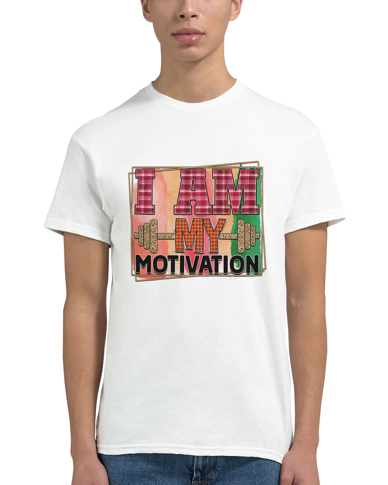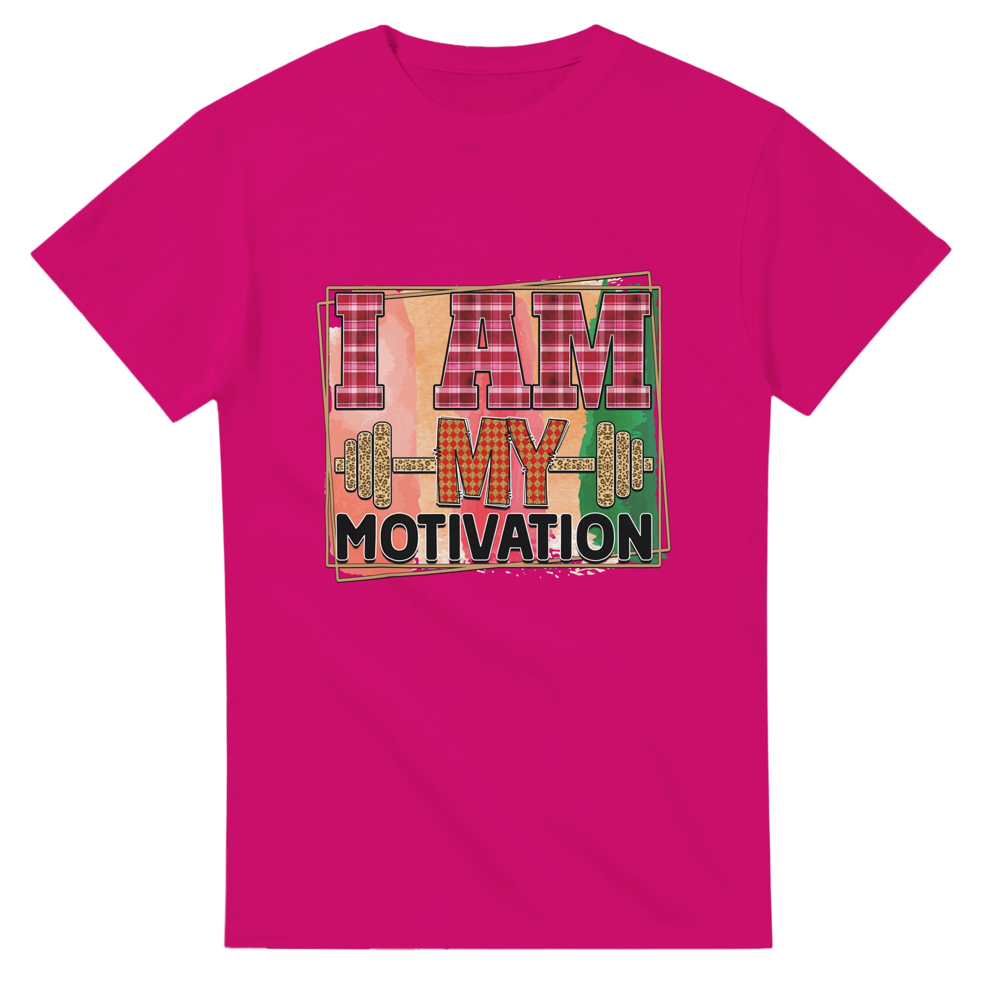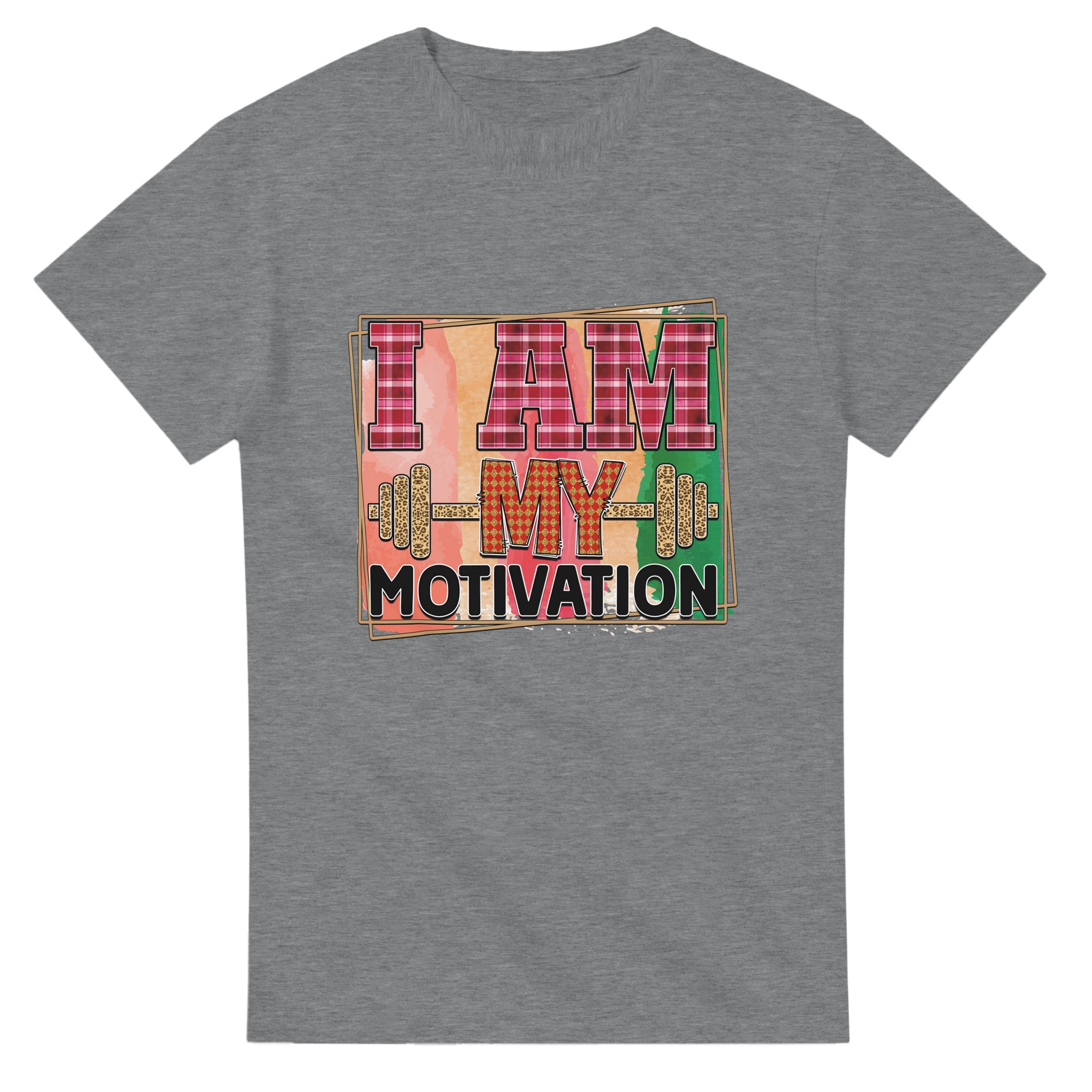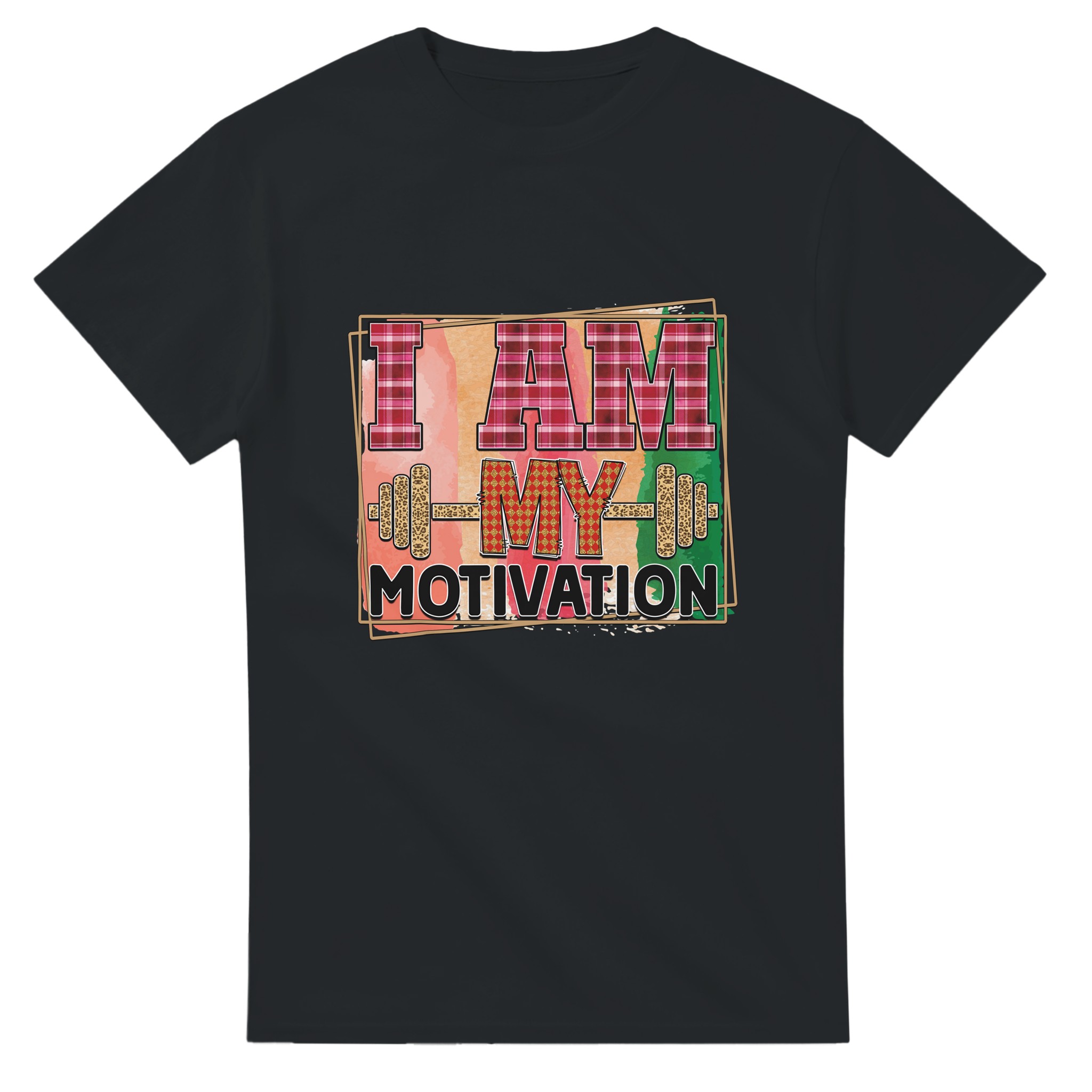 “I Am My Motivation” – Leopard & Plaid T-shirt för Träning och Vardagsbruk
