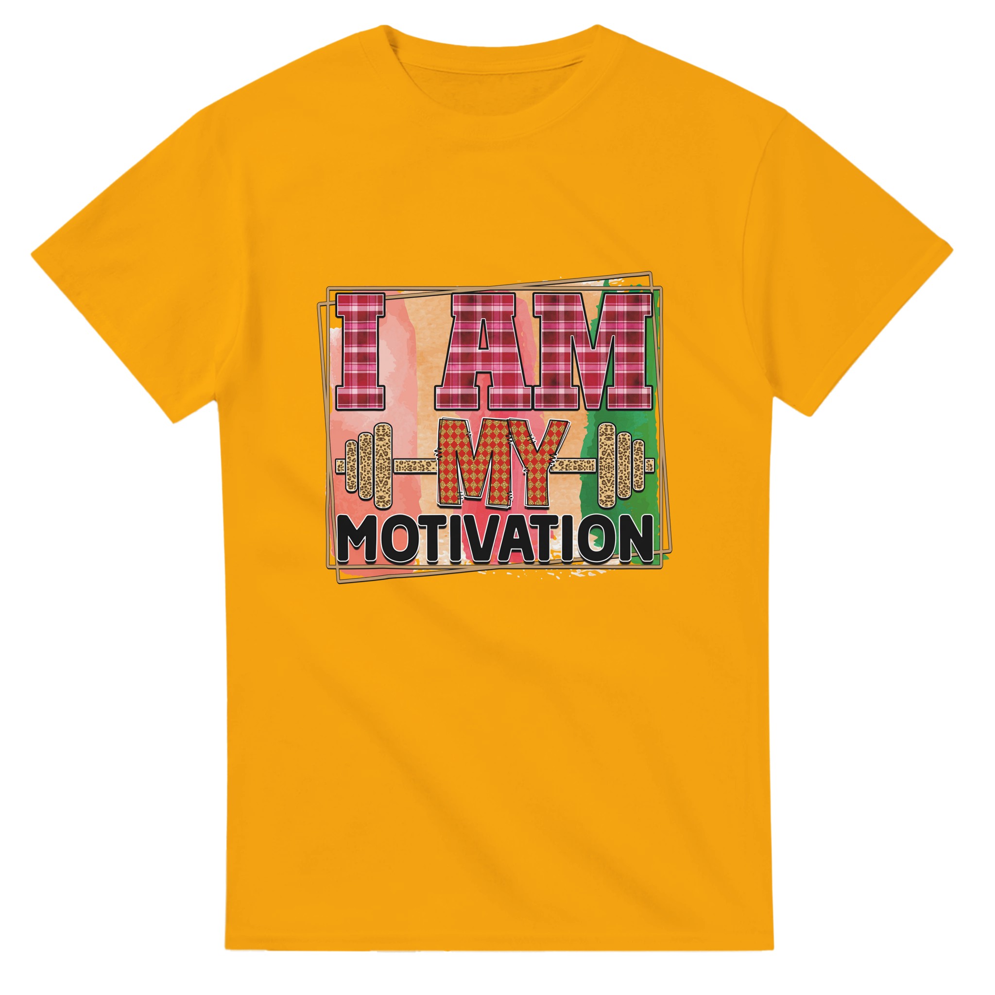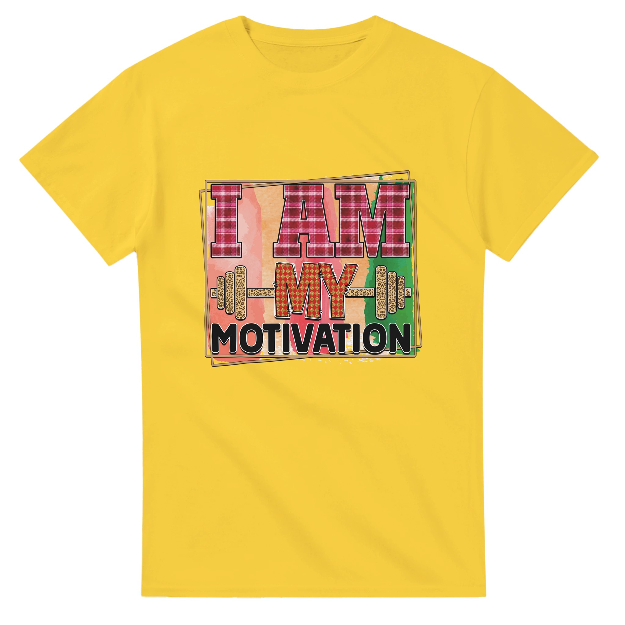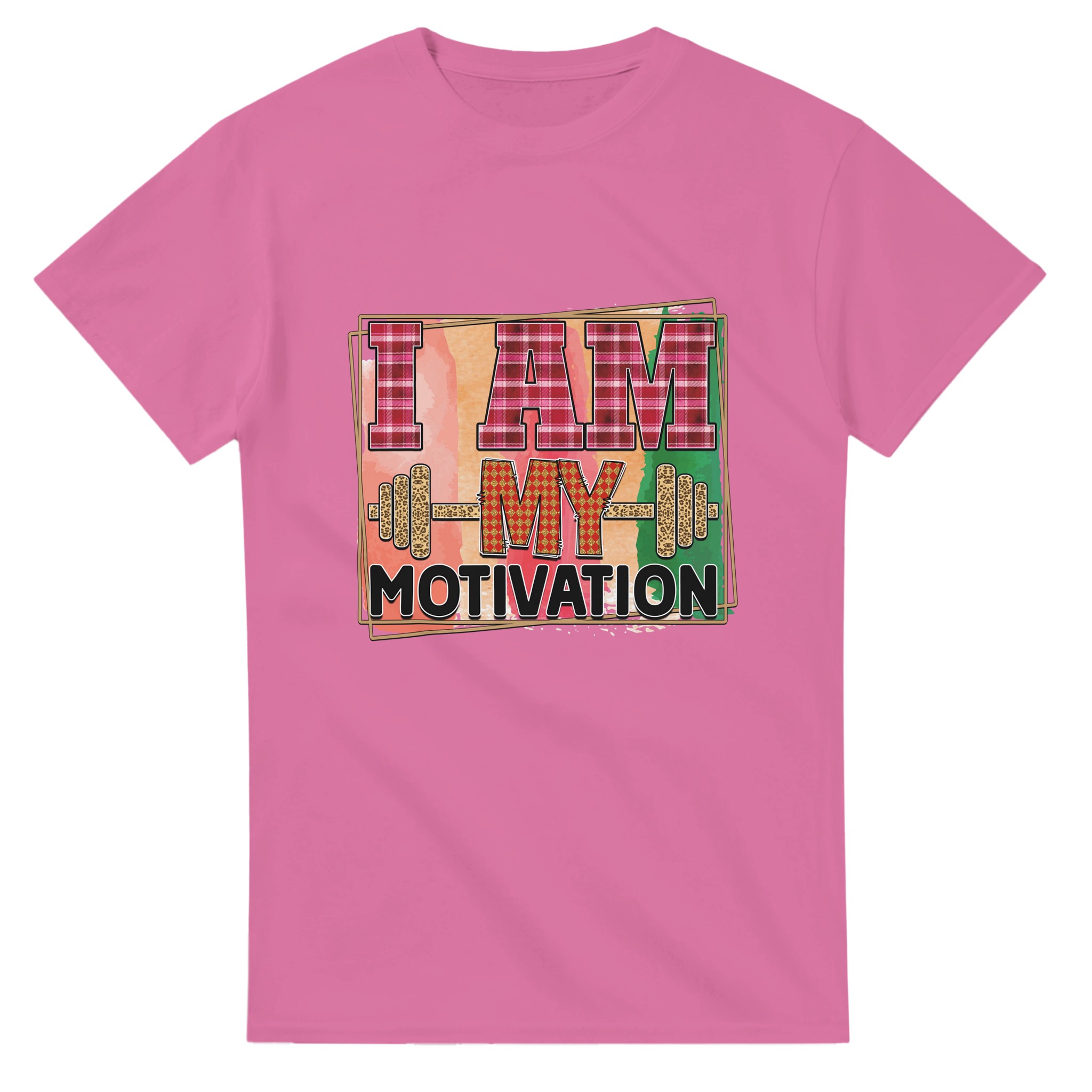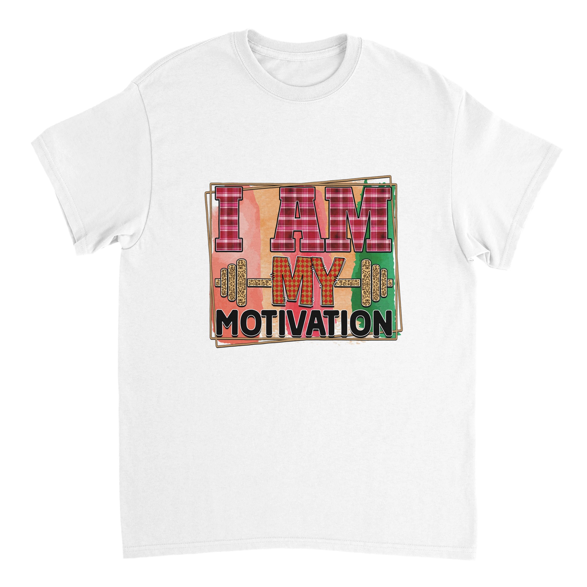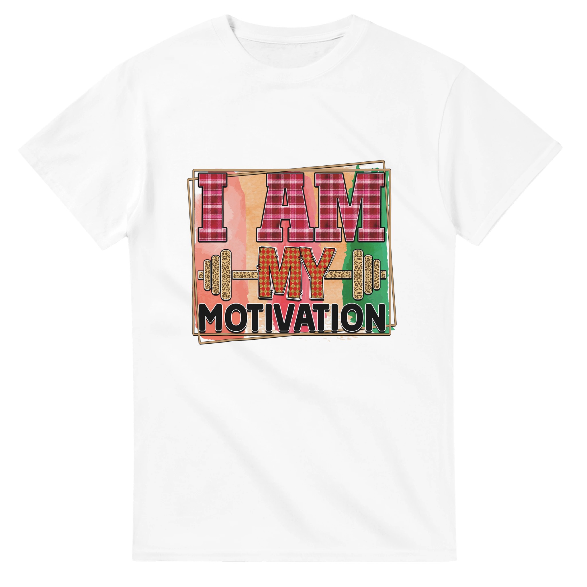 “I Am My Motivation” – Leopard & Plaid T-shirt för Träning och Vardagsbruk