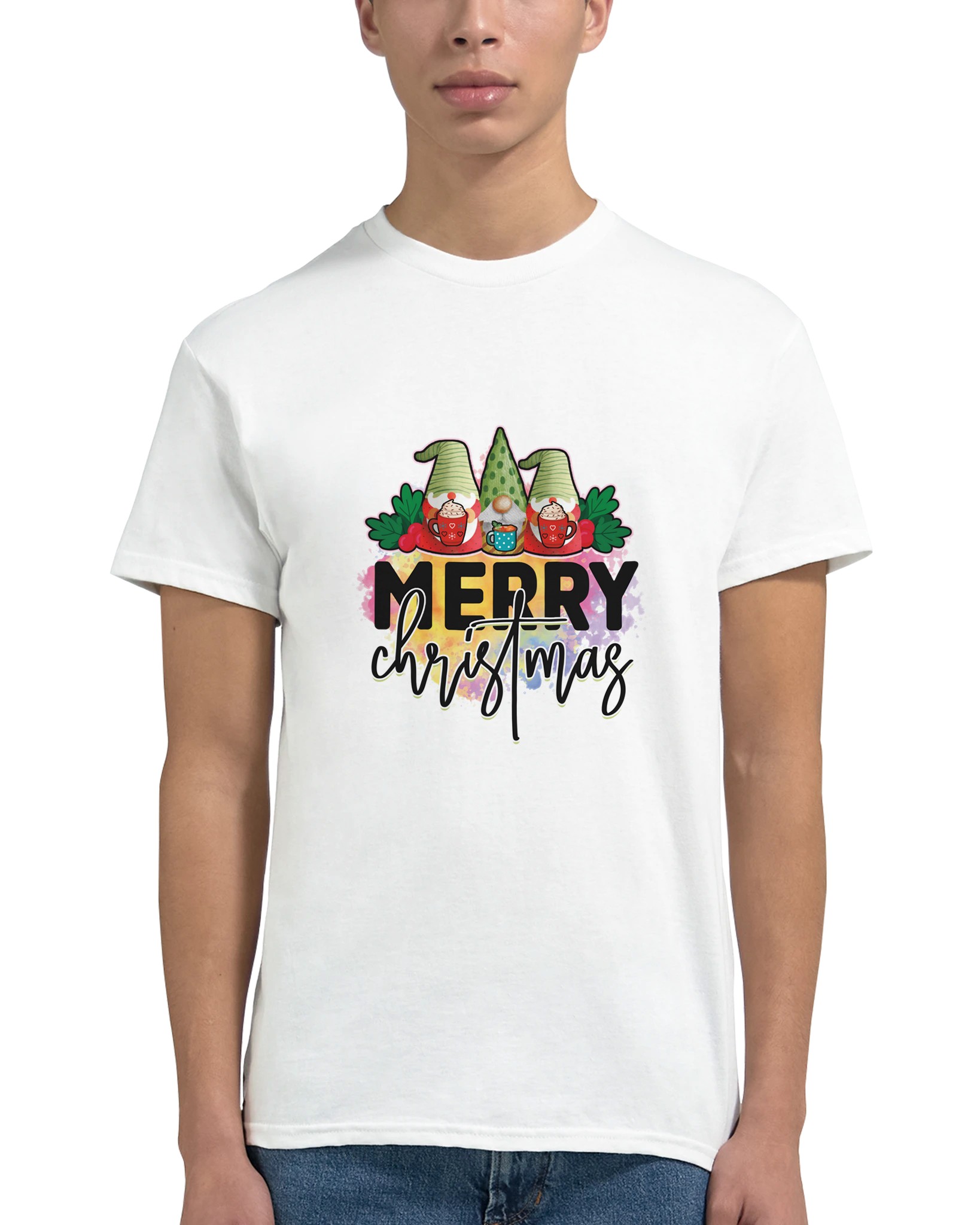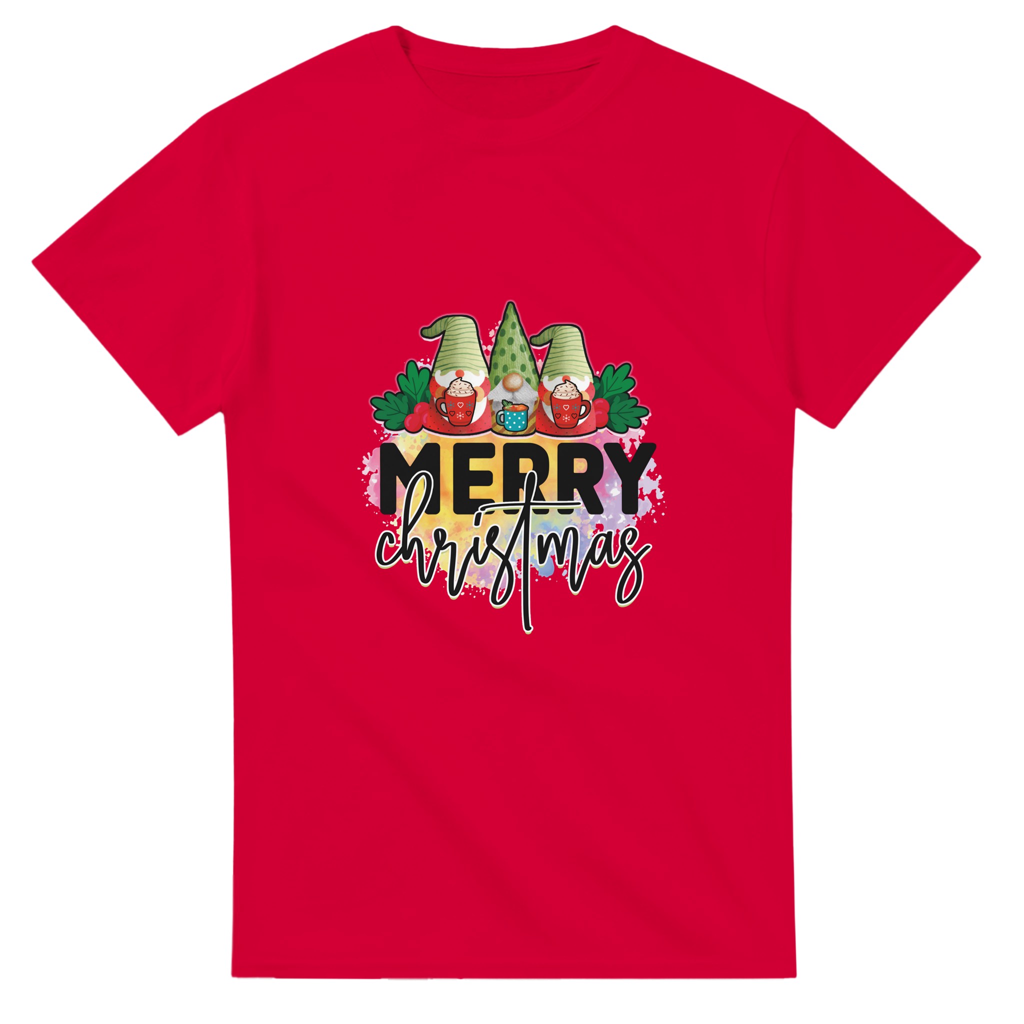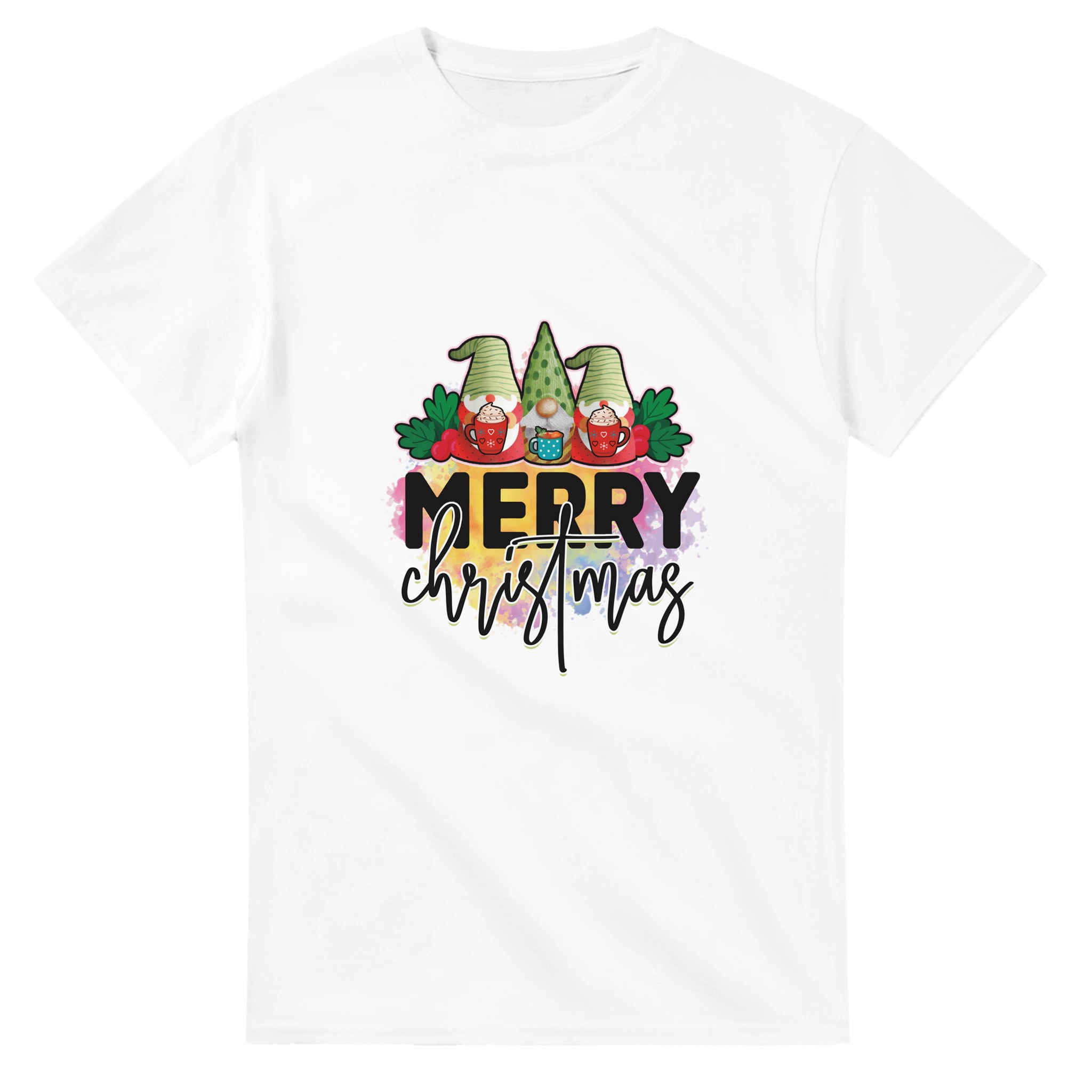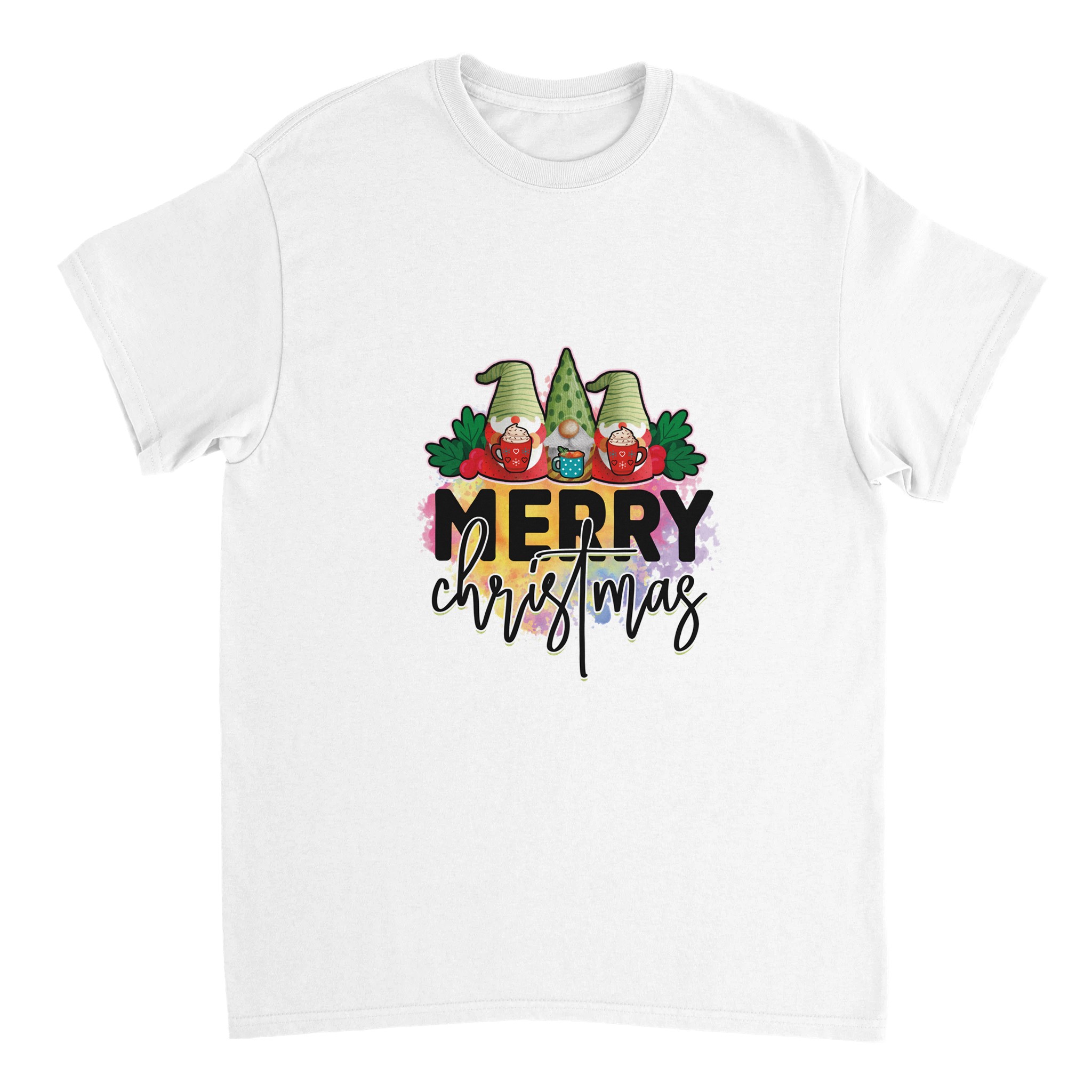 MERRY CHRISTMAS Gnome T-shirt – Mysig Unisex Design för Julen, med Slitstark Bomull och Glada Färger