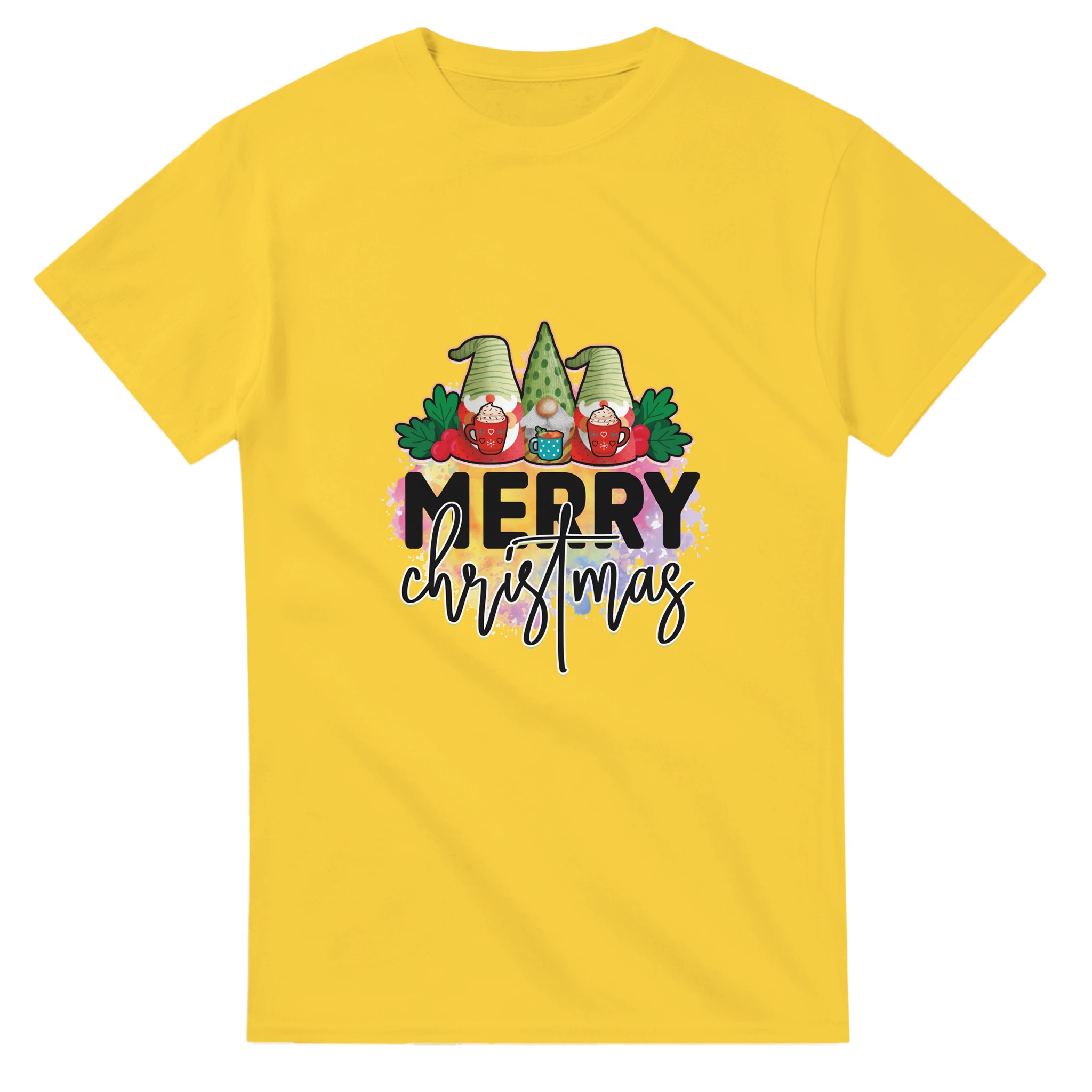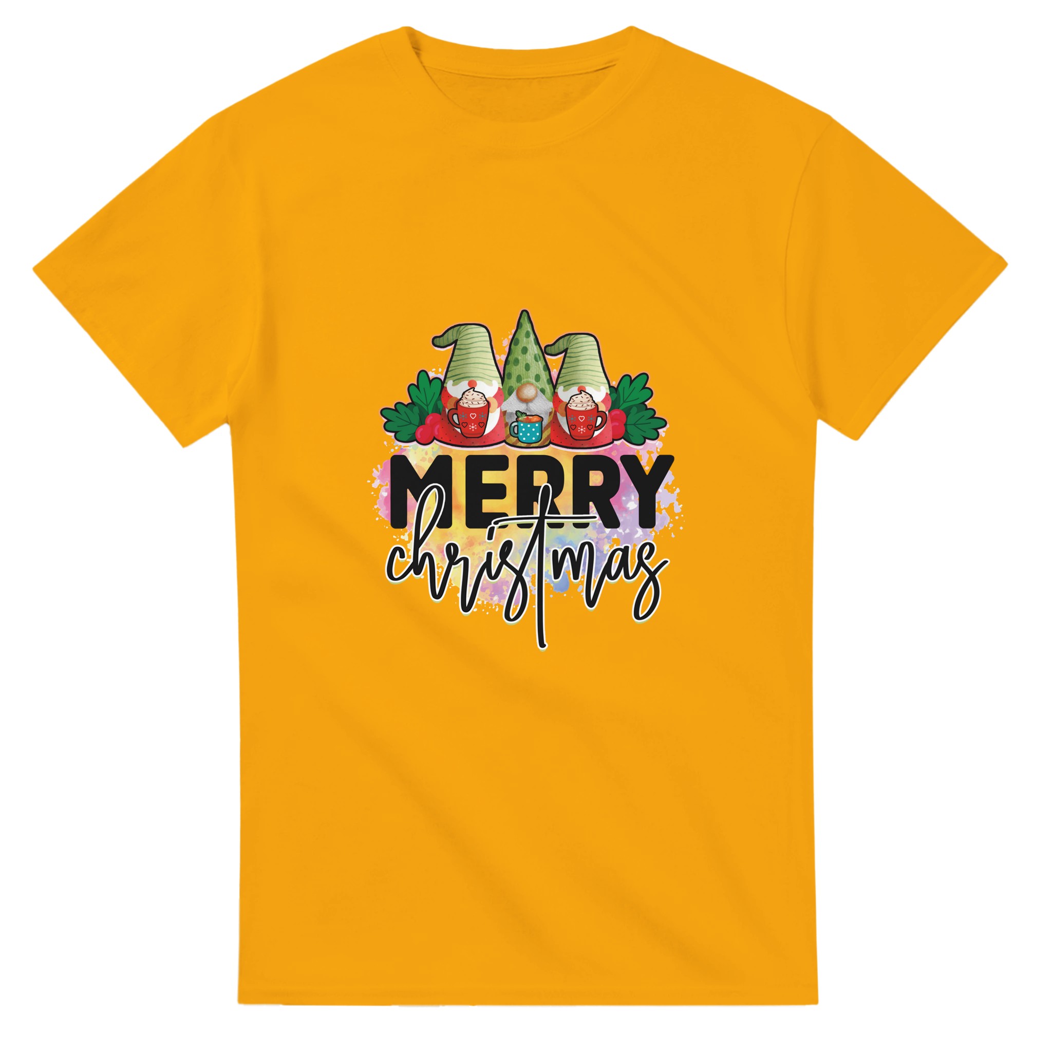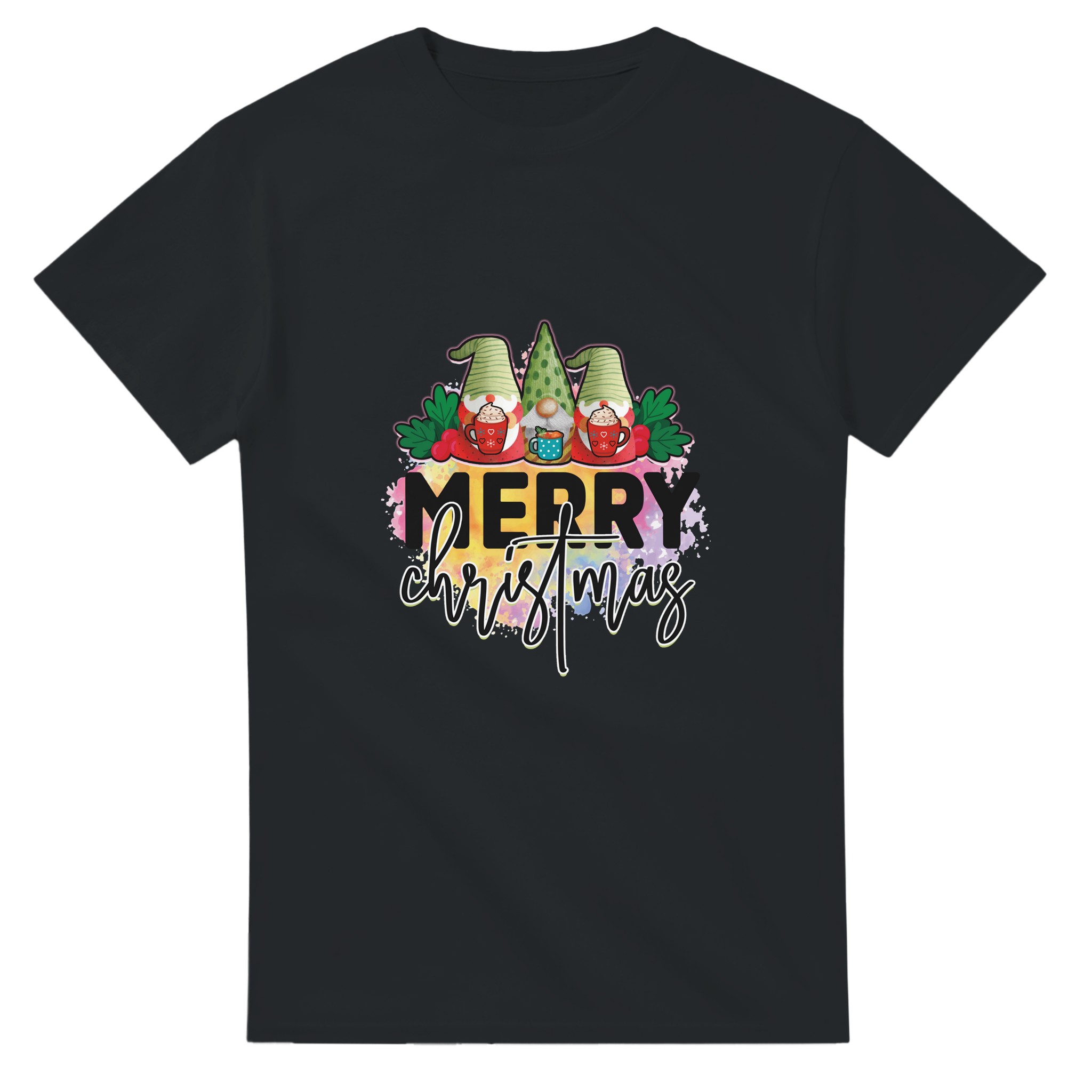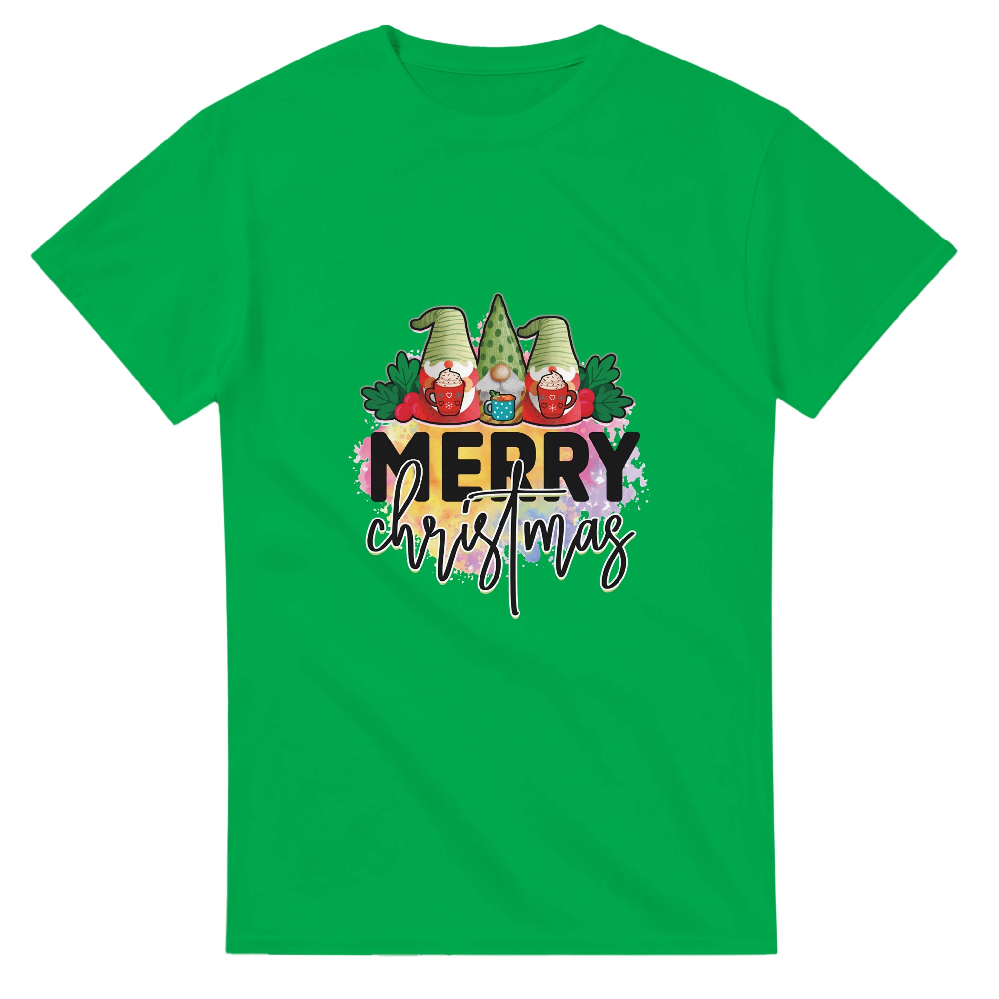 MERRY CHRISTMAS Gnome T-shirt – Mysig Unisex Design för Julen, med Slitstark Bomull och Glada Färger