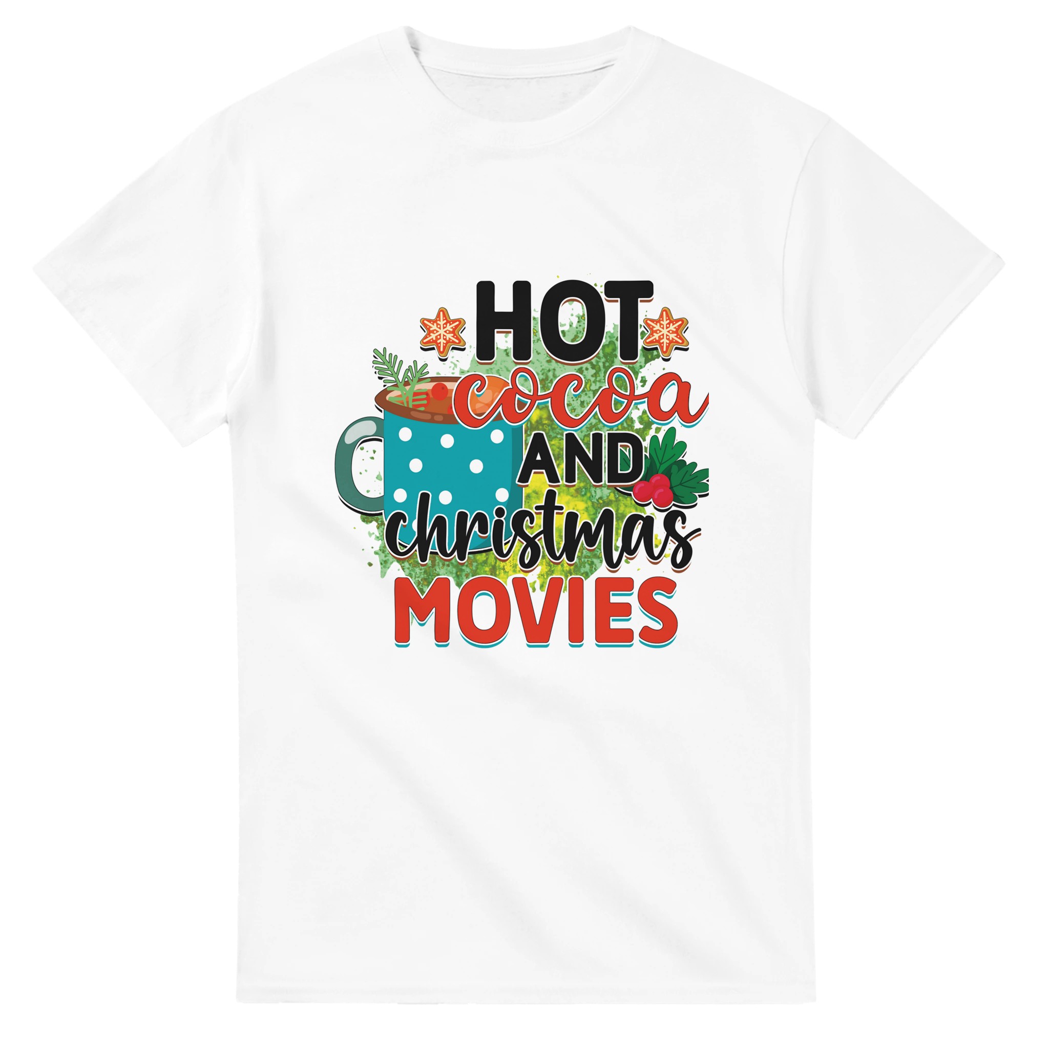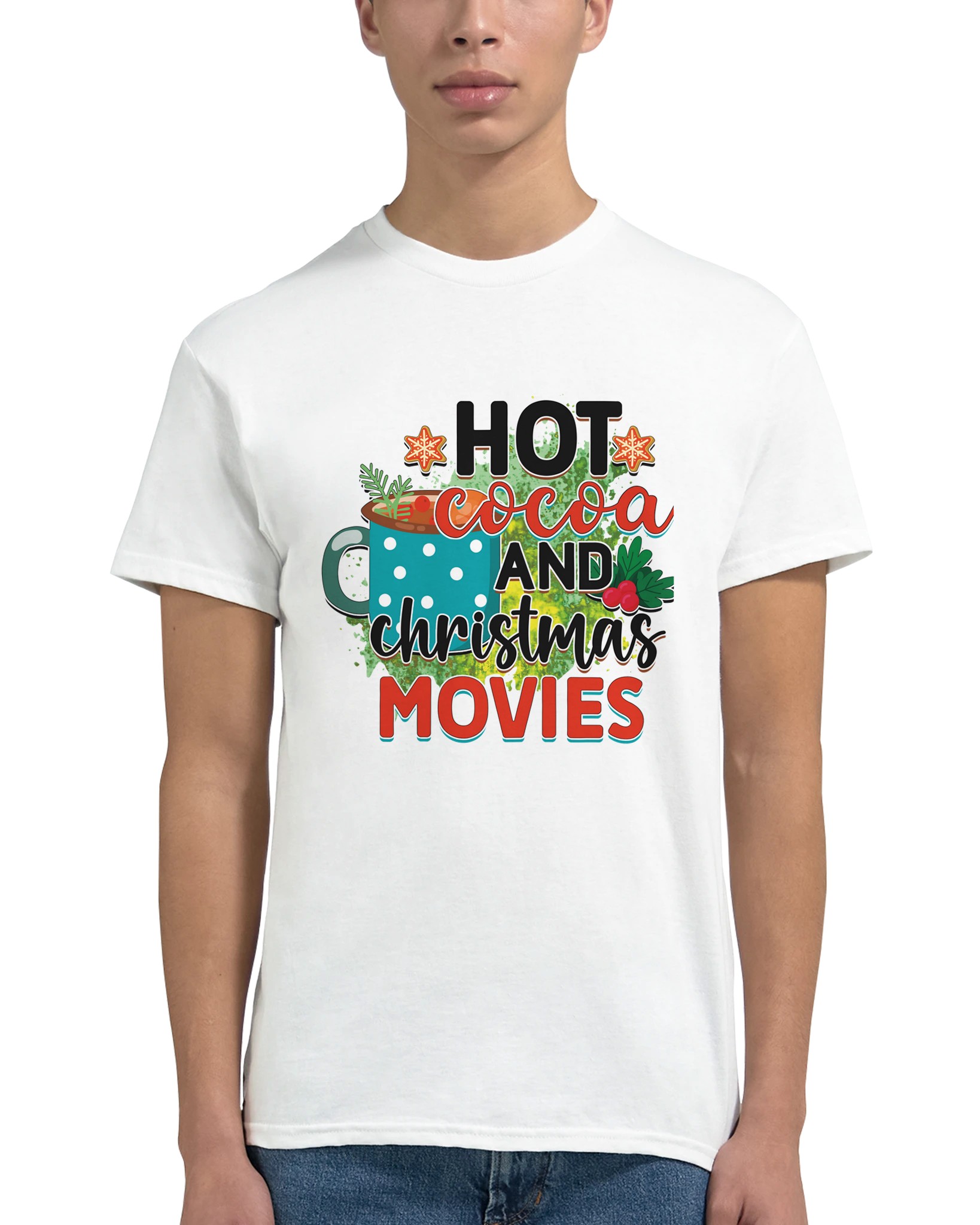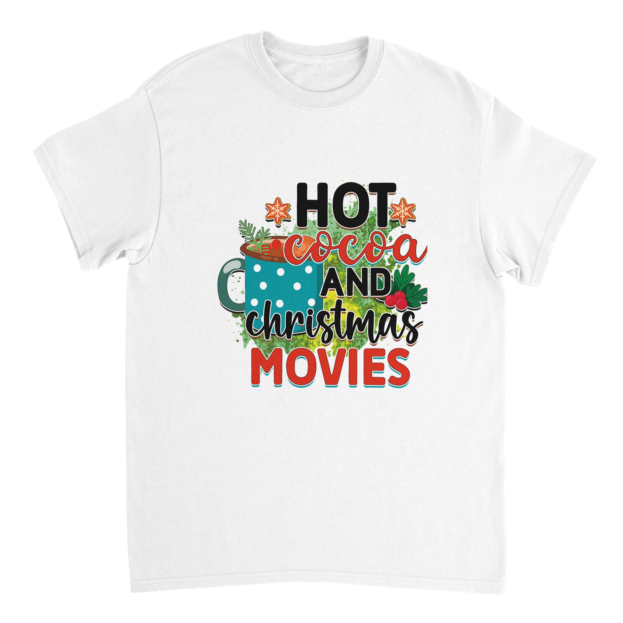 Mysig “Hot Cocoa & Christmas Movies” T-shirt – Klassisk, Unisex, Perfekt för Julen i Ditt Val av Färg och Storlek