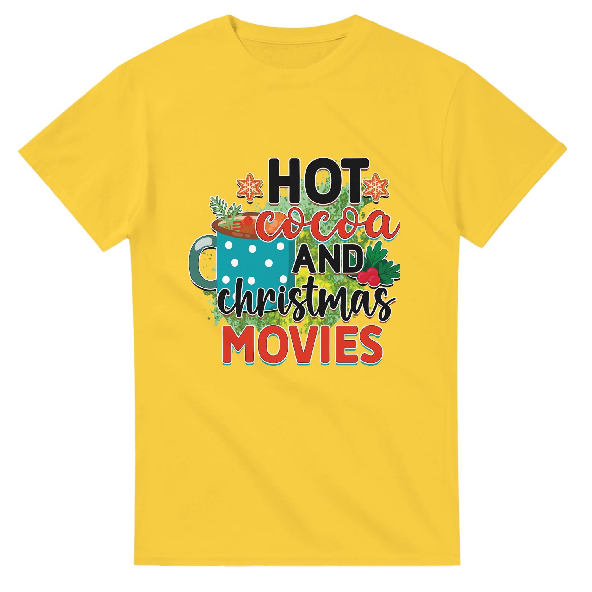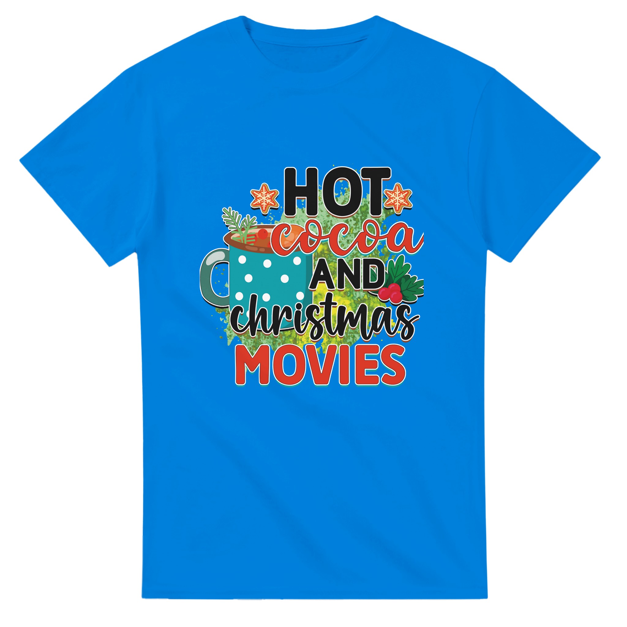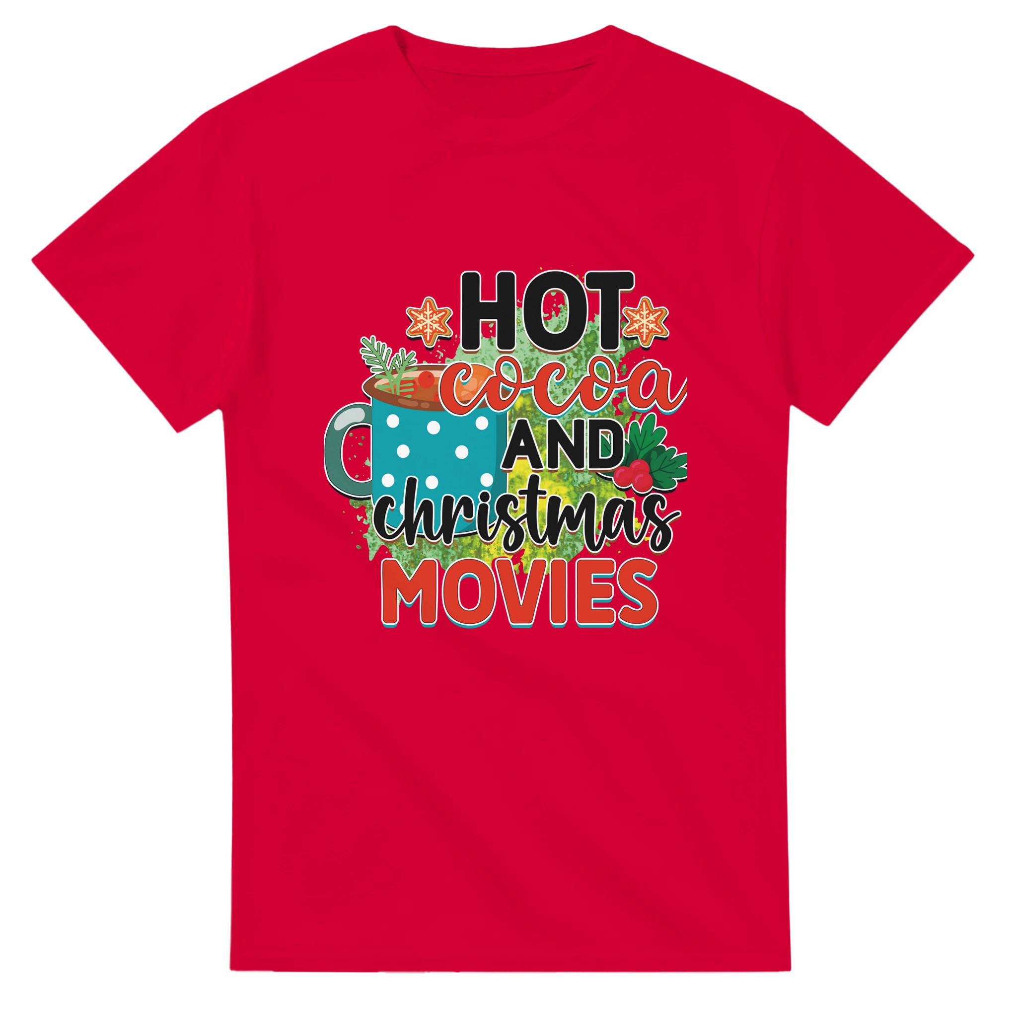 Mysig “Hot Cocoa & Christmas Movies” T-shirt – Klassisk, Unisex, Perfekt för Julen i Ditt Val av Färg och Storlek