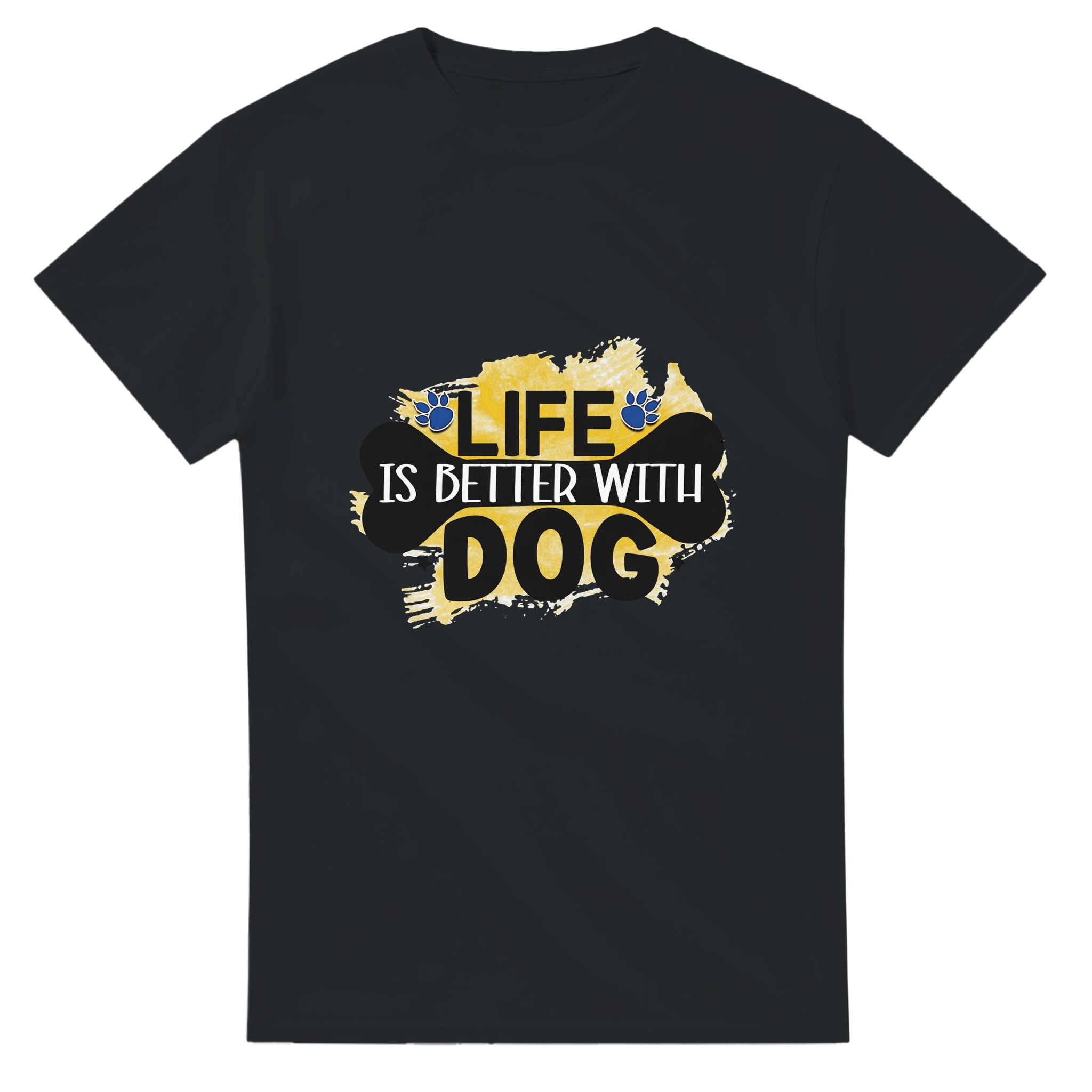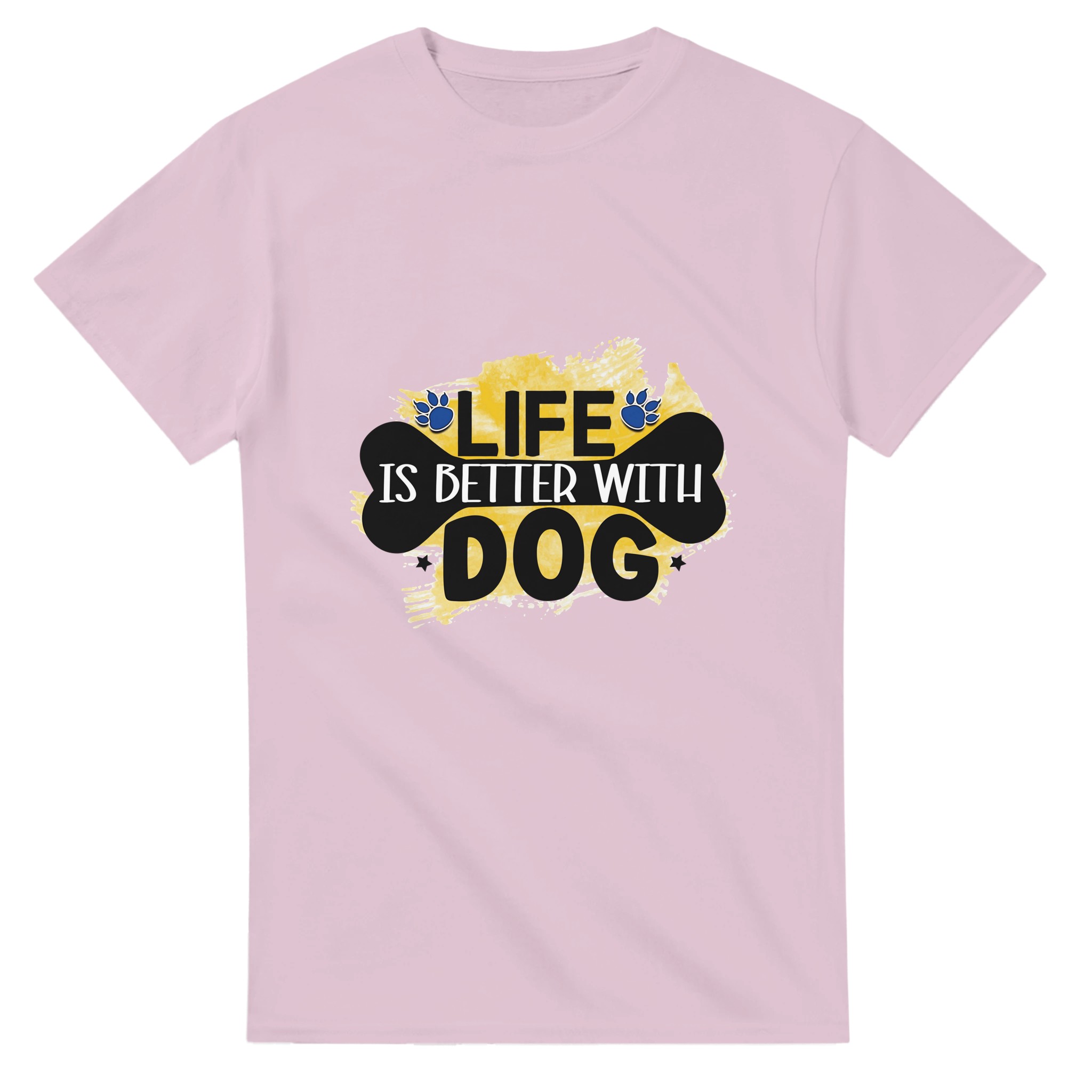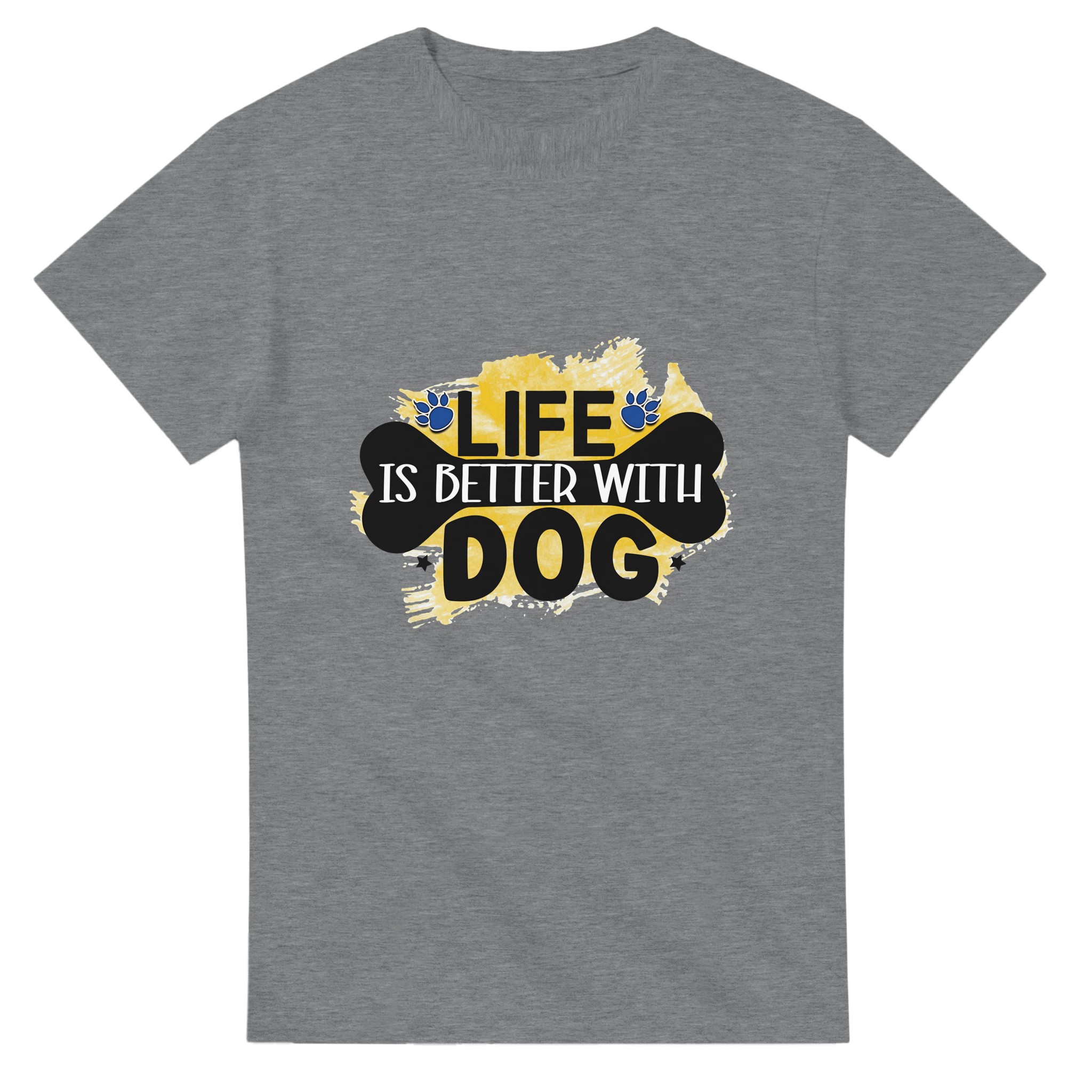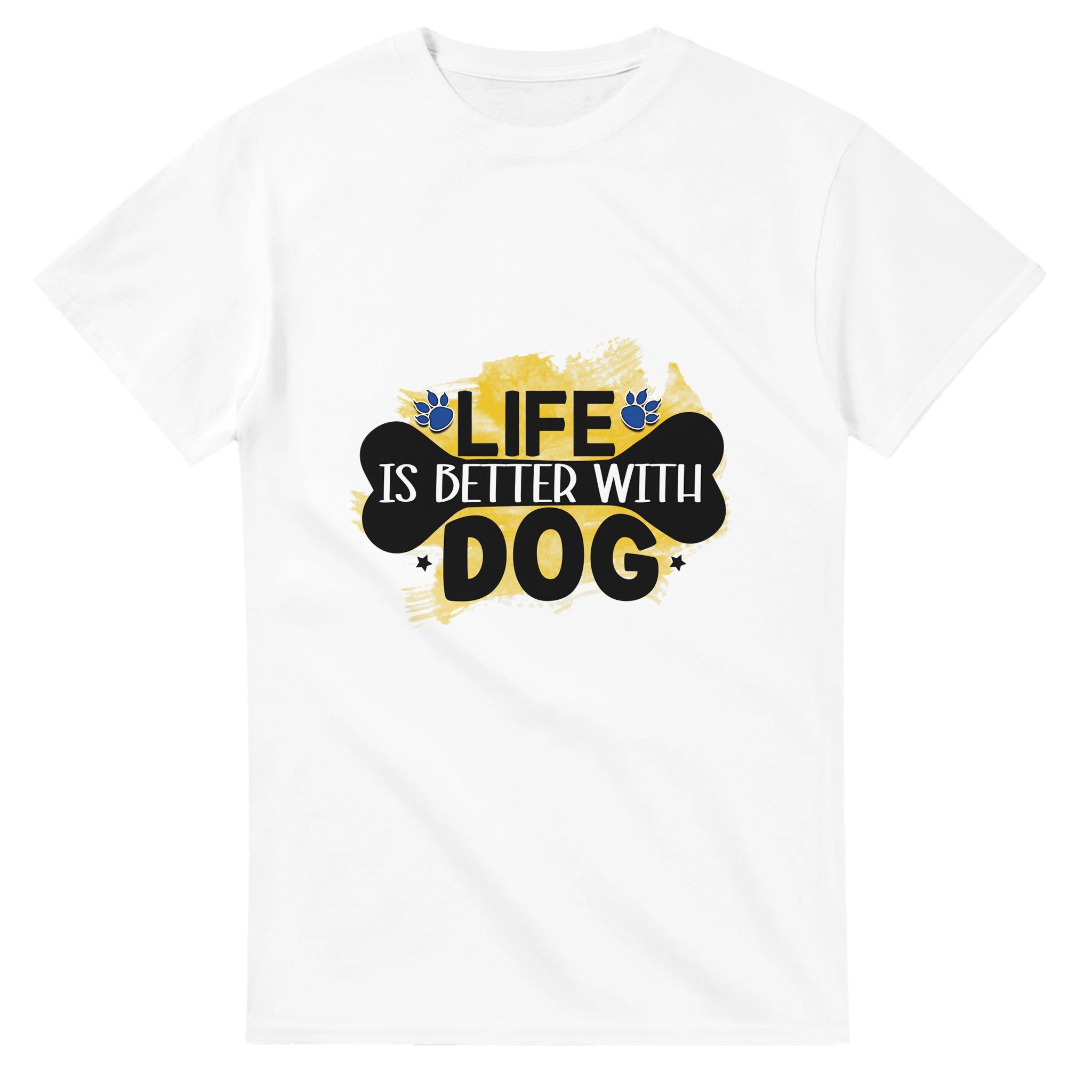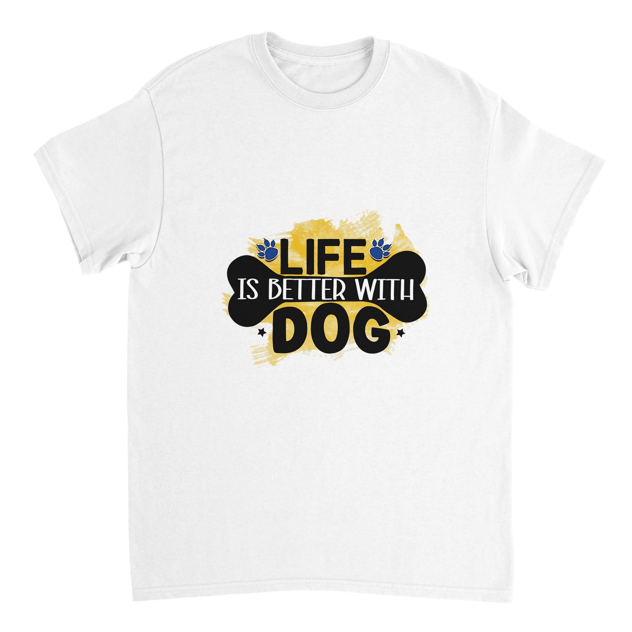 Klassisk Bomulls-T-shirt – ‘Life is Better With Dog’ Grafisk Design för Djurälskare, Unisex & Slitstark