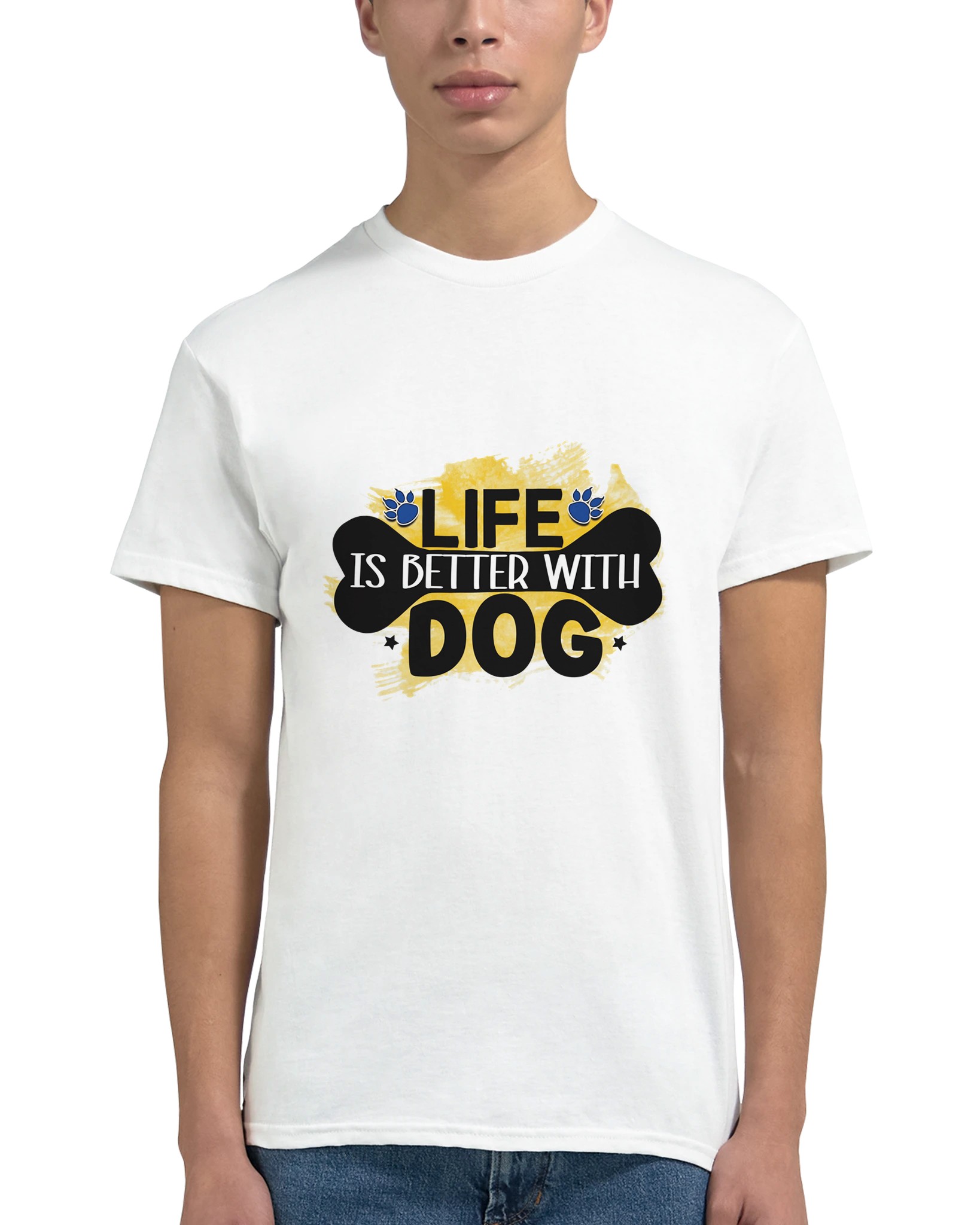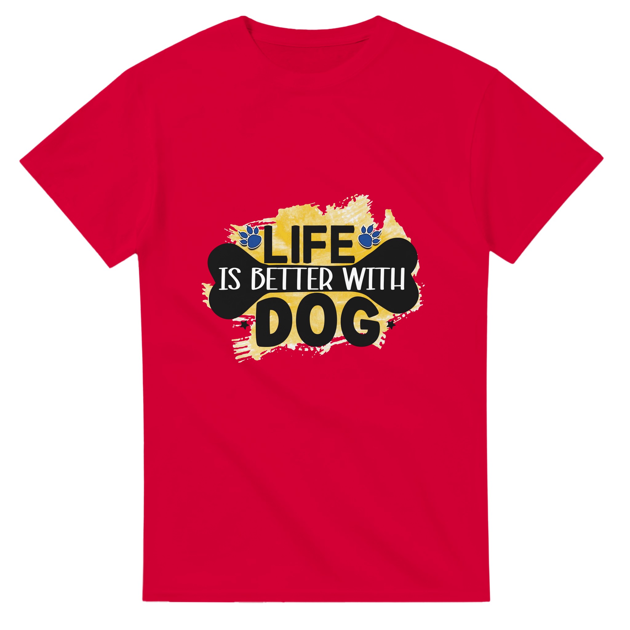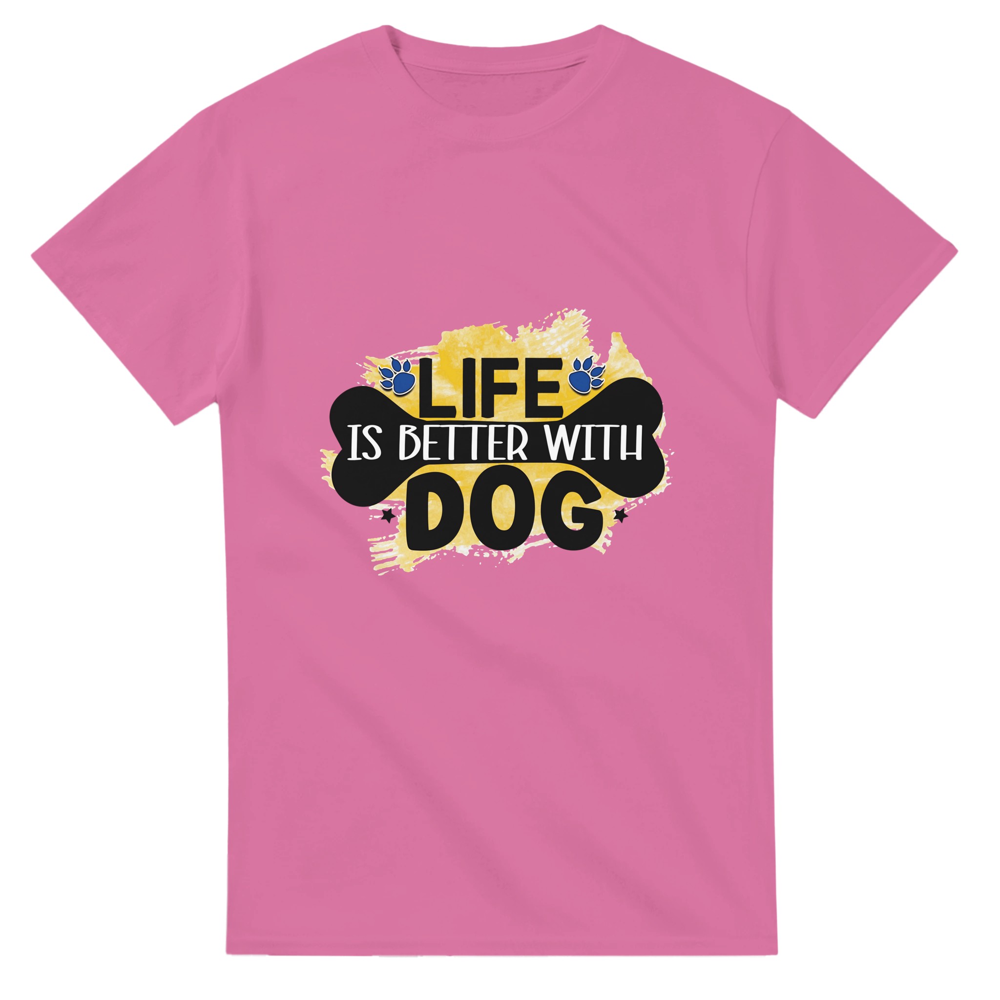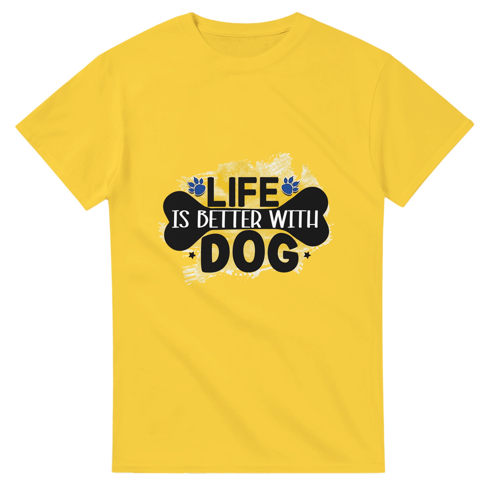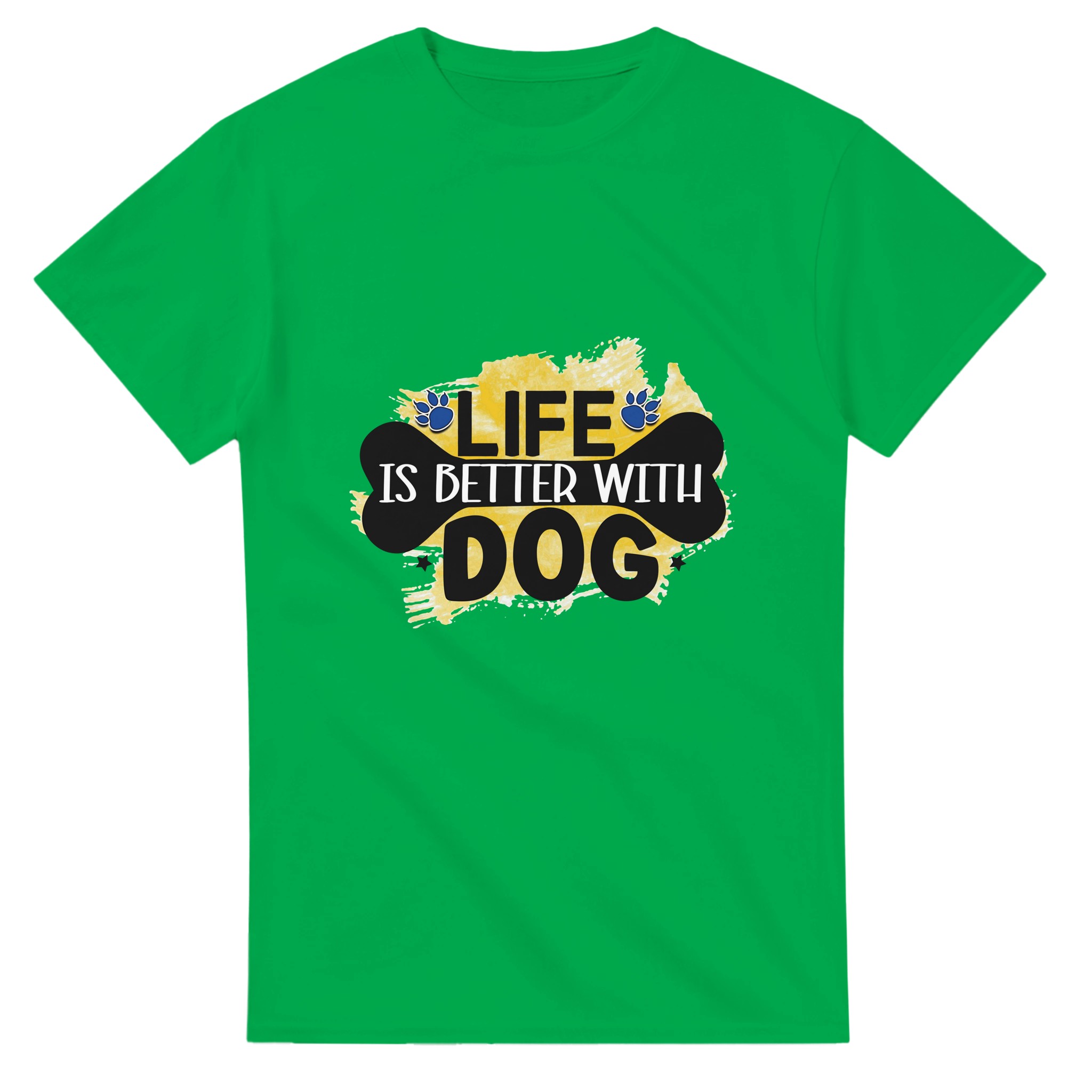Klassisk Bomulls-T-shirt – ‘Life is Better With Dog’ Grafisk Design för Djurälskare, Unisex & Slitstark