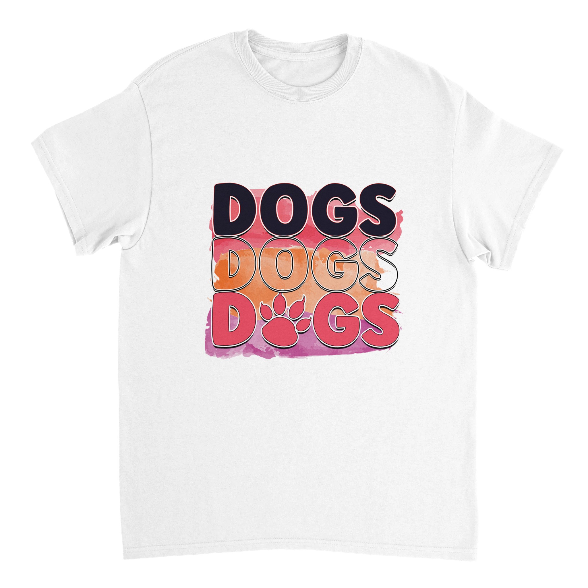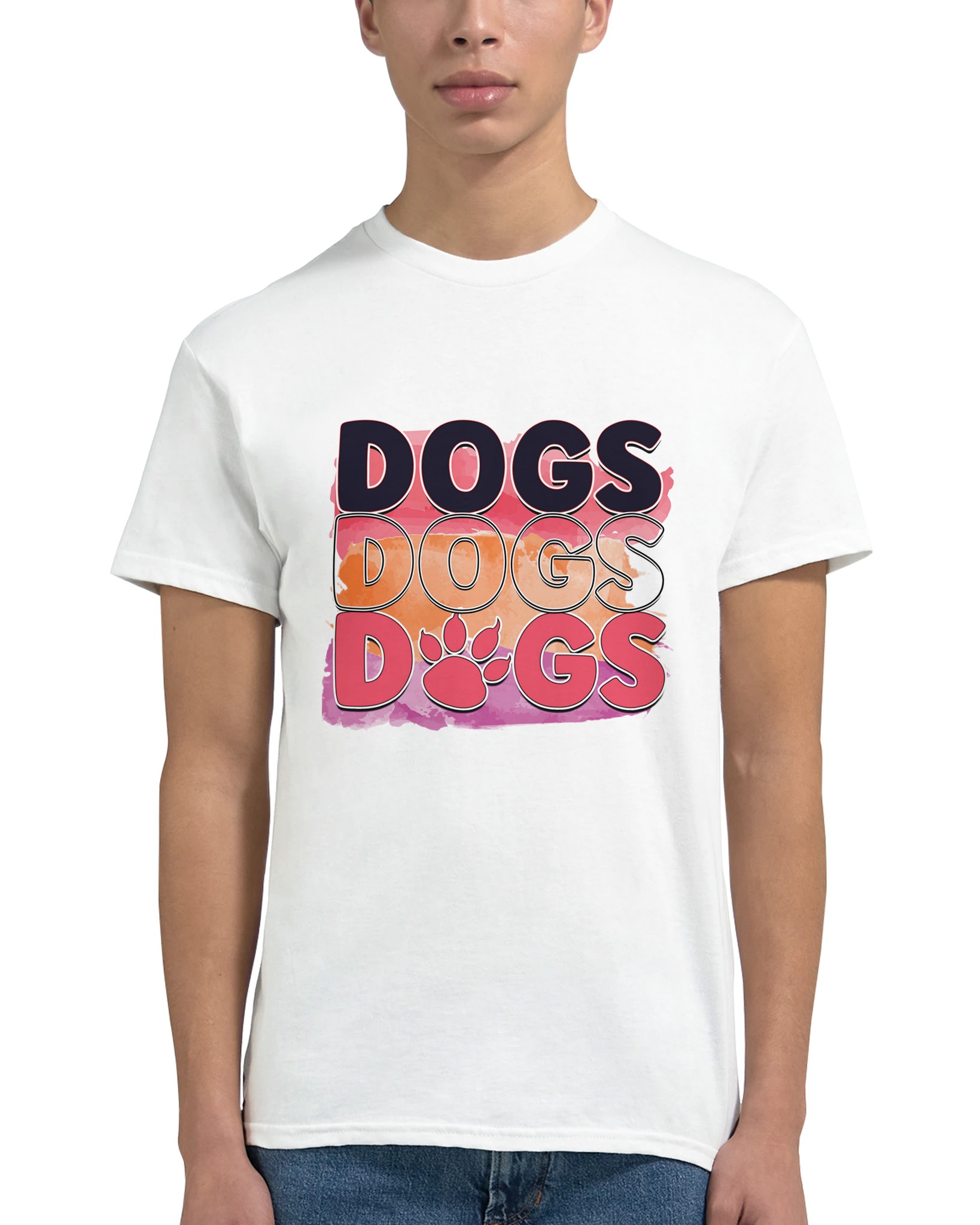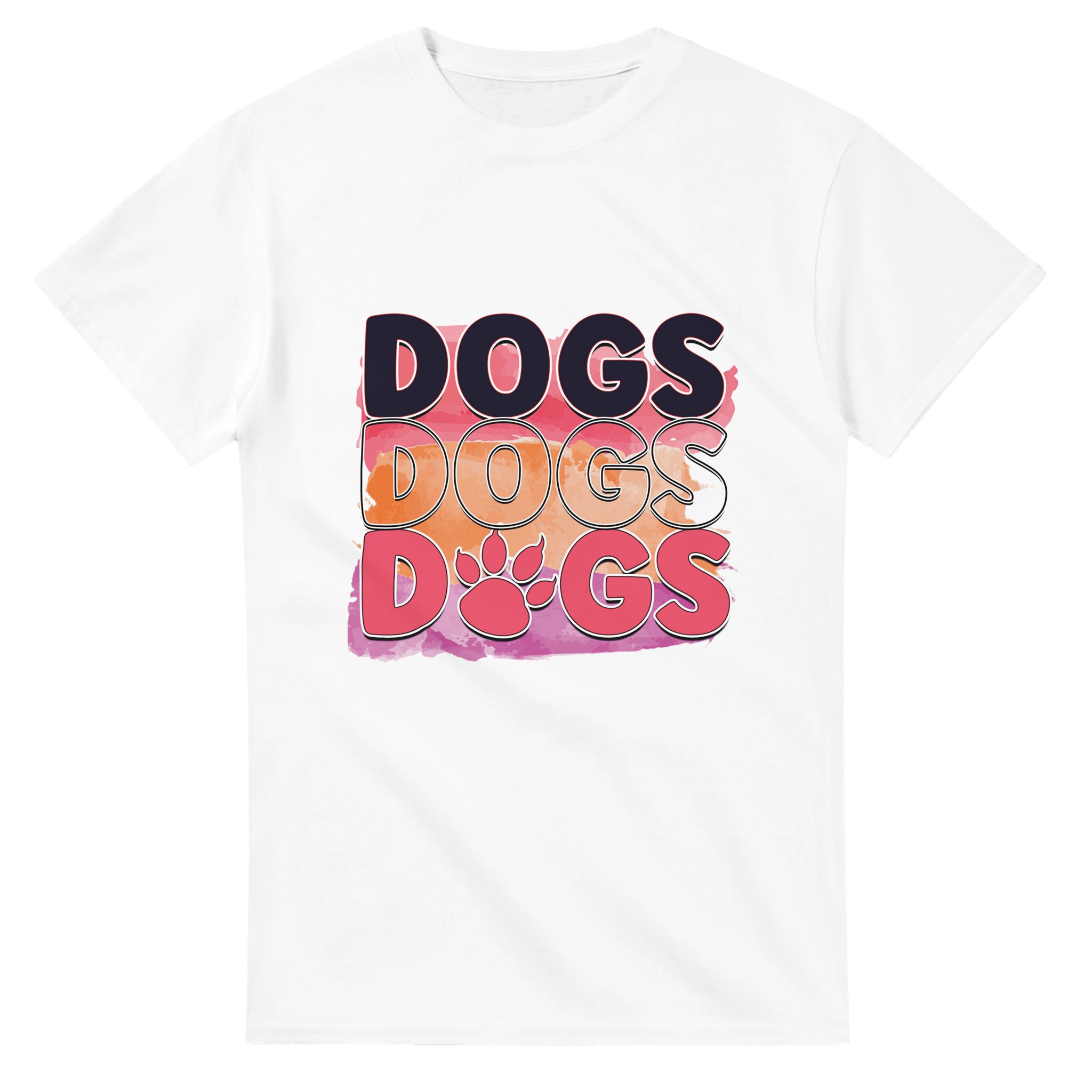 Klassisk T-shirt – “DOGS DOGS DOGS” med Tassavtryck i Härliga Nyanser
