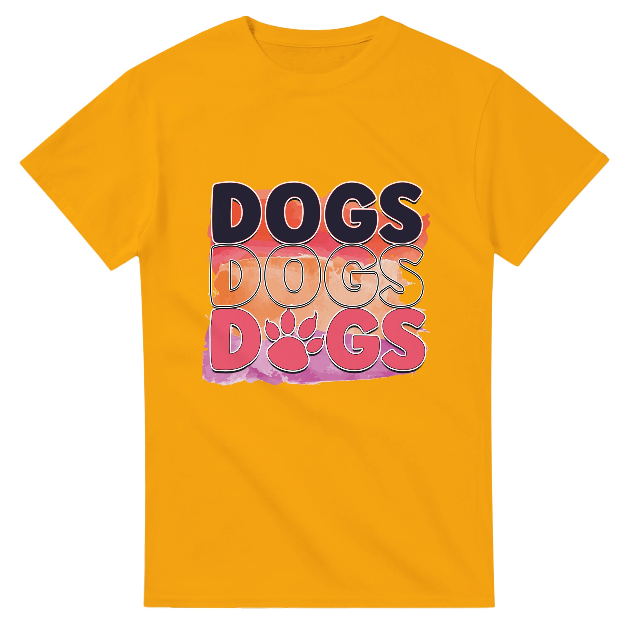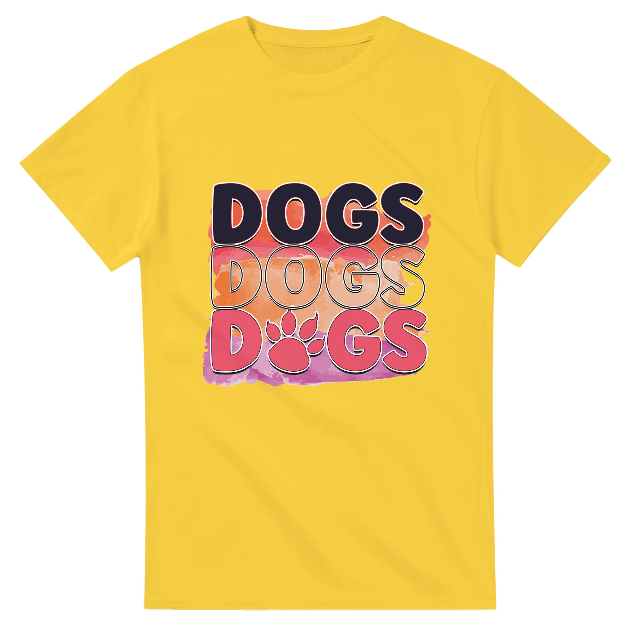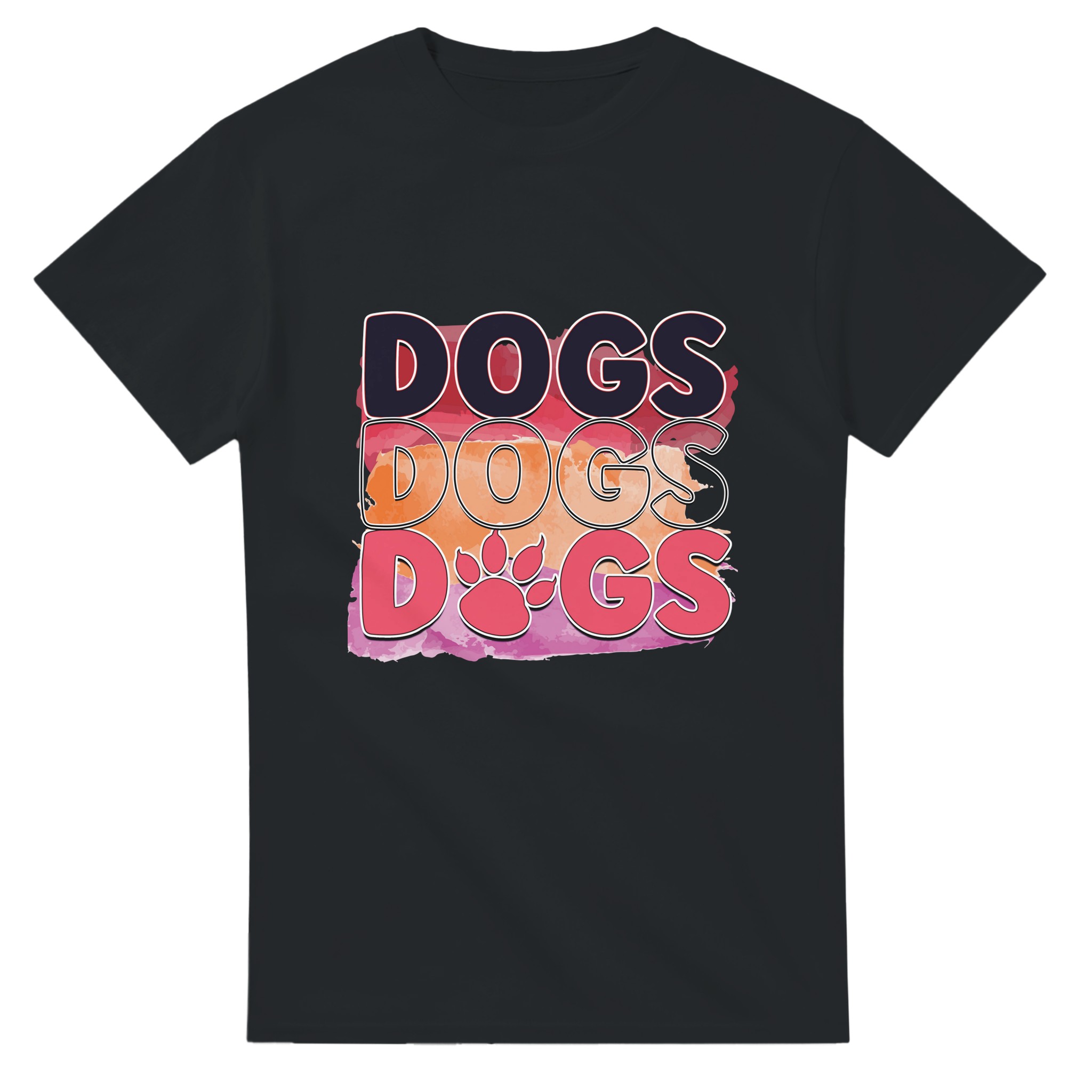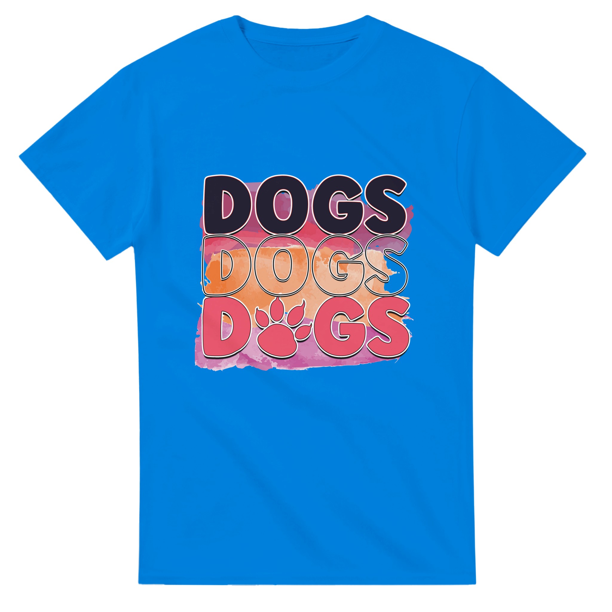 Klassisk T-shirt – “DOGS DOGS DOGS” med Tassavtryck i Härliga Nyanser