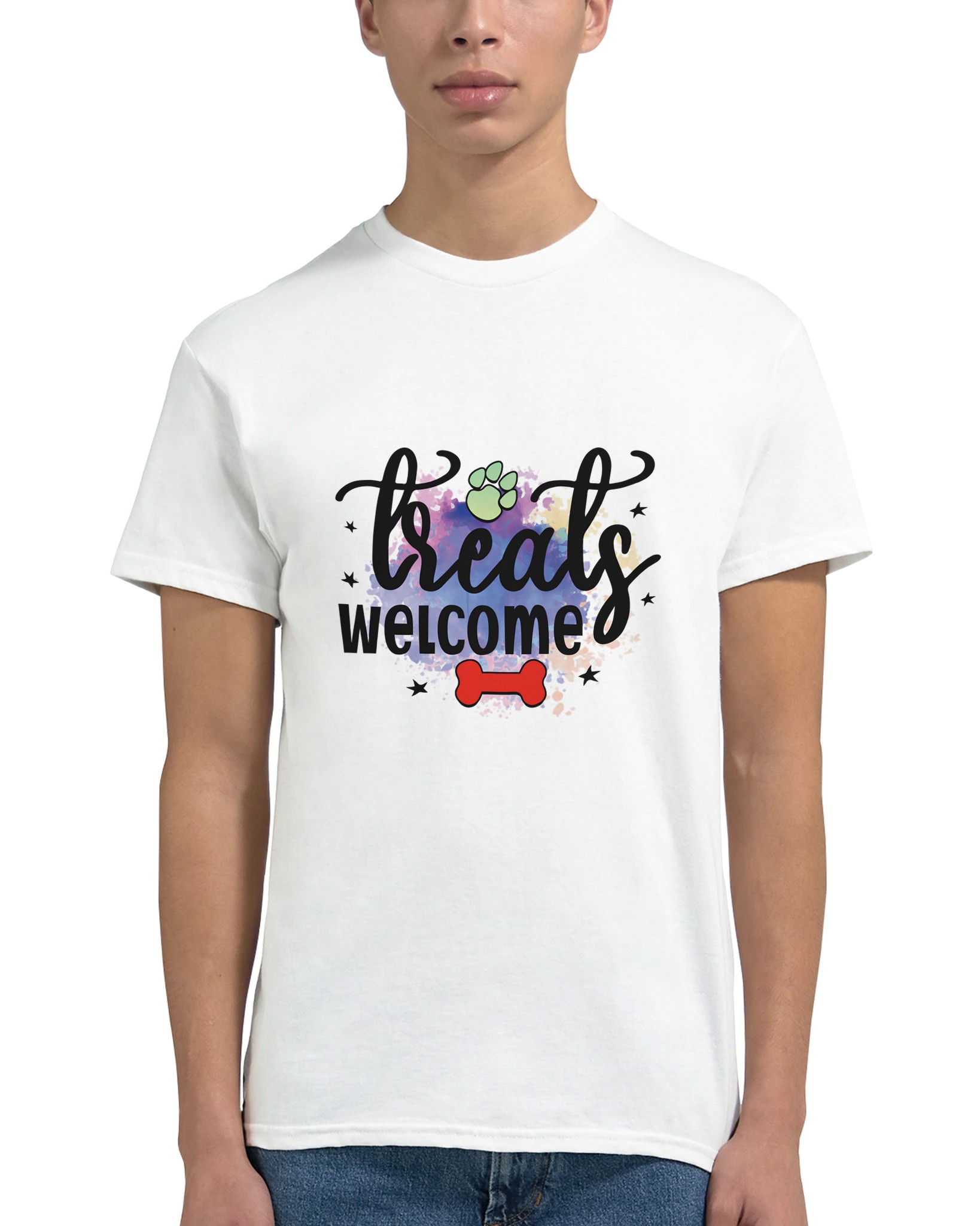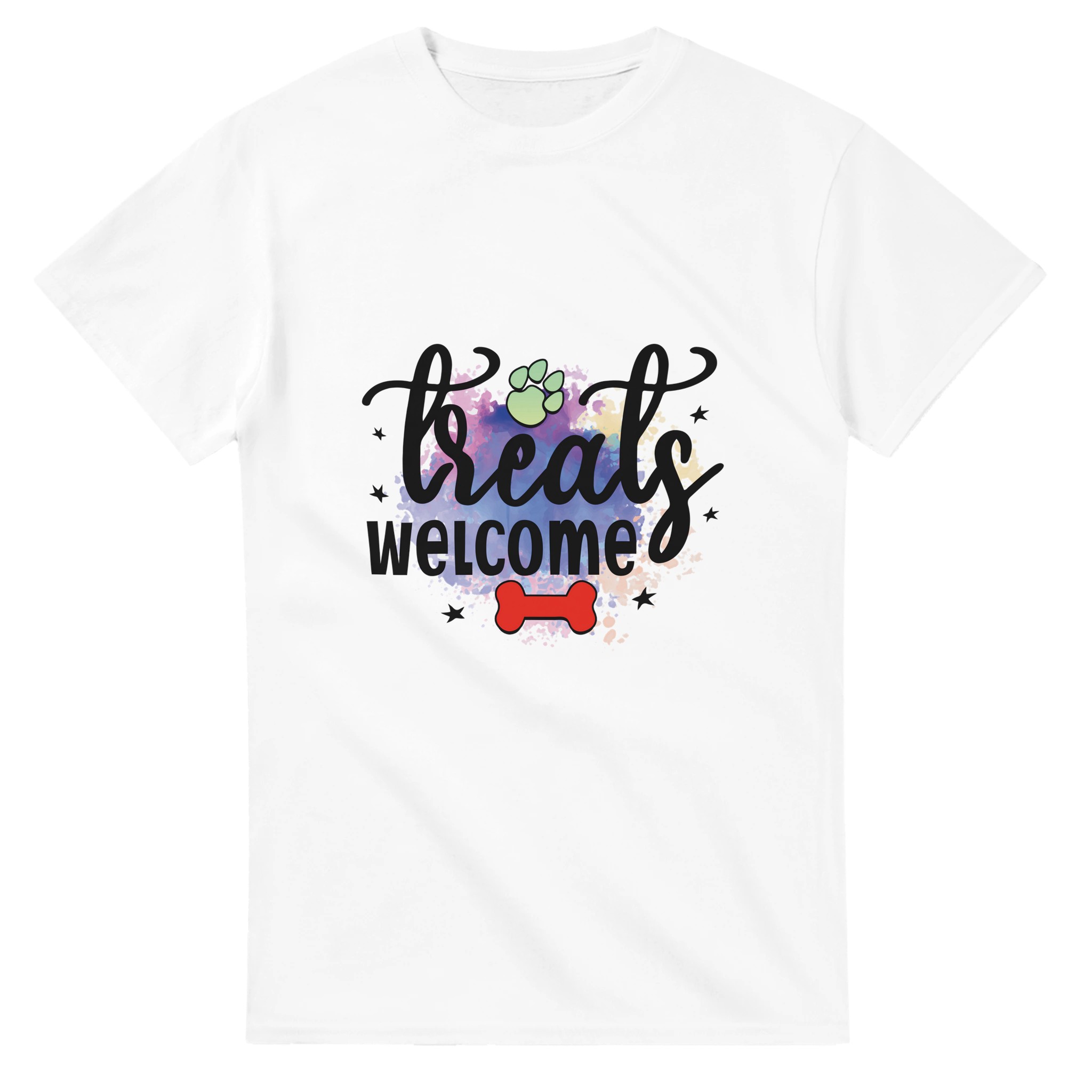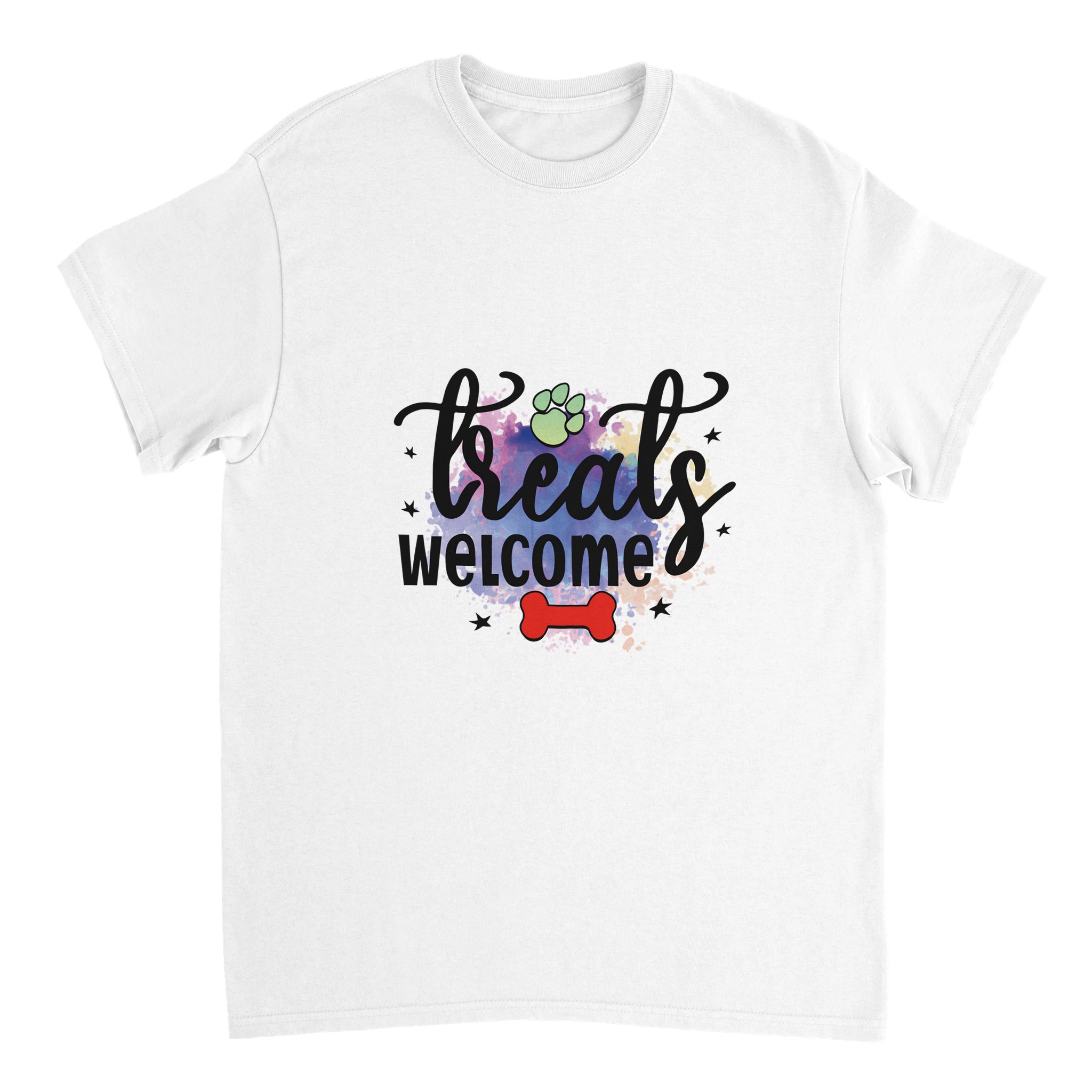 Välkommen Hem T-shirt – Mysig Bomullströja med Akvarell Splash & Hundmotiv för Djurälskare