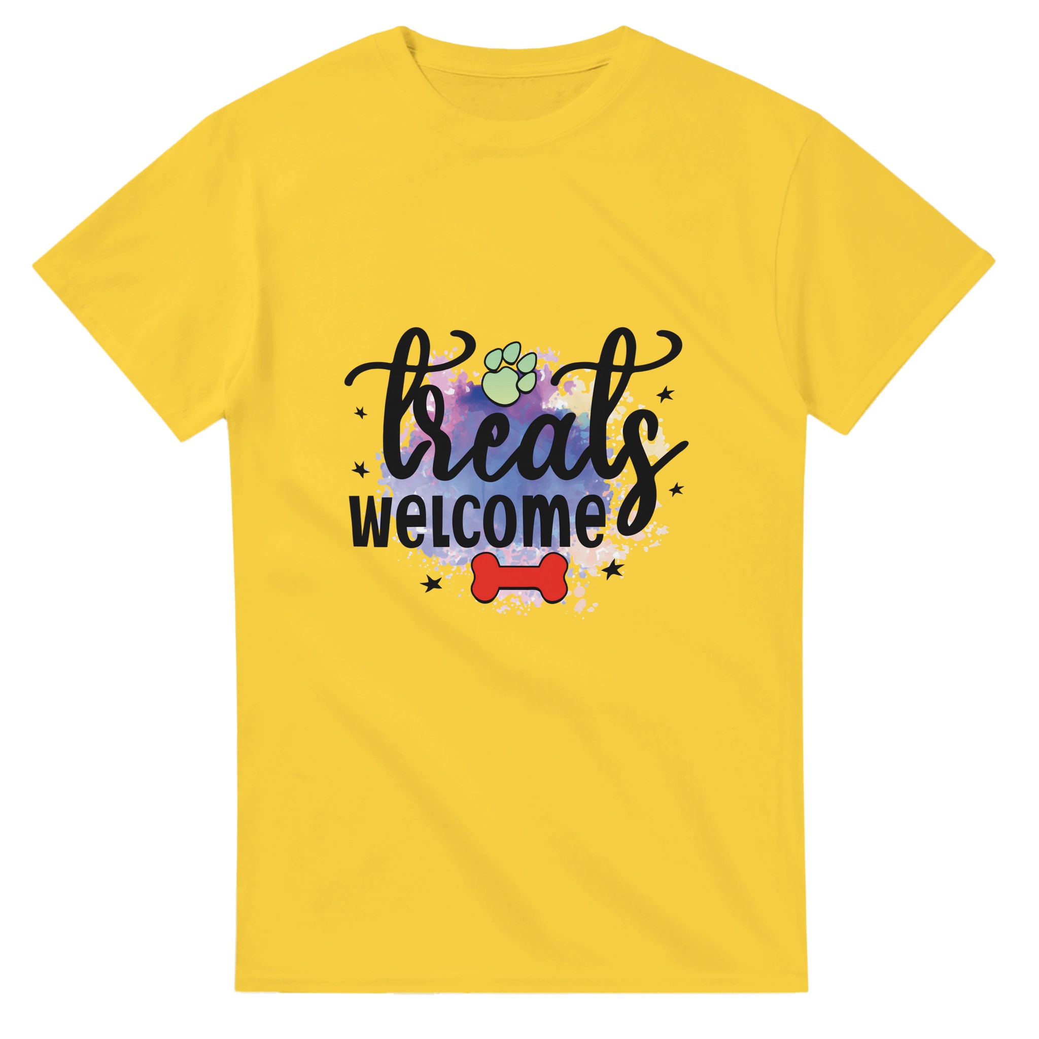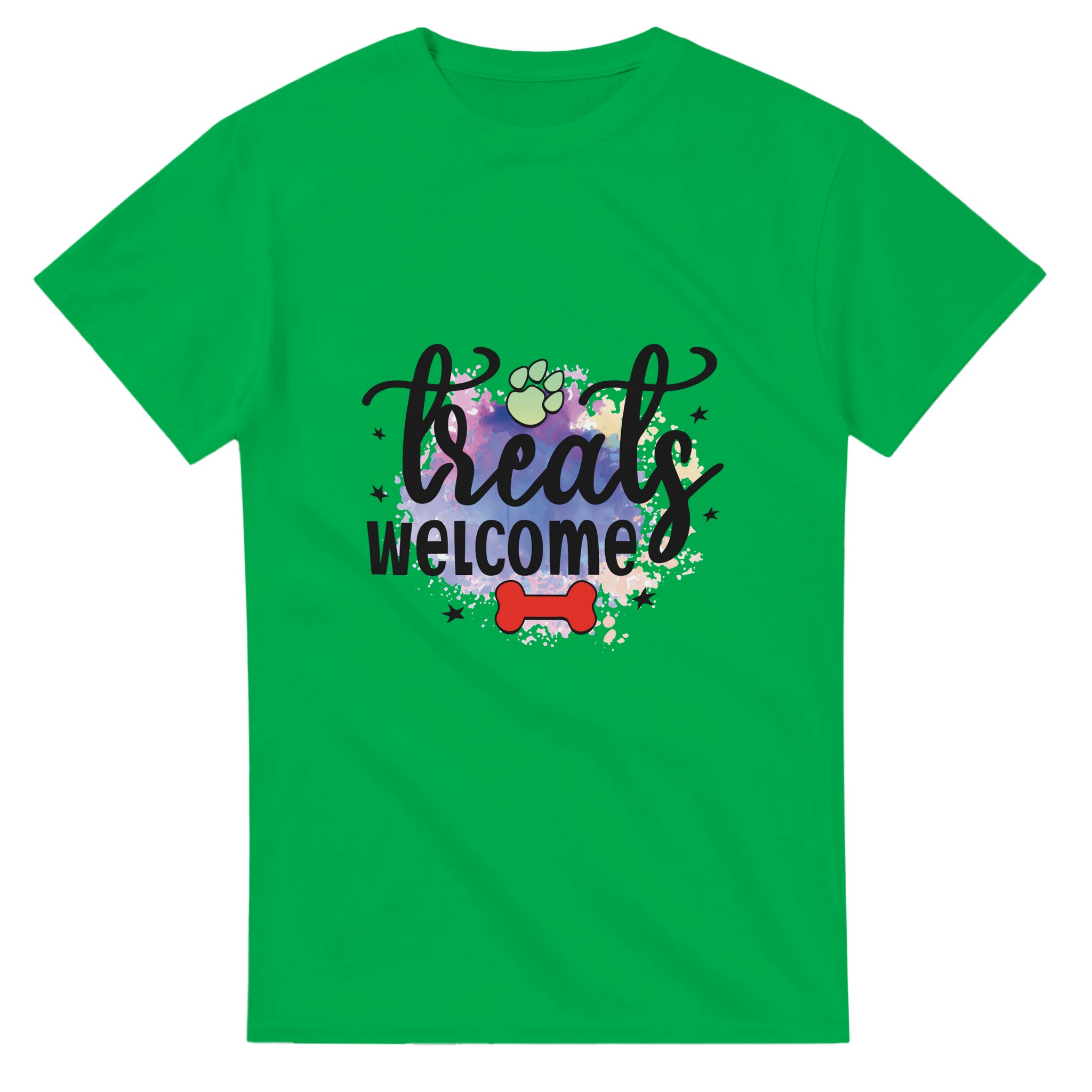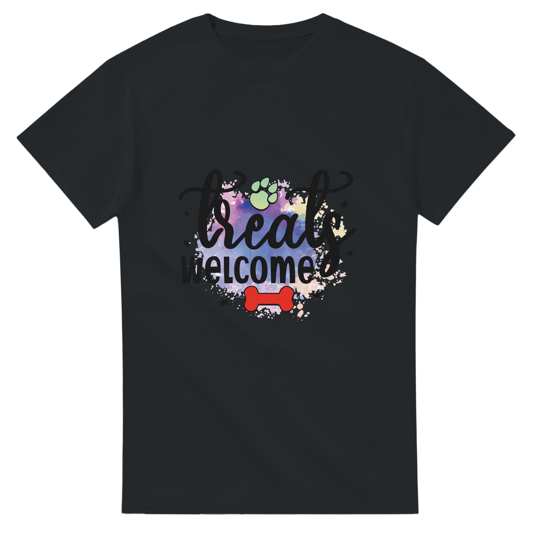 Välkommen Hem T-shirt – Mysig Bomullströja med Akvarell Splash & Hundmotiv för Djurälskare