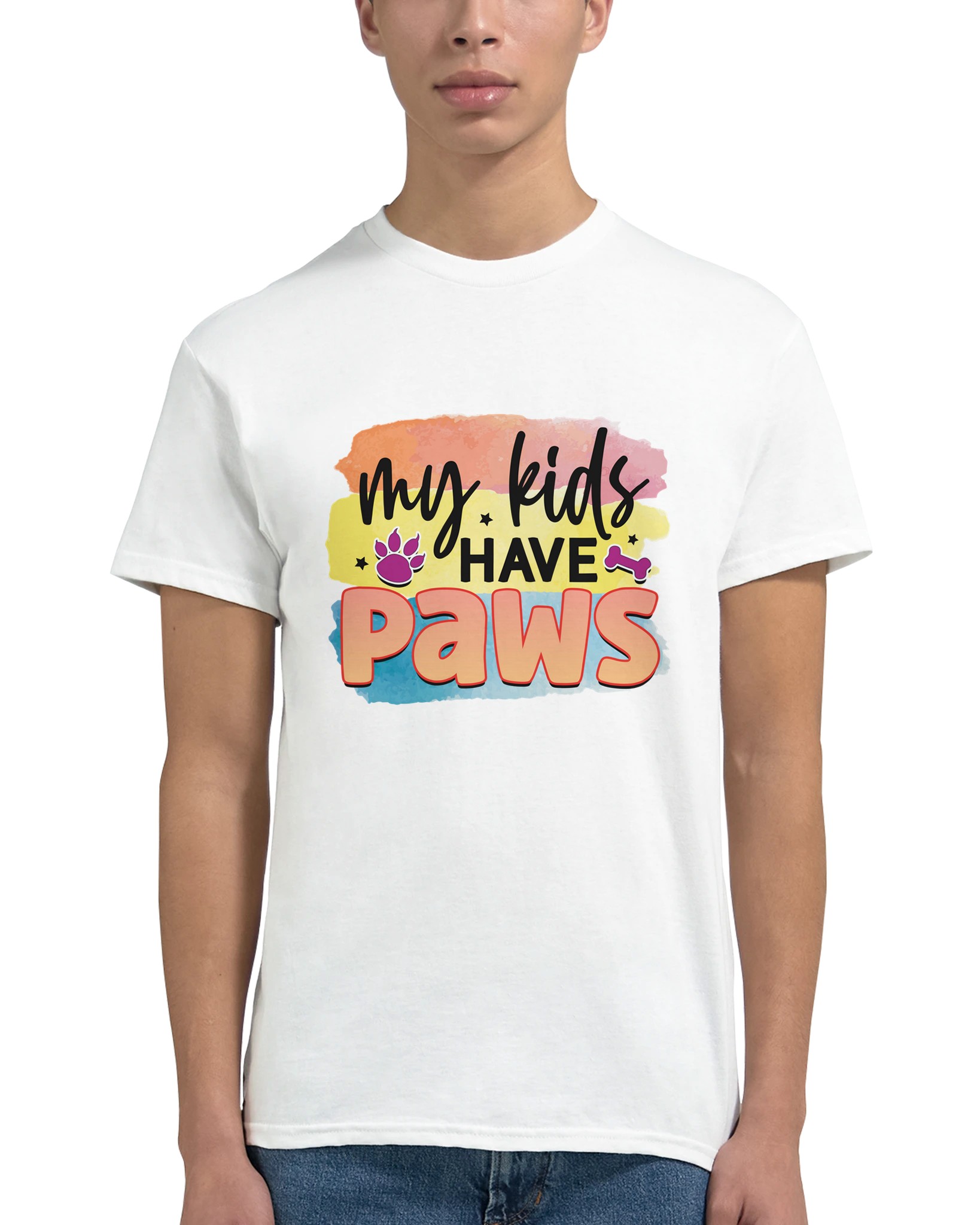 Klassisk Bomulls-T-shirt – ‘My Kids Have Paws’ – Uttryck din kärlek för ditt husdjur i en unisex design