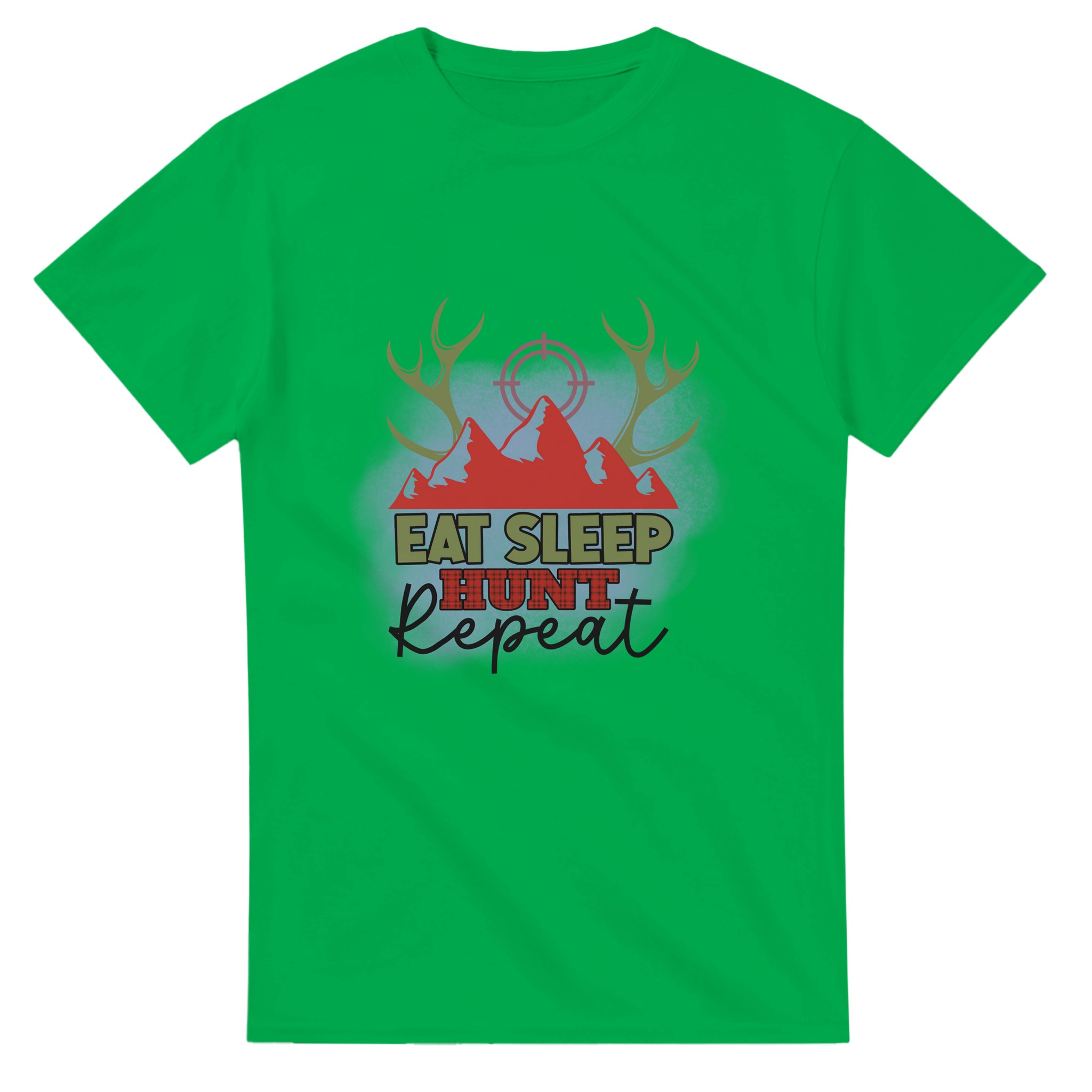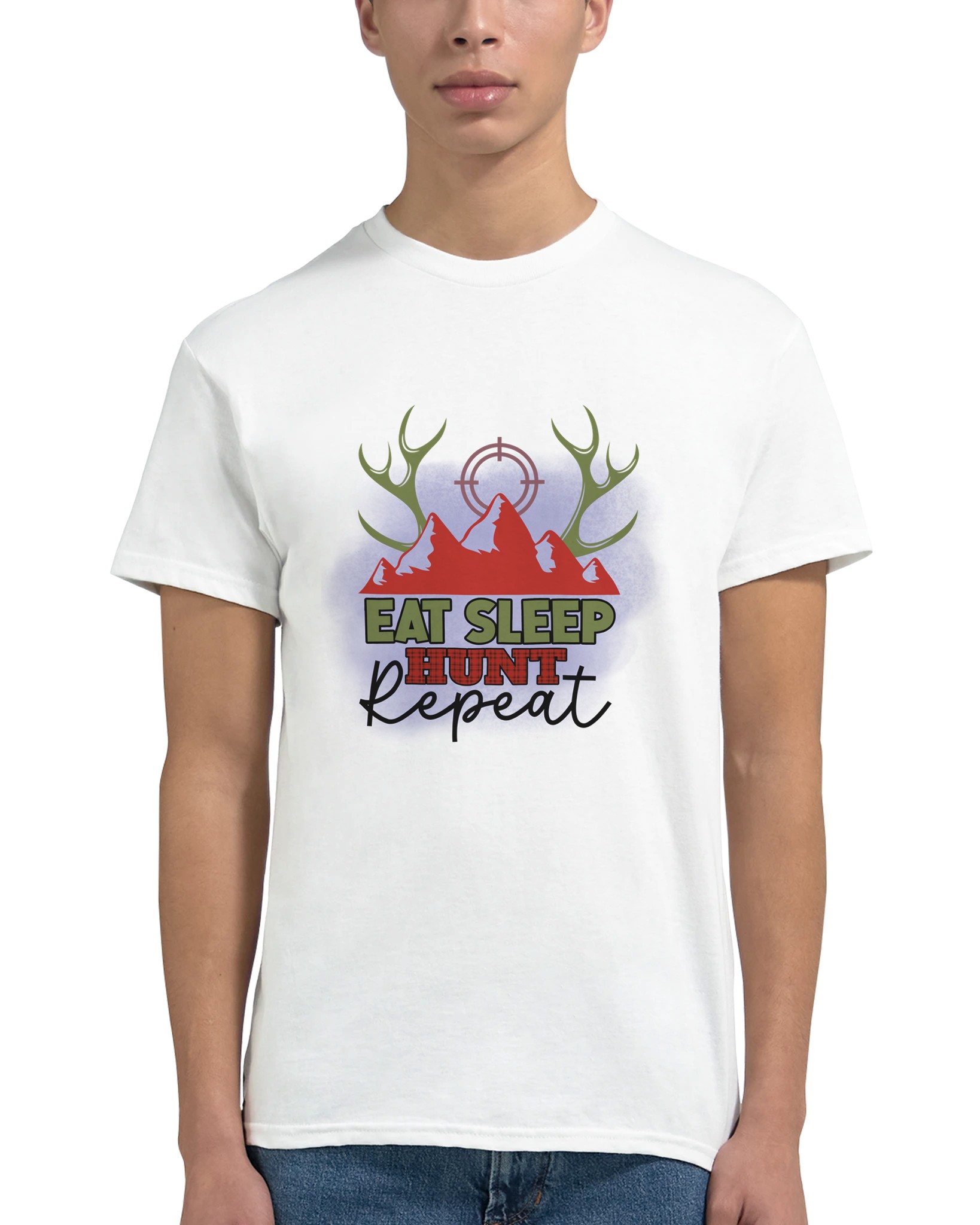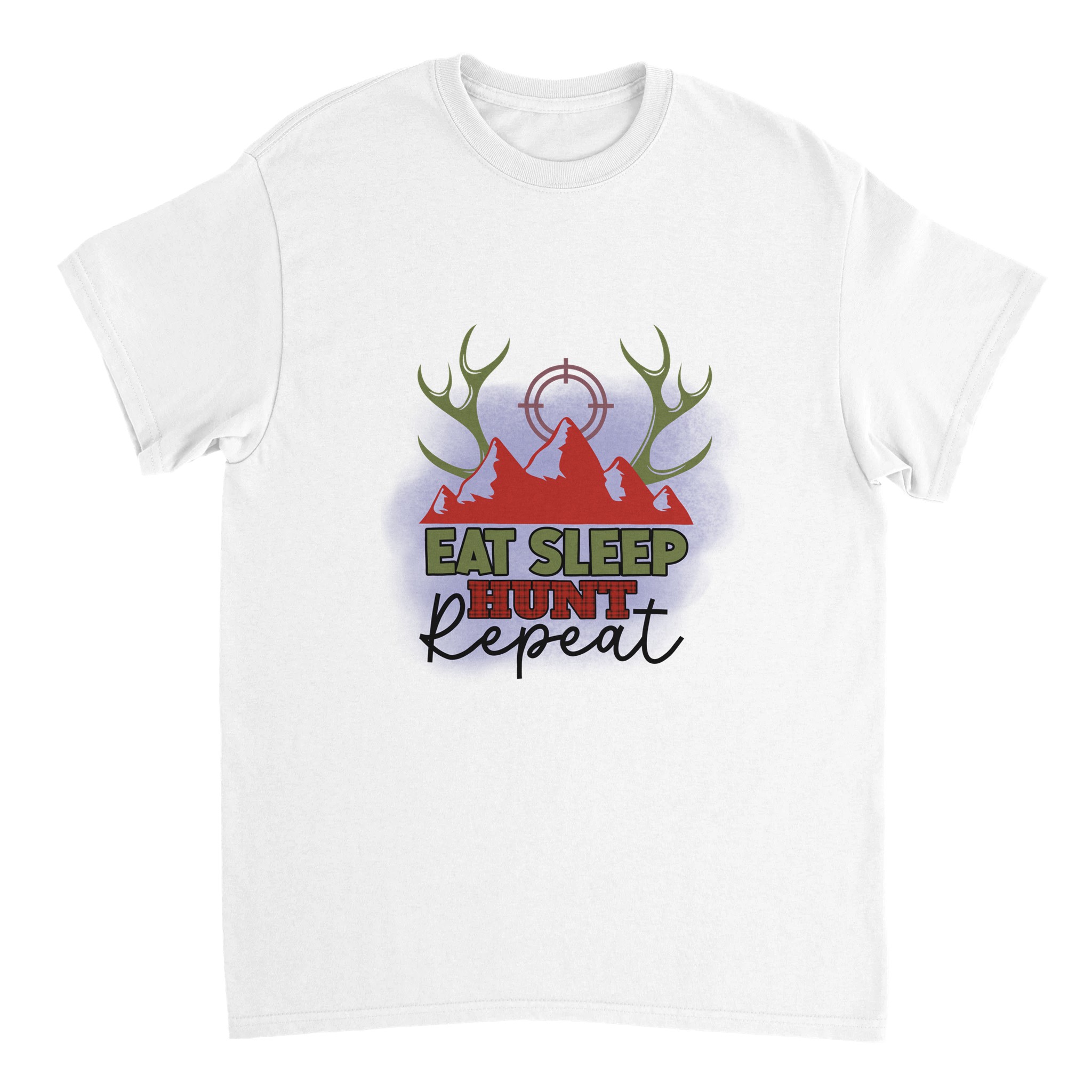 Eat Sleep Hunt Repeat T-Shirt – Outdoor Äventyr, Unisex Bomullströja med Robust Design