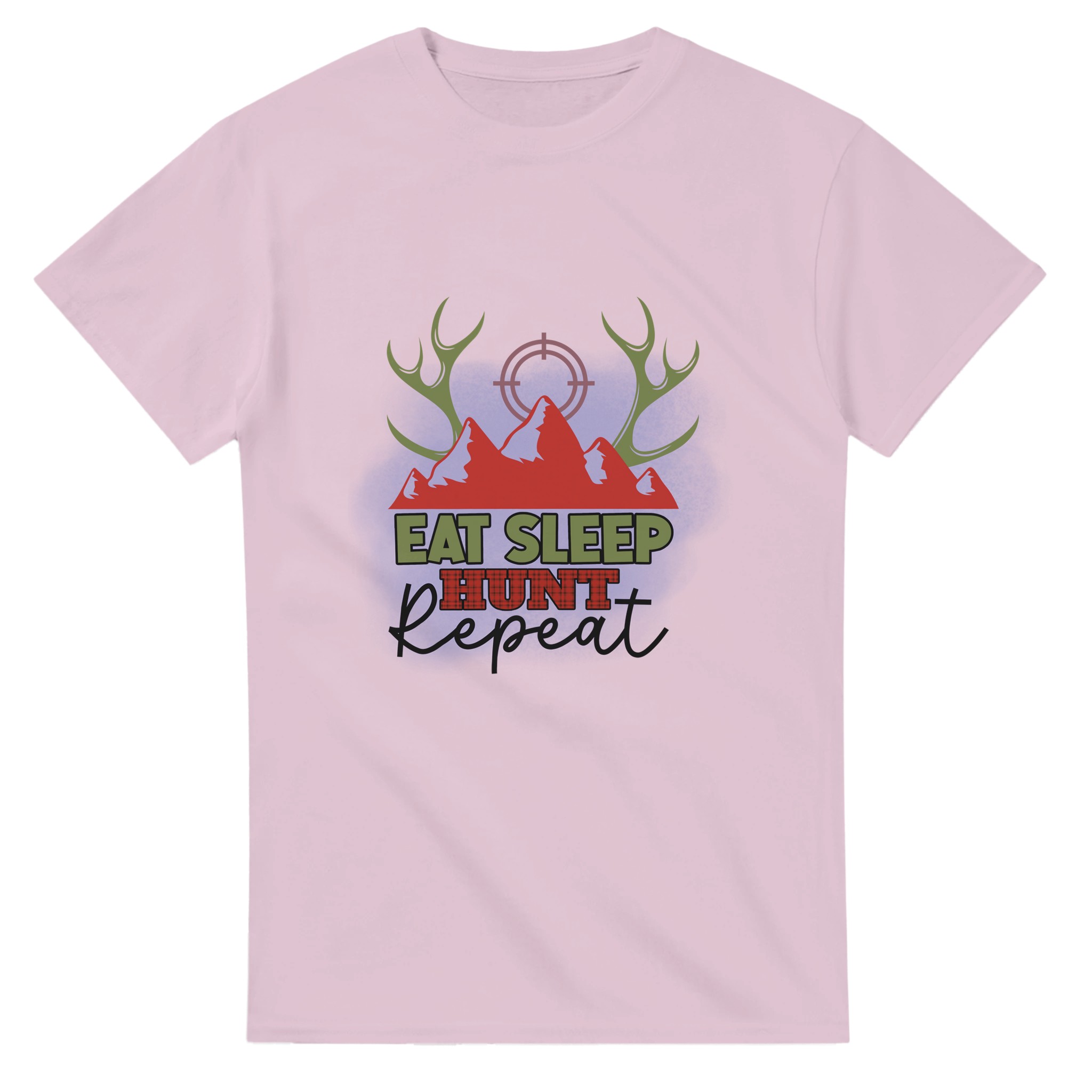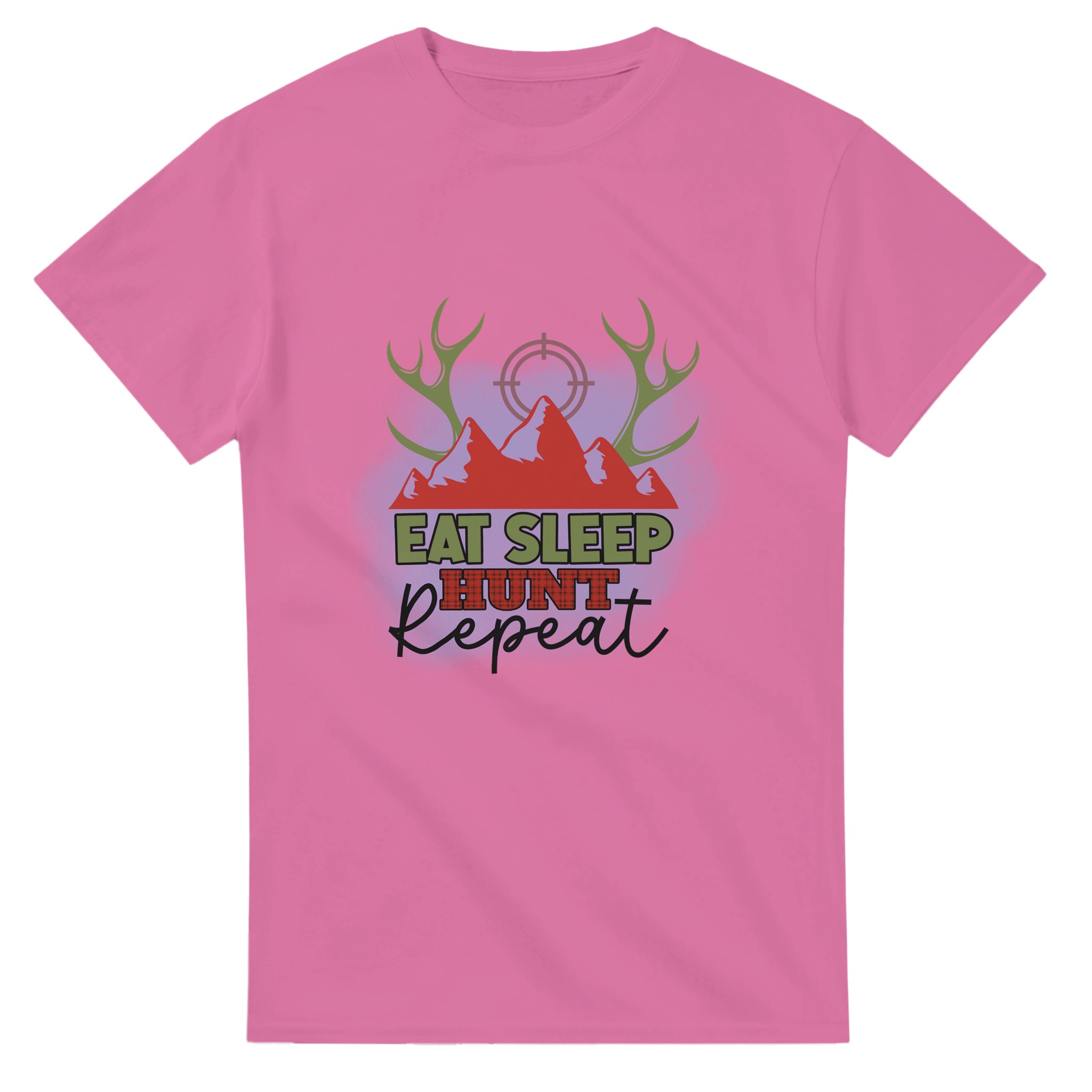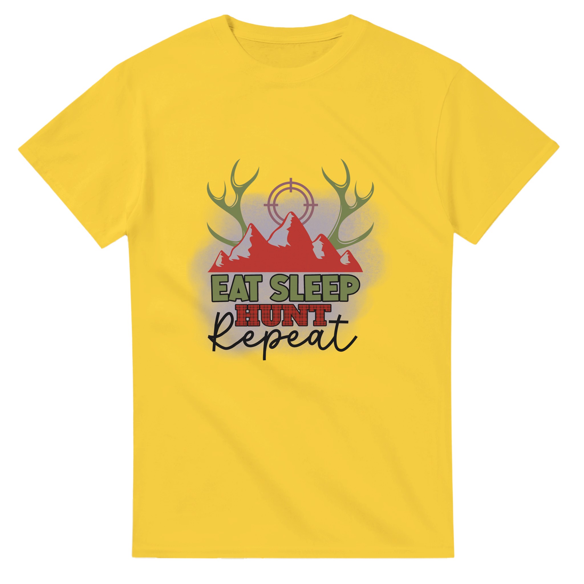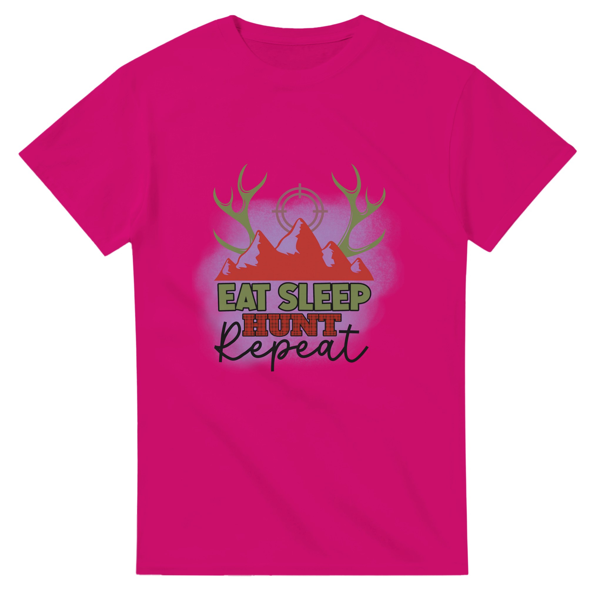 Eat Sleep Hunt Repeat T-Shirt – Outdoor Äventyr, Unisex Bomullströja med Robust Design