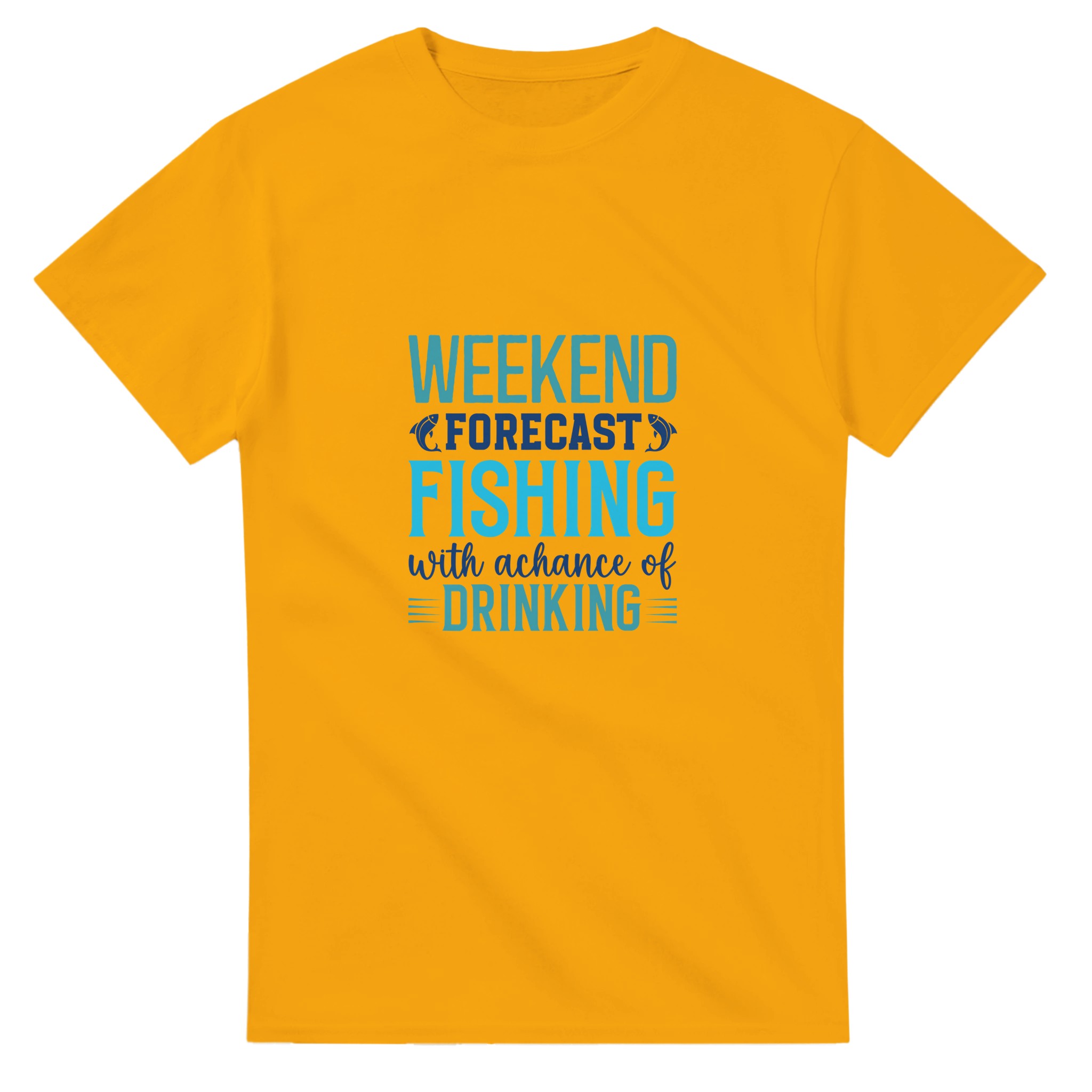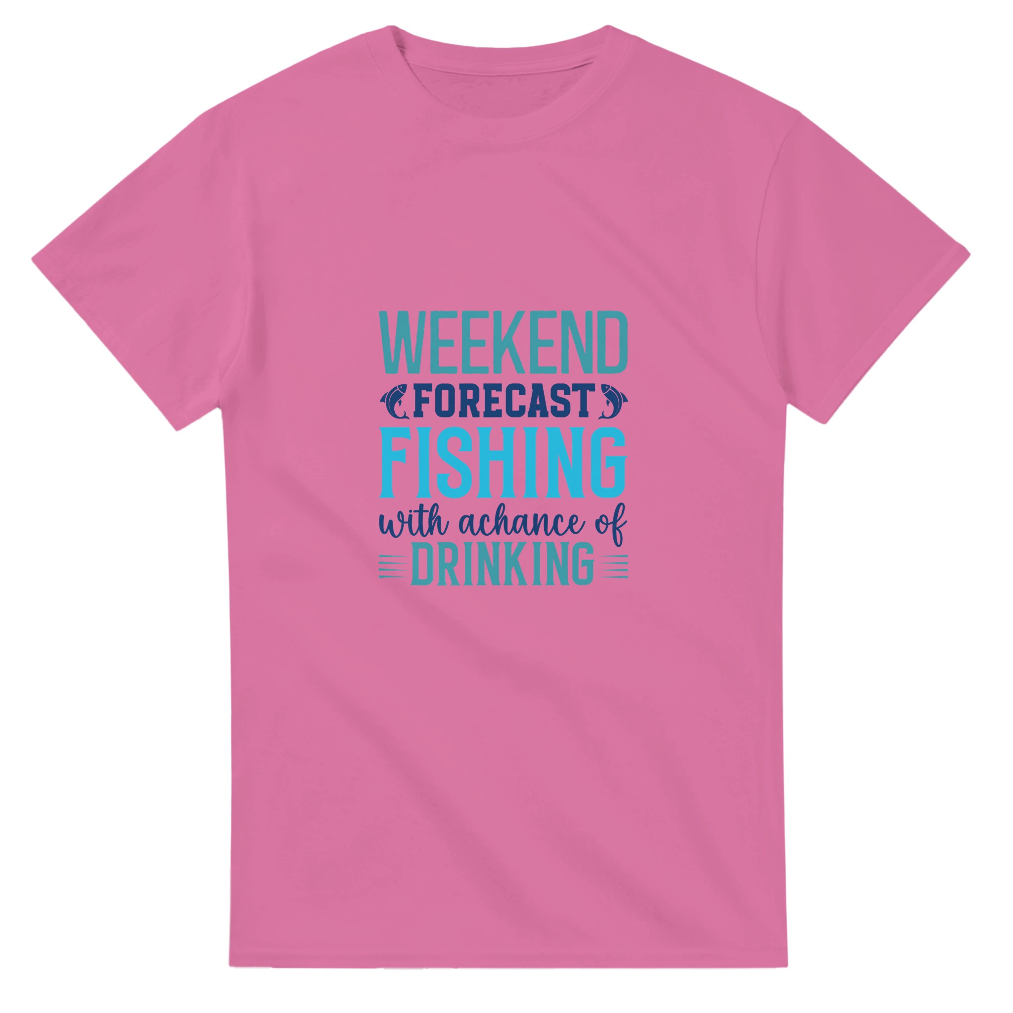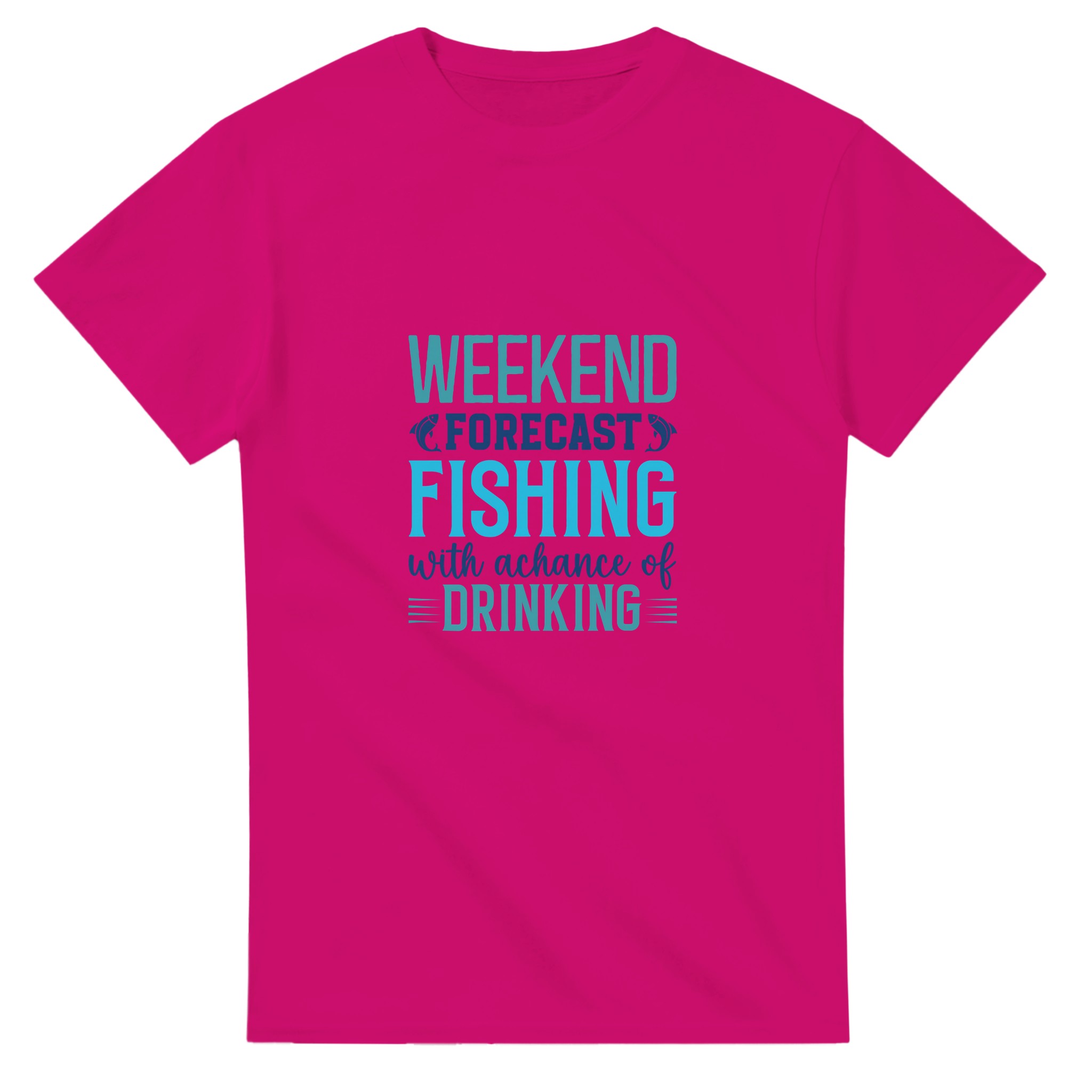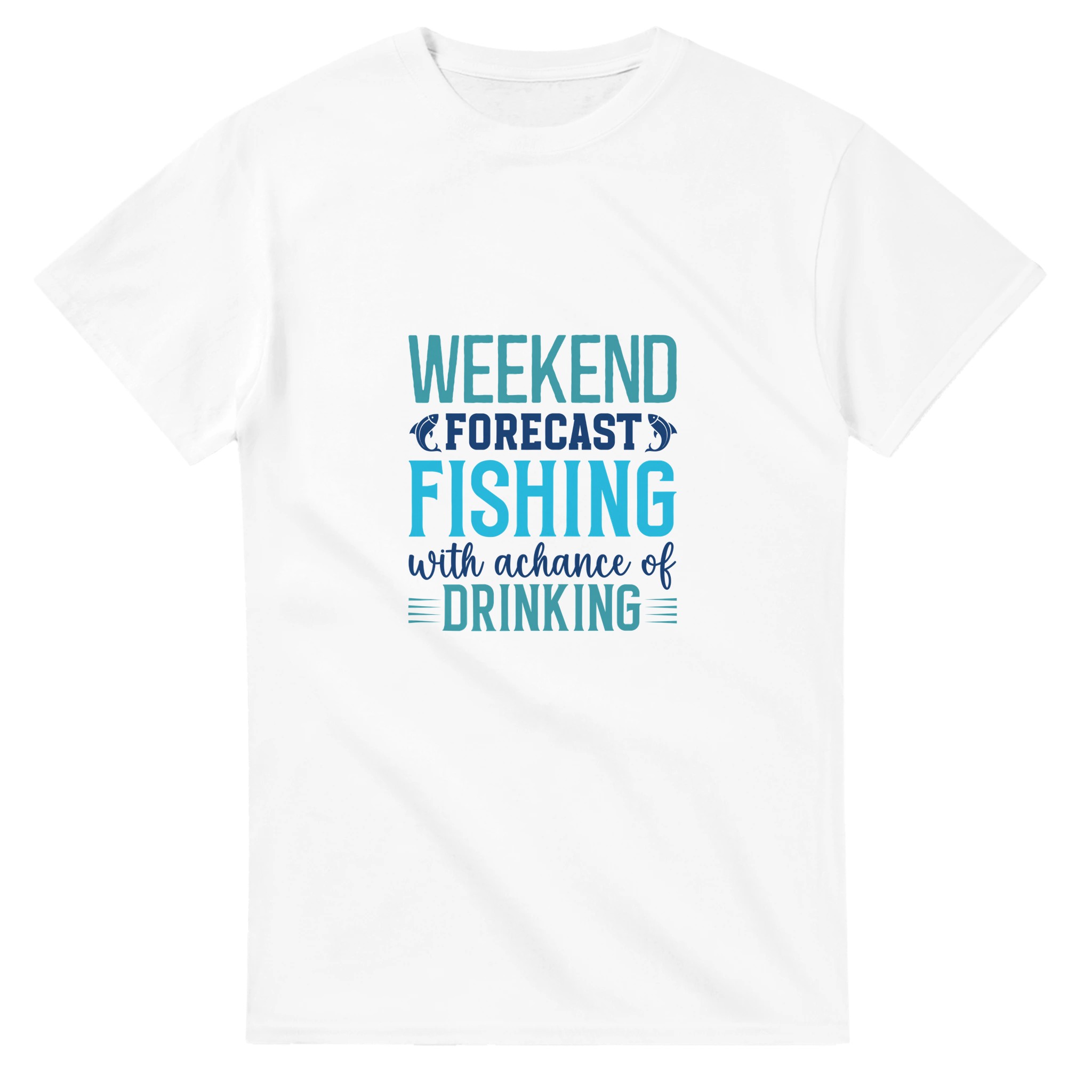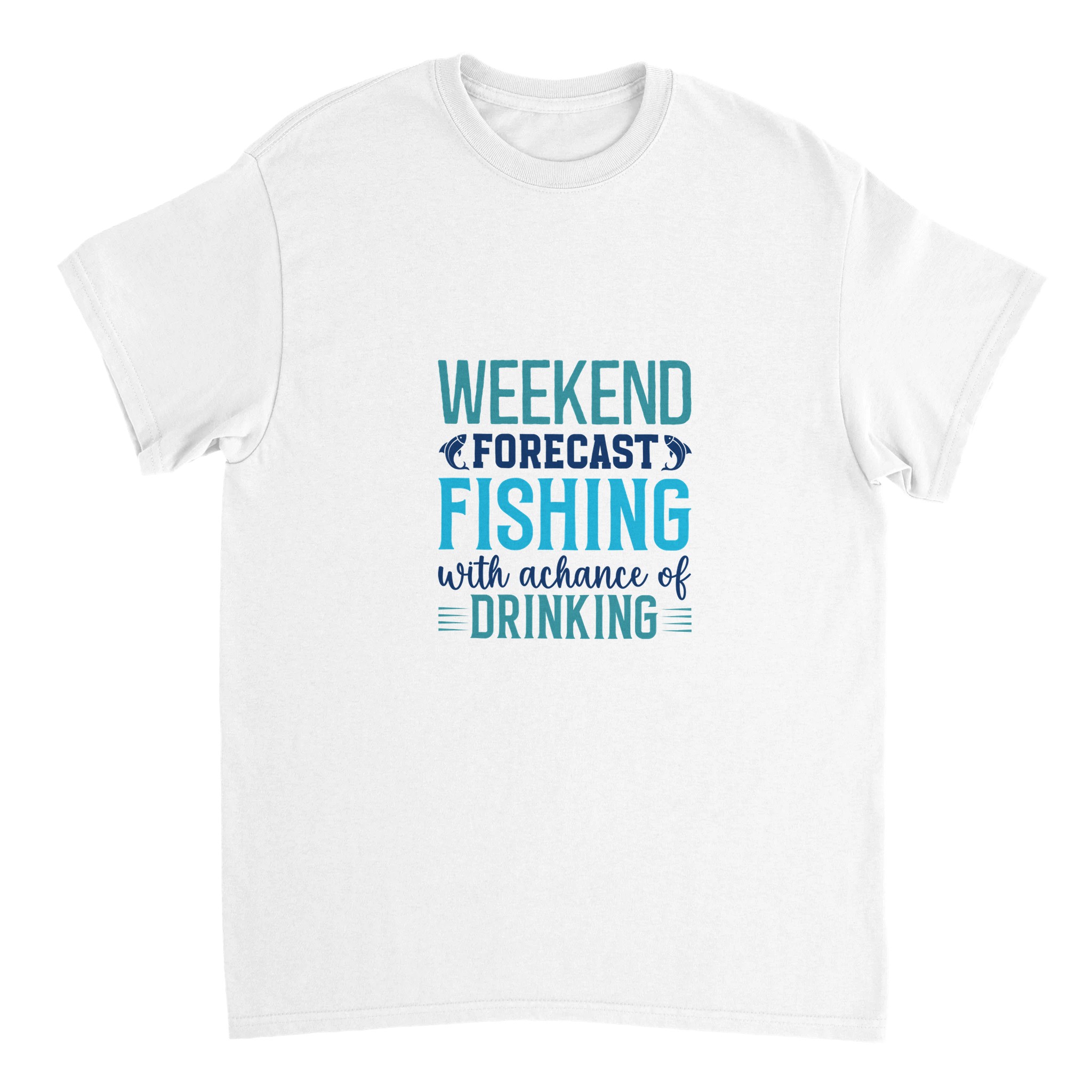 Weekend Forecast Fishing T-shirt | Bekväm Unisex T-shirt i Tung Bomull med Roligt Tryck