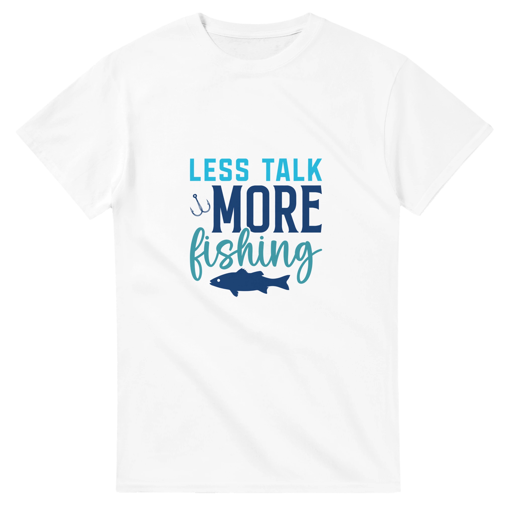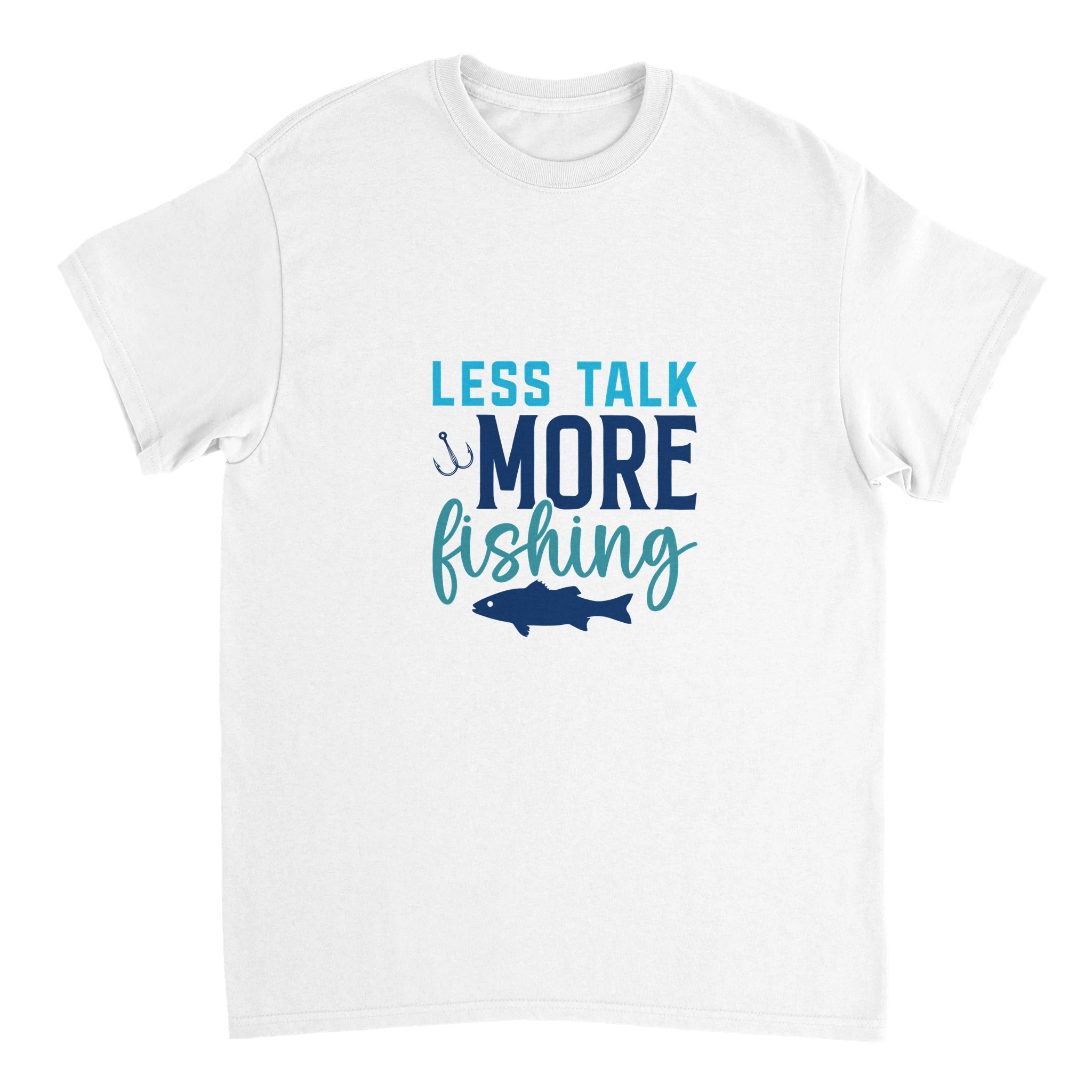 Less Talk More Fishing T-shirt | Hållbar Unisex Tung Bomulls-T-shirt för Fiskeentusiaster