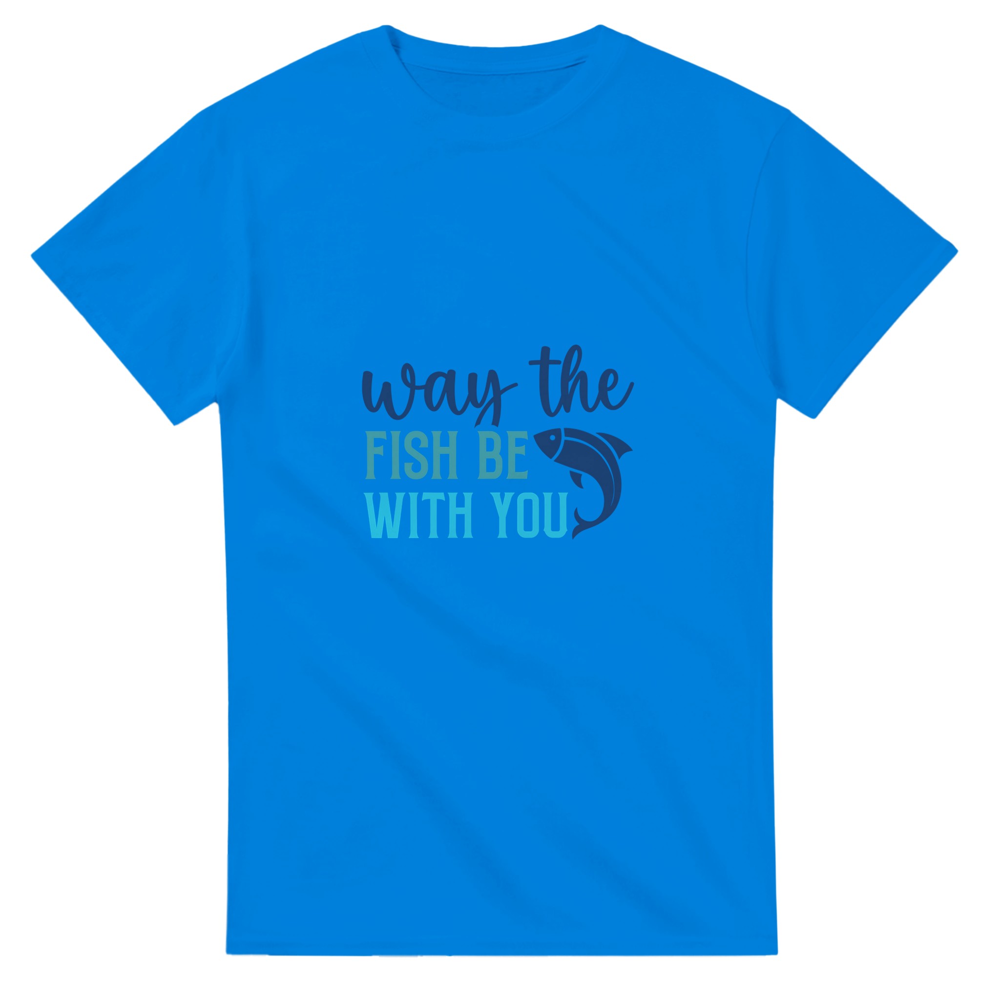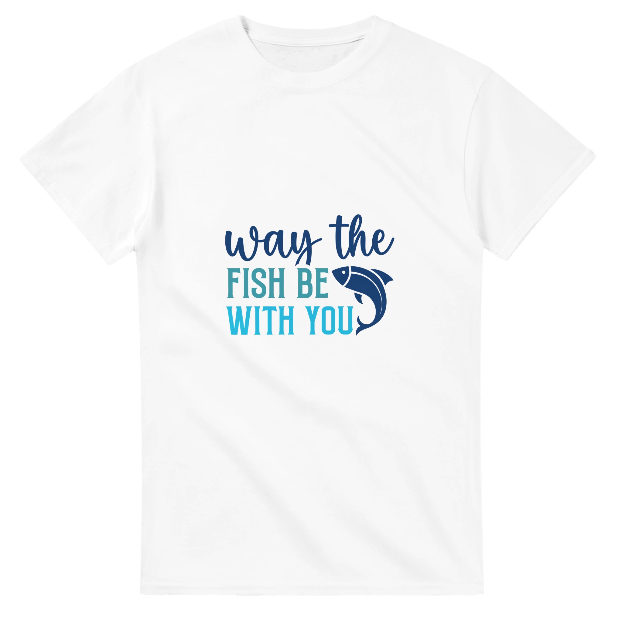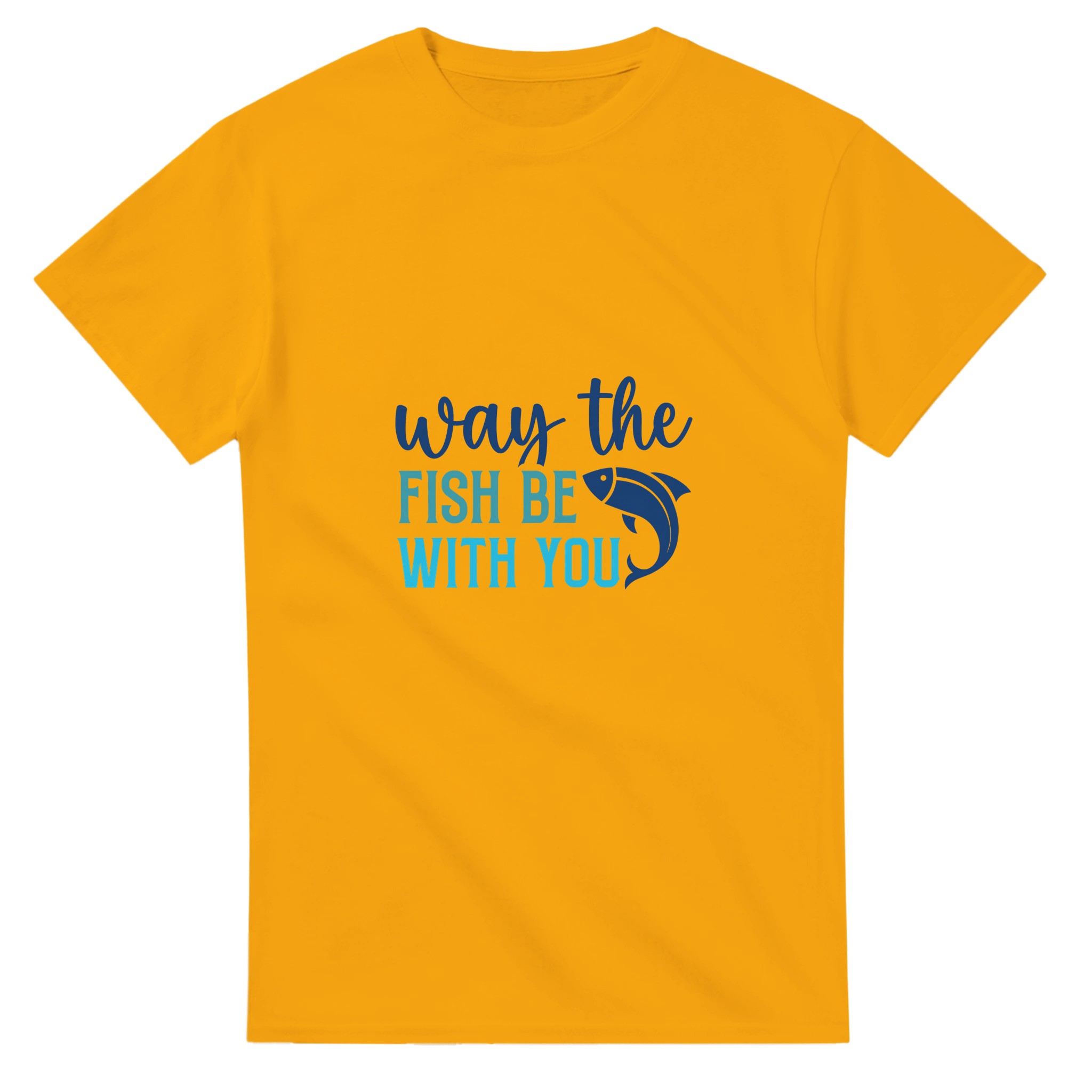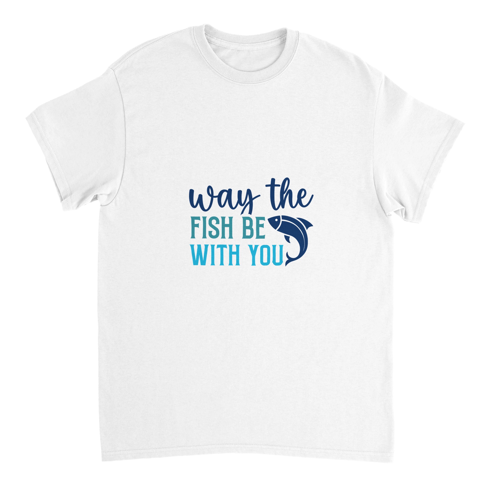 Rolig Nautisk Unisex T-shirt i Tung Bomull – ‘Way the Fish Be With You’ i Åtta Färger