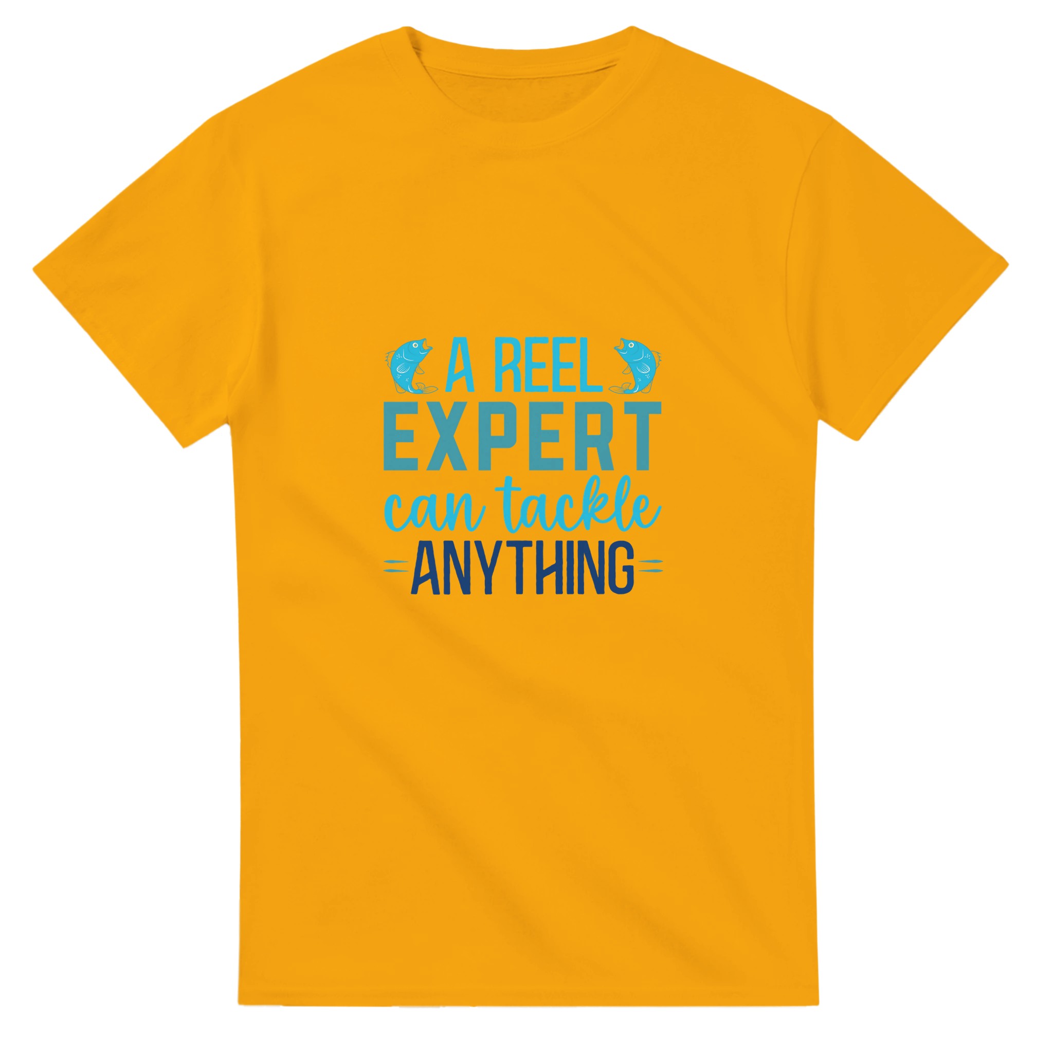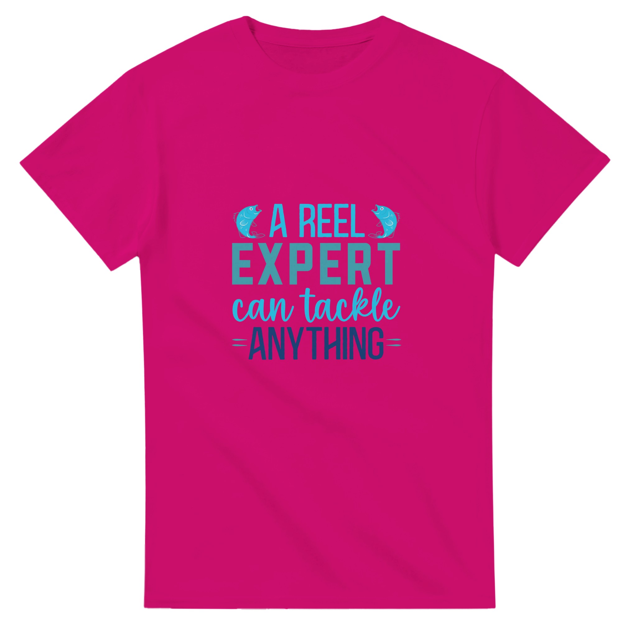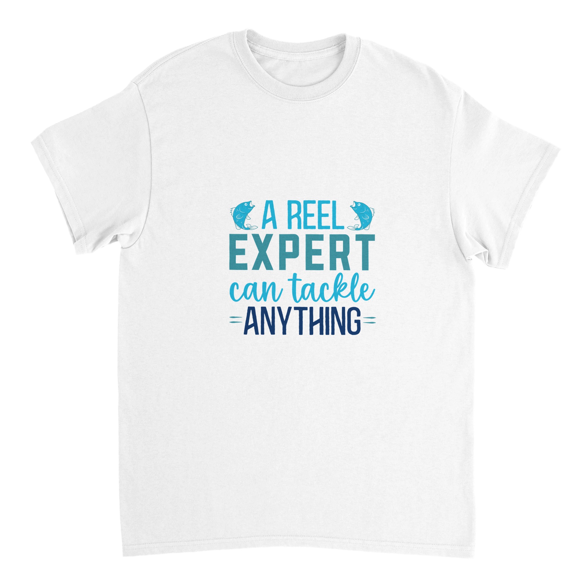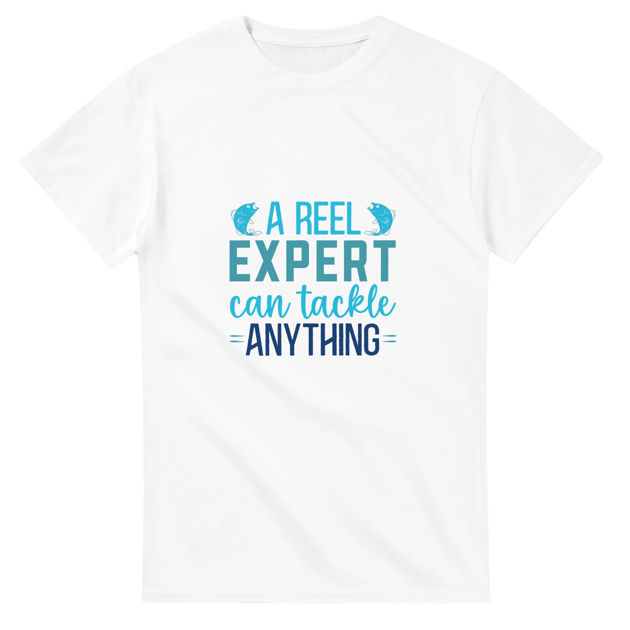 Fiskeinspirerad Unisex T-shirt | “A Reel Expert Can Tackle Anything” – Hållbar Bomull & Flera Färger