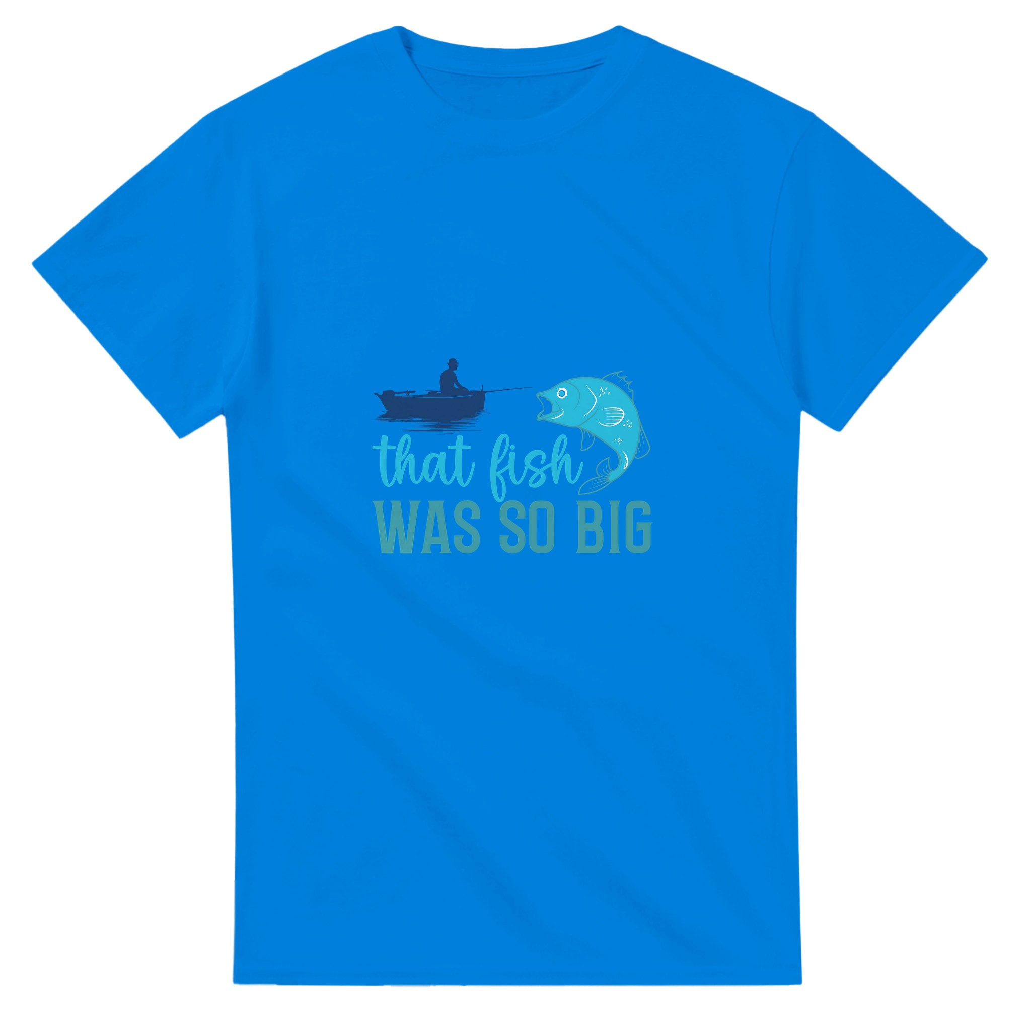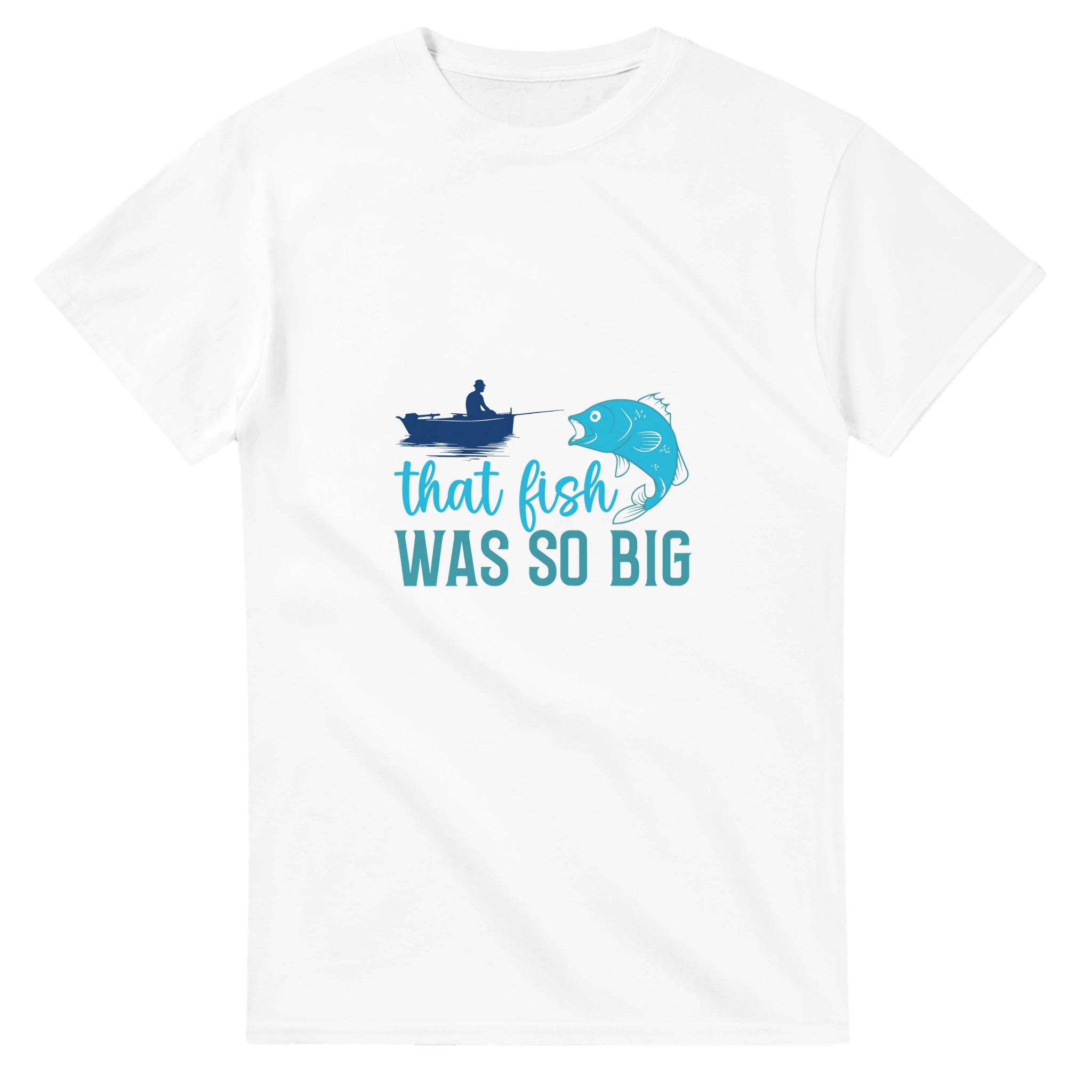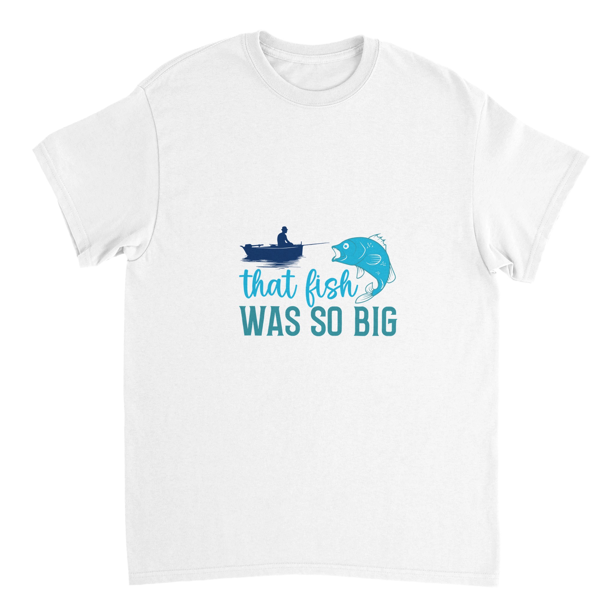 Unisex ‘That Fish Was So Big’ T-shirt i Tung Bomull | Fiskedröm & Skön Passform