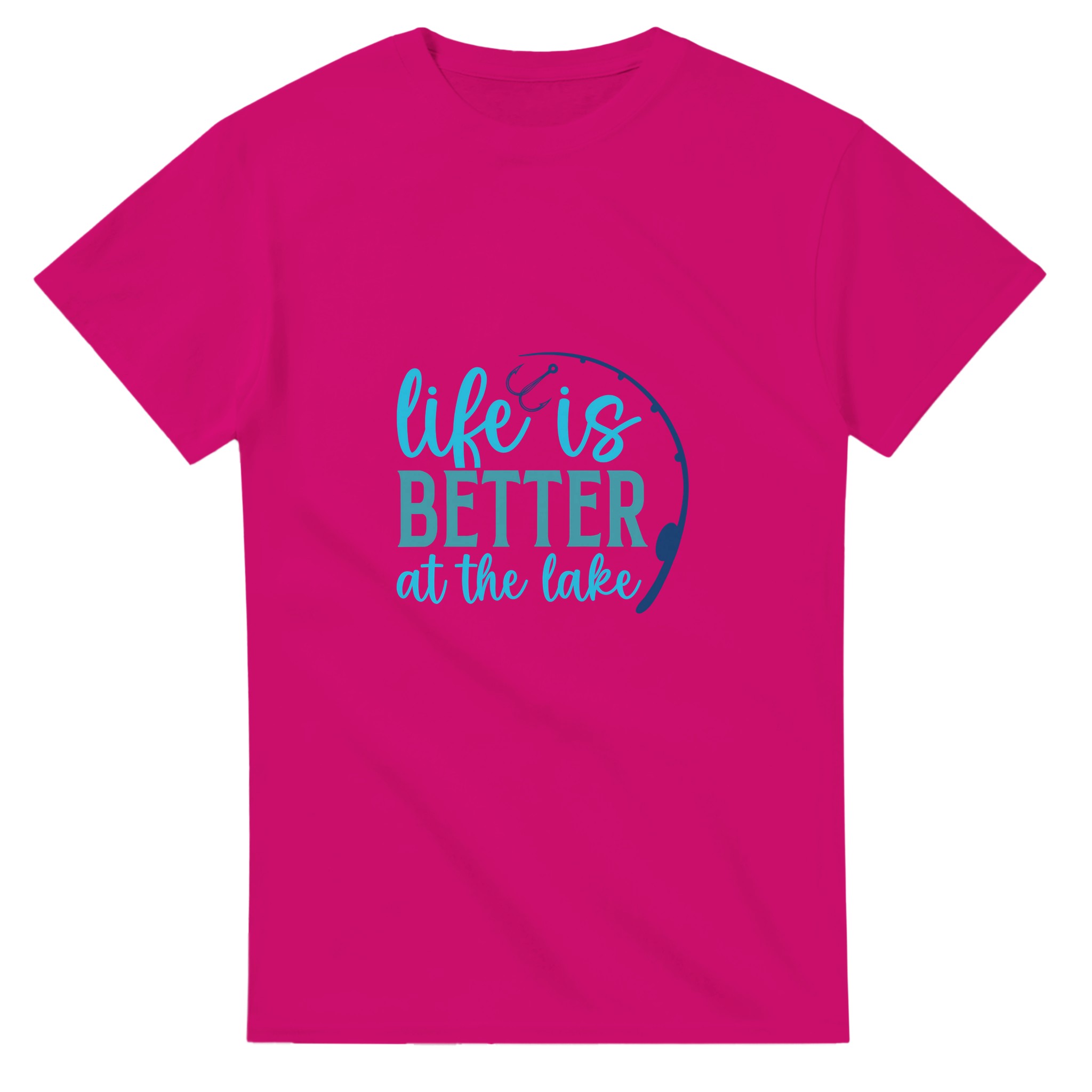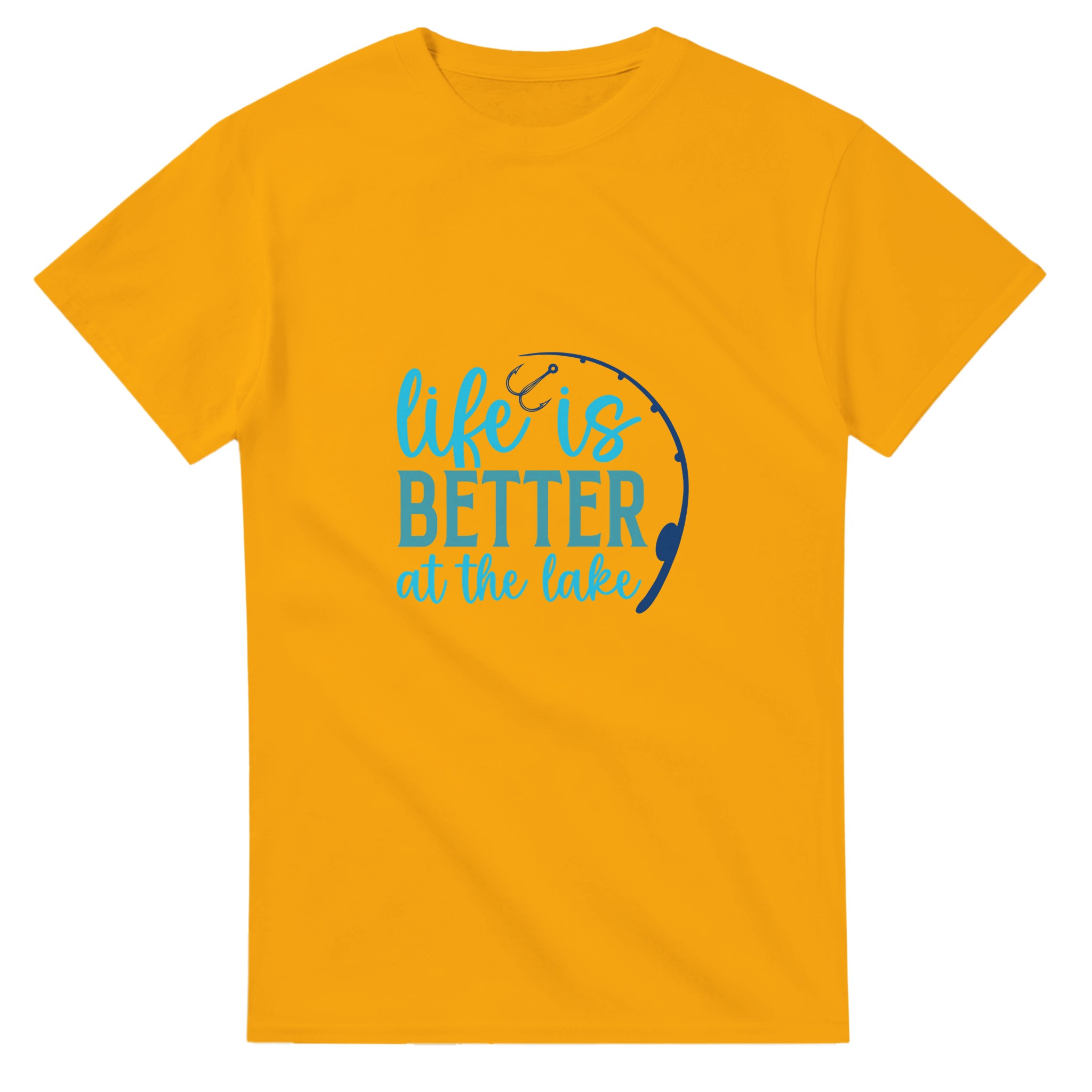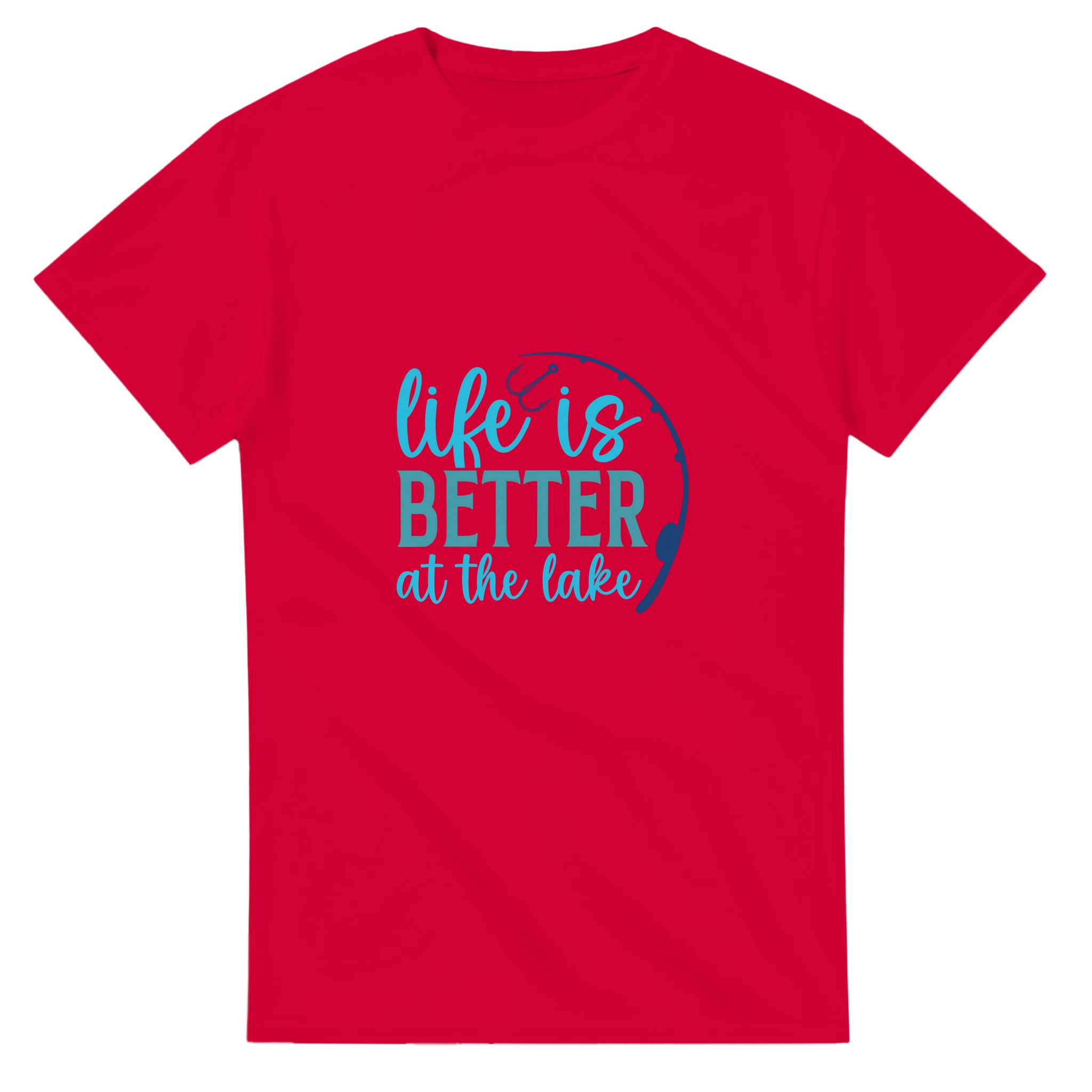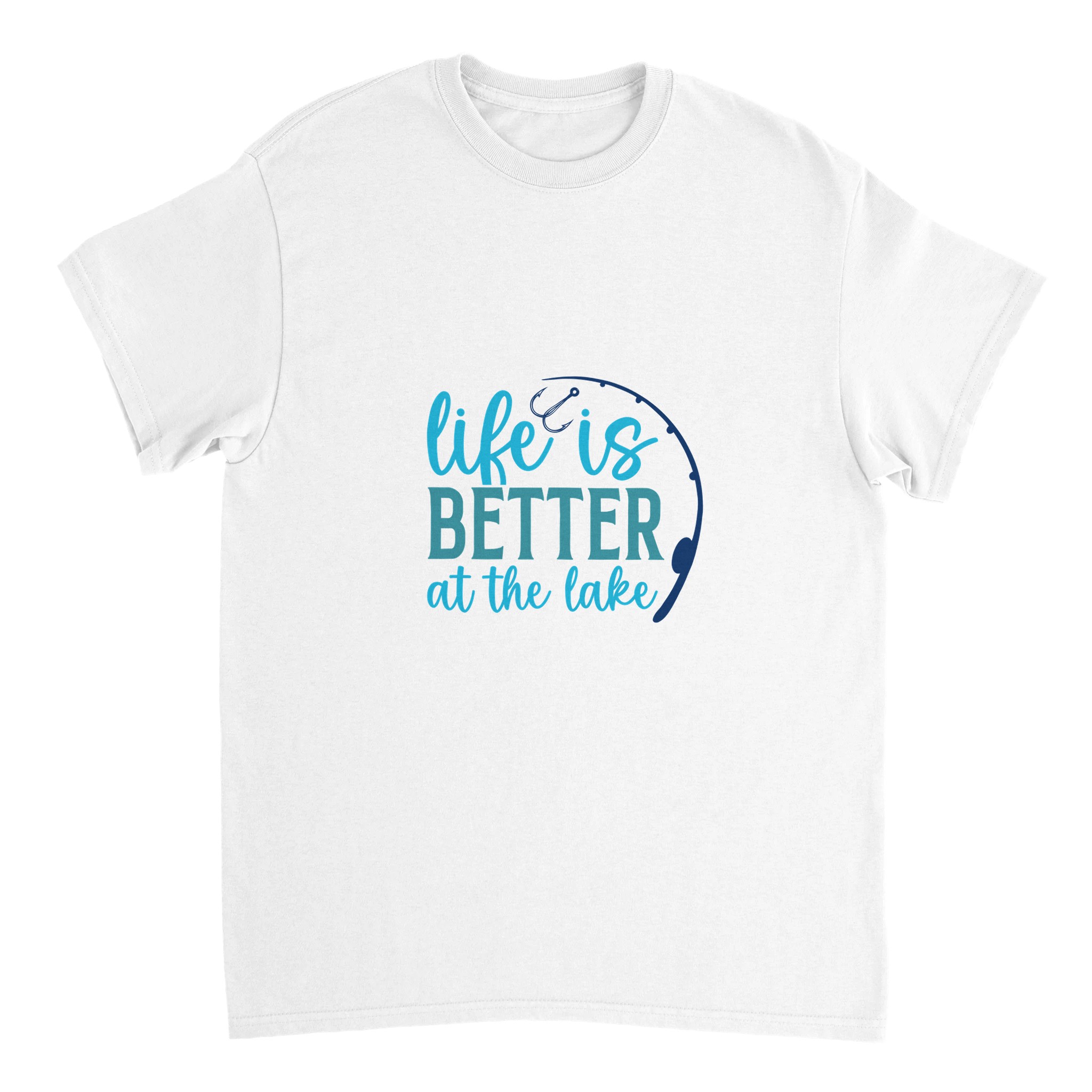 “Life is Better at the Lake” T-shirt | Hållbar & Bekväm Unisex Bomulls T-shirt för Fiskeentusiasten