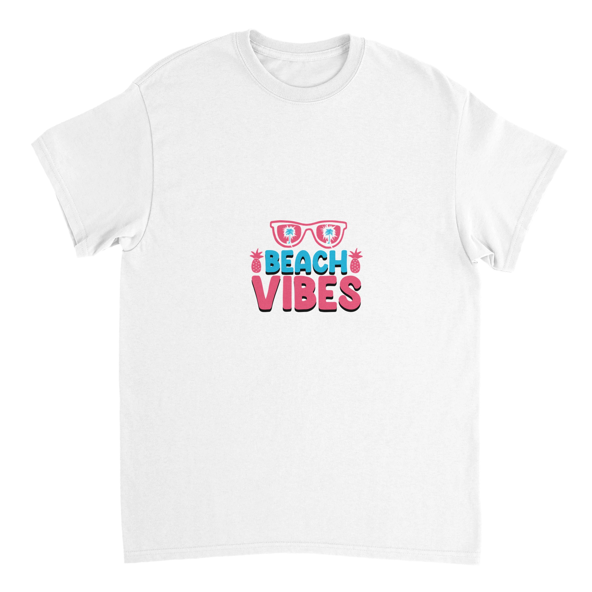 Hållbar Unisex T-shirt i Tung Bomull med “Beach Vibes” Tryck | Perfekt för Sommar & Vardag