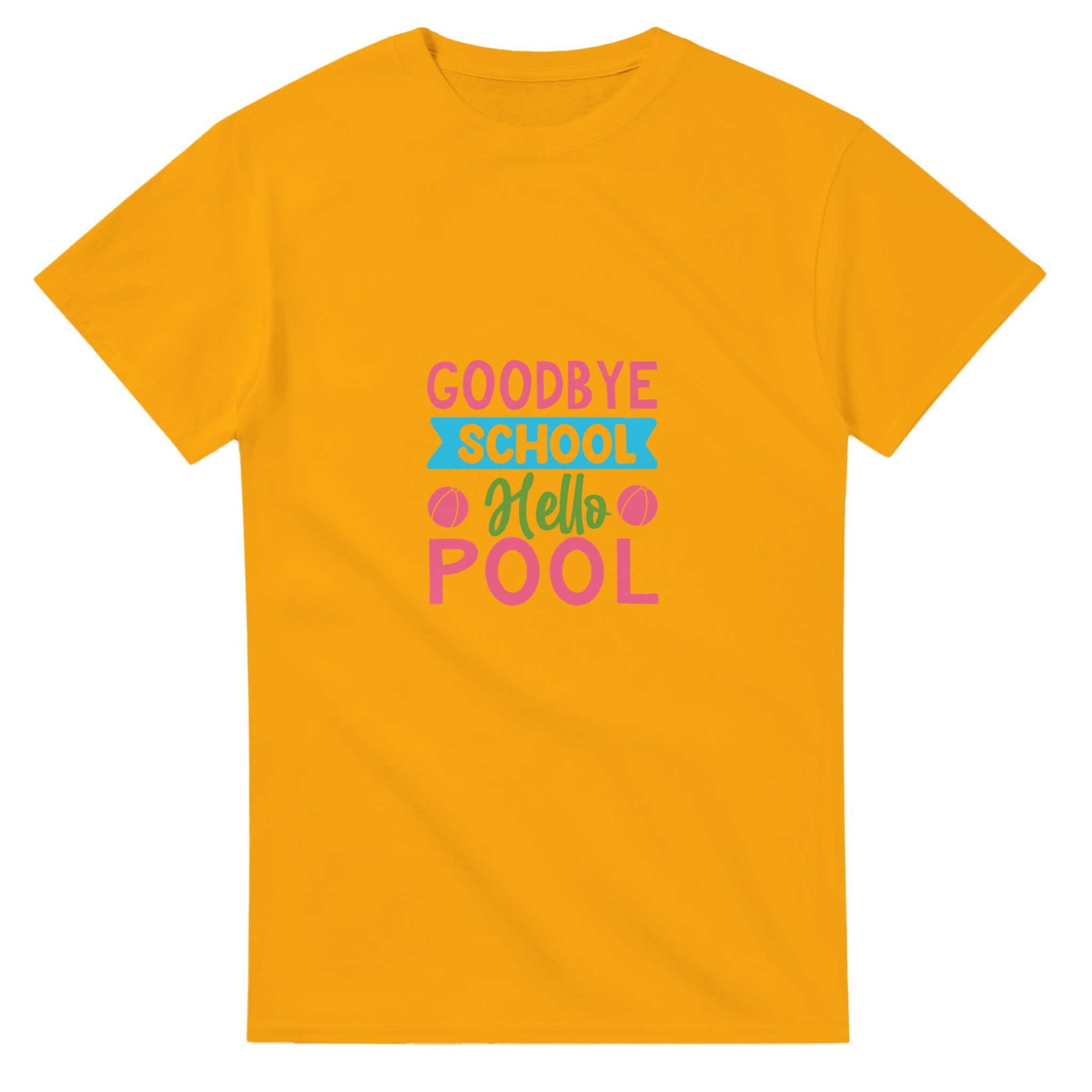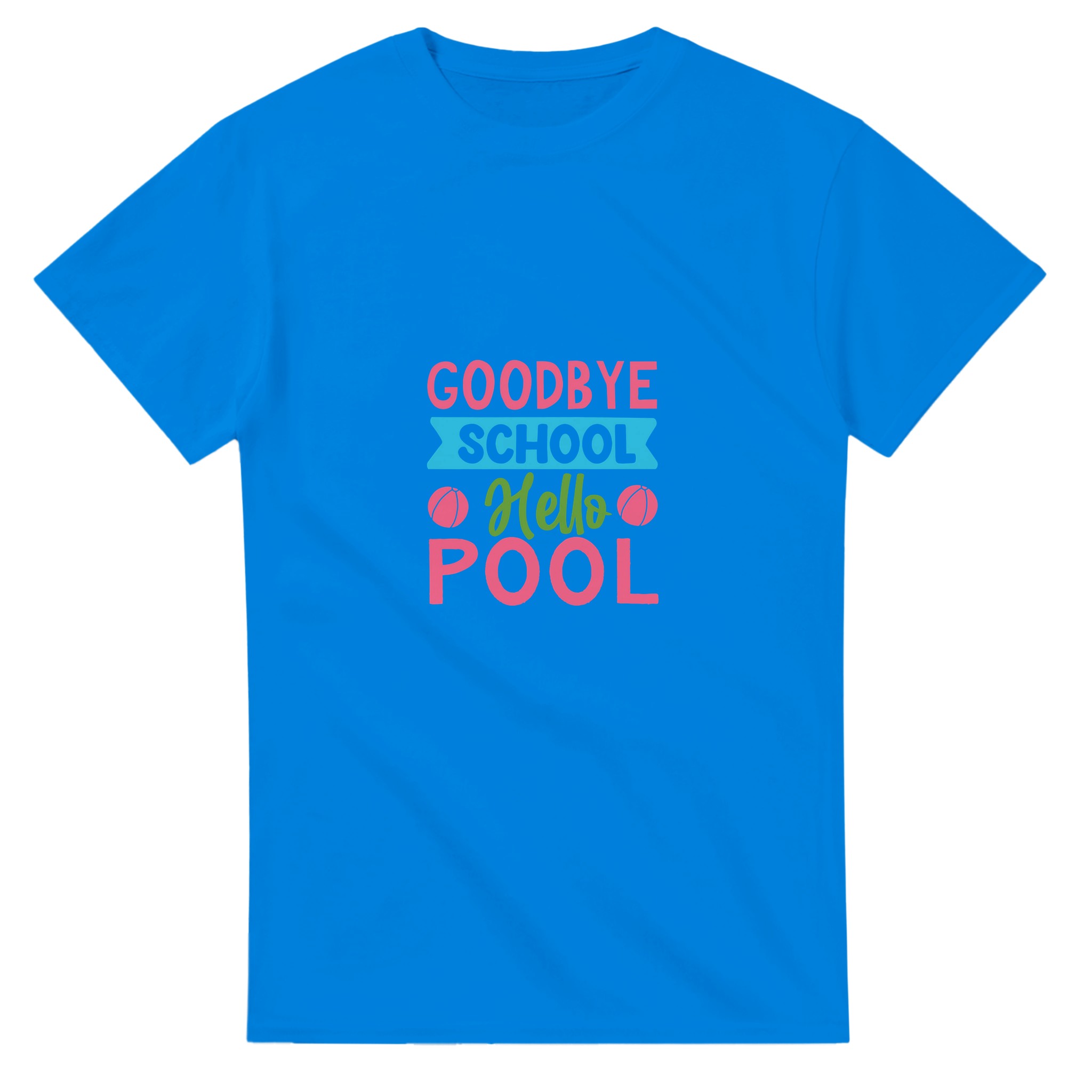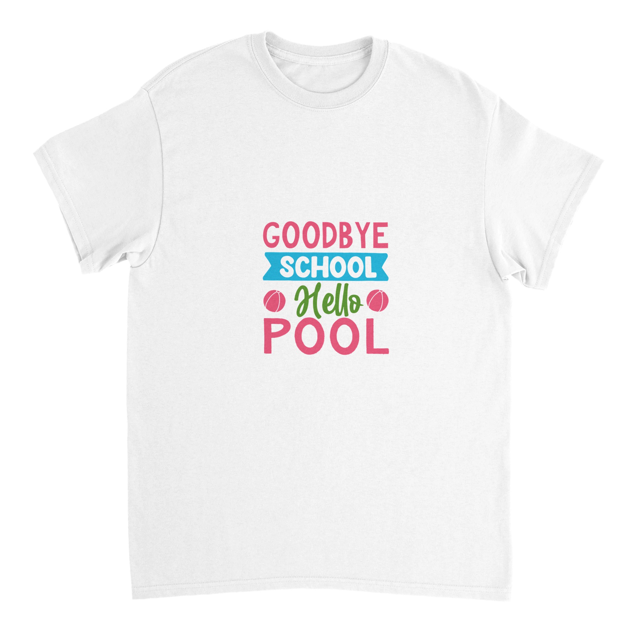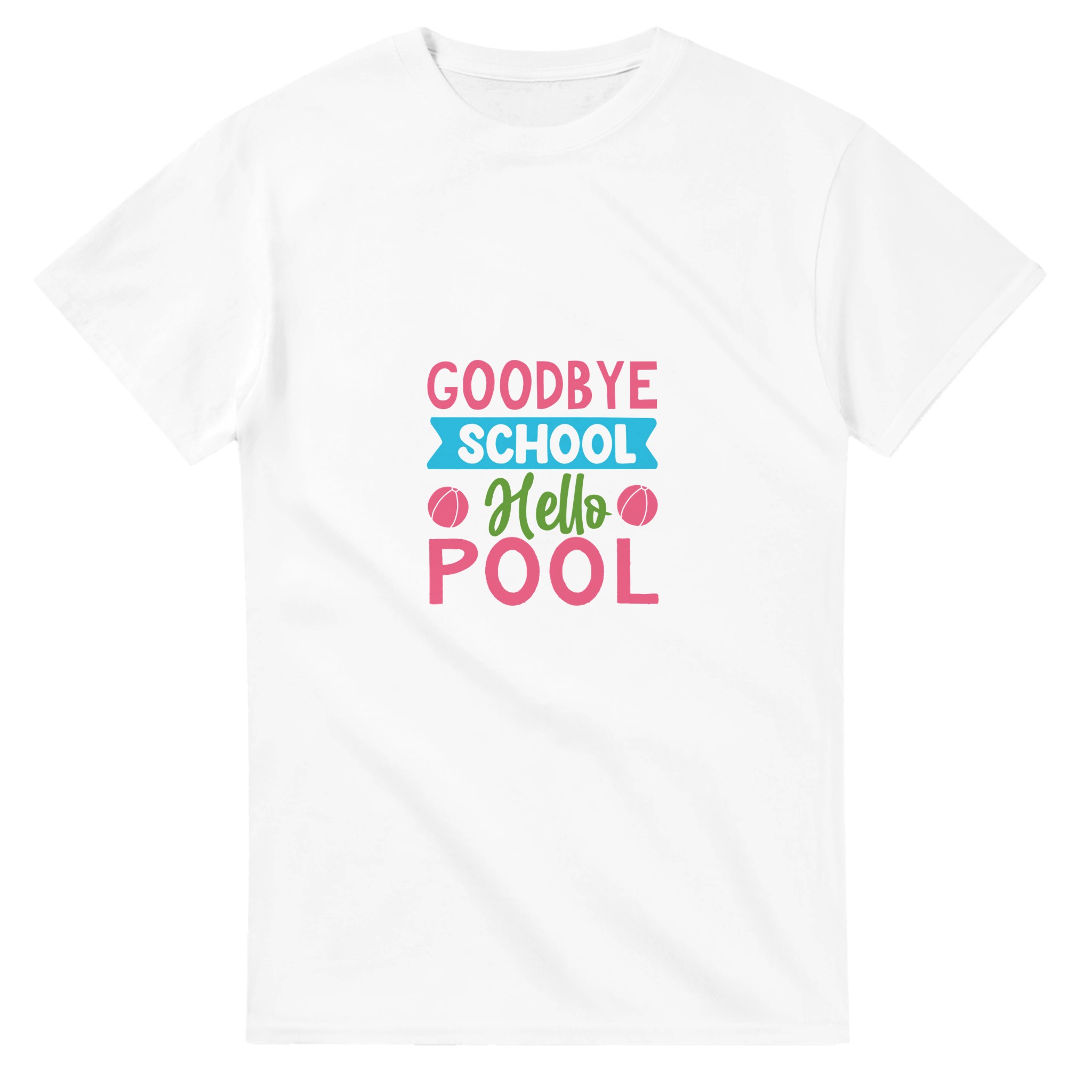 Goodbye School Hello Pool T-shirt | Livlig Unisex Tung Bomull för Sommarstil & Vardagsglädje