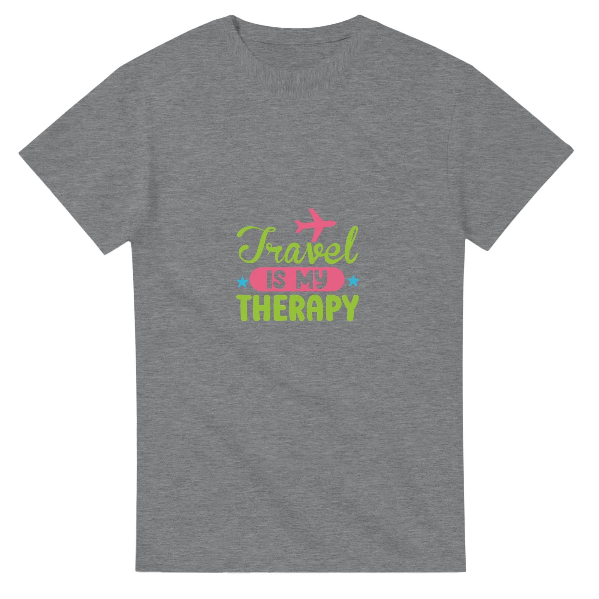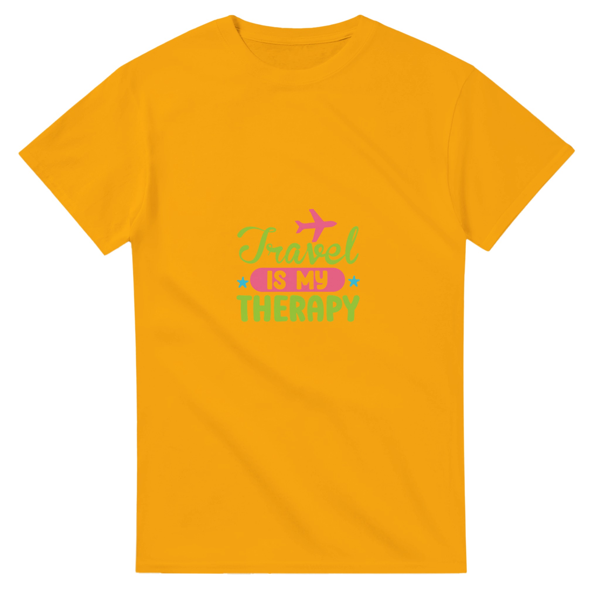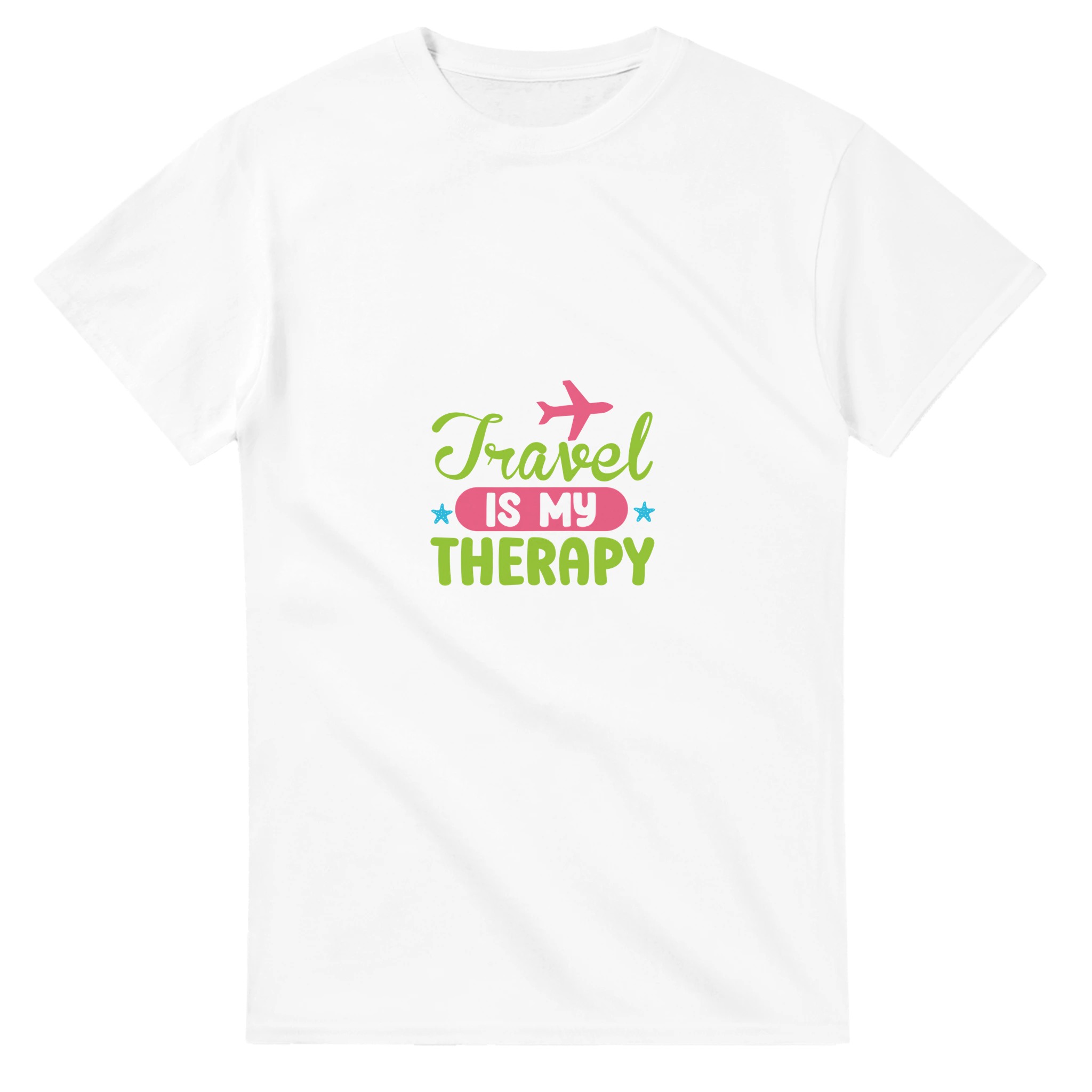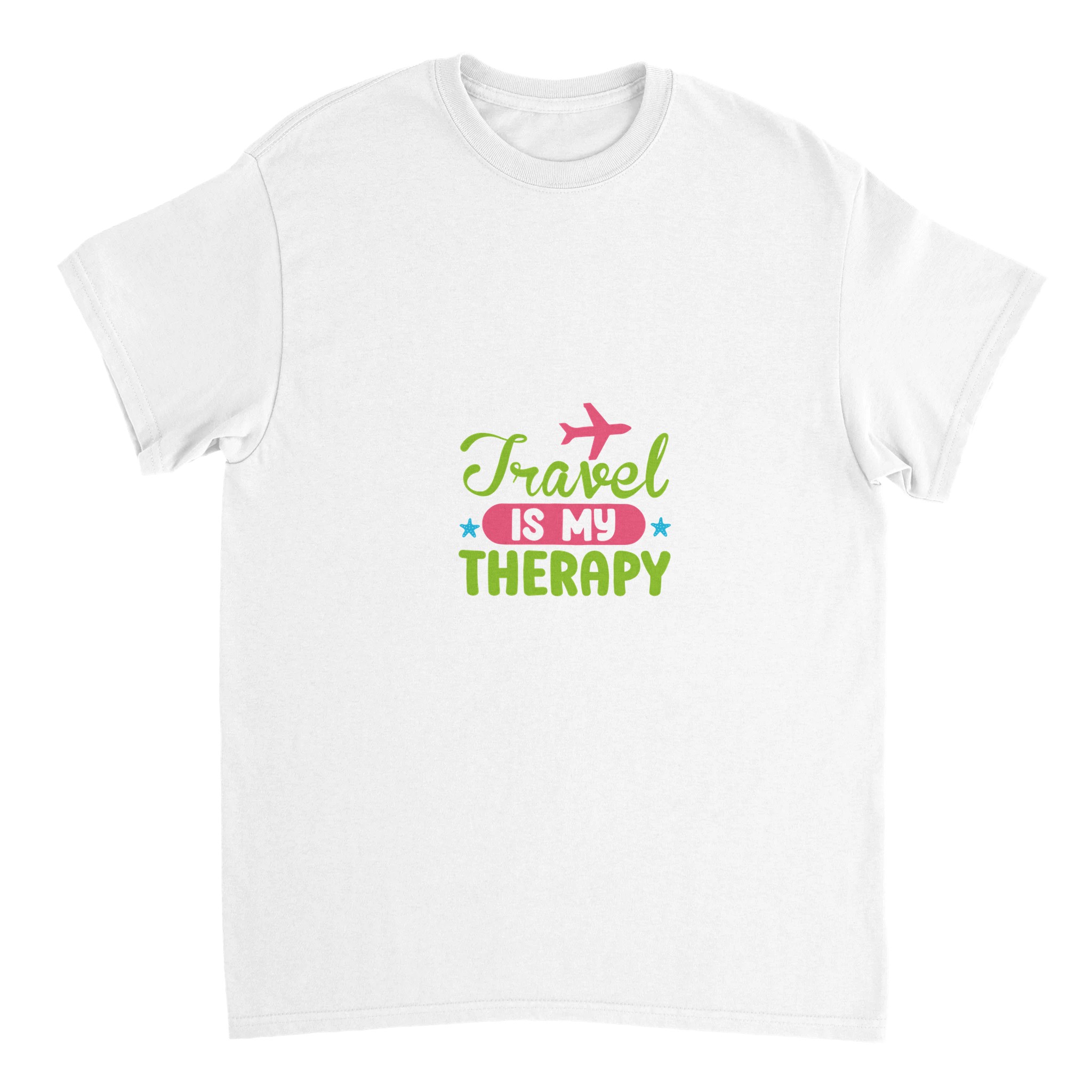 Unisex T-shirt i Tung Bomull: “Travel is My Therapy” Design | Välj Bland Flera Färger & Storlekar