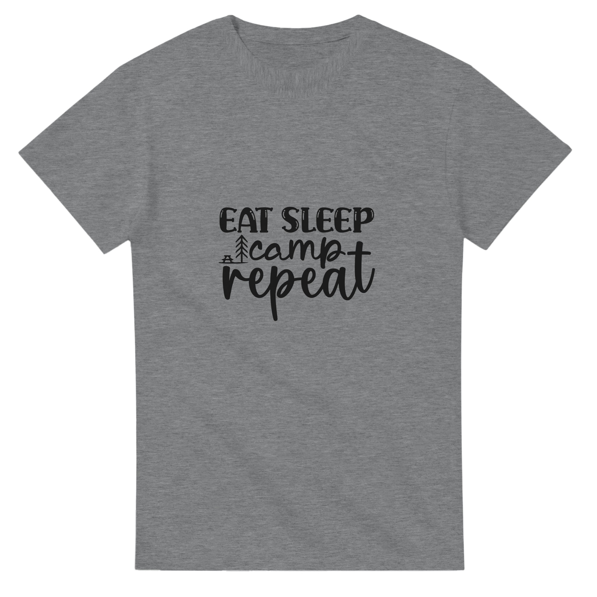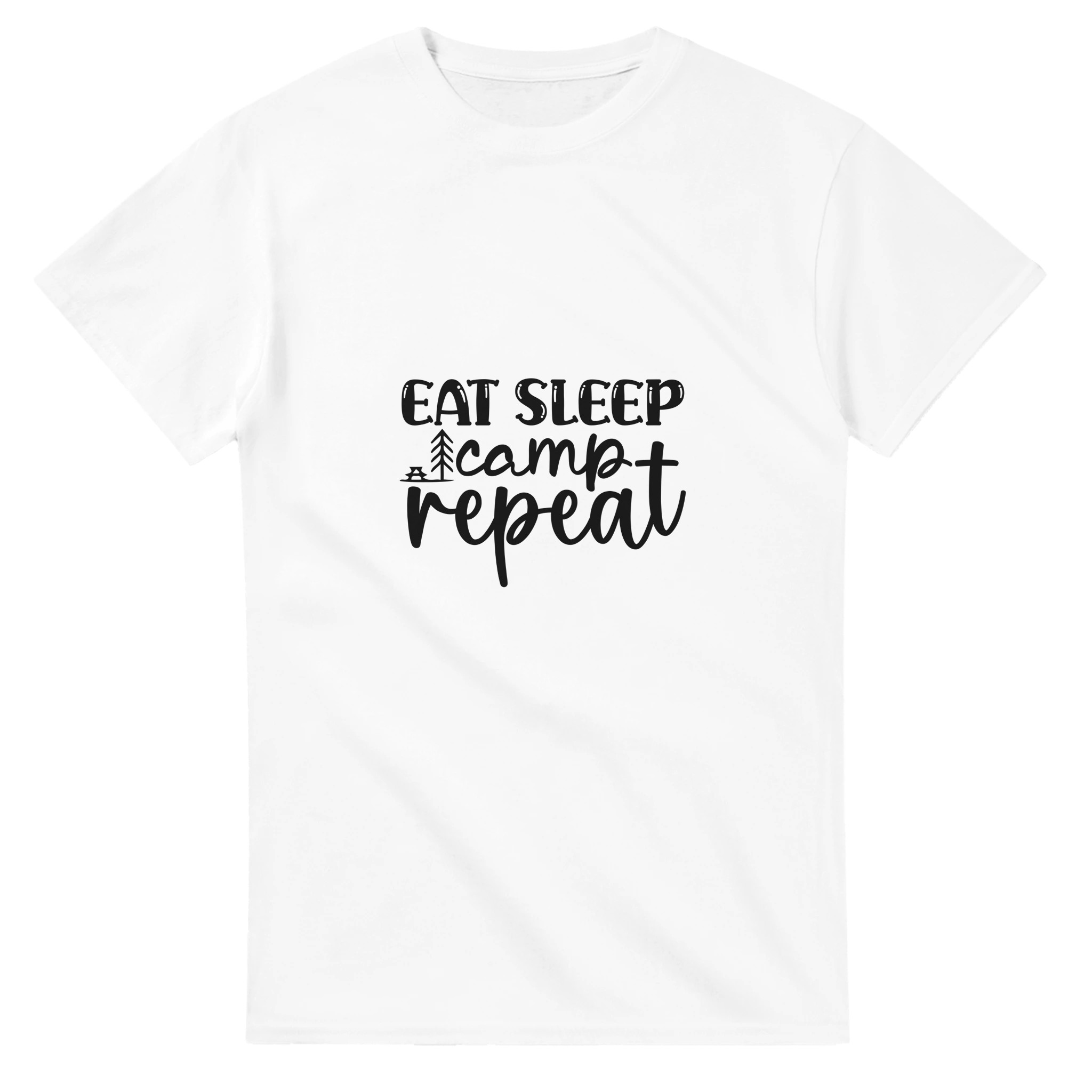 Eat Sleep Camp Repeat | Hållbar Unisex T-shirt i Tung Bomull – Perfekt för Äventyret!