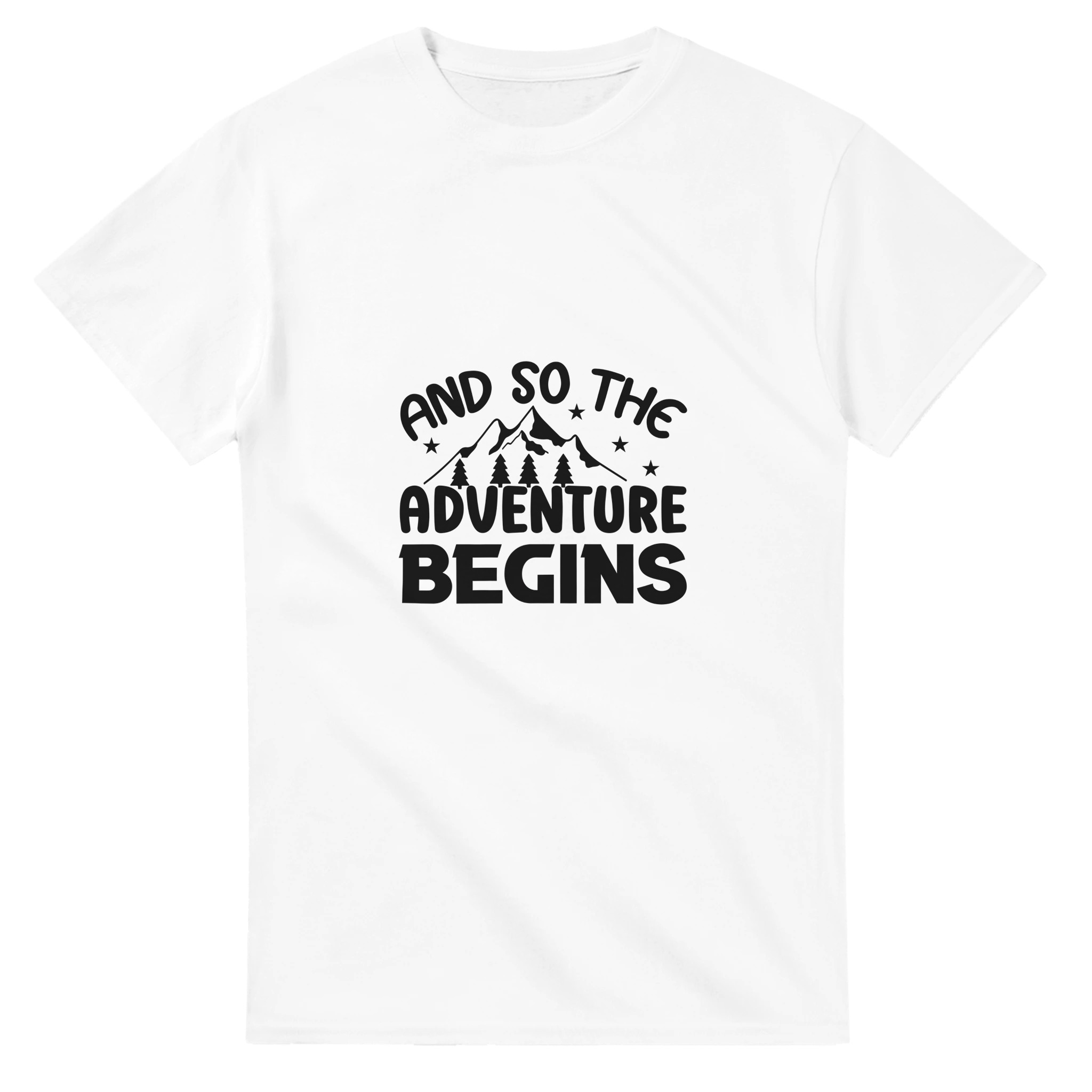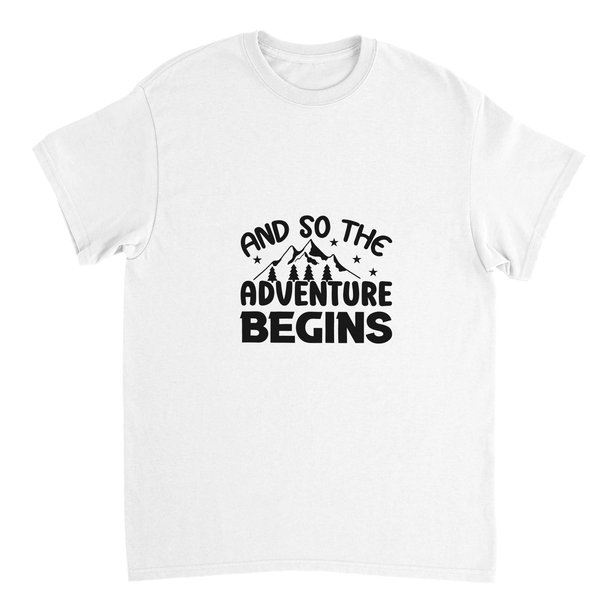 Unisex T-shirt med äventyrstryck | “And So The Adventure Begins” – Perfekt för Outdoors & Vardag