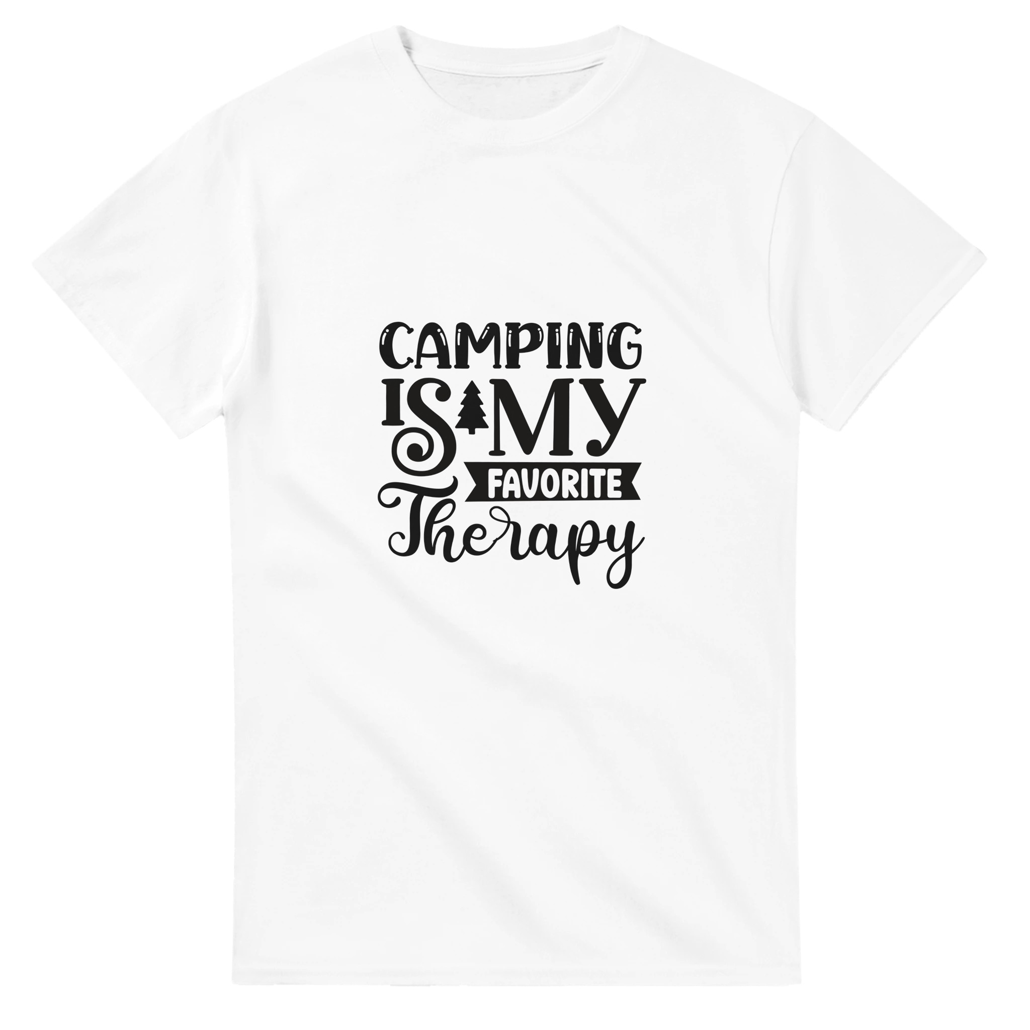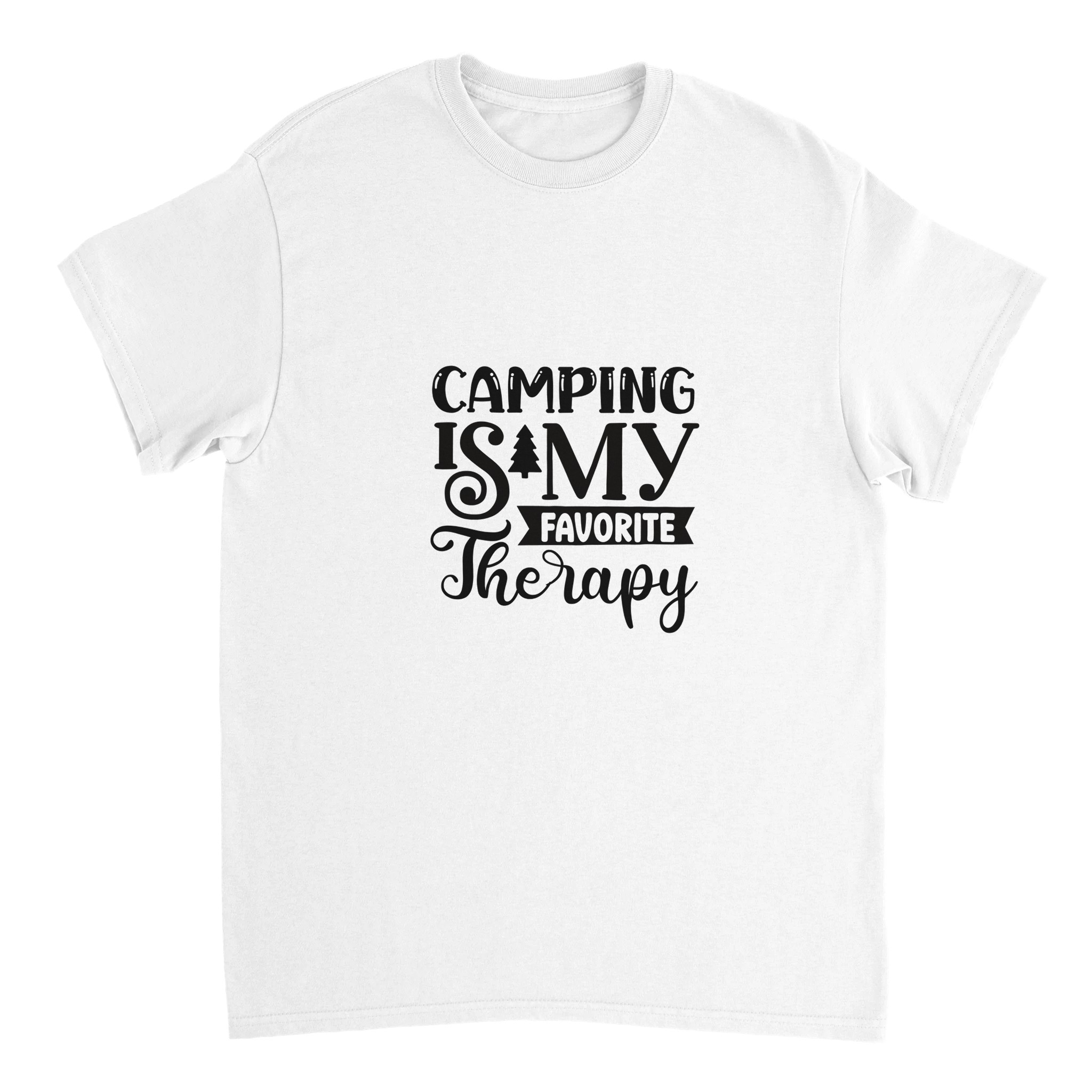 Camping Is My Favorite Therapy | Robust Unisex T-shirt i Tung Bomull – Välj din Färg & Storlek!