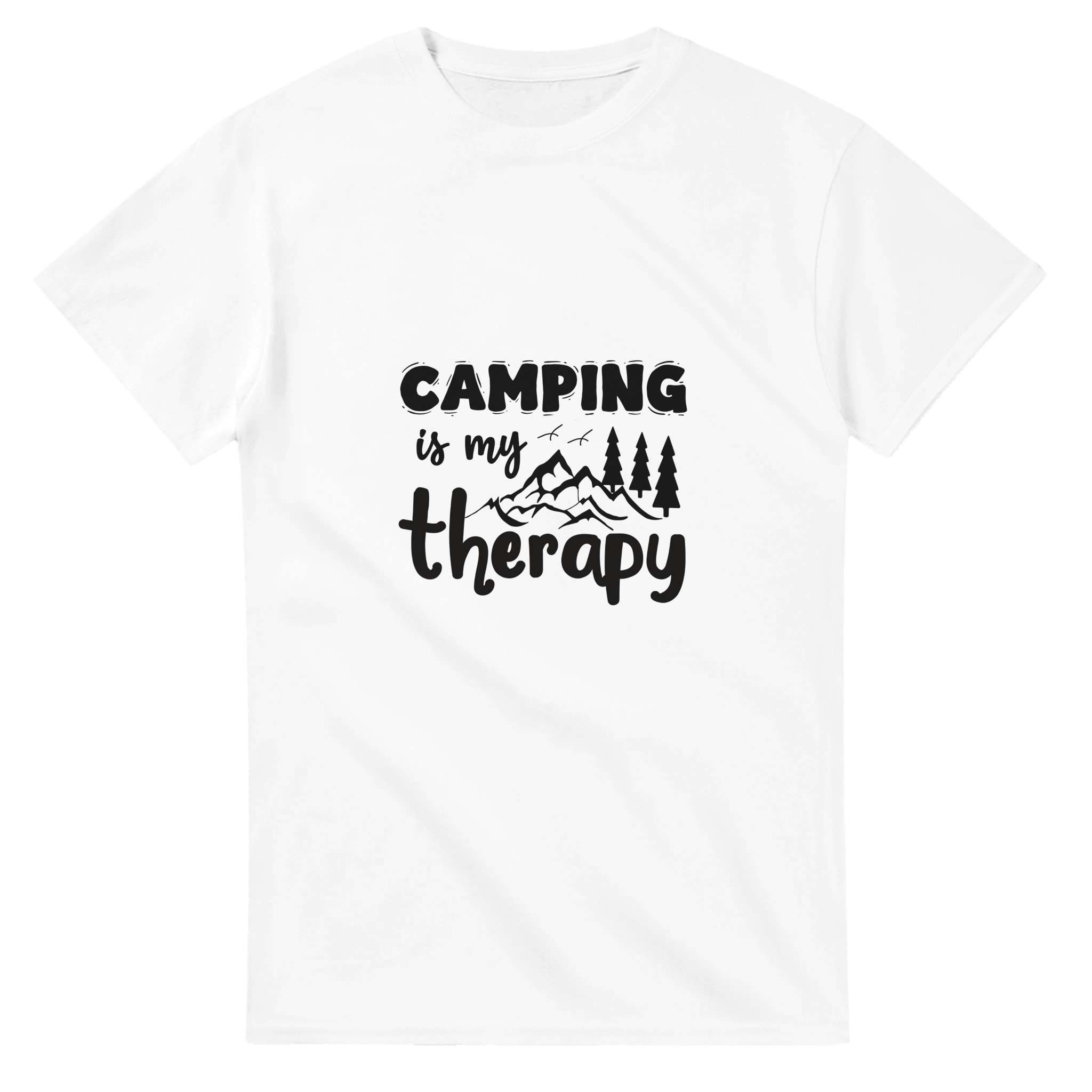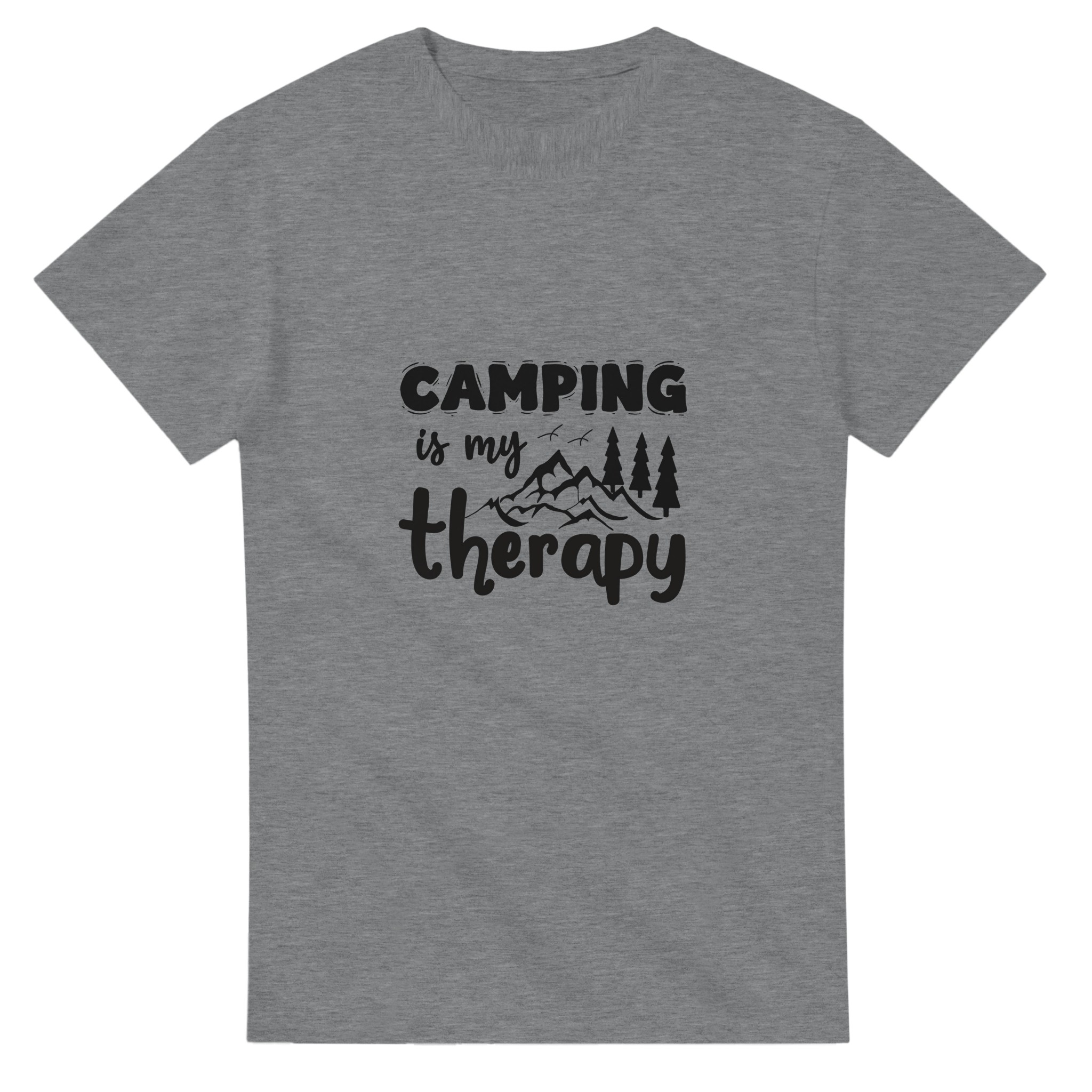 Camping Is My Therapy | Bekväm Unisex T-shirt i Tung Bomull med Vildmarkstryck | Välj Bland Flera Färger
