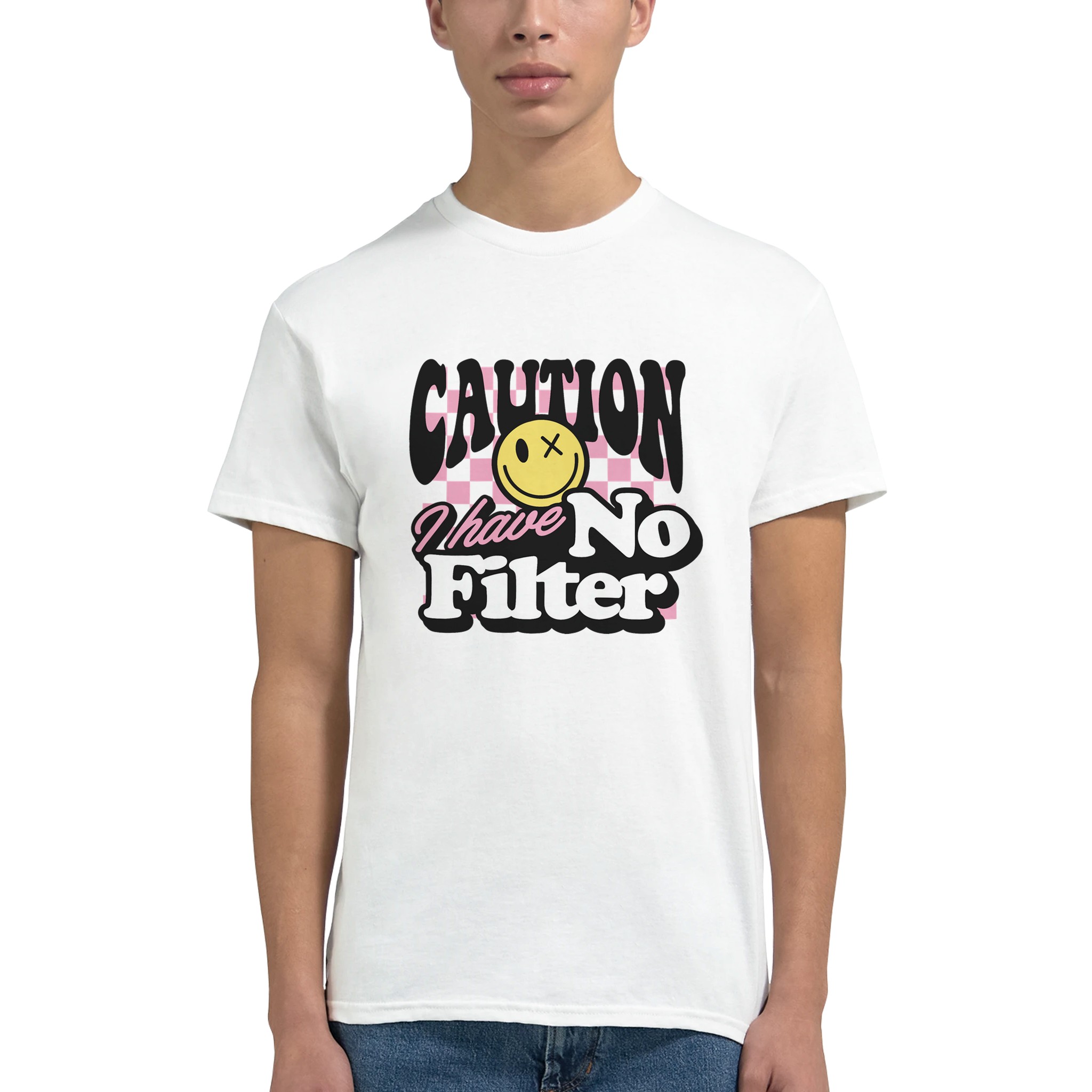 Retro “No Filter” T-shirt – Klassisk, Unisex, Slitstark Design för Vardagsbruk i Dämpade Färgval