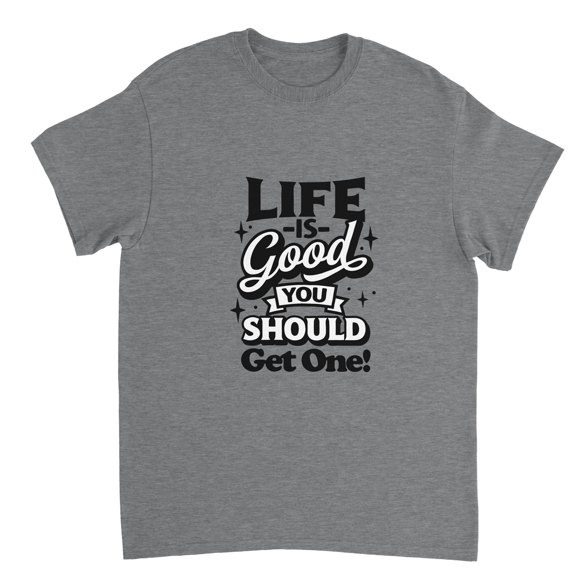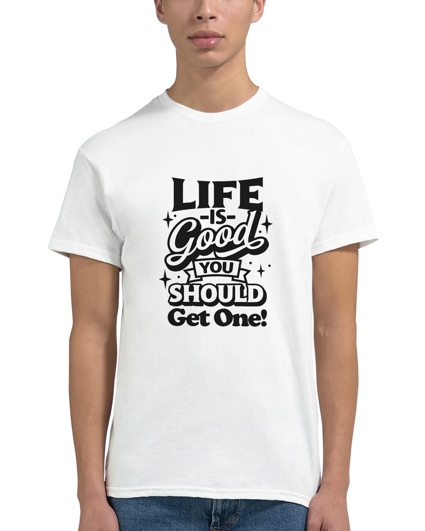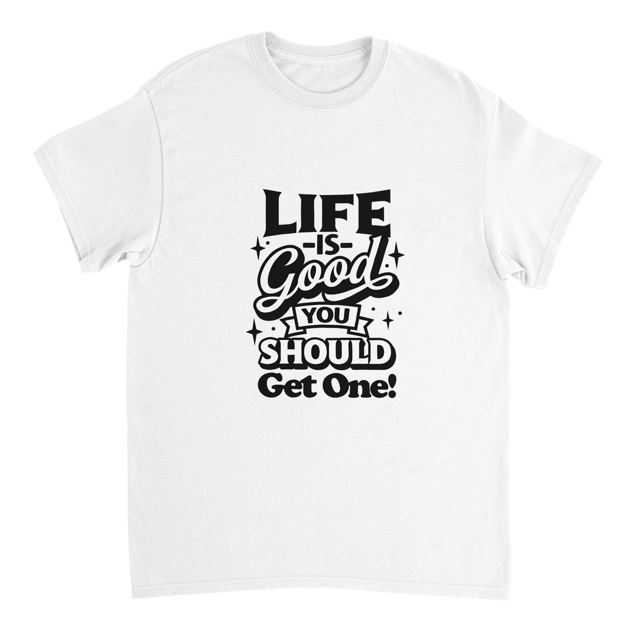 “Life is Good” Tryck T-shirt – Bekväm Unisex Bomullströja för Vardagsglädje i Din Favoritfärg