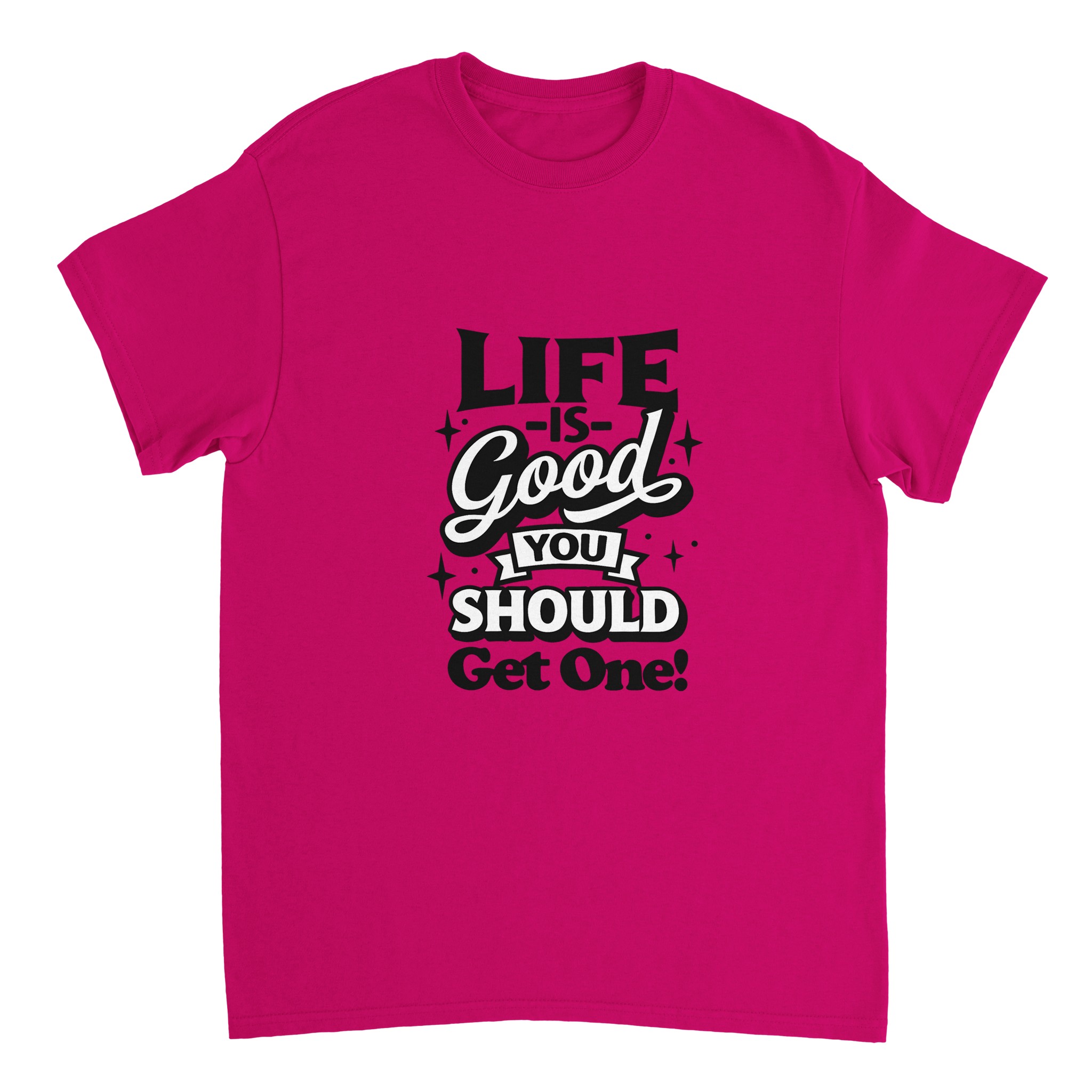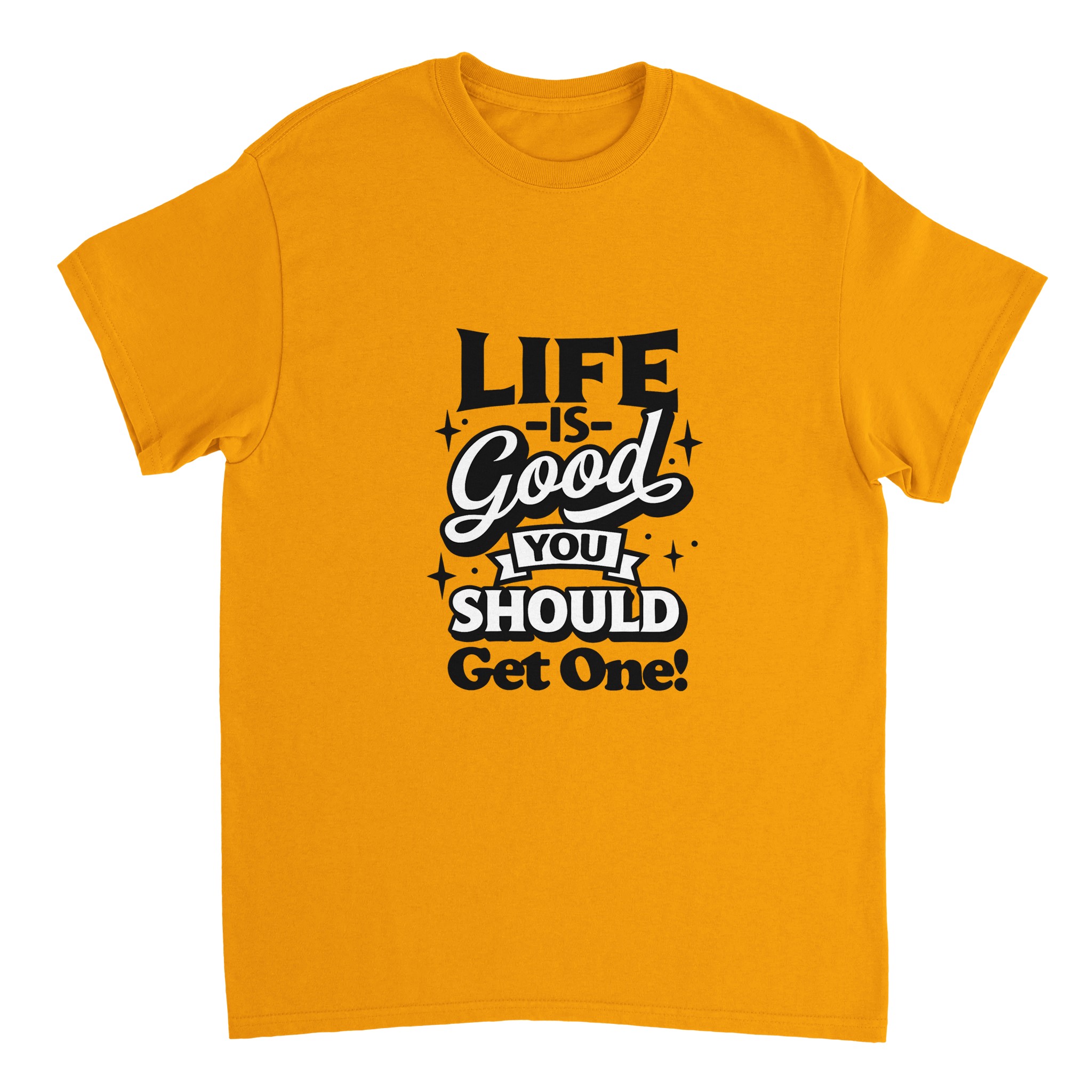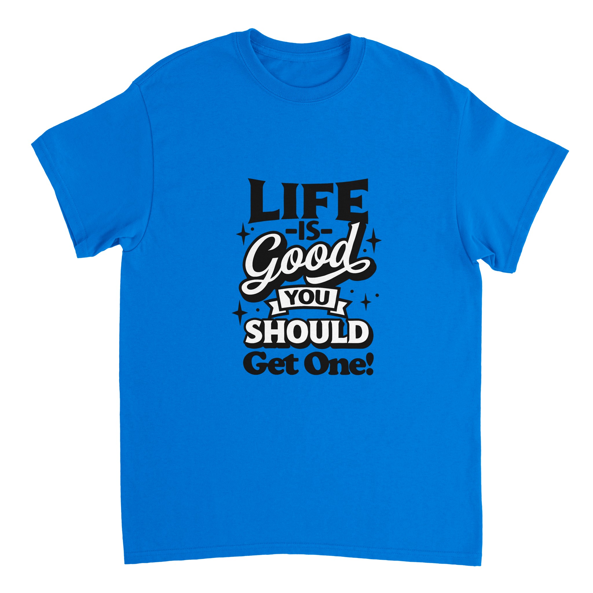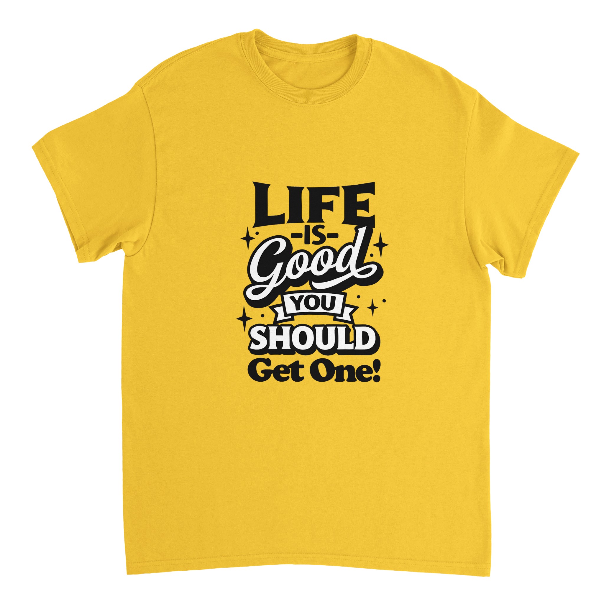 “Life is Good” Tryck T-shirt – Bekväm Unisex Bomullströja för Vardagsglädje i Din Favoritfärg
