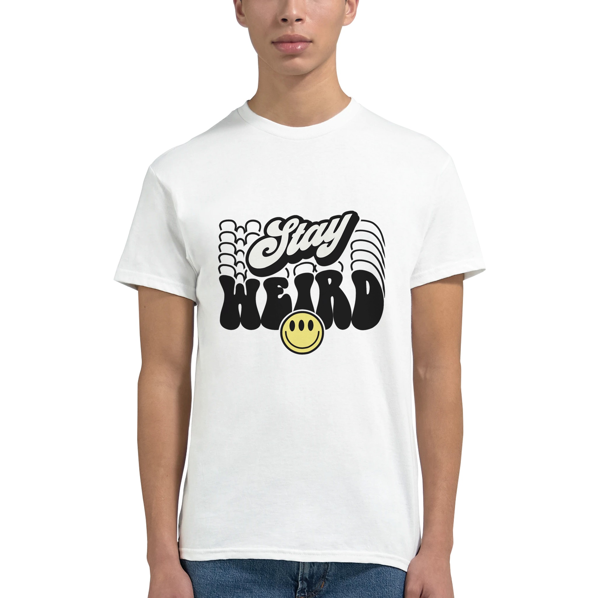 Retro “Stay Weird” Smiley T-shirt – Klassisk Bomulls-T-shirt för att uttrycka din unika stil