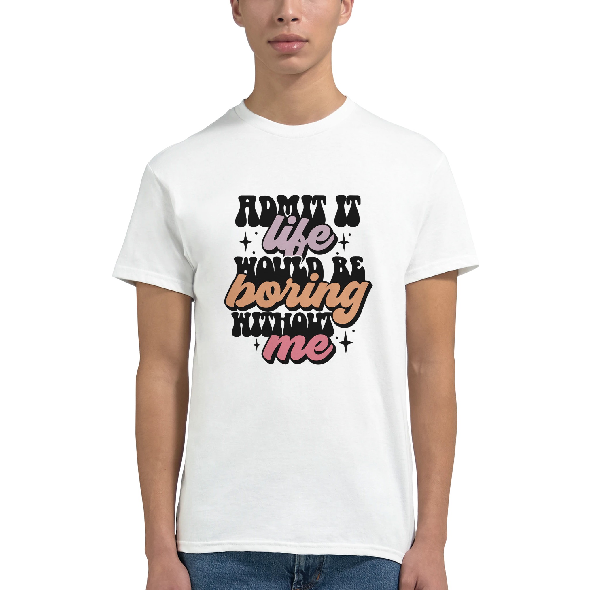 Retro Vibe “Life Without Me” T-shirt – Klassisk, Unisex, Slitstark Design för Vardags och Tryck